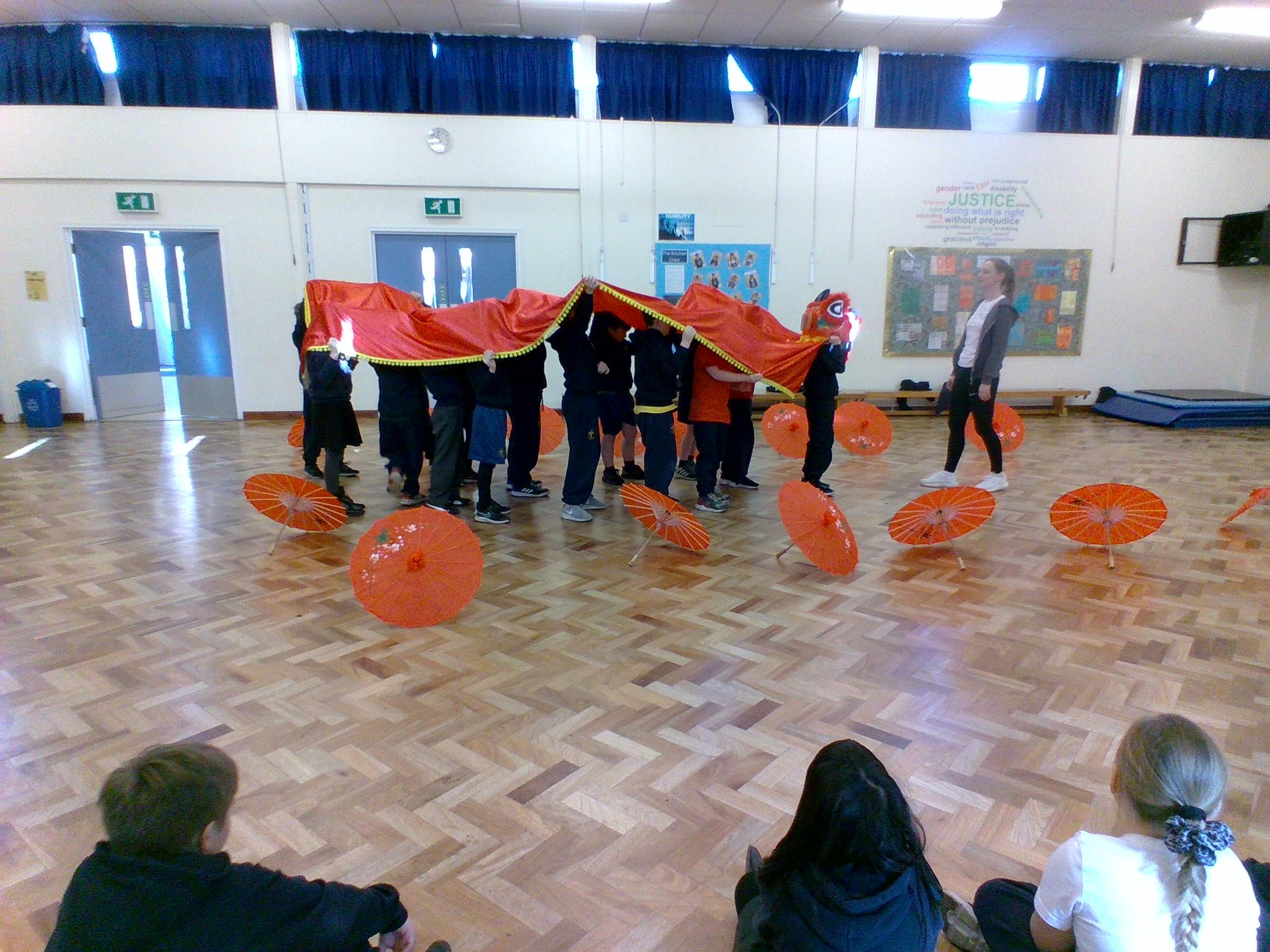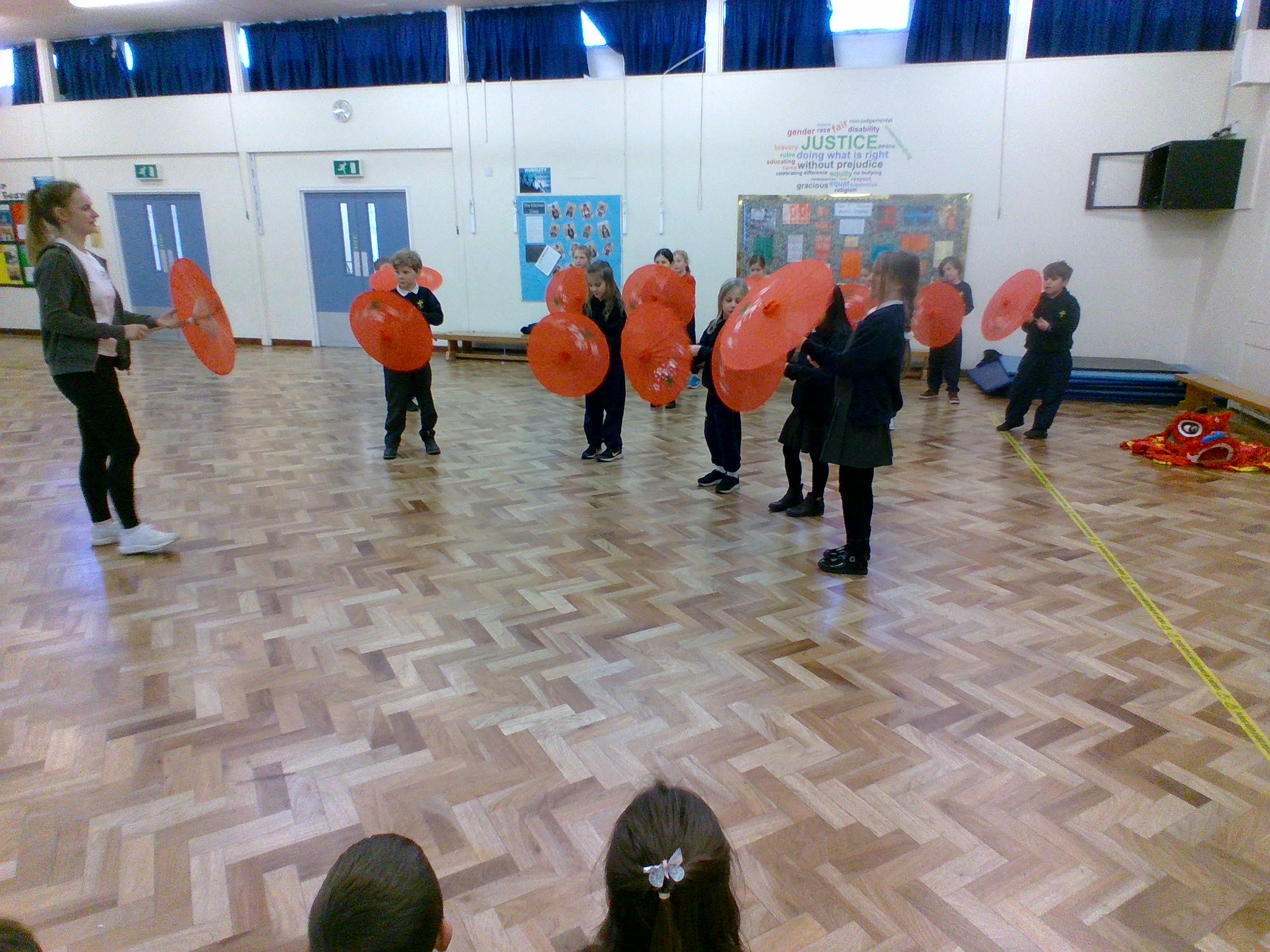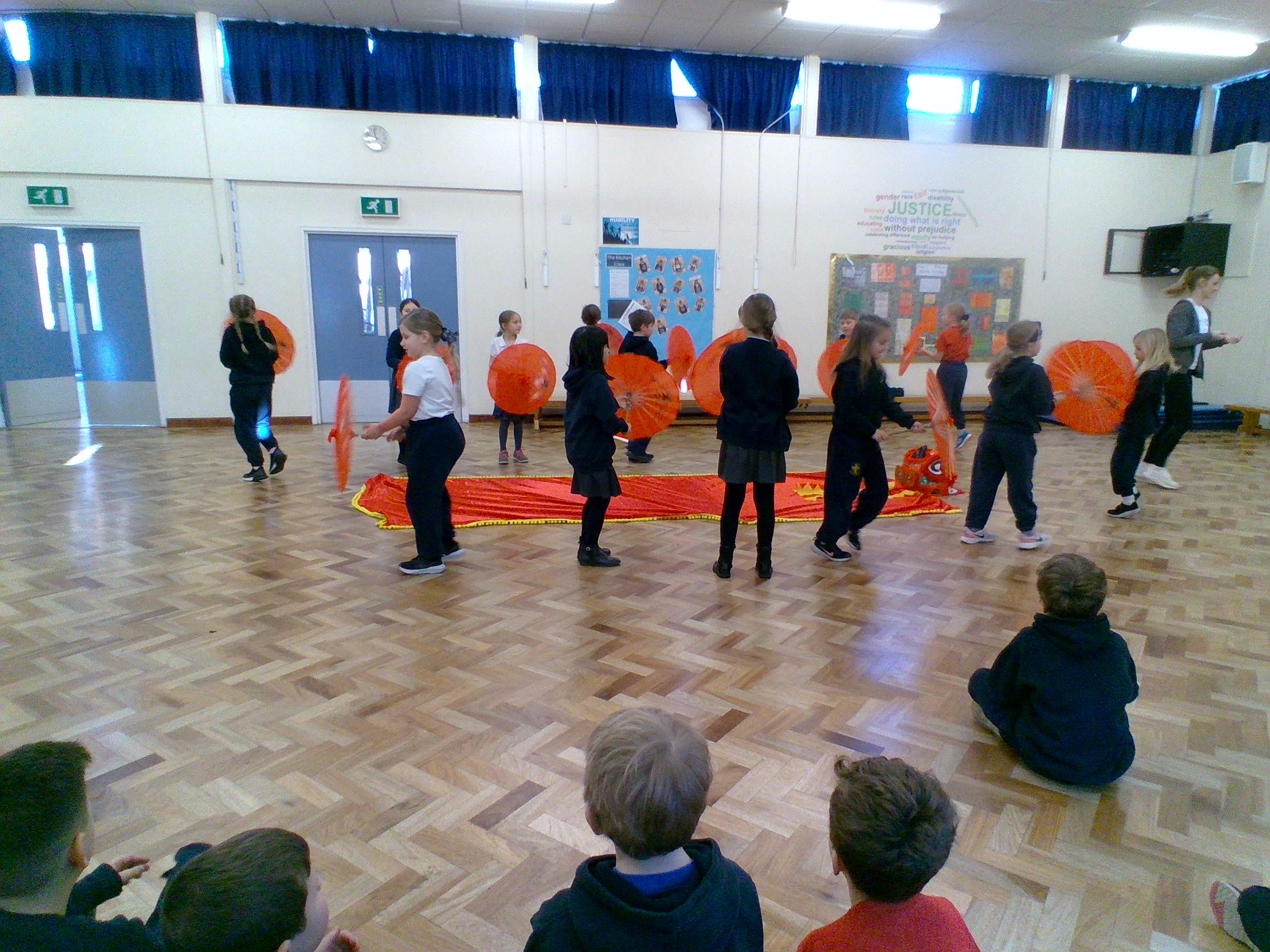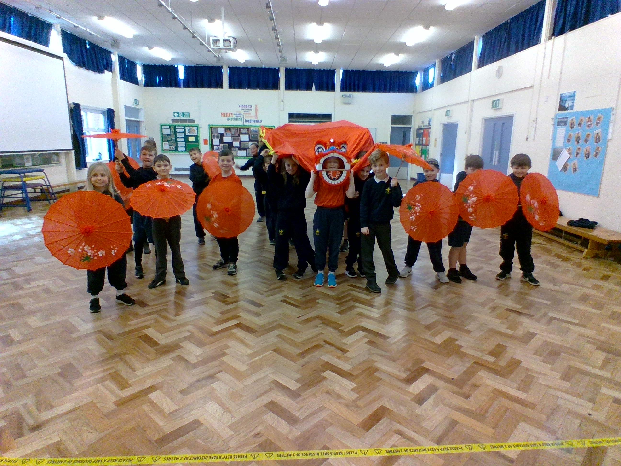 Today we had a fantastic time taking part in a Chinese New Year dance workshop. We learnt how to use parasols and even danced with a dragon! We had lots of fun and have enjoyed our time learning all about Chinese New Year!