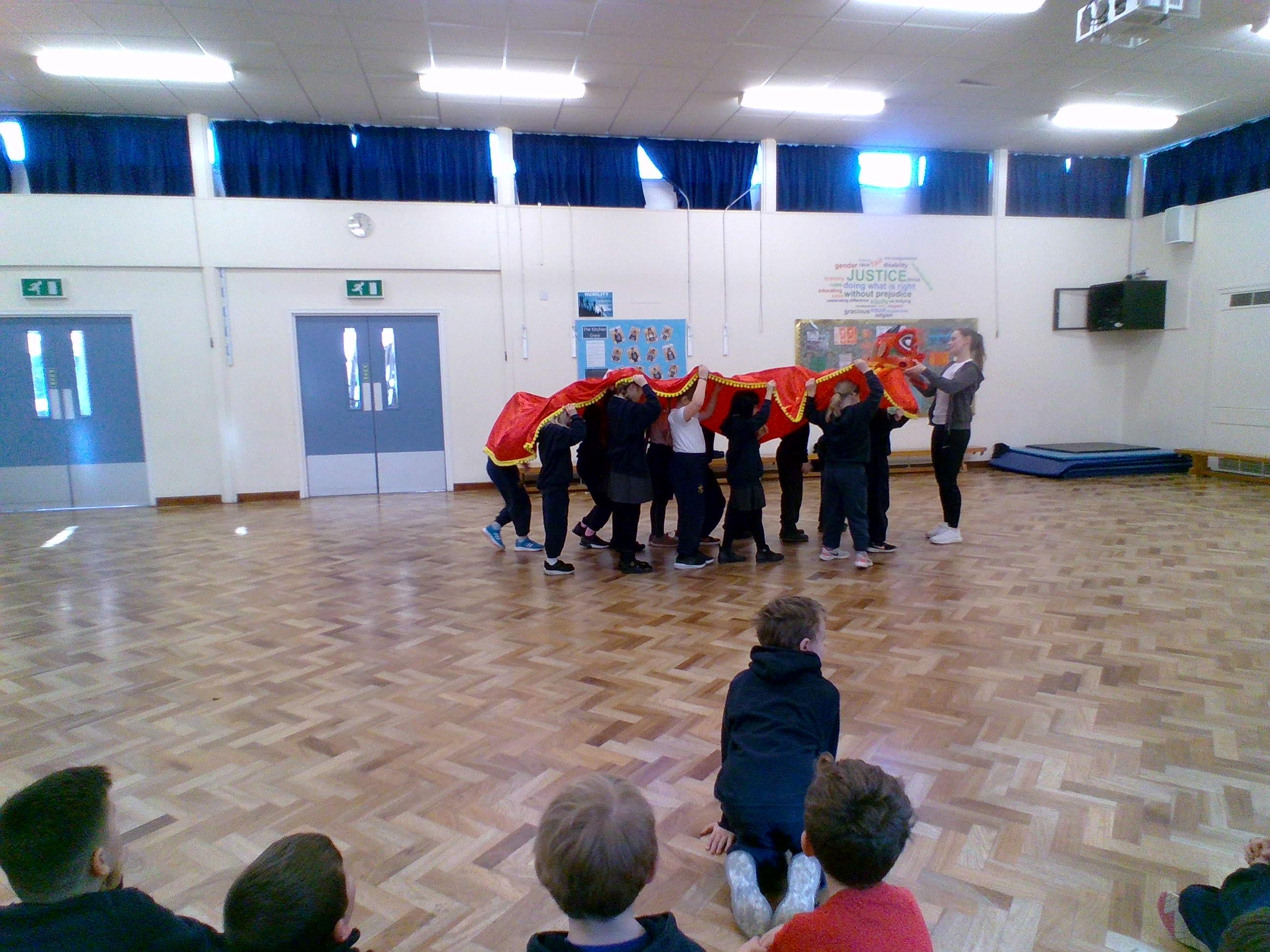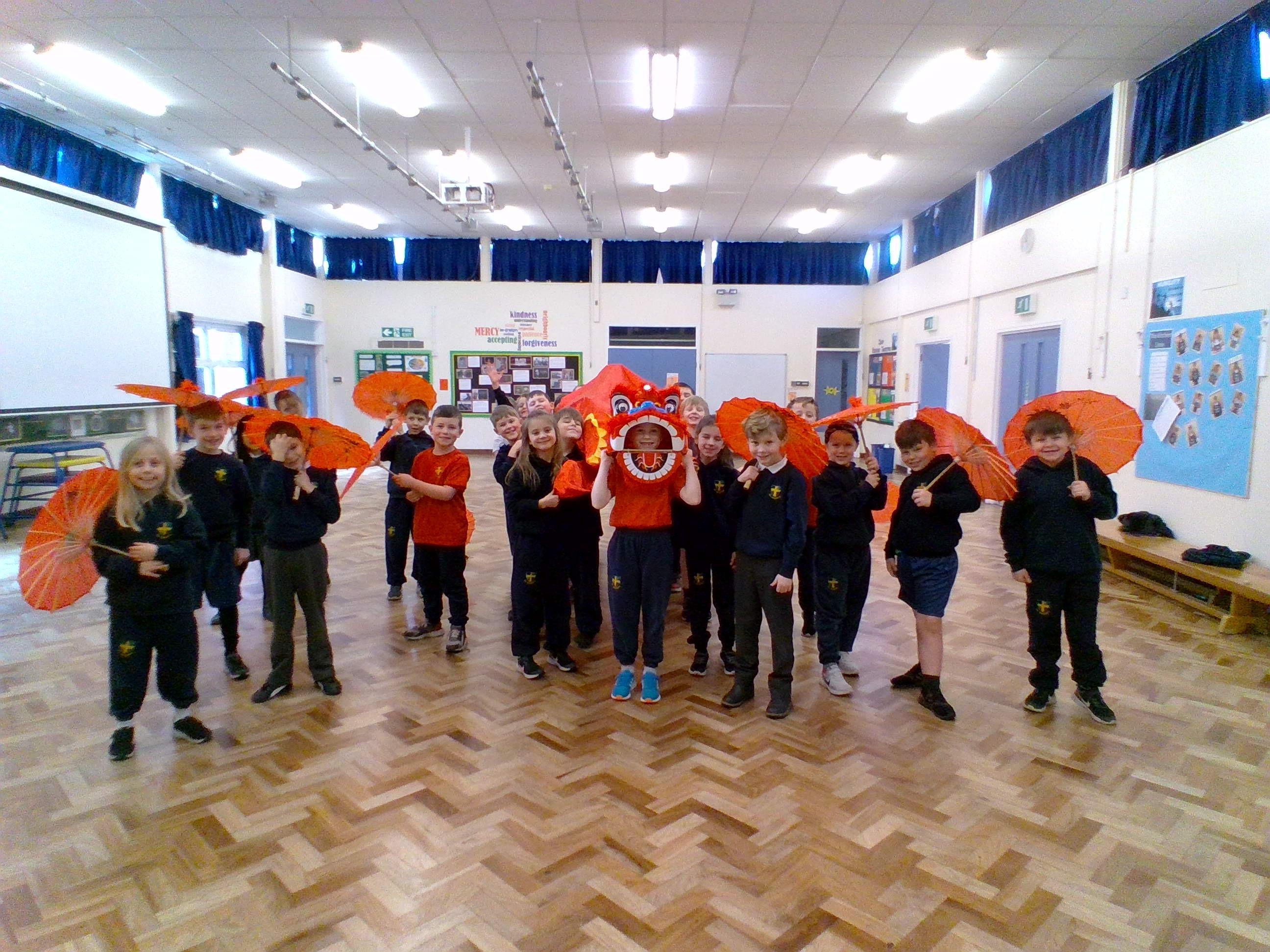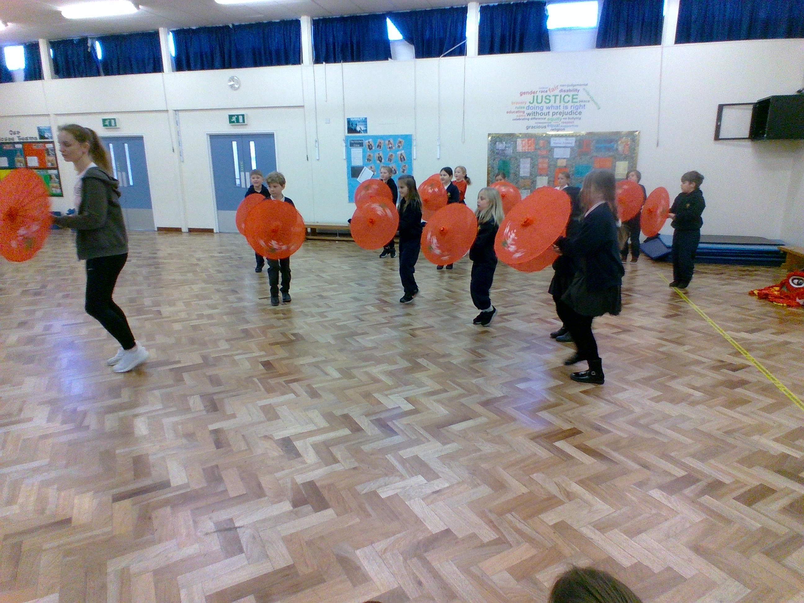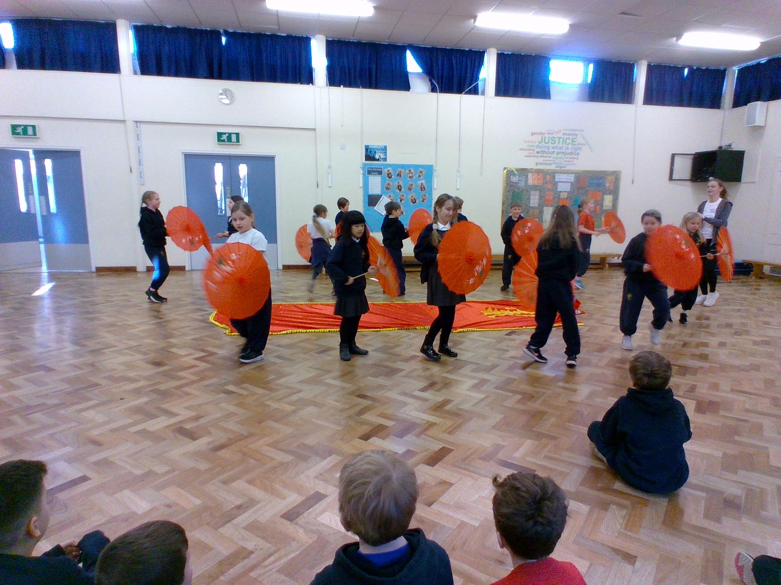 Today we had a fantastic time taking part in a Chinese New Year dance workshop. We learnt how to use parasols and even danced with a dragon! We had lots of fun and have enjoyed our time learning all about Chinese New Year!