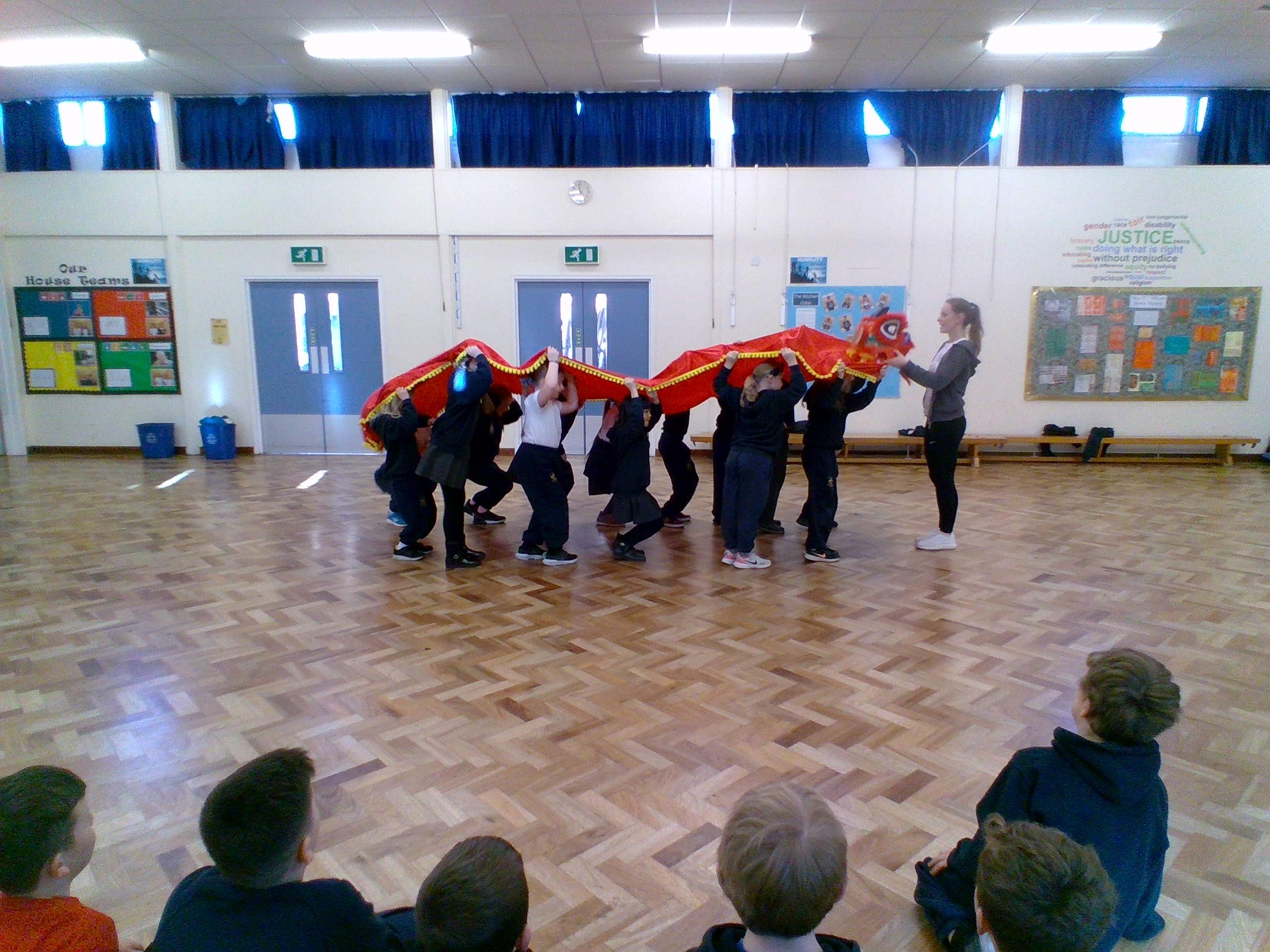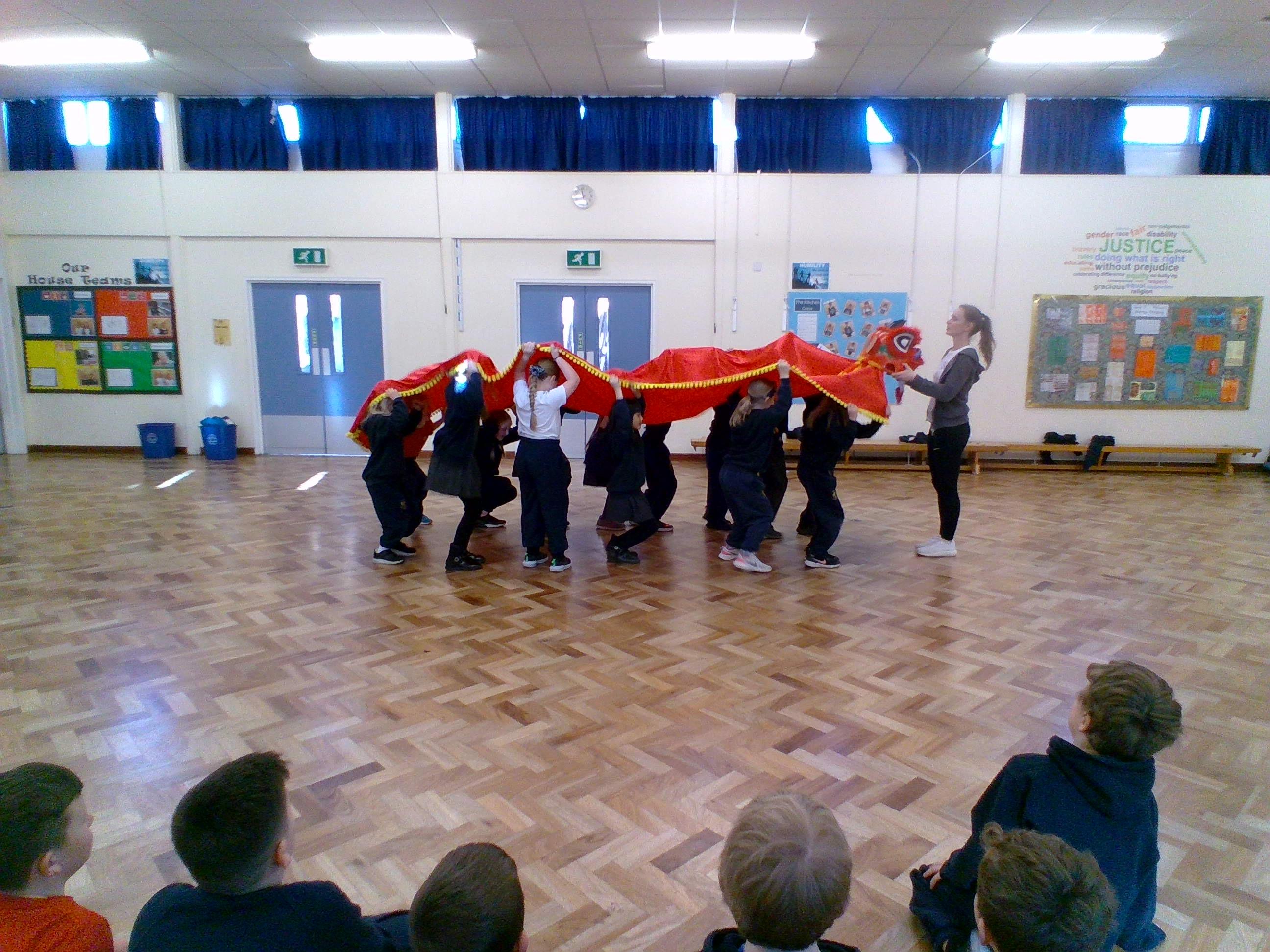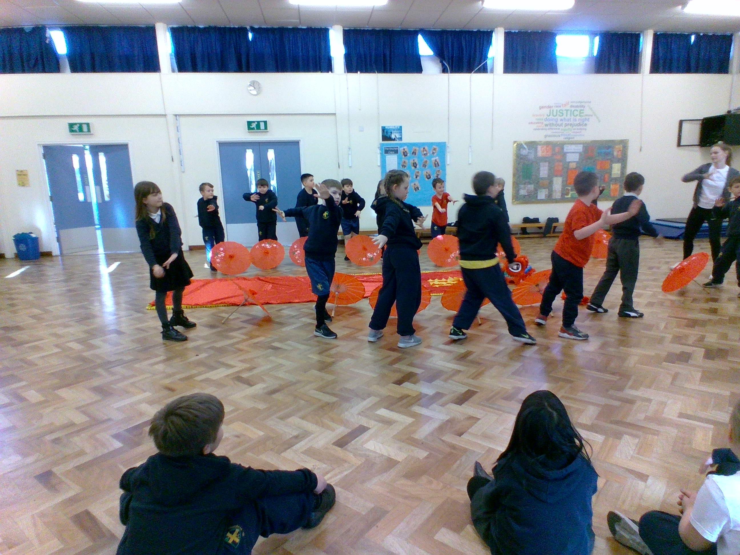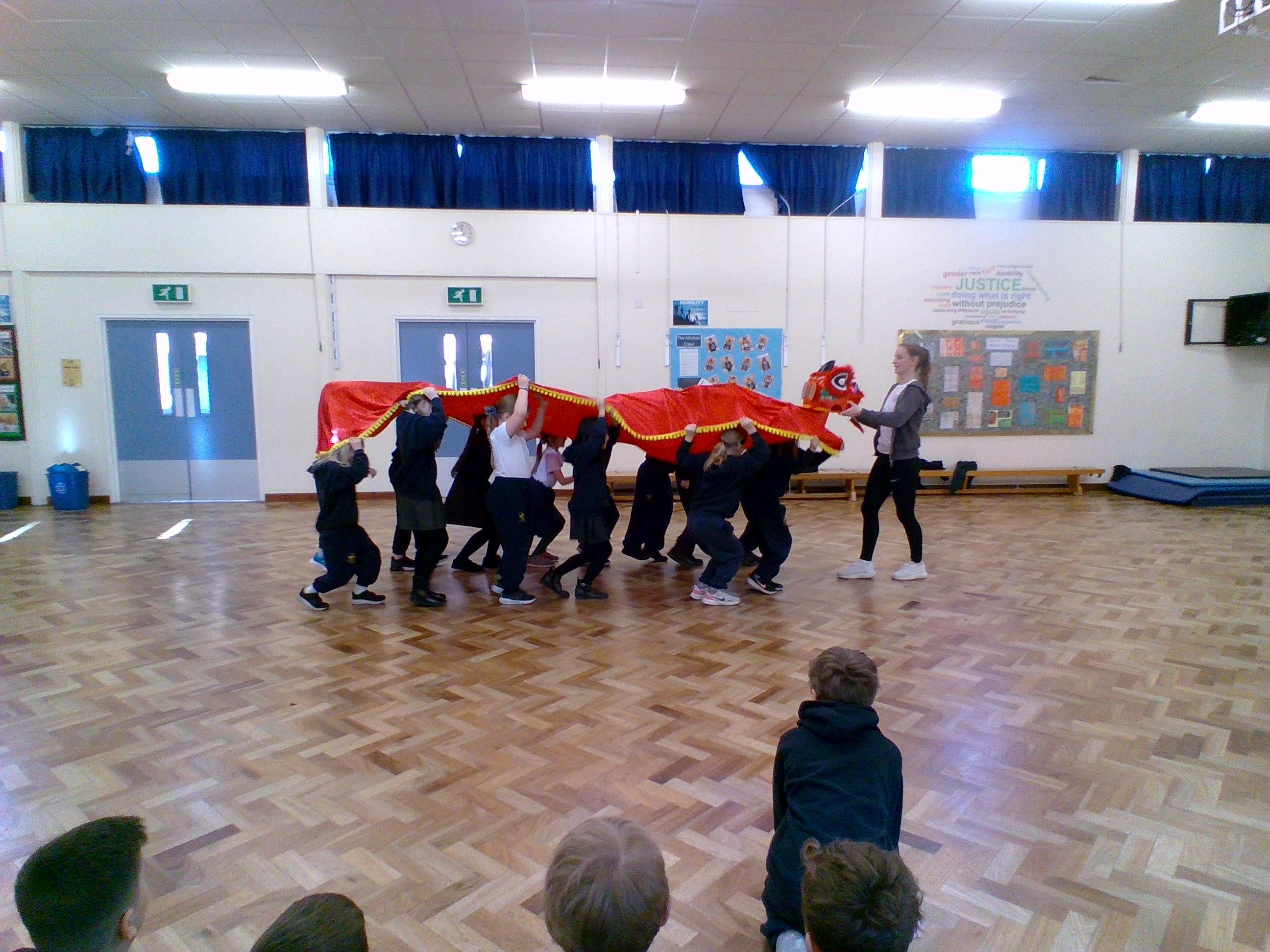 Today we had a fantastic time taking part in a Chinese New Year dance workshop. We learnt how to use parasols and even danced with a dragon! We had lots of fun and have enjoyed our time learning all about Chinese New Year!