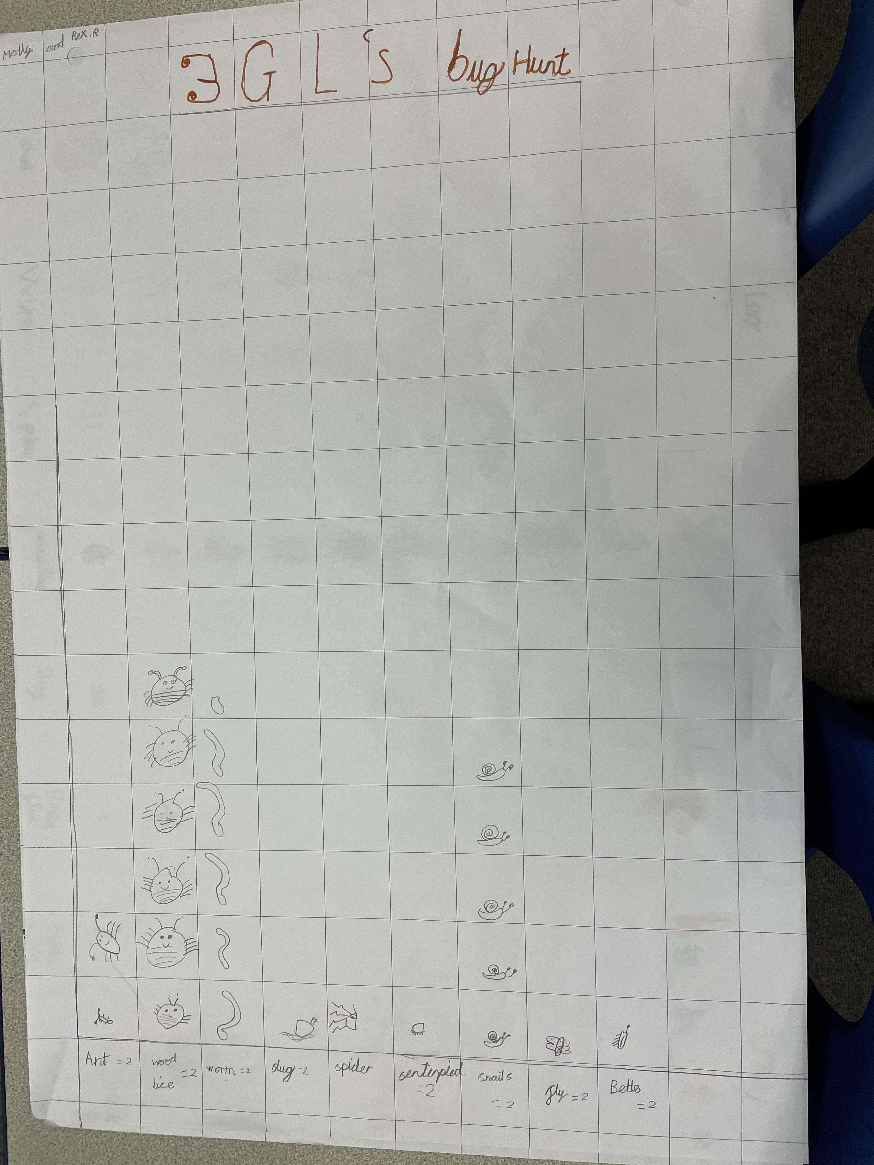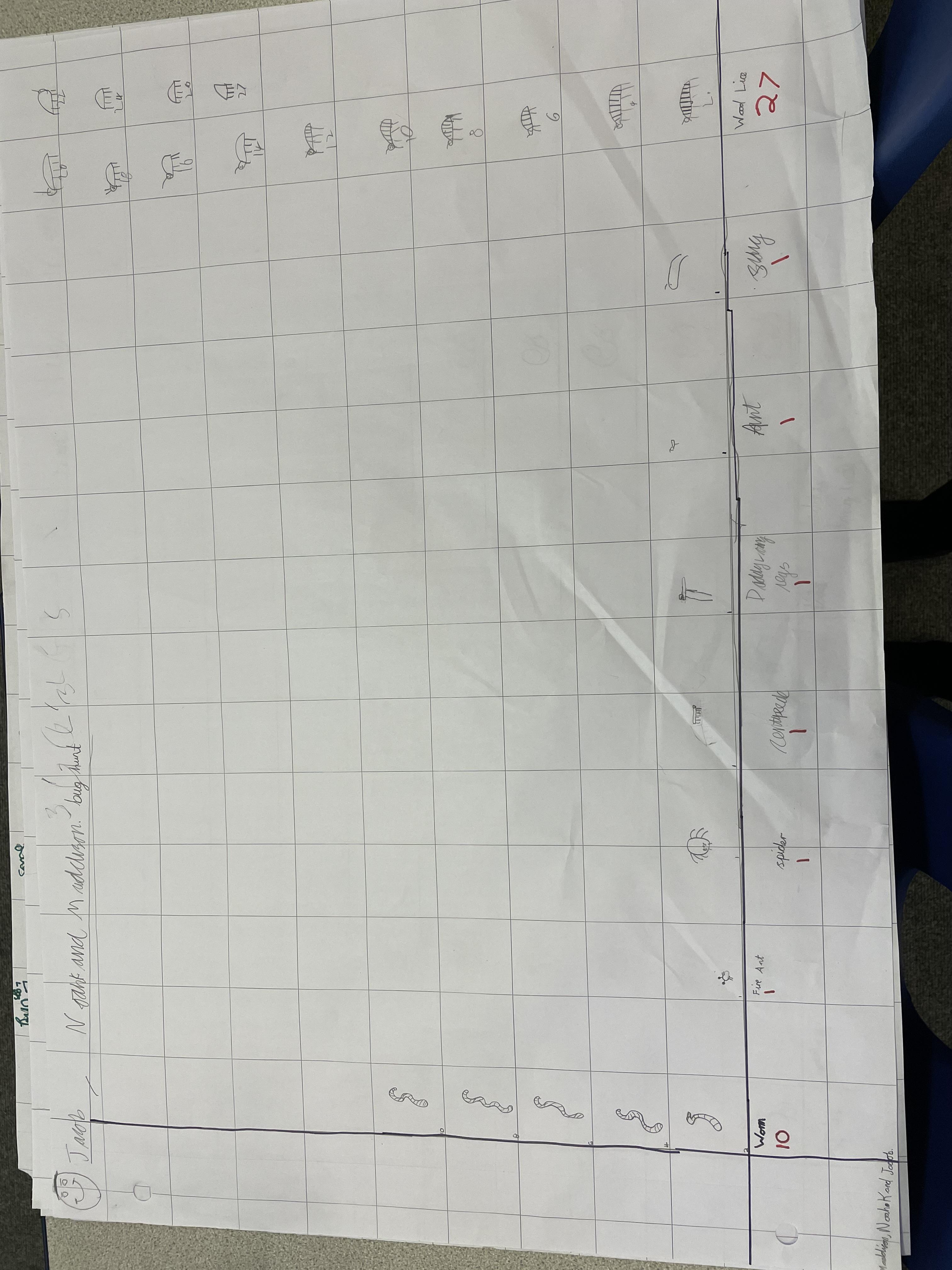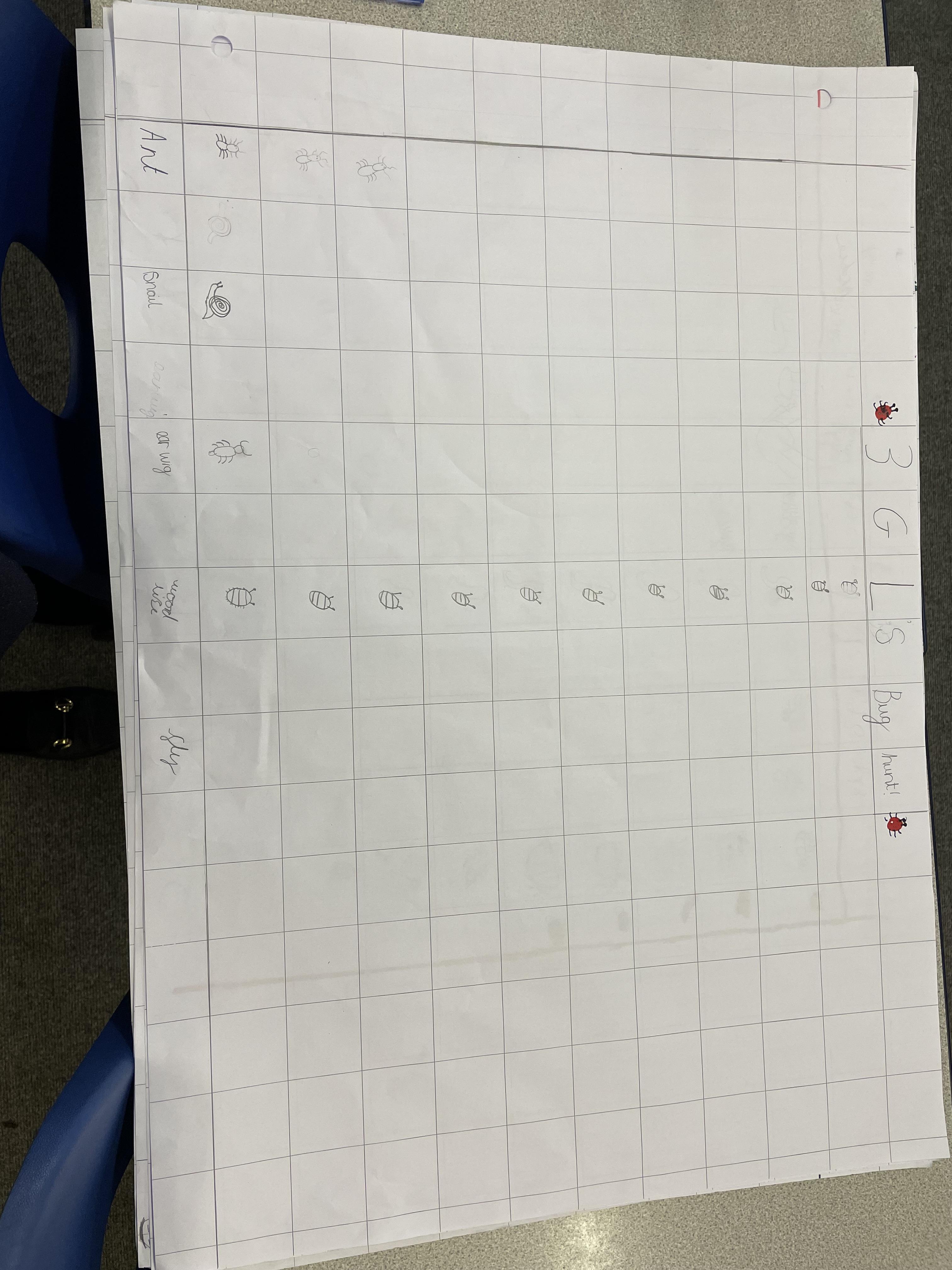 When we went back to class we focused on data collection. We explored what a pictogram was and went out a bug hunt outside. We used the data we collected to create our own pictograms in groups.