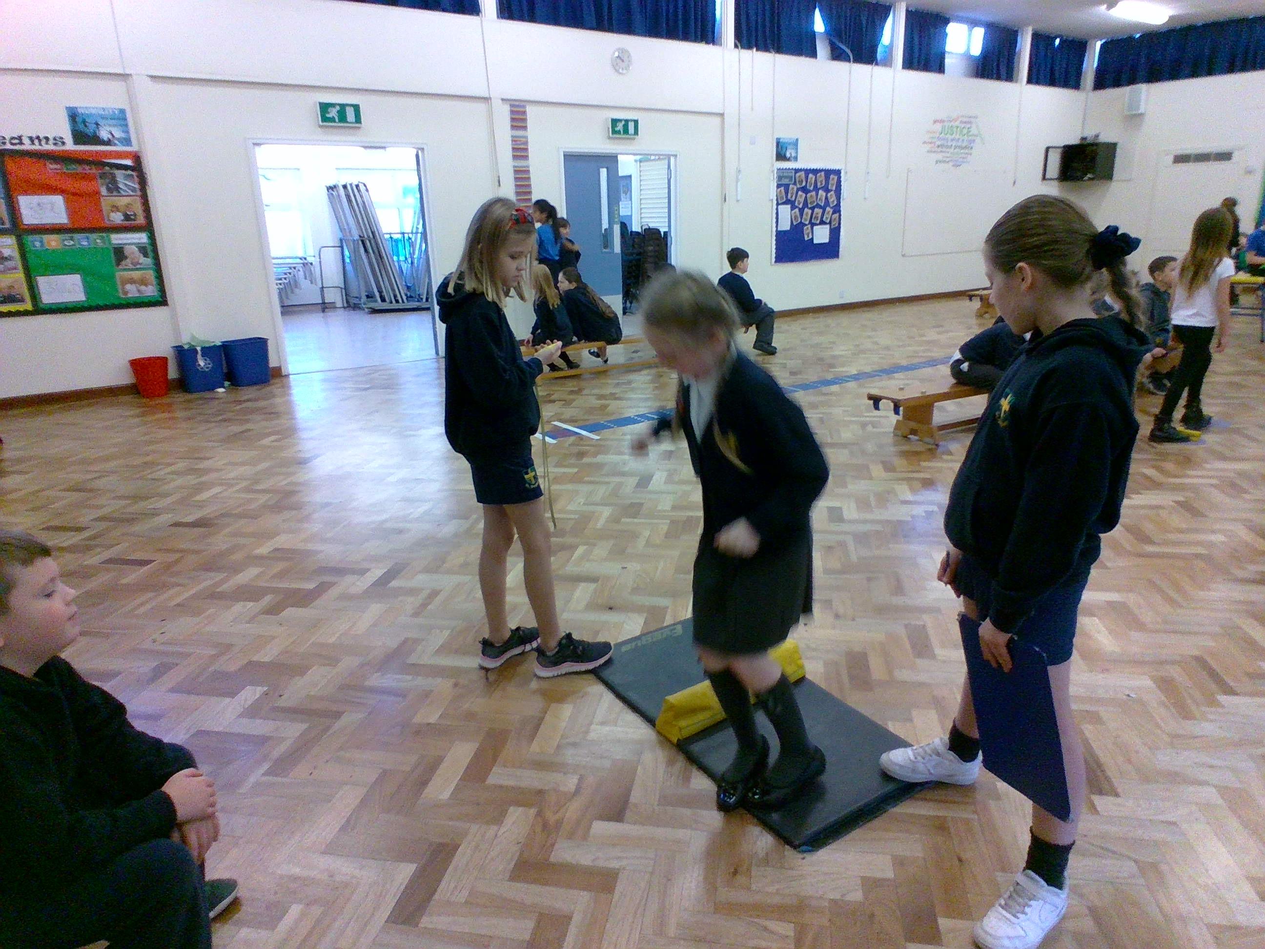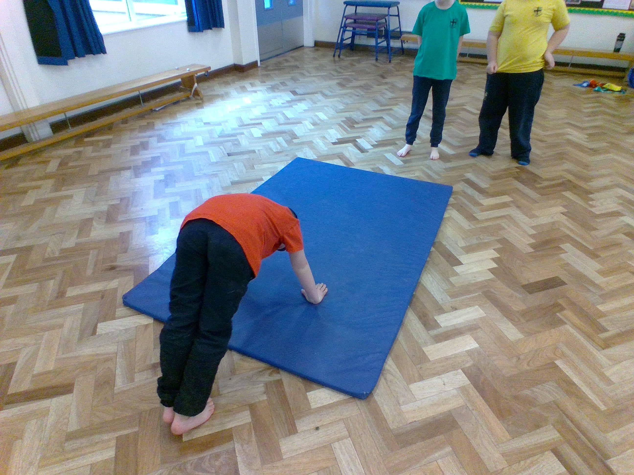 This term during our indoor PE, we have been learning all about gymnastics. During this lesson we learnt how to safely perform a forward roll. We learnt that we have to put our chin to our chest and look through our legs. It is very important to remember that our heads should at no point have contact with the floor and that the back of our neck should. We had an opportunity to practise and support our learning partners by giving them words of encouragement and next steps.