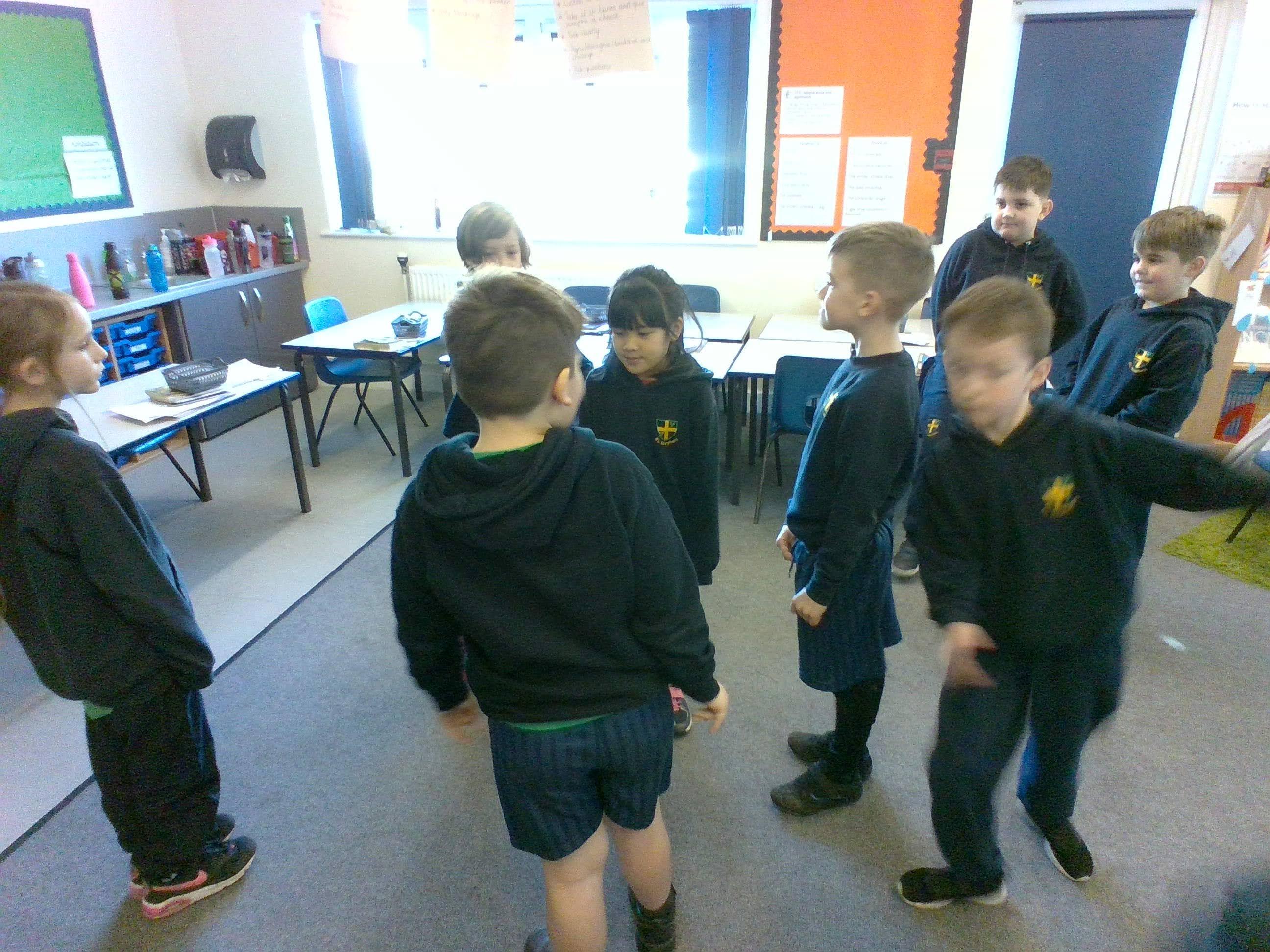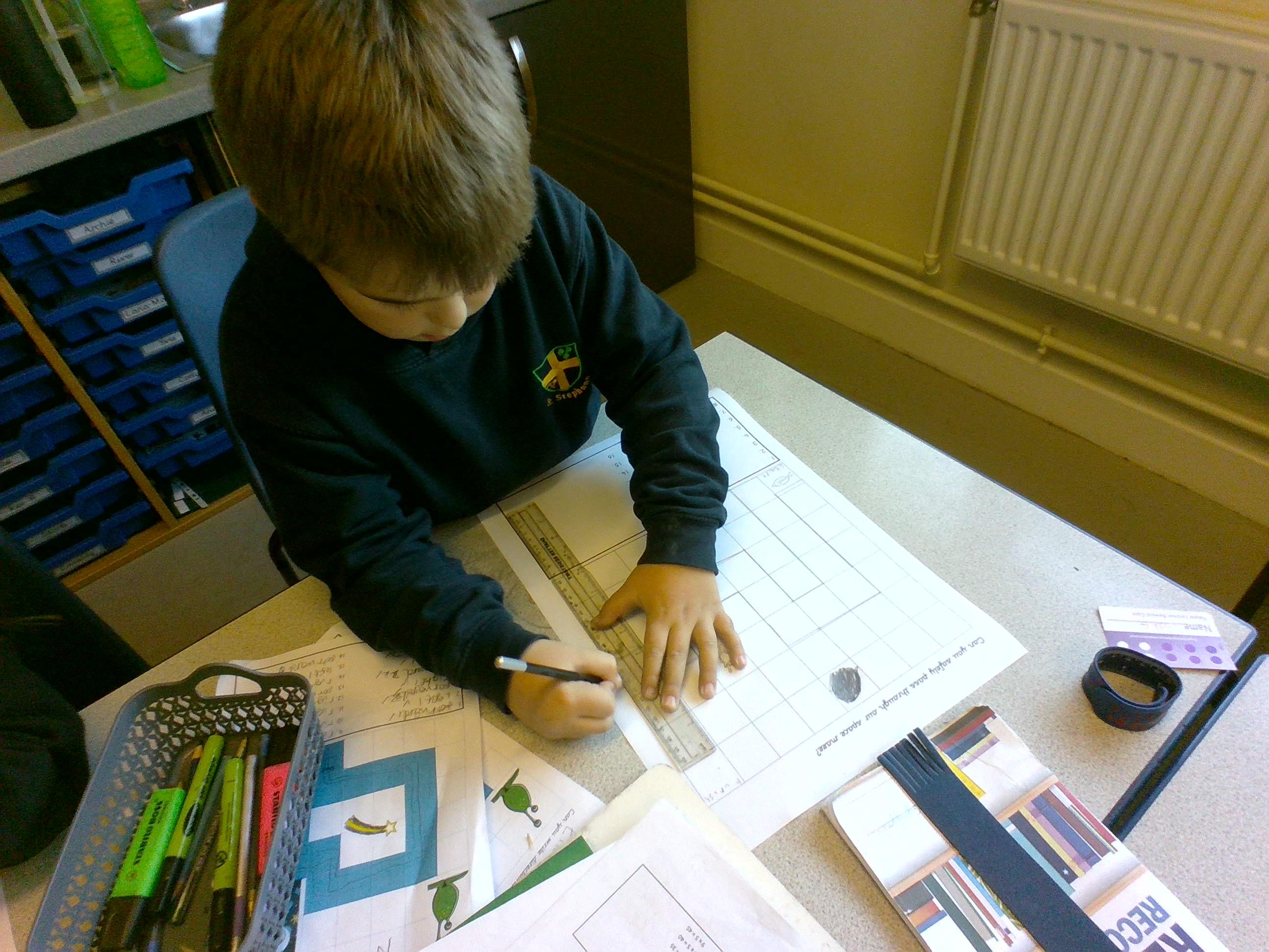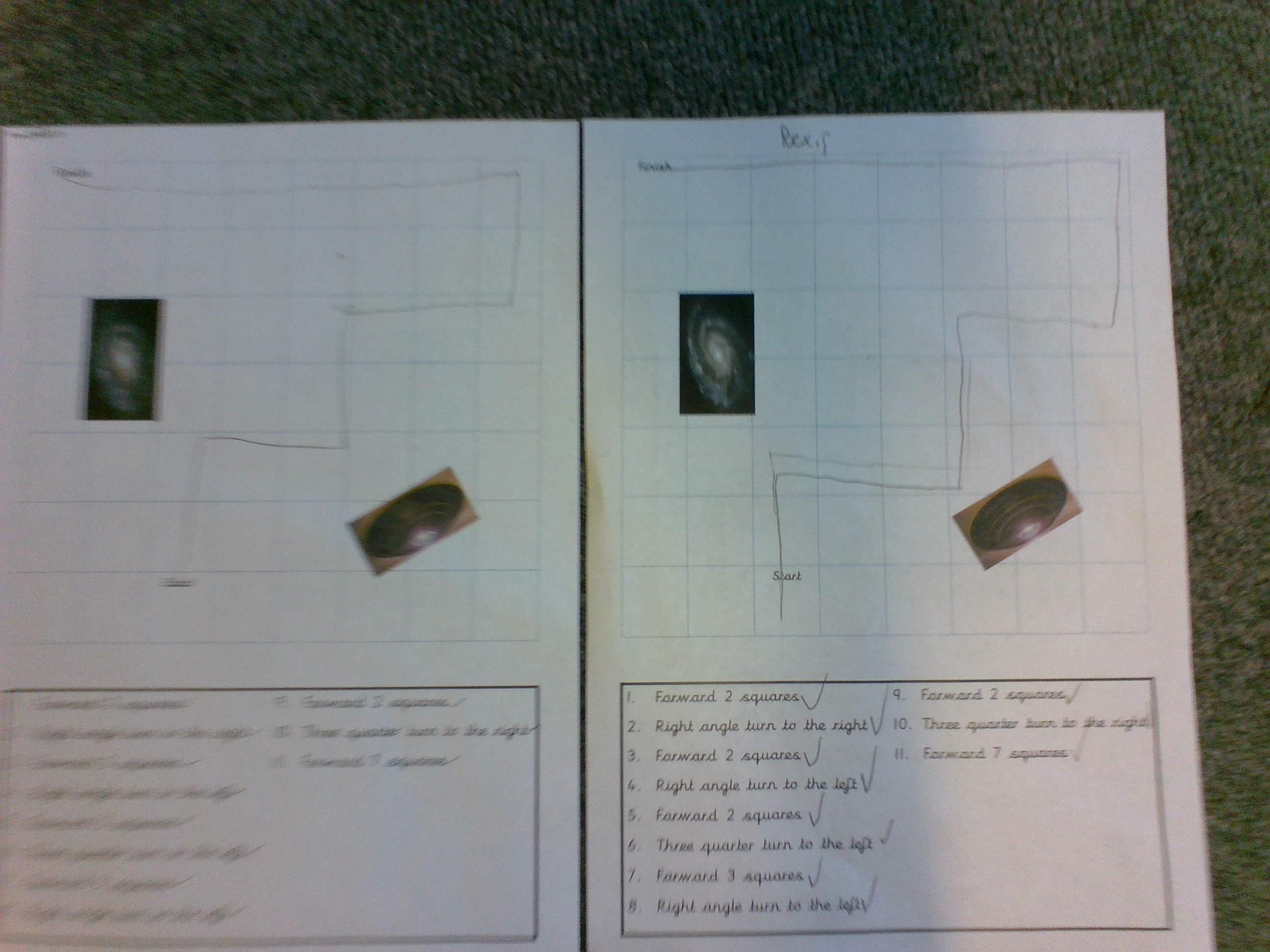 In Week 3, we had a maths day based around space and the solar system! We learnt about right angles and how we can use them to describe direction. We learnt there are 4 right angles turns within a whole turn and practised turning left and right using different amounts of right angle turns. We followed and created directions and then finally created our own space mazes. Can you safely pass through our space mazes?