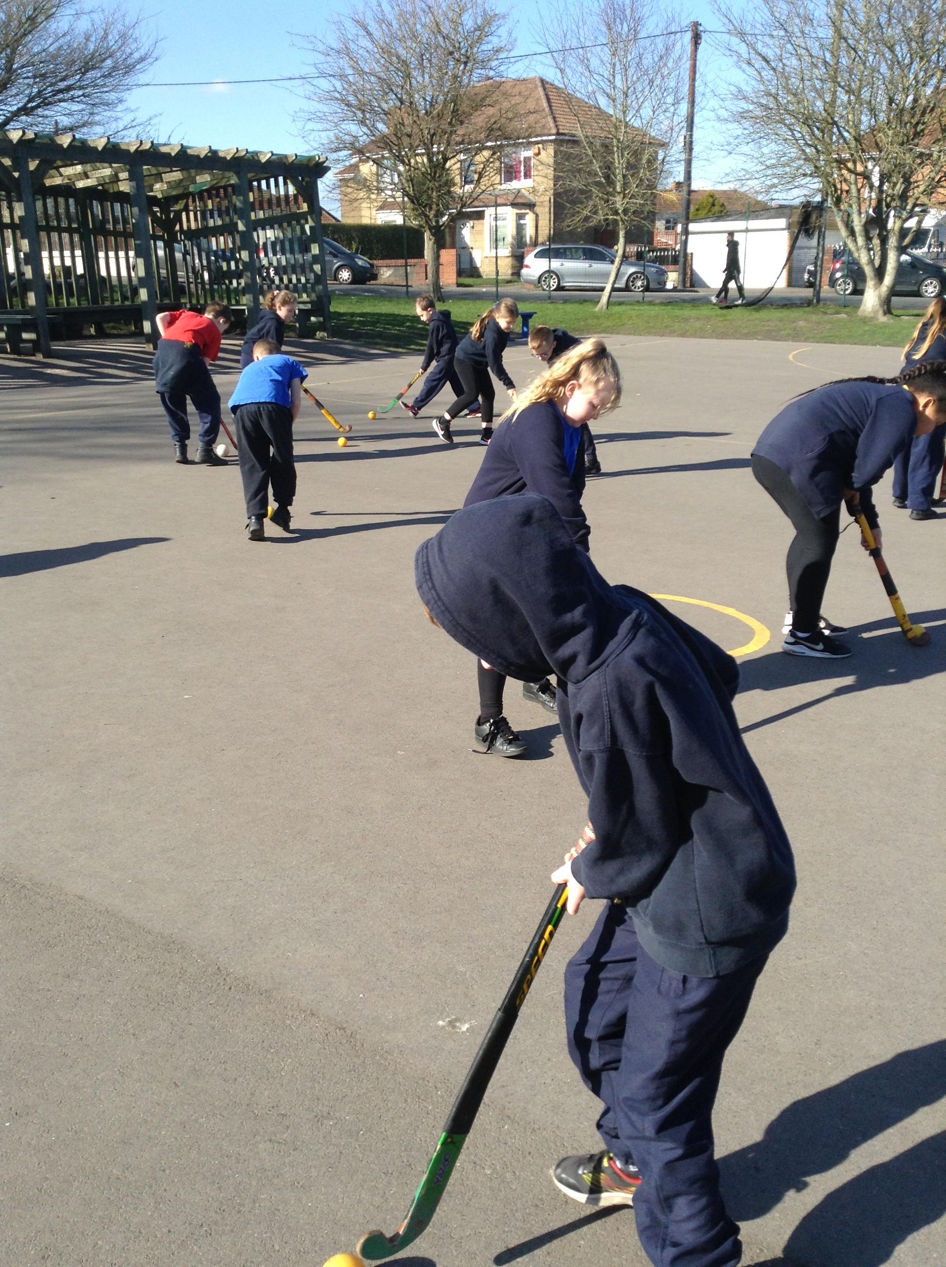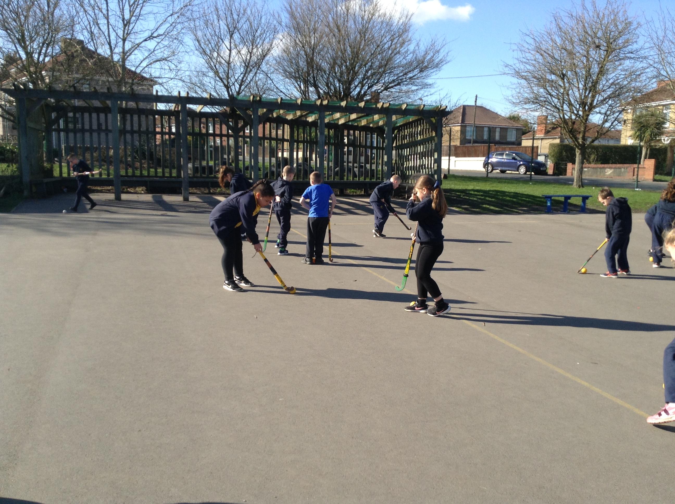 In Term 4 outdoor PE, we are doing hockey with Mr Gill. In our first session, we learnt about how to hold the hockey stick and how to dribble the ball across the court. We were then challenged to play a game where we had to try and hit eachother's balls out of the court. We loved learning these new skills and we are looking forward to playing a full game in PE this term.