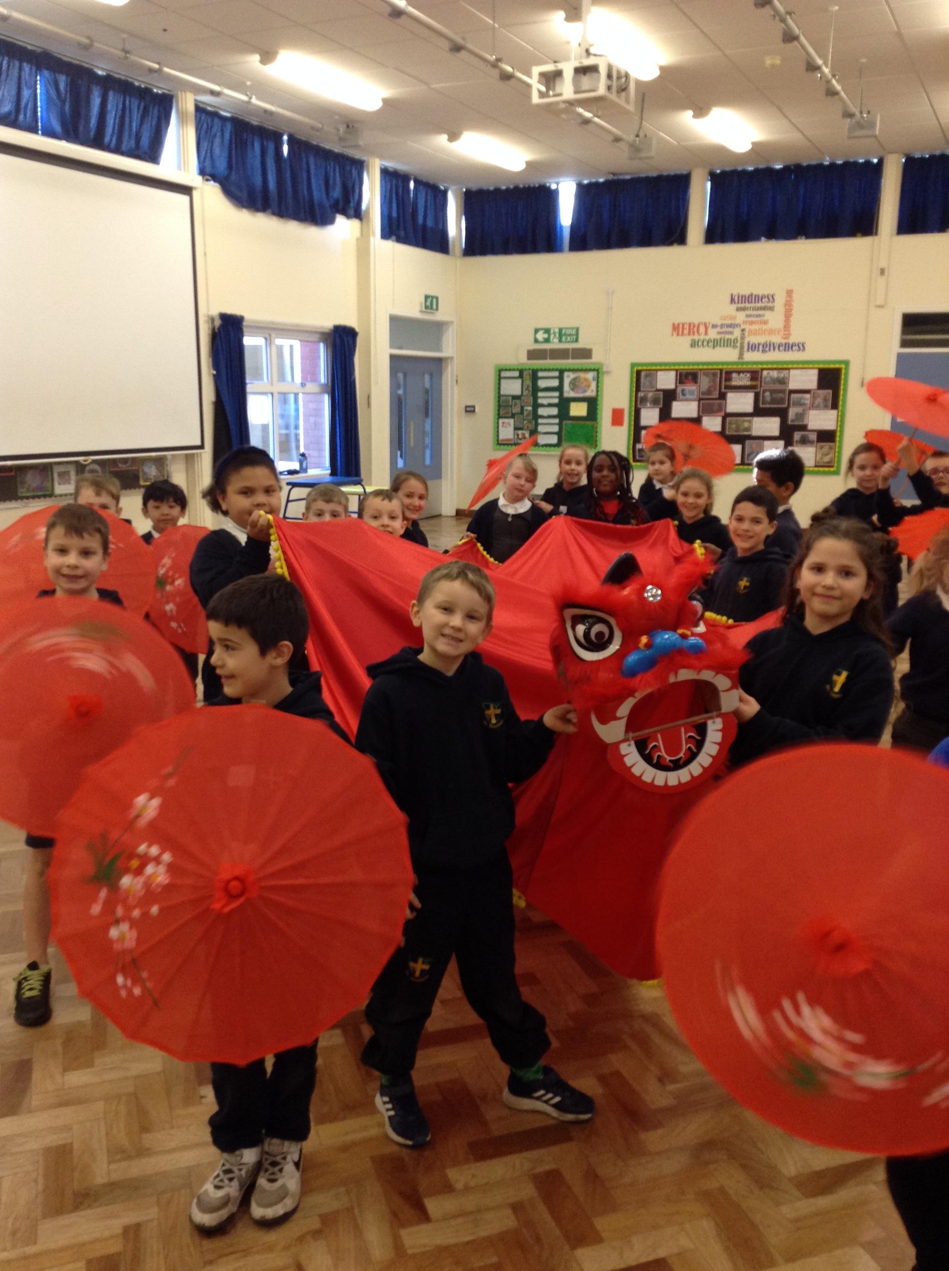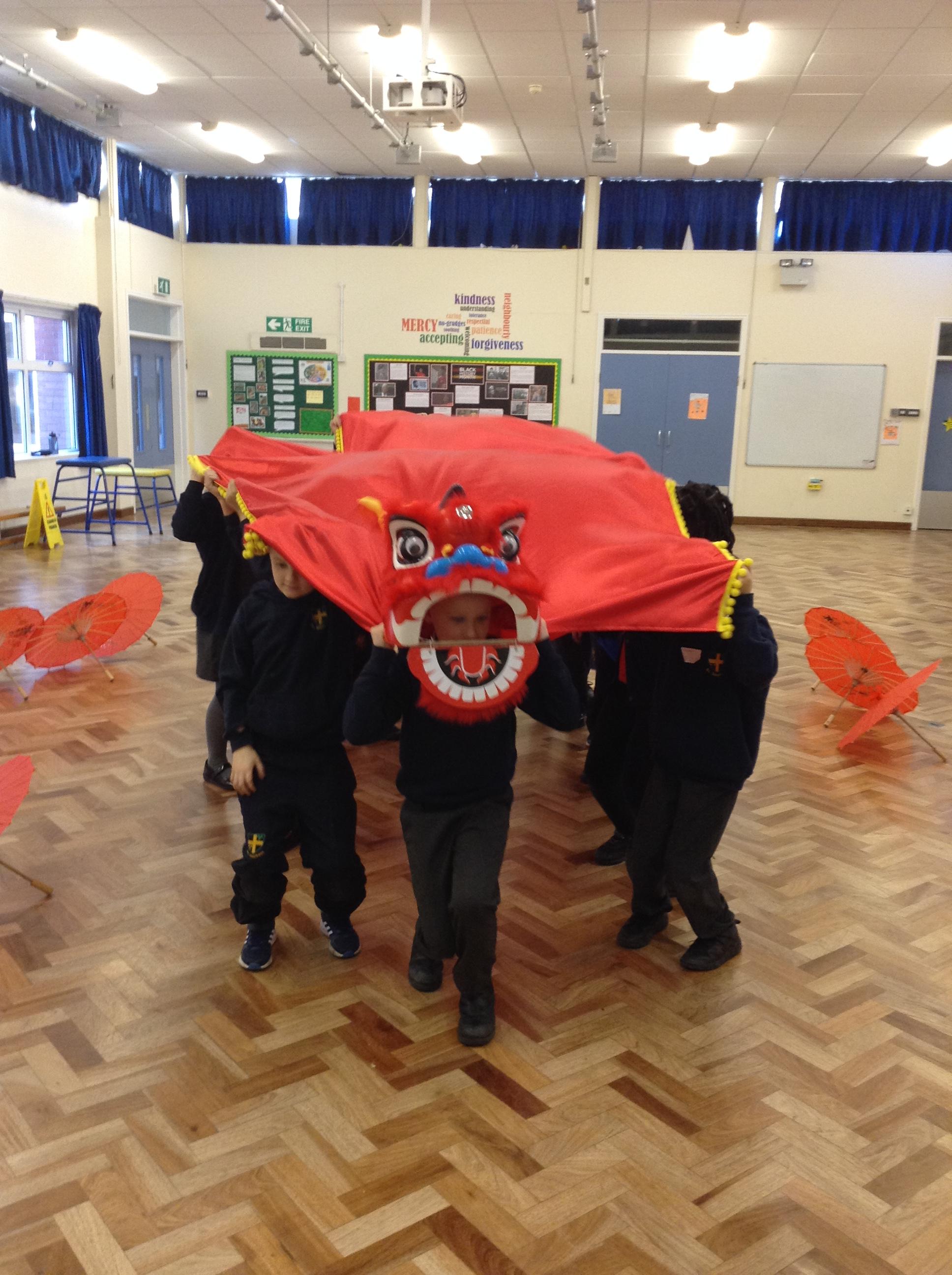 On Friday, we had a fantastic time taking part in a Chinese New Year dance workshop. We learnt how to use parasols and even danced with a dragon! We had lots of fun and have enjoyed our time learning all about Chinese New Year!