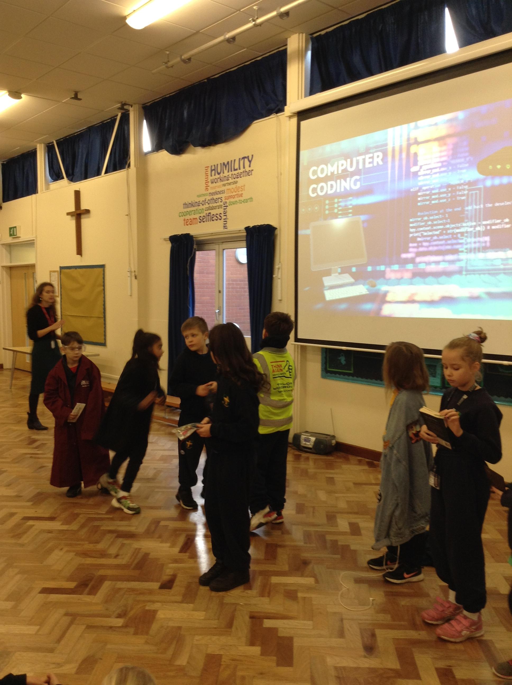 Today we ccelebrated 25 years of World Book Day! In class, we shared the meaning of the words that we have dressed up as. We also explored artwork that expressed words and had a go at drawing an image to represent our words. In the afternoon, we were joined by 5CW and enjoyed sharing and listening to different stories. Then, we gathered in the hall and listened to each teacher read an extract from a book, chose which one we wanted to listen more of and listened to some more back in the teacher's classroom.