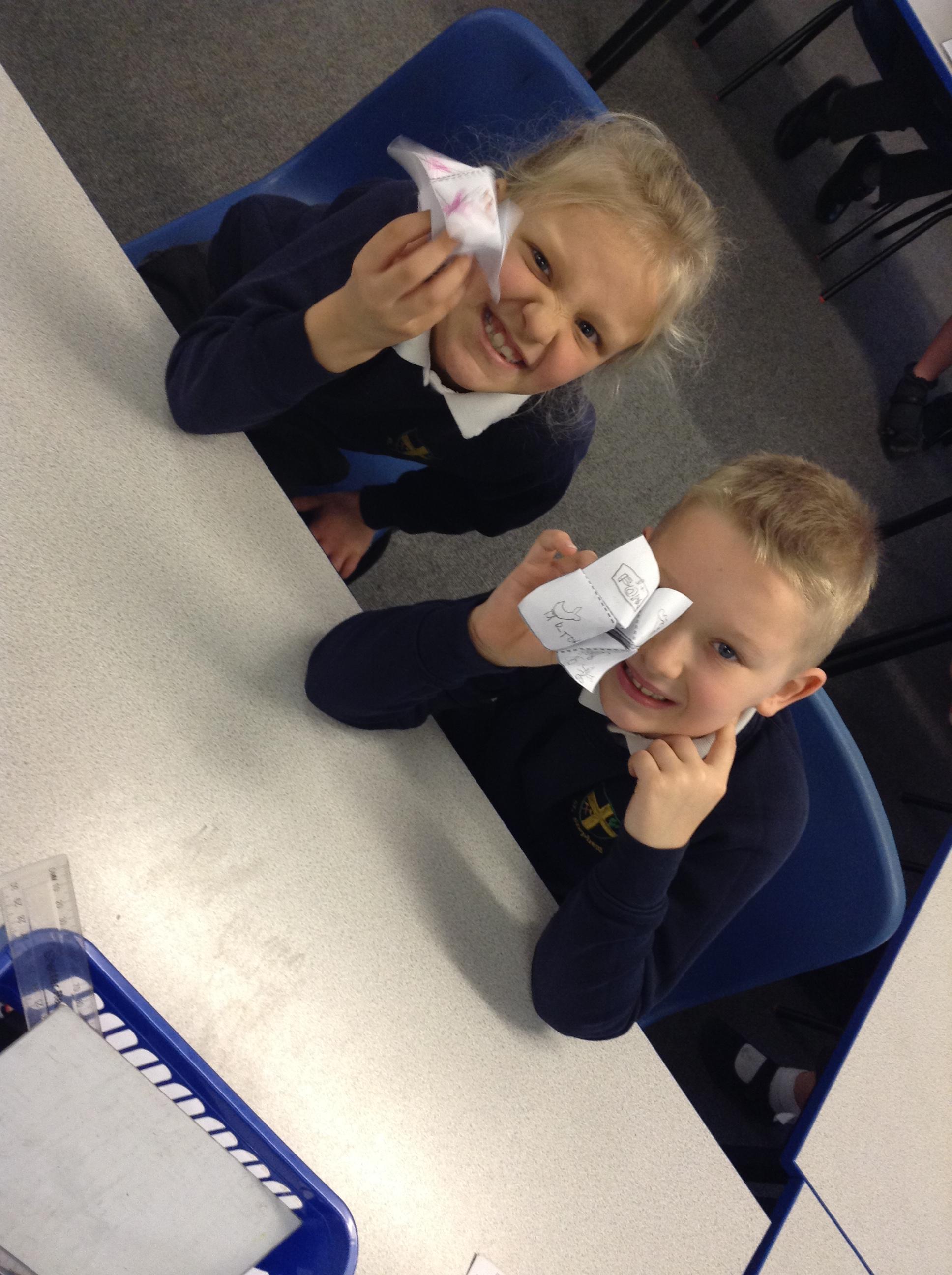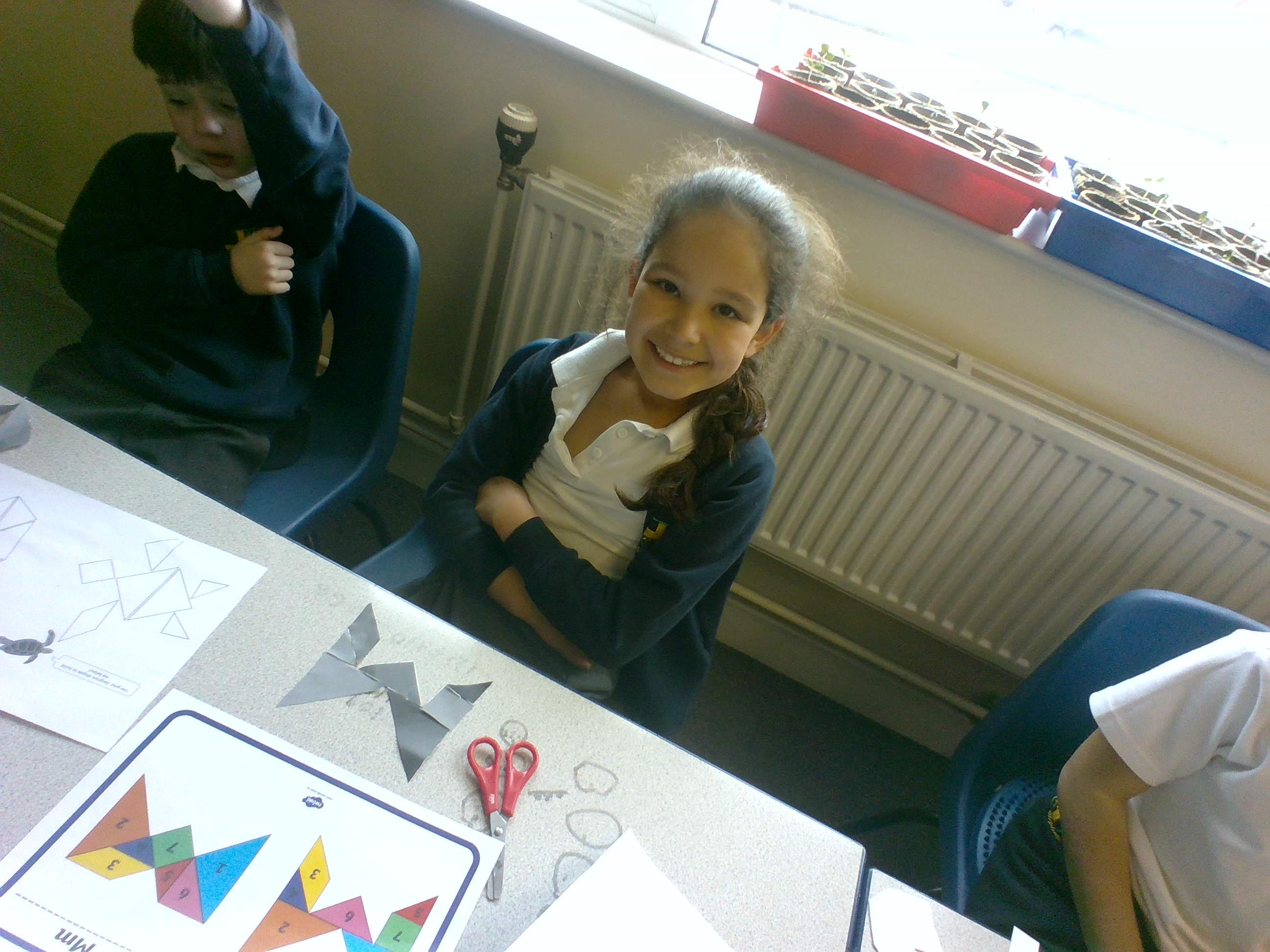 We were looking at different ways in which they teach maths in Japan. Throughout the day, we looked at 3 different activities. The first one was sudoku, where we had to fill in the missing numbers. This was fun because it was challenging and a bit like a game. It didn't matter how many times we went wrong, we just kept going back and trying again to it right. After this, we did some tangrams, where we were given 7 shapes and we had to create different things, such as letters and a turtle! We really thought this was fun because there were so many different ways we could put them to make different shapes and objects. We could have done this all day and still would have had things to do. Finally, we looked at origami, where as a class, we followed the steps to create a fish! This was the most challenging as it was hard to ensure we folded it all correctly.