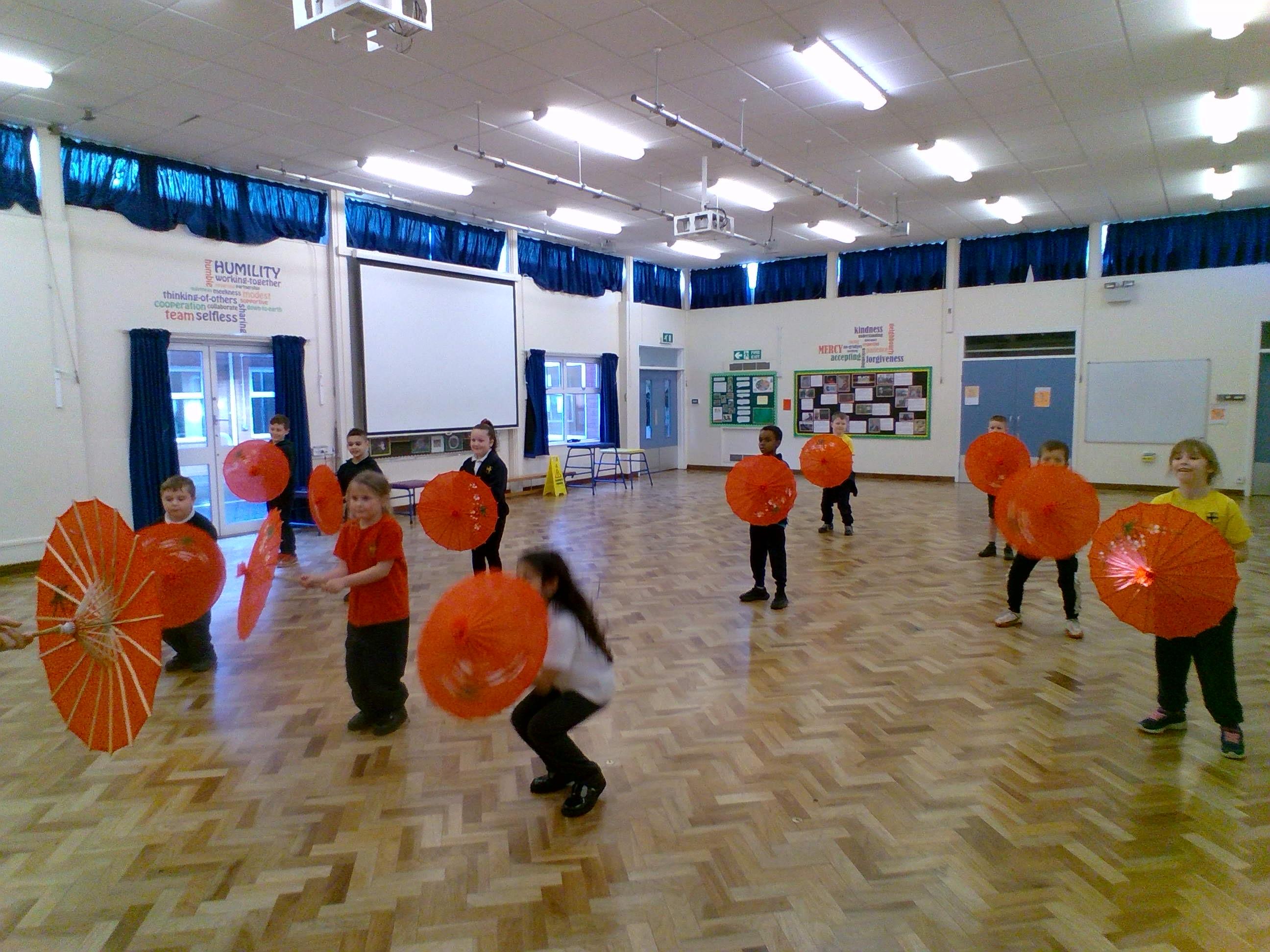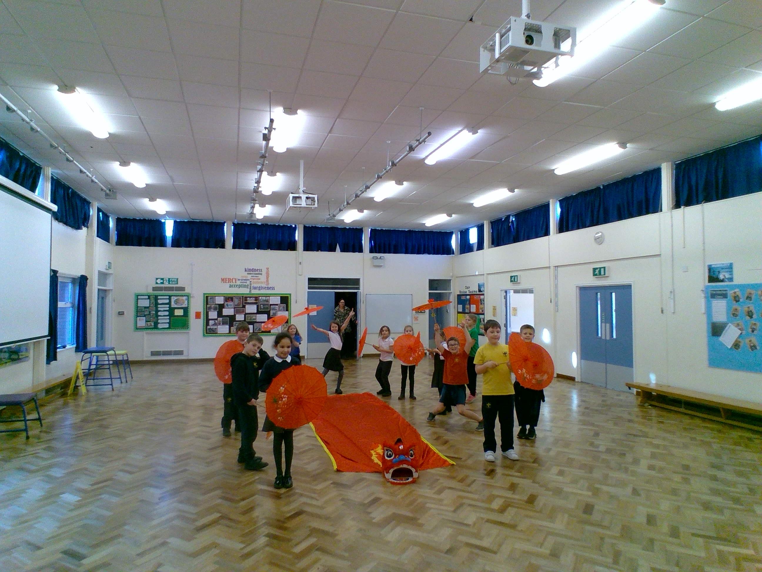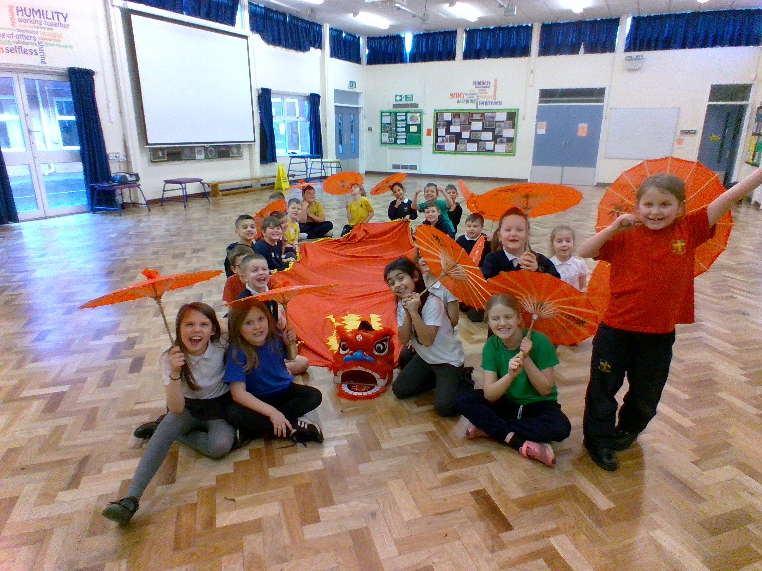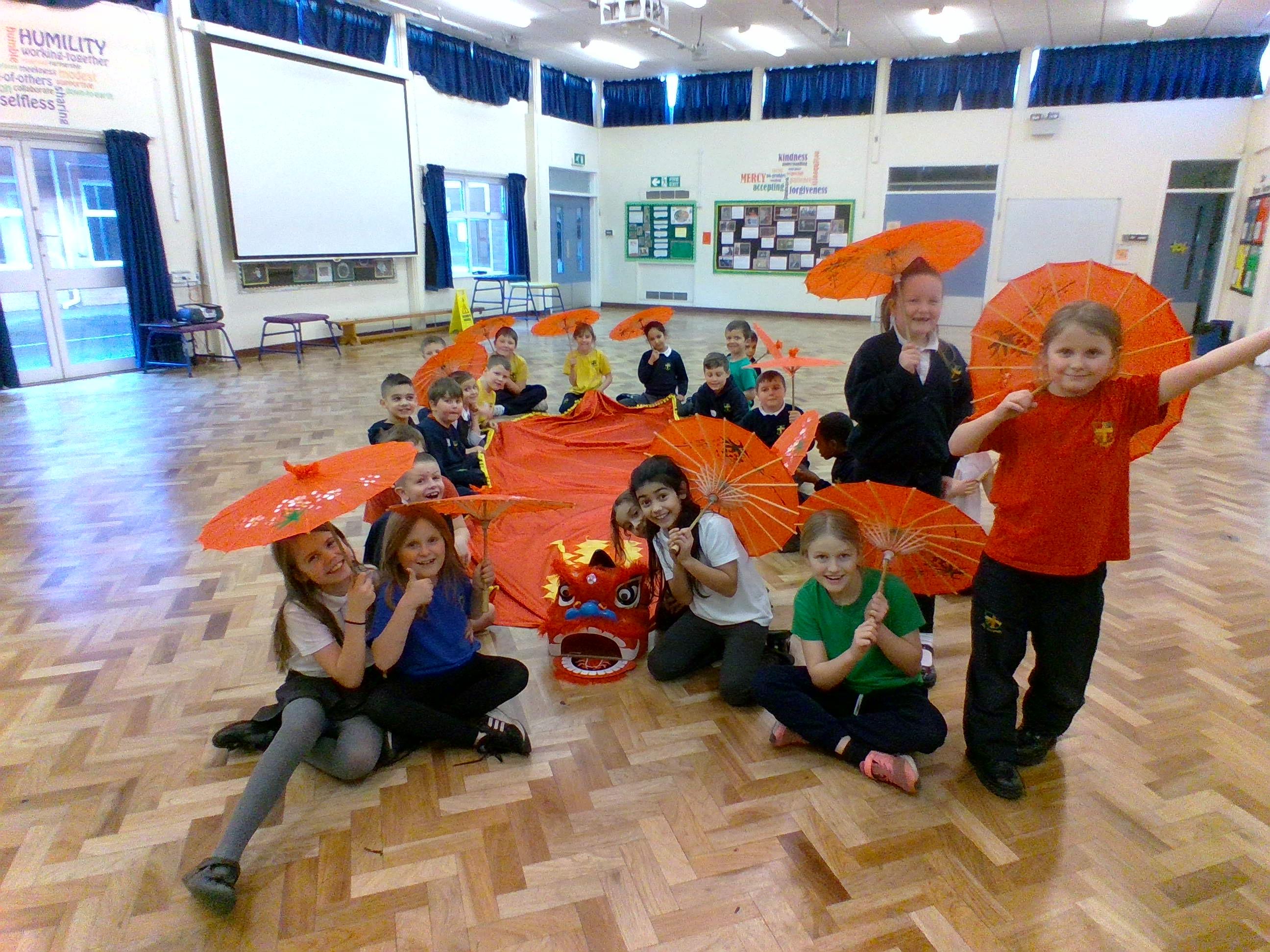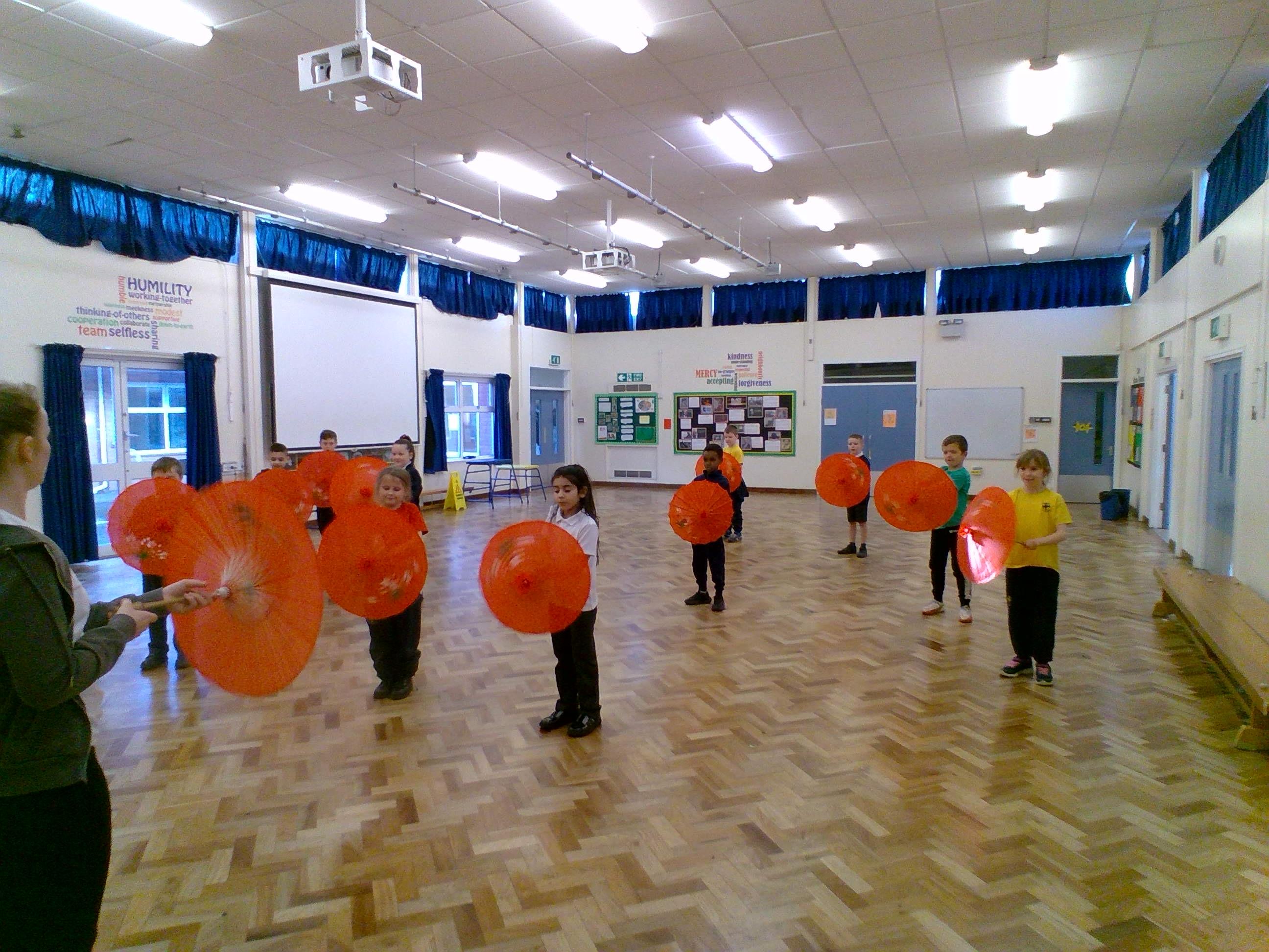 Today we had a fantastic time taking part in a Chinese New Year dance workshop. We learnt how to use parasols and even danced with a dragon! We had lots of fun and have enjoyed our time learning all about Chinese New Year!
