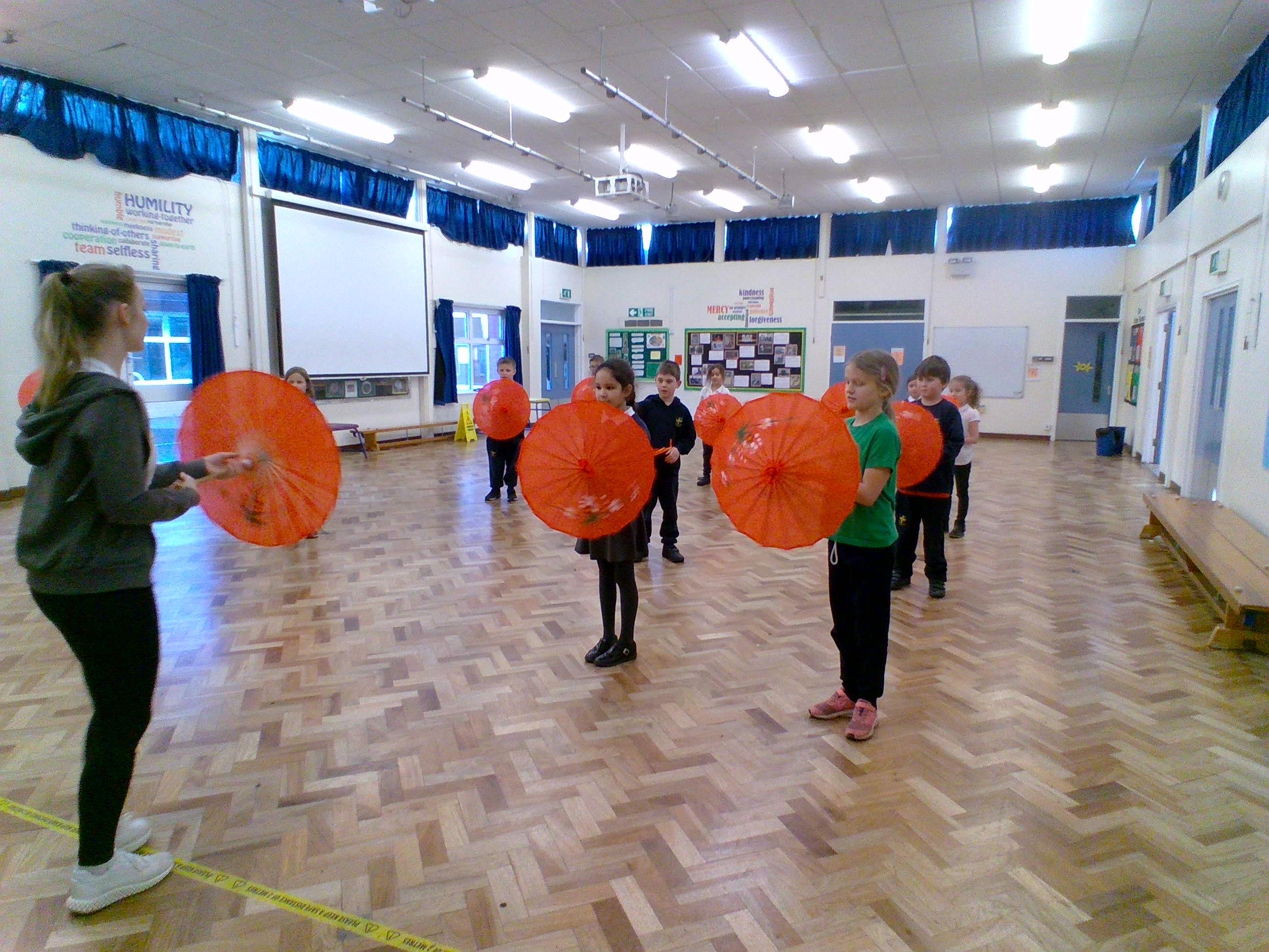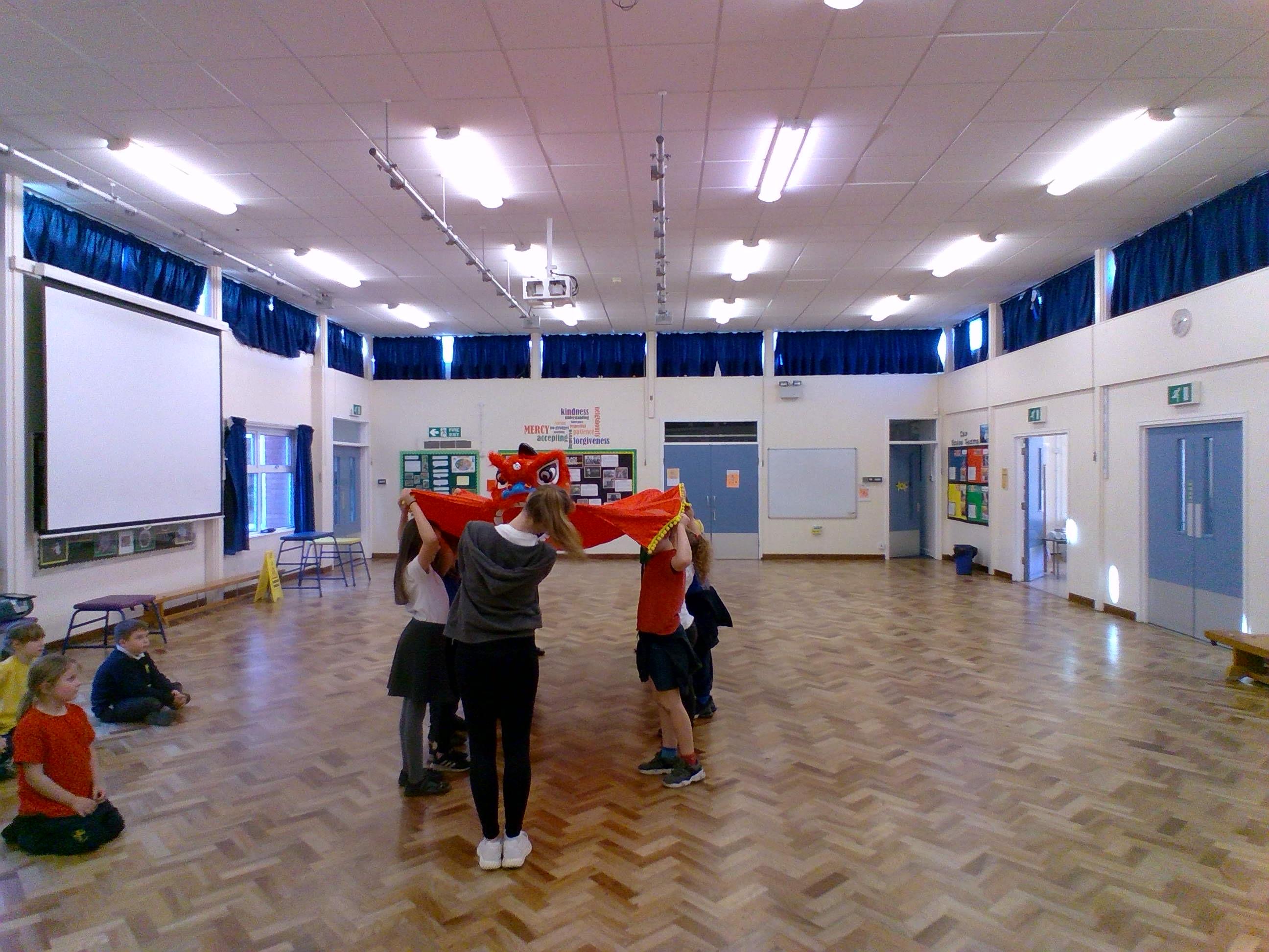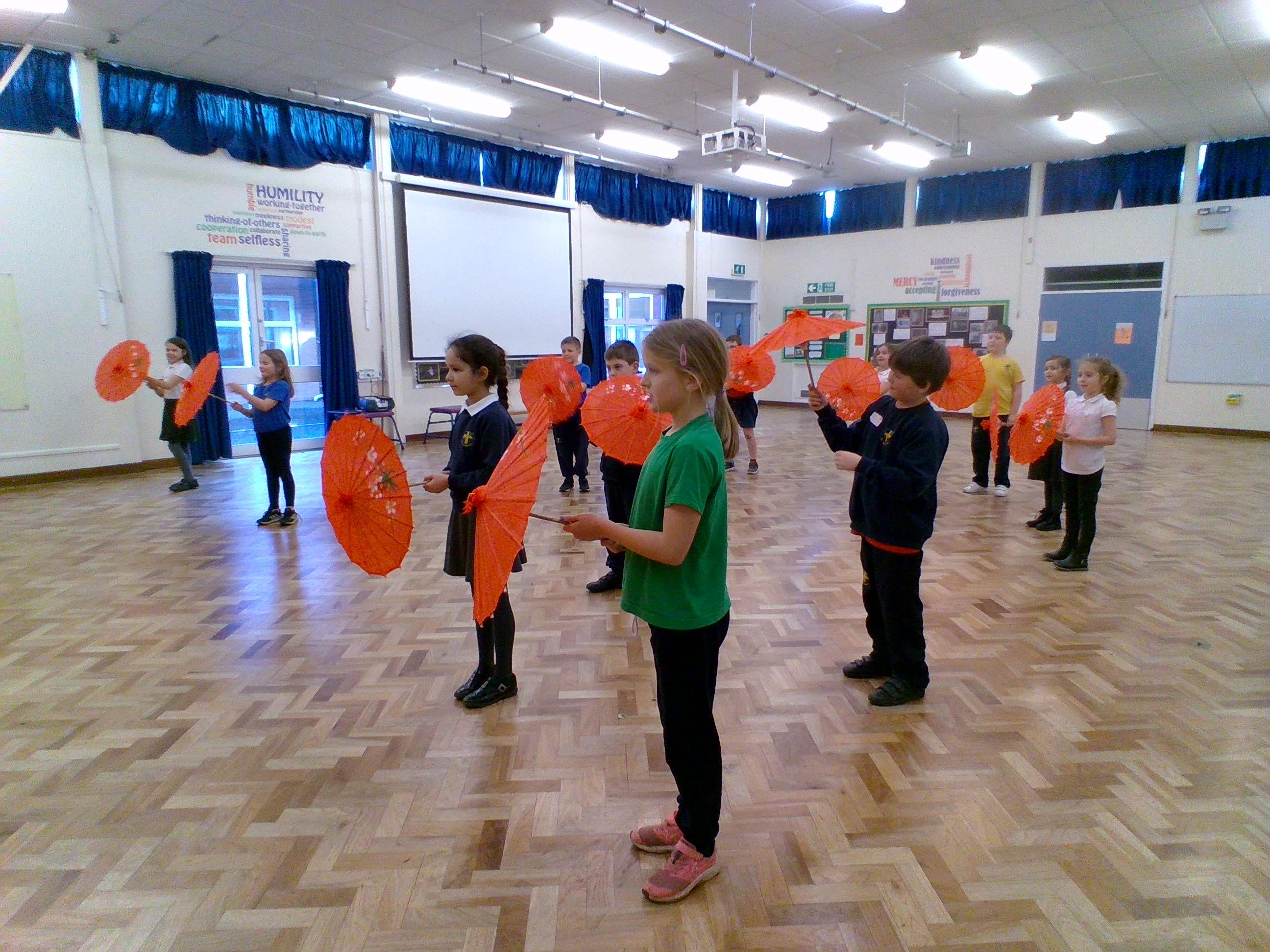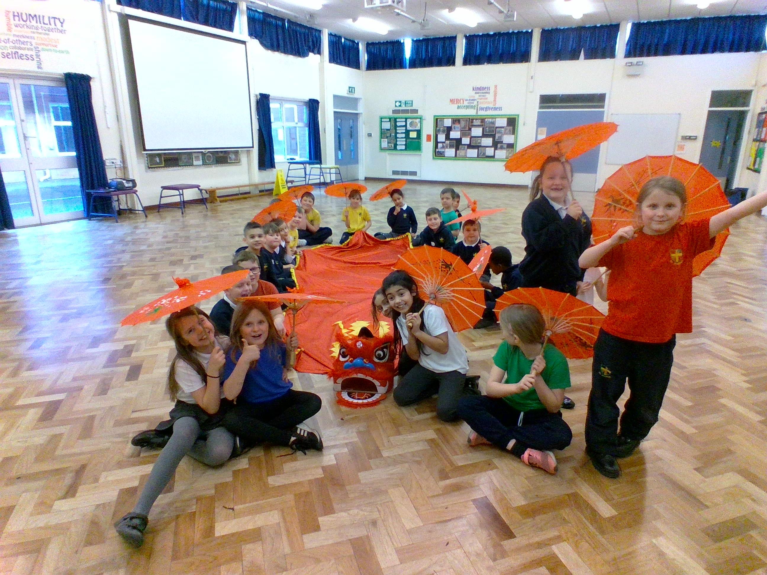 Today we had a fantastic time taking part in a Chinese New Year dance workshop. We learnt how to use parasols and even danced with a dragon! We had lots of fun and have enjoyed our time learning all about Chinese New Year!