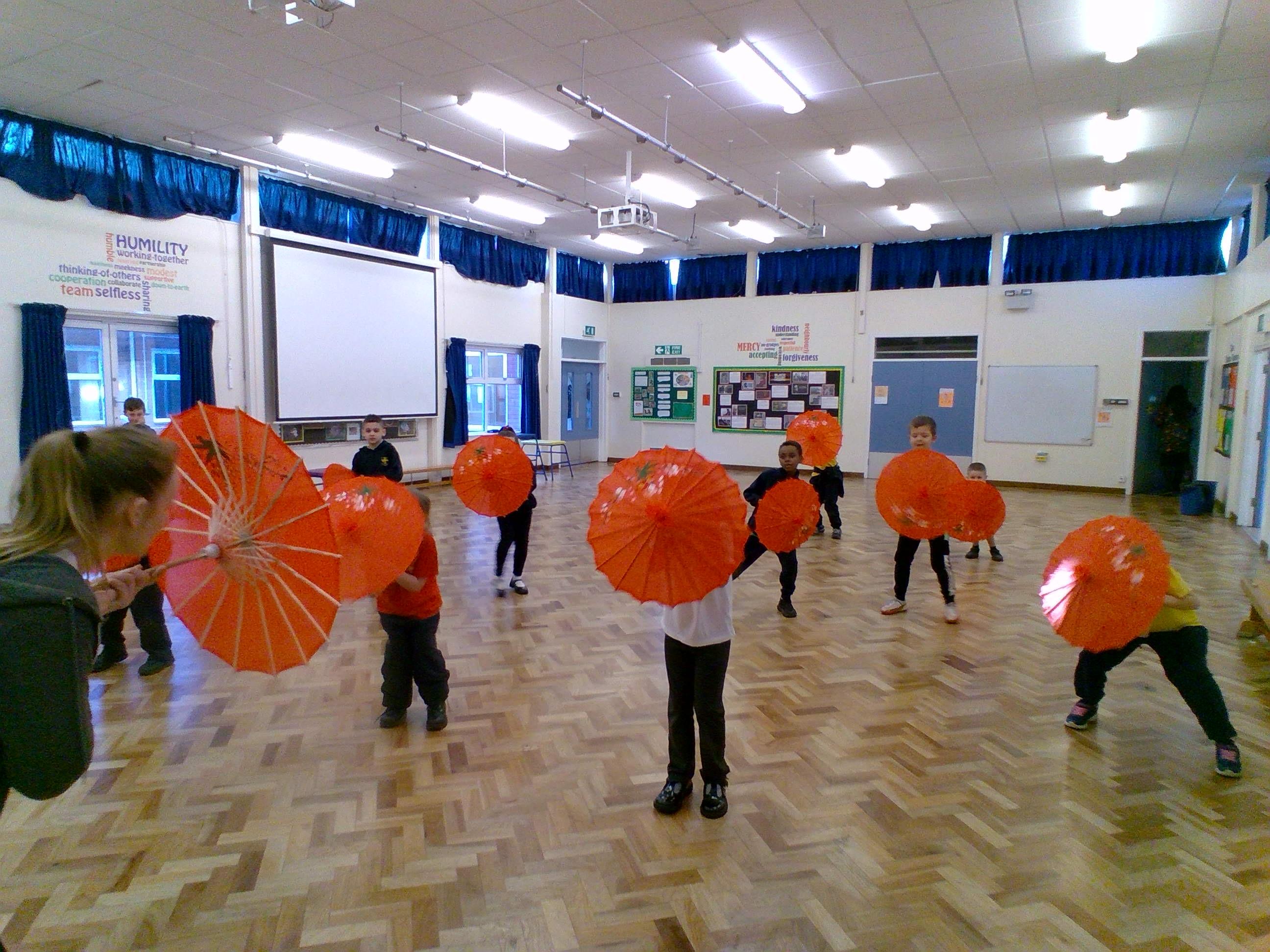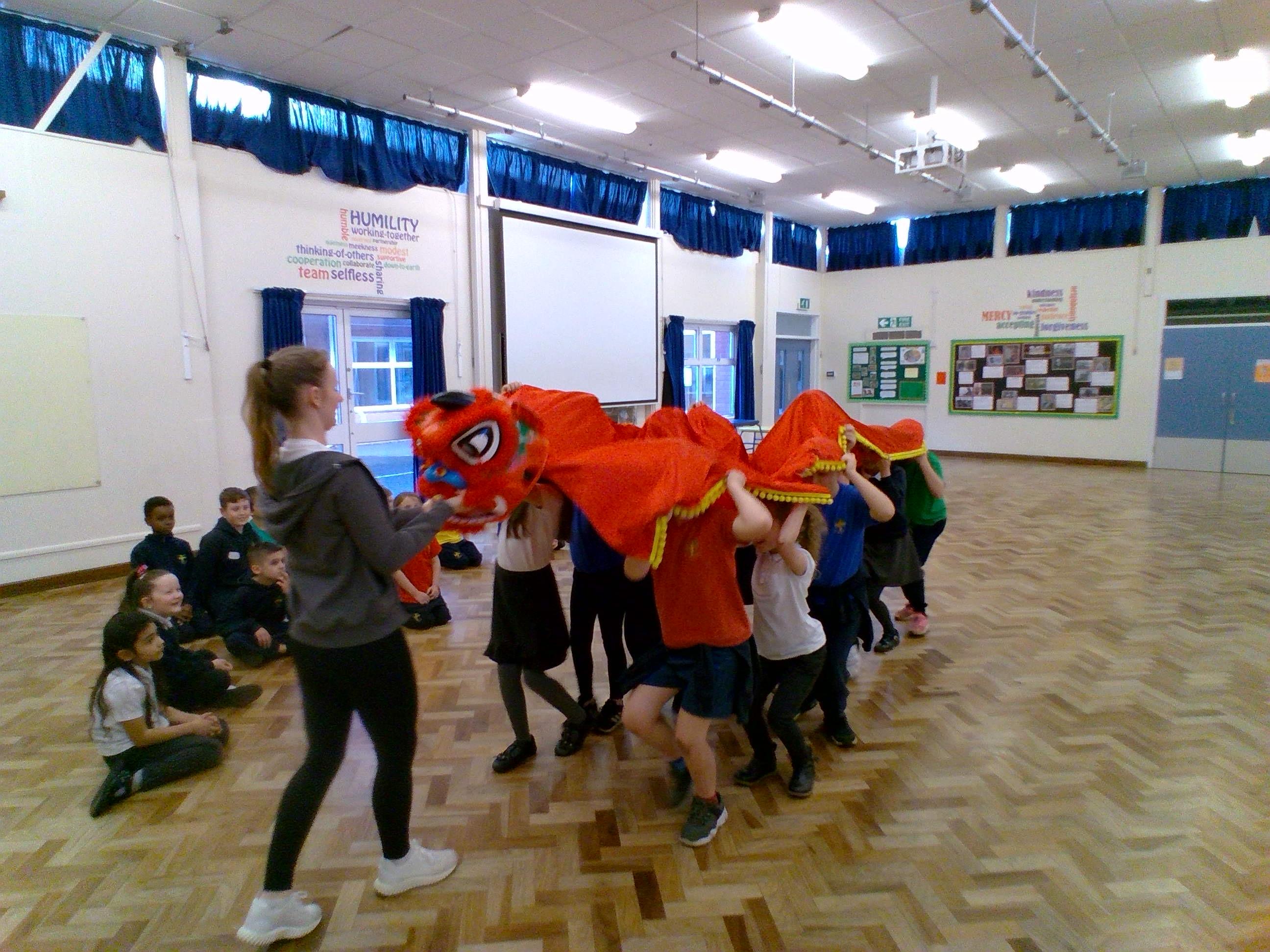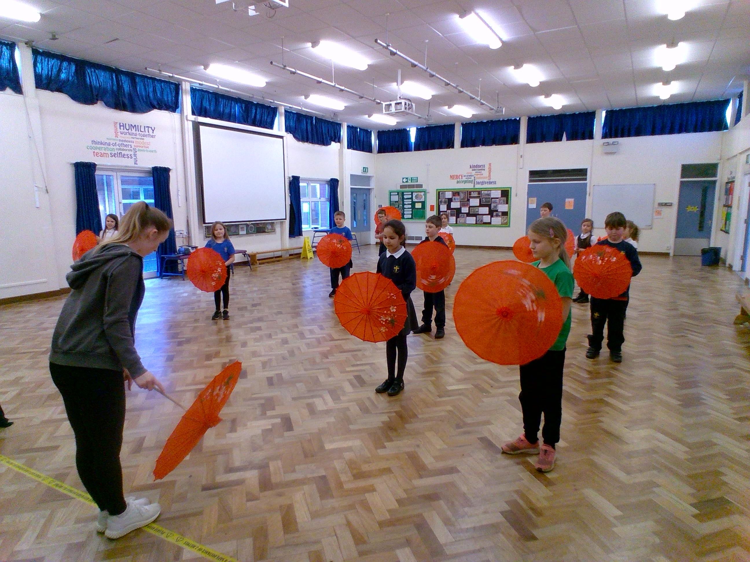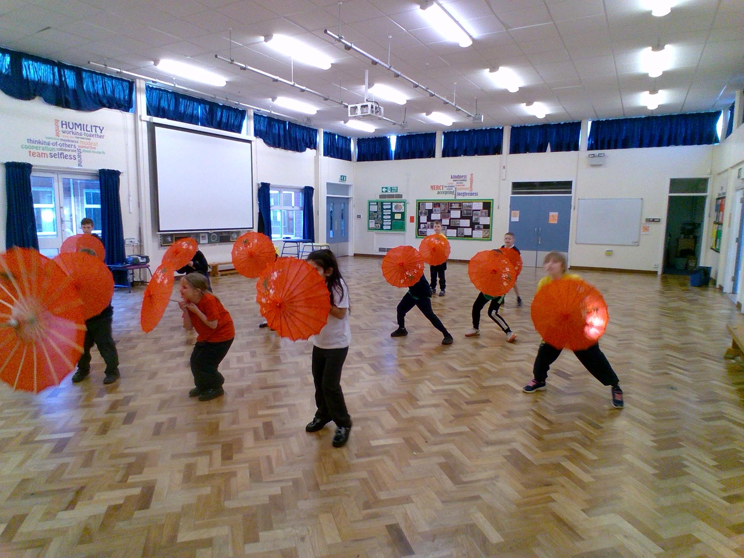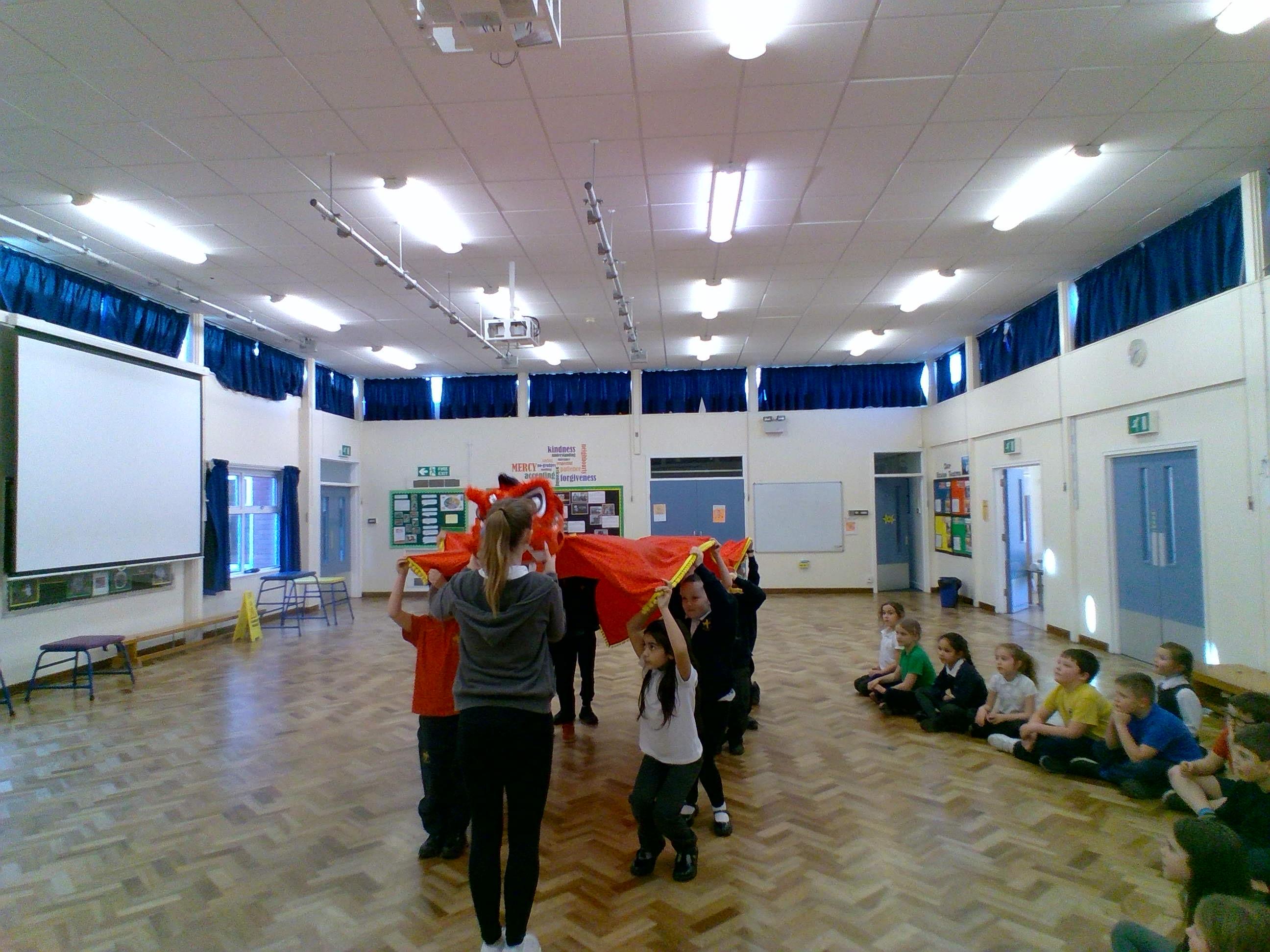 Today we had a fantastic time taking part in a Chinese New Year dance workshop. We learnt how to use parasols and even danced with a dragon! We had lots of fun and have enjoyed our time learning all about Chinese New Year!