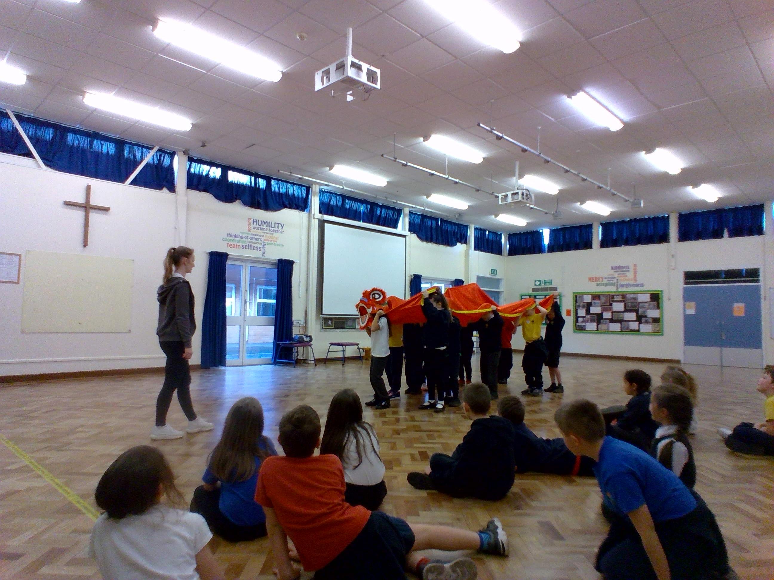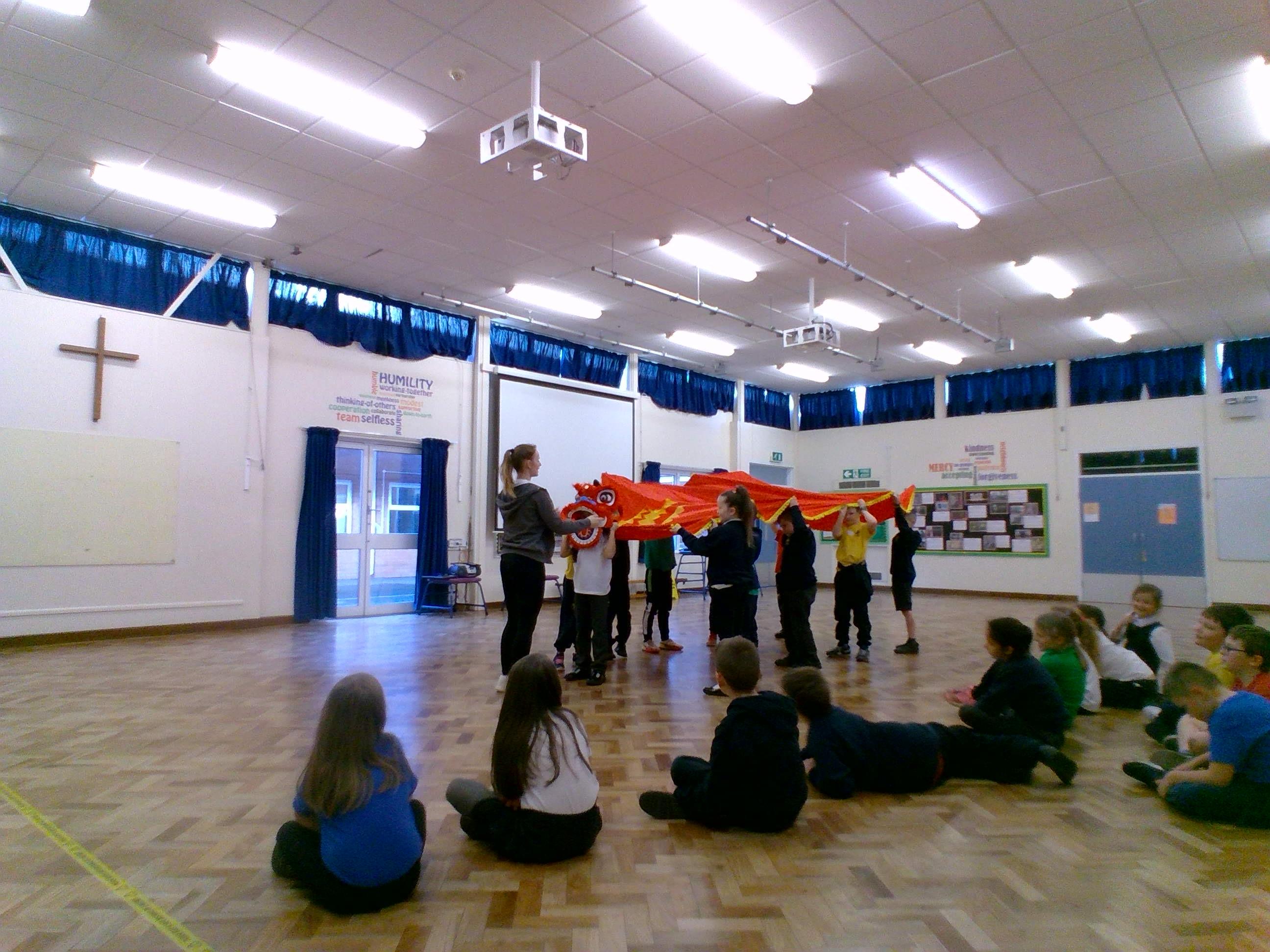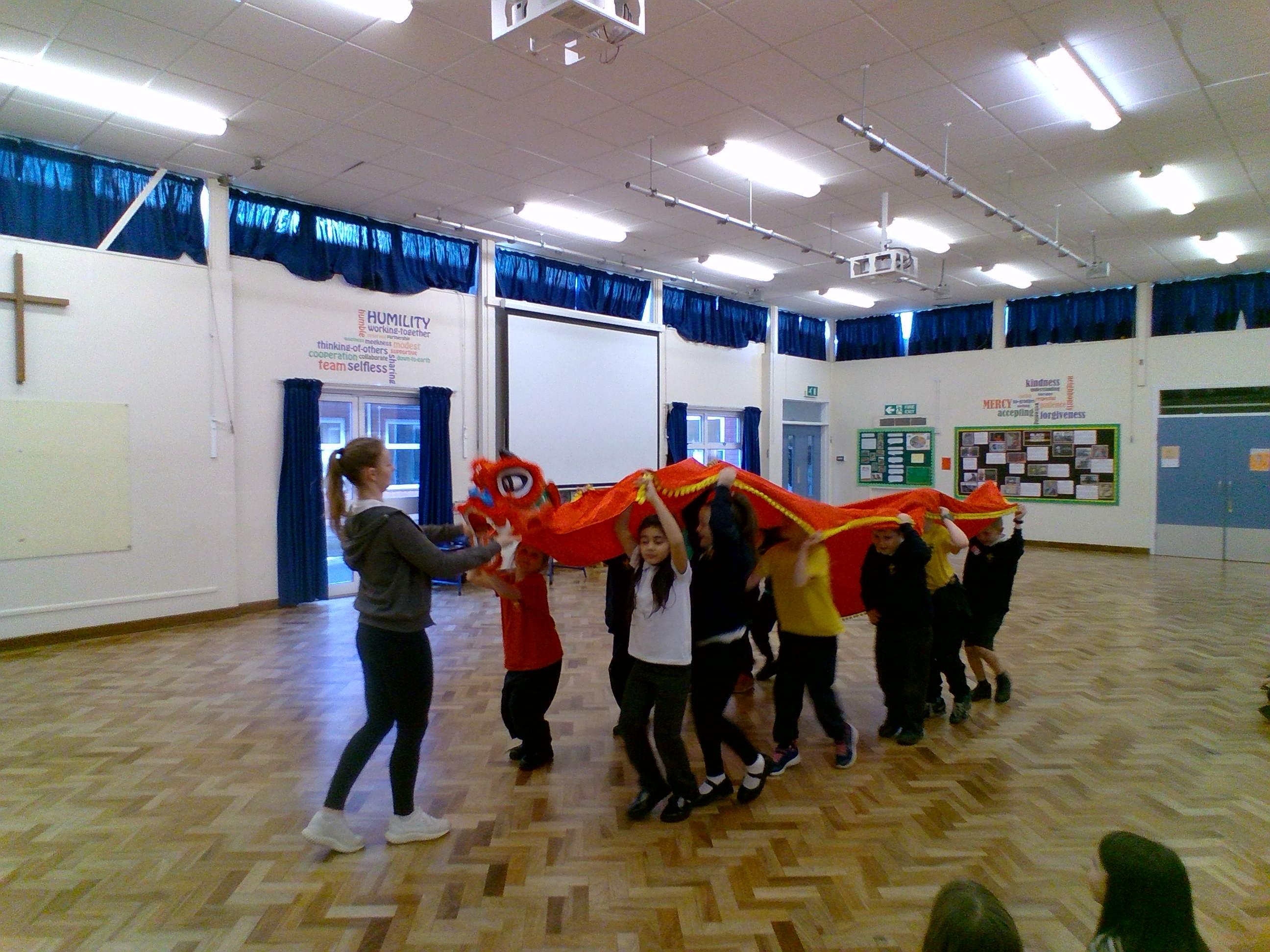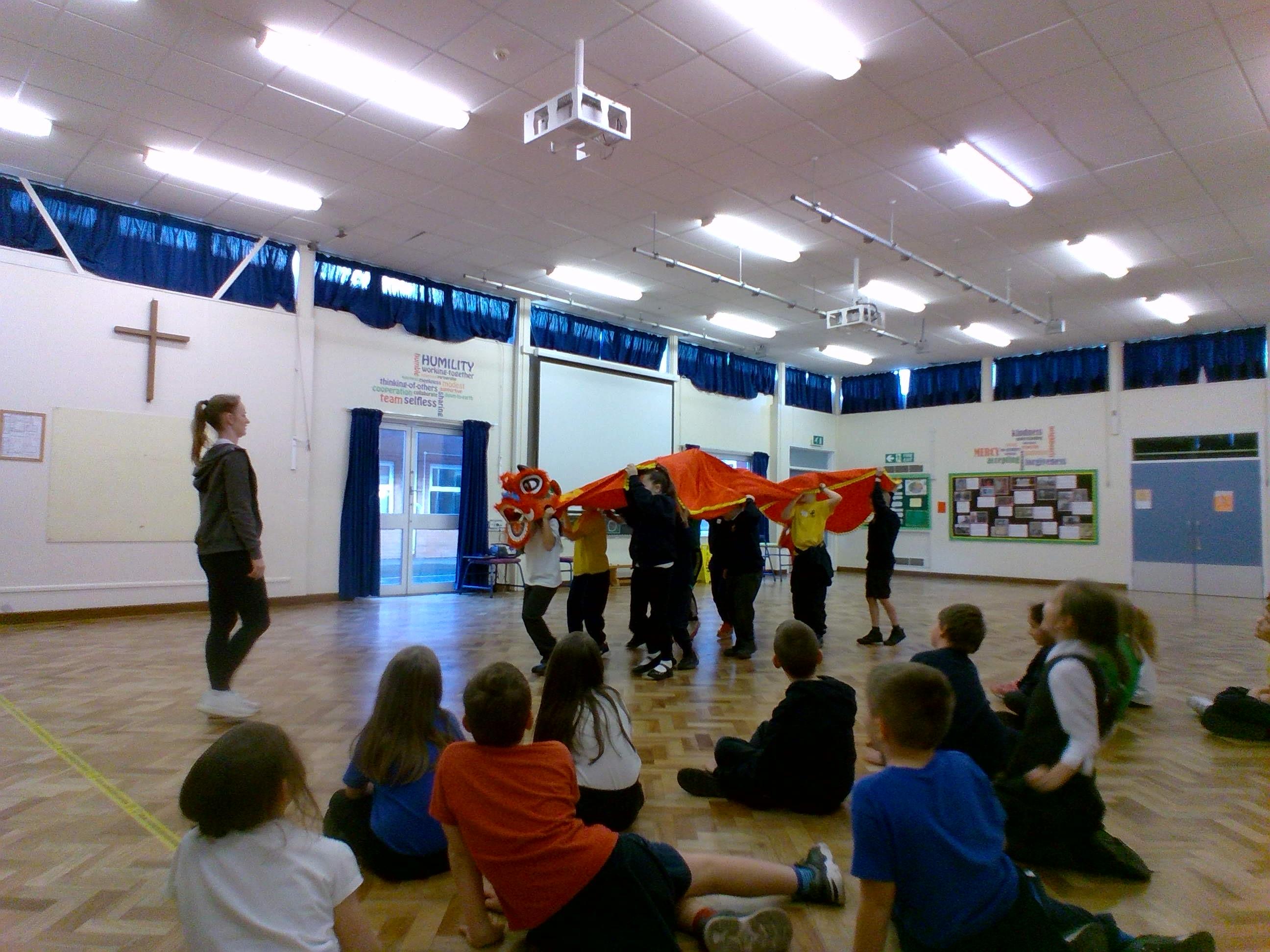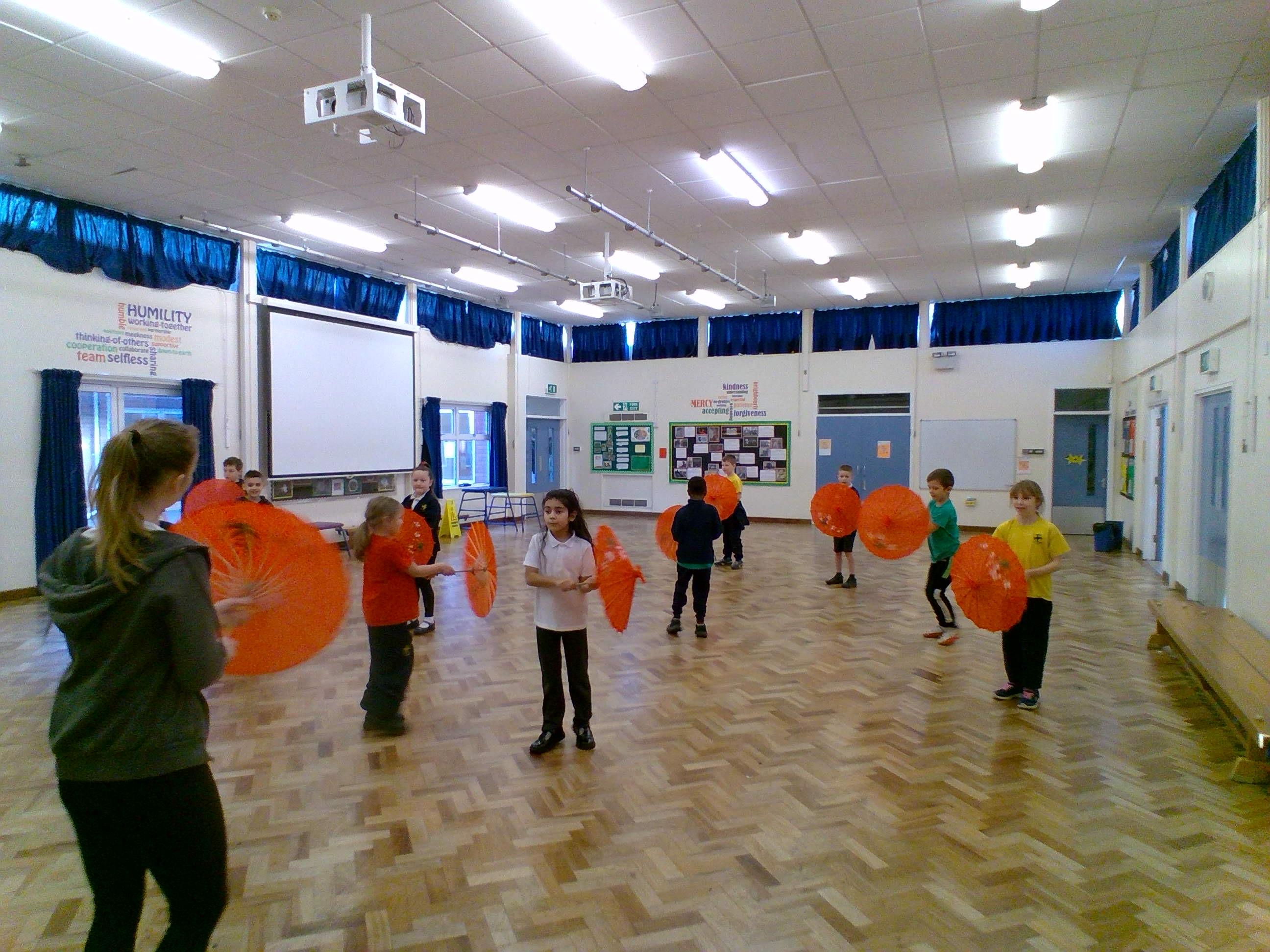 Today we had a fantastic time taking part in a Chinese New Year dance workshop. We learnt how to use parasols and even danced with a dragon! We had lots of fun and have enjoyed our time learning all about Chinese New Year!