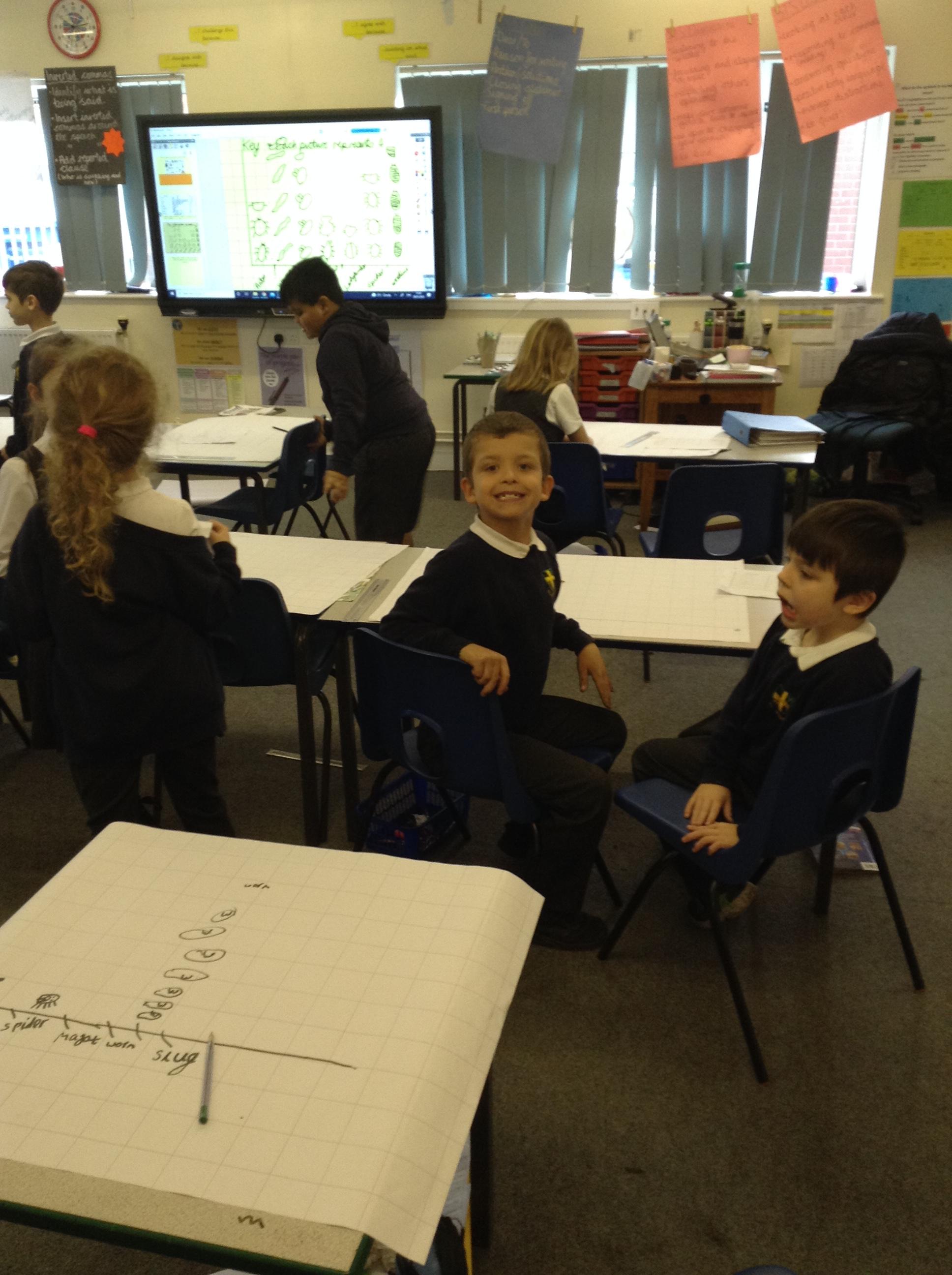 When we went back to class we focused on data collection. We explored what a pictogram was and went out a bug hunt outside. We used the data we collected to create our own pictograms in groups.