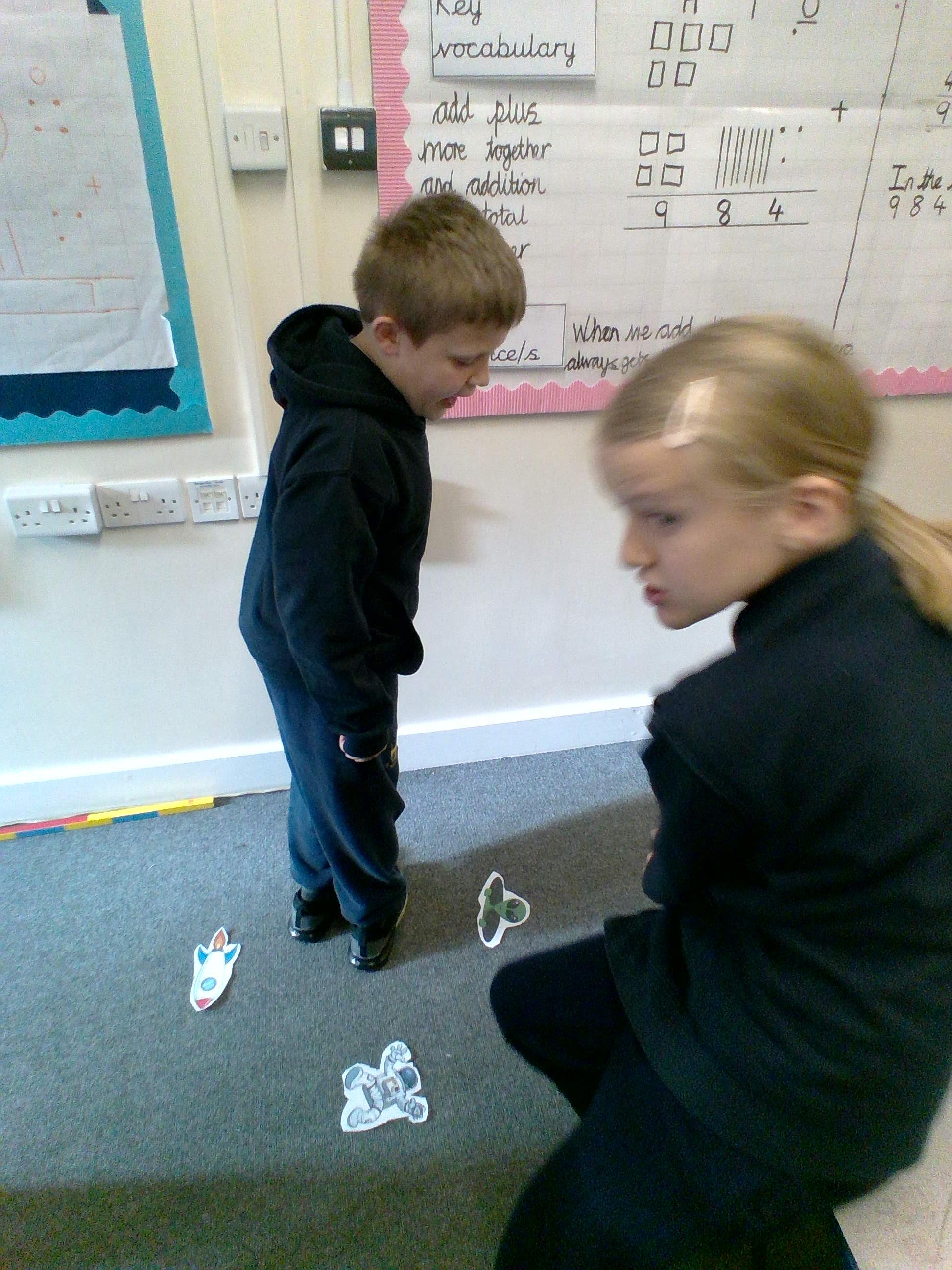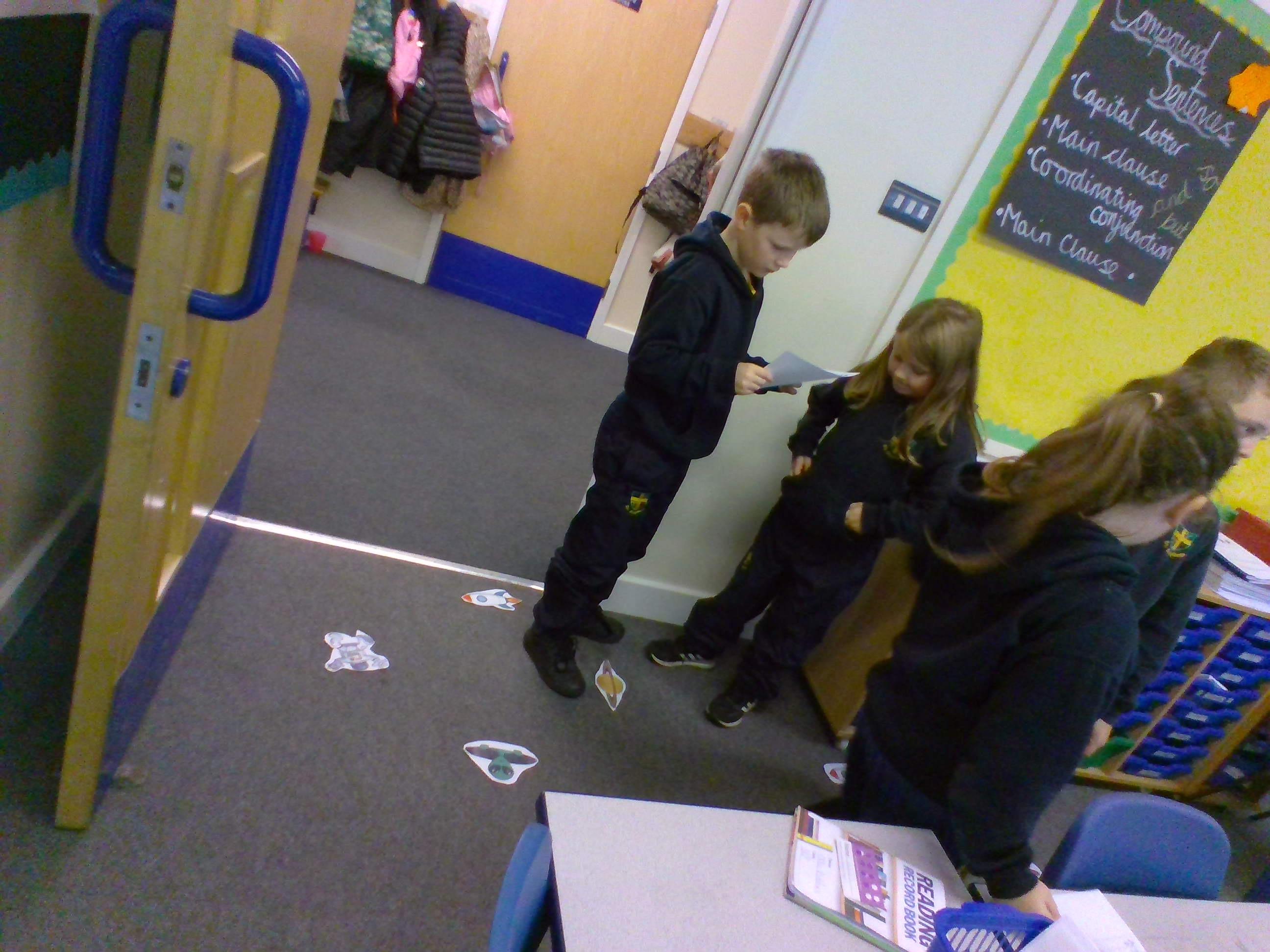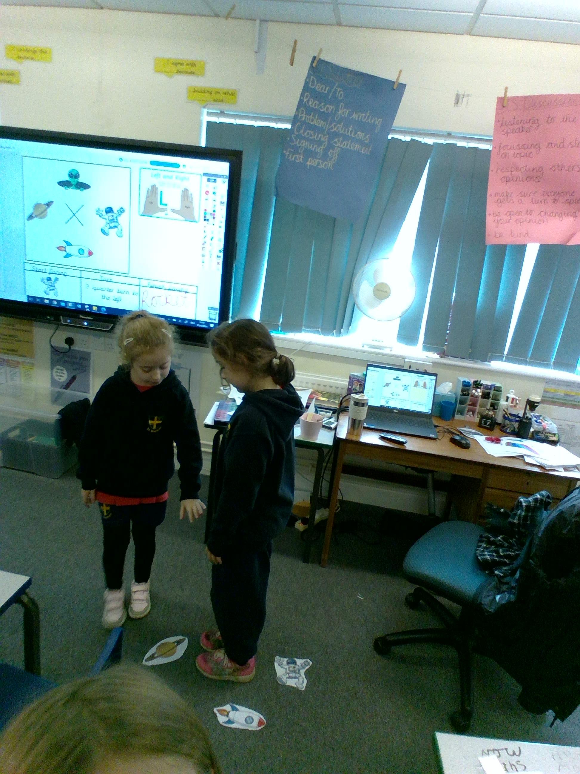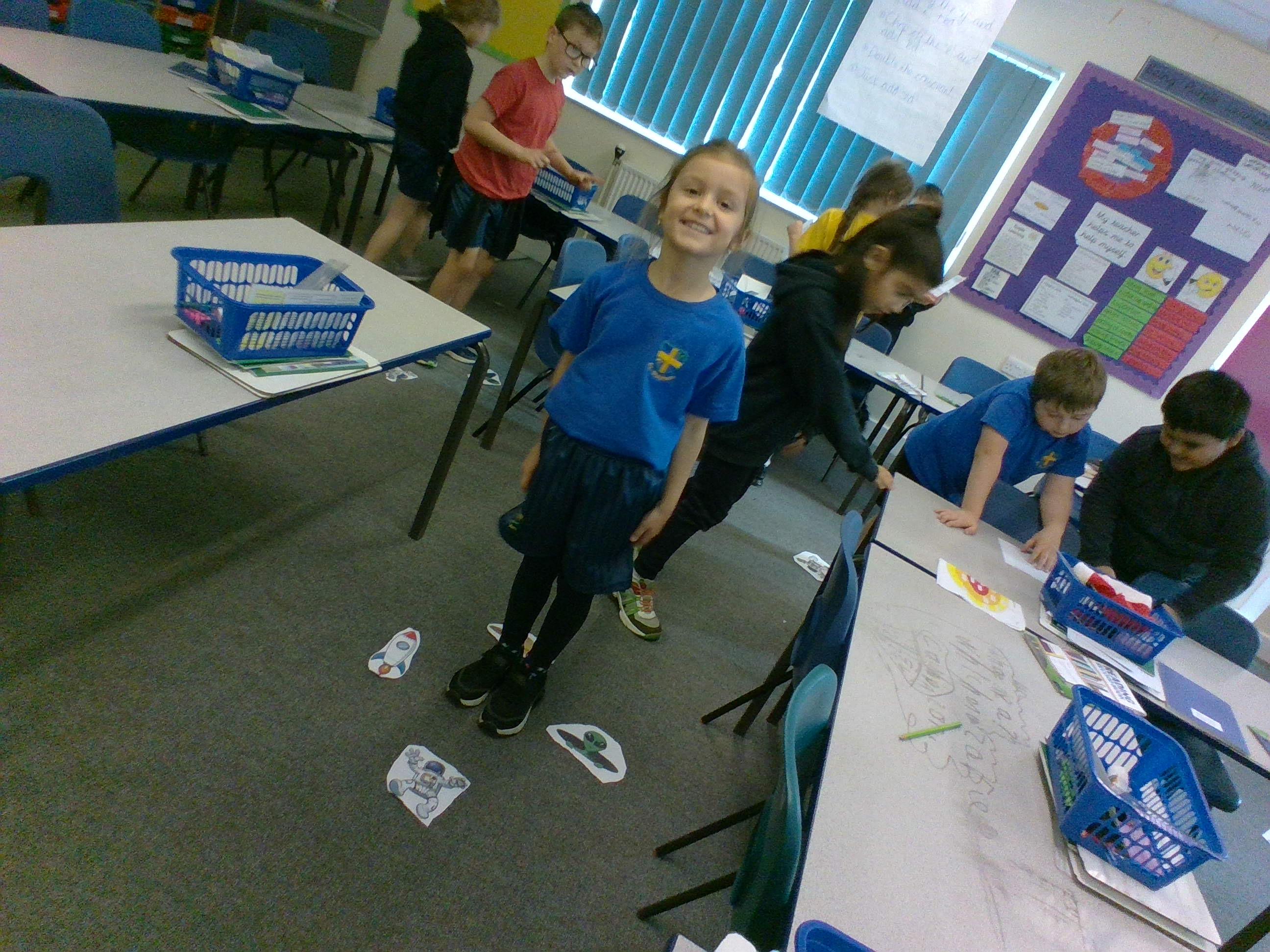 In Week 3, we had a maths day based around space and the solar system! We learnt about right angles and how we can use them to describe direction. We learnt there are 4 right angles turns within a whole turn and practised turning left and right using different amounts of right angle turns. We followed and created directions and then finally created our own space mazes. Can you safely pass through our space mazes?