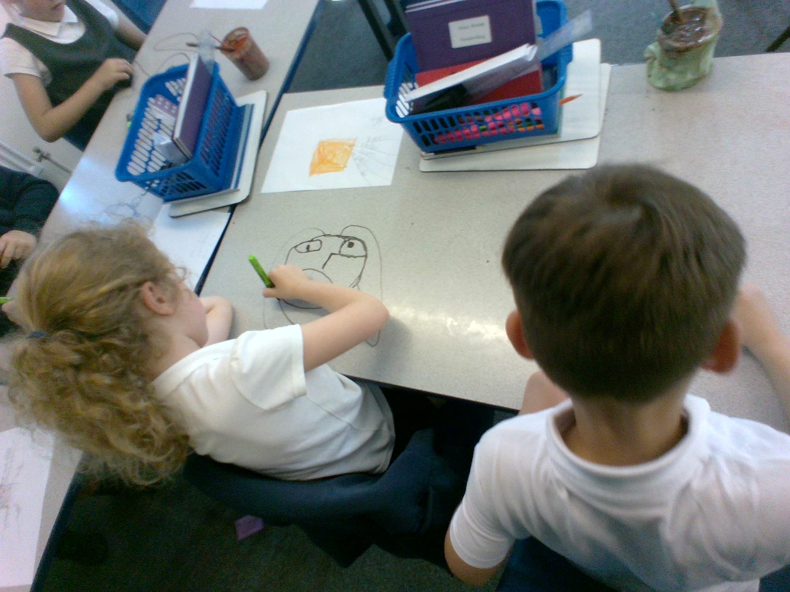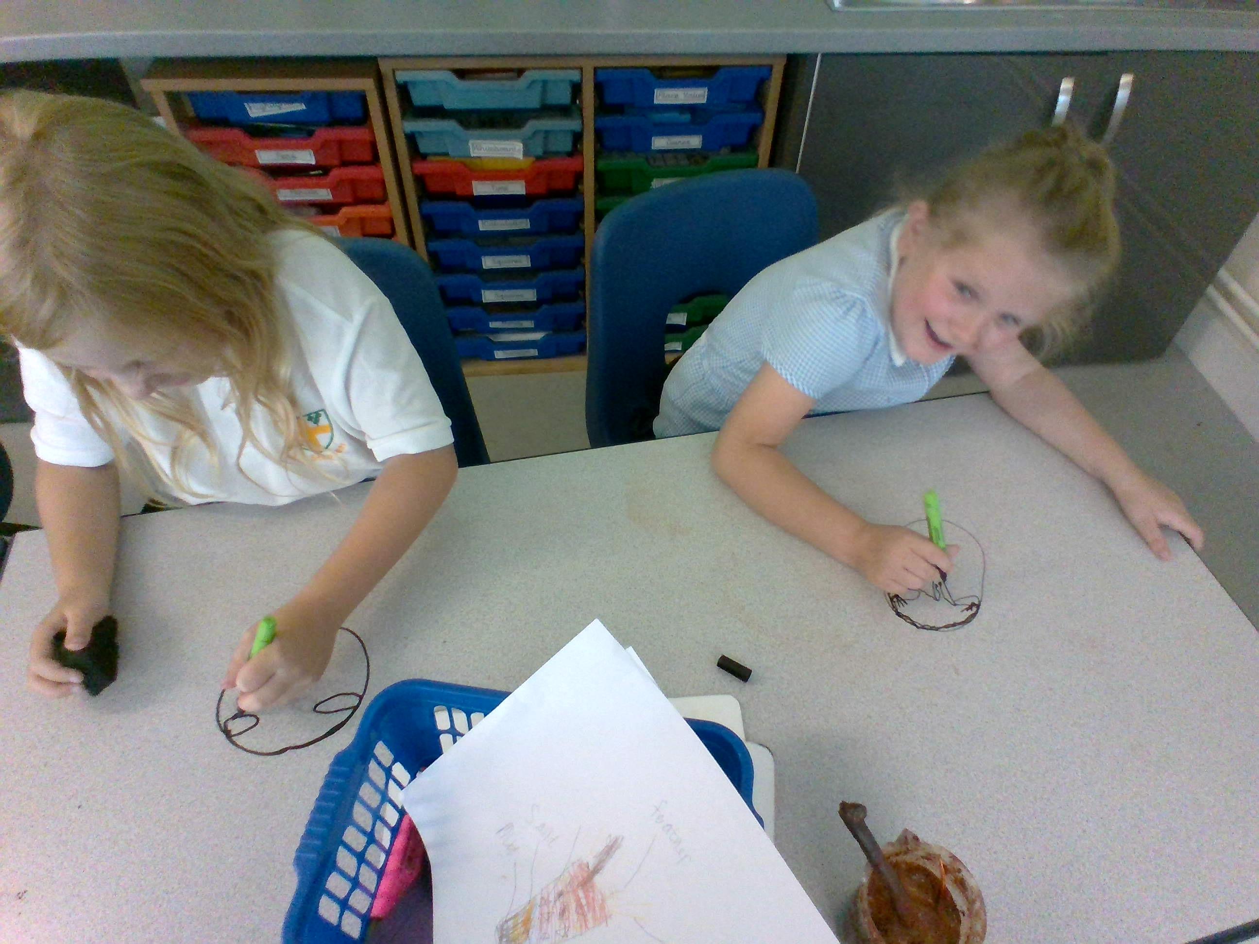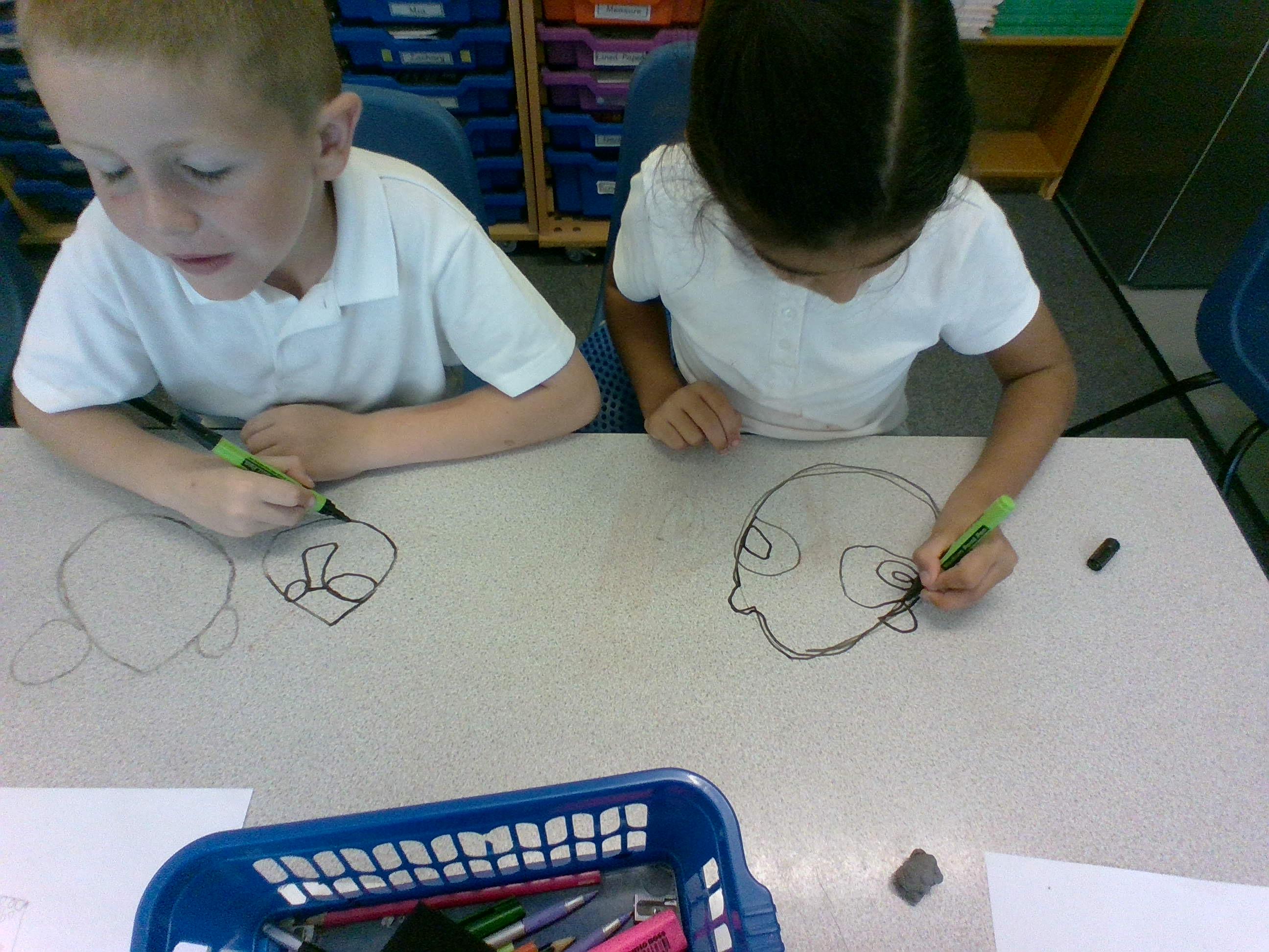 To start being artists this year, we each sketched our own self potraits. Before we did this, we had to draw a picture of ourselves with one continuous line. It was really hard to do this without lifting our pens off the table but we each gave it a shot and we were really happy with the results!