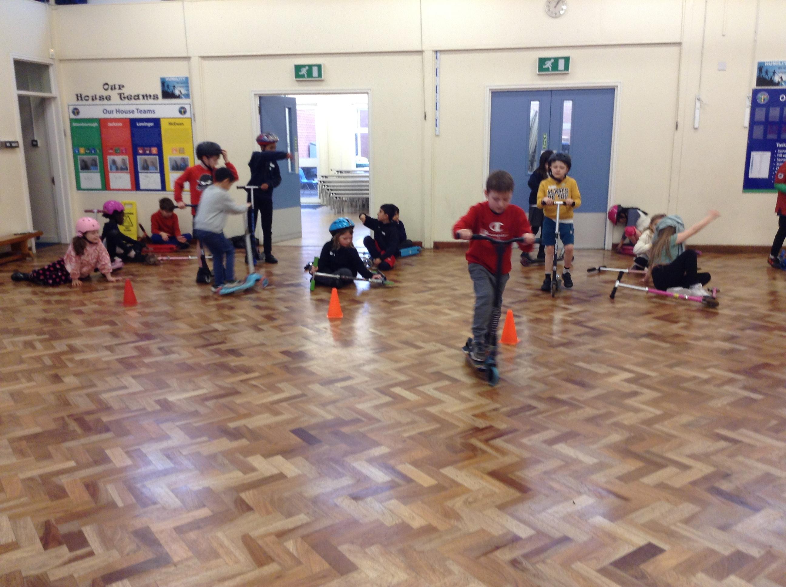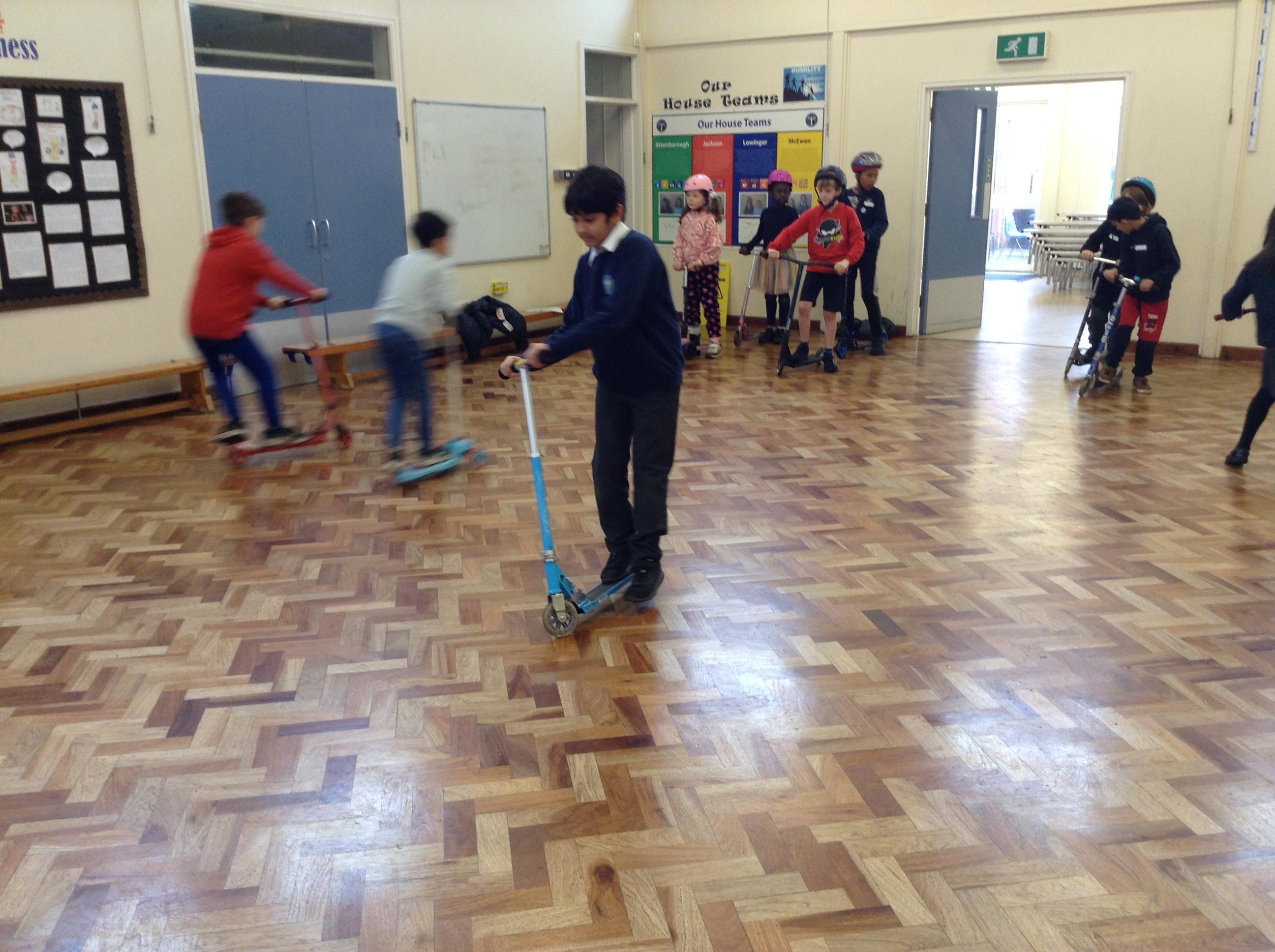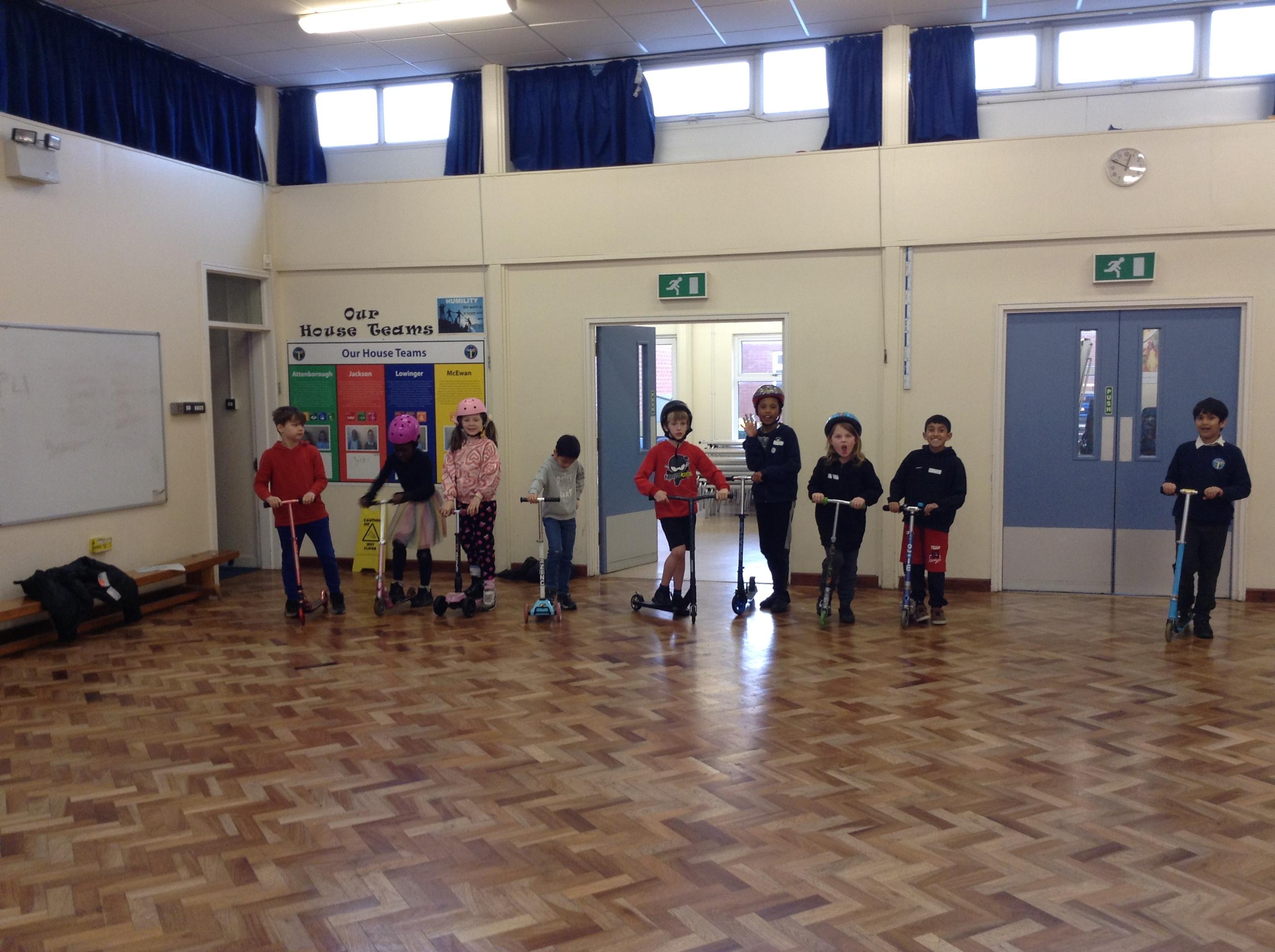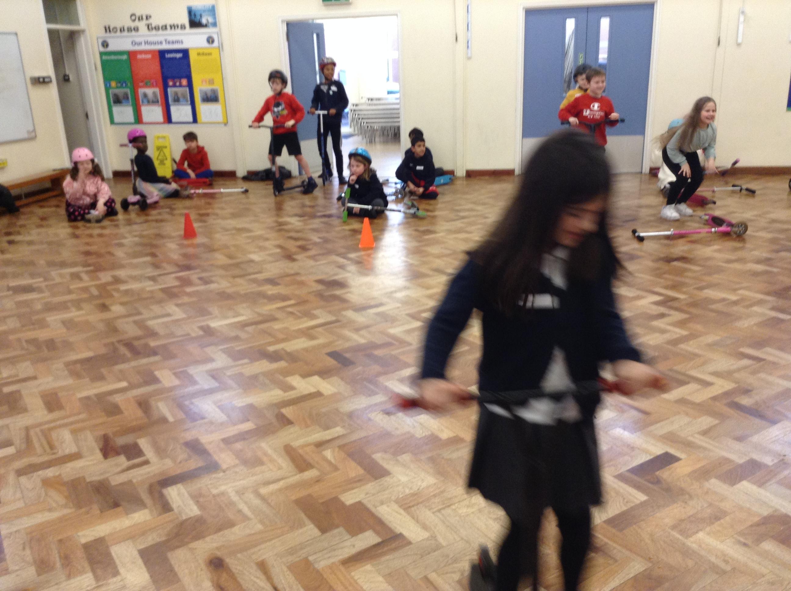 We ended the term with some scooter training on how to use our scooters safely. After a theory lesson where we watched a video on safety tips, we took part in a practical session where we used our brakes, practiced our turns and scooted whilst watching out for distractions and obstacles around us. It was great fun!