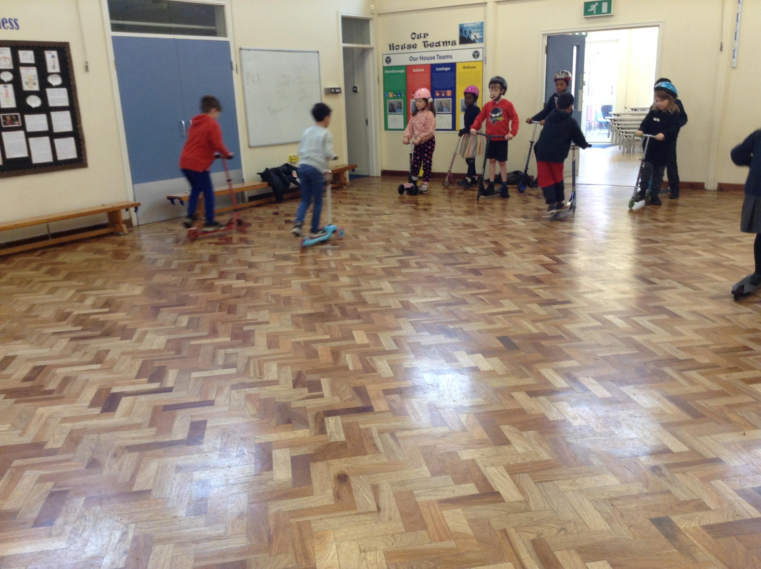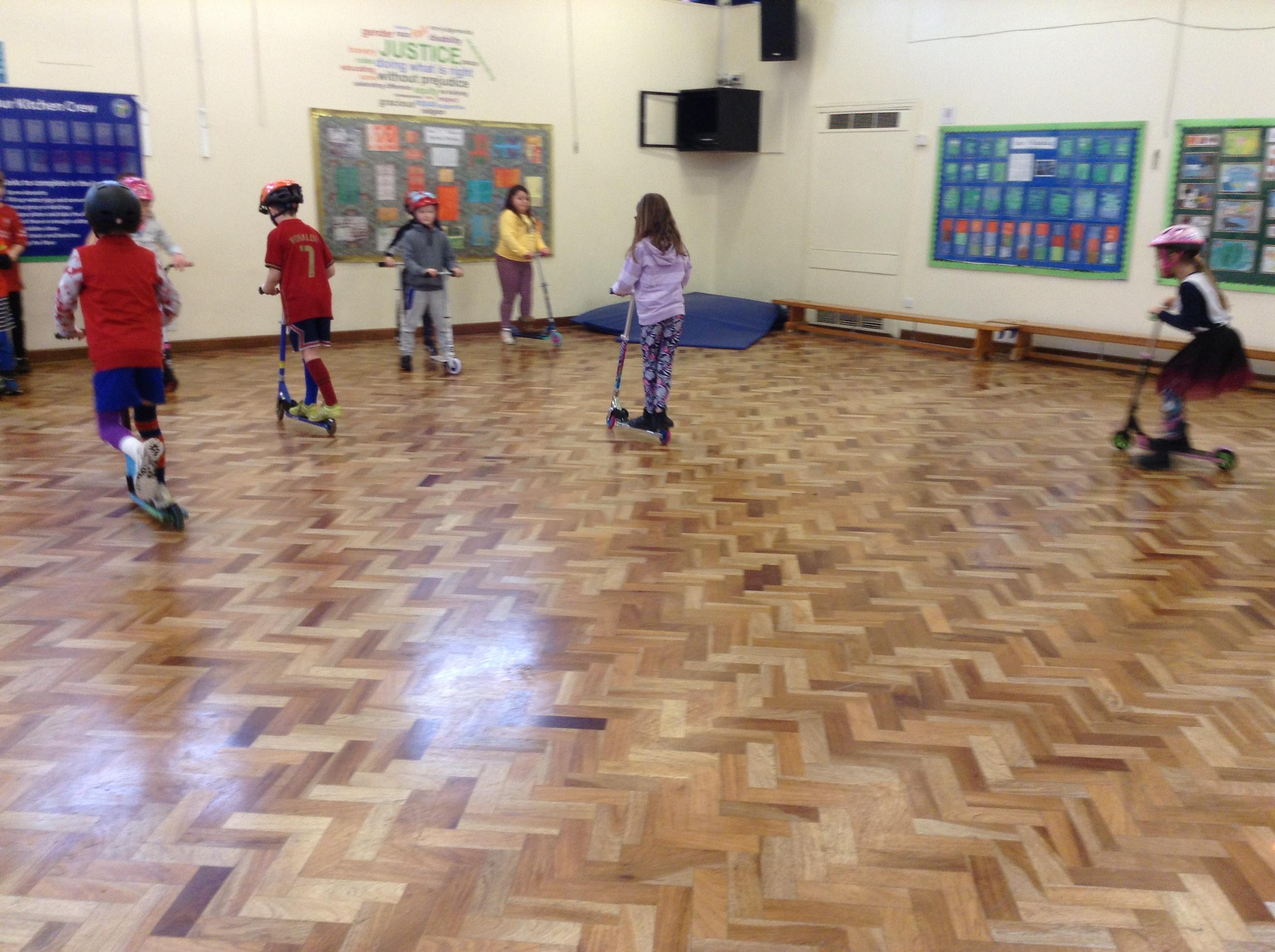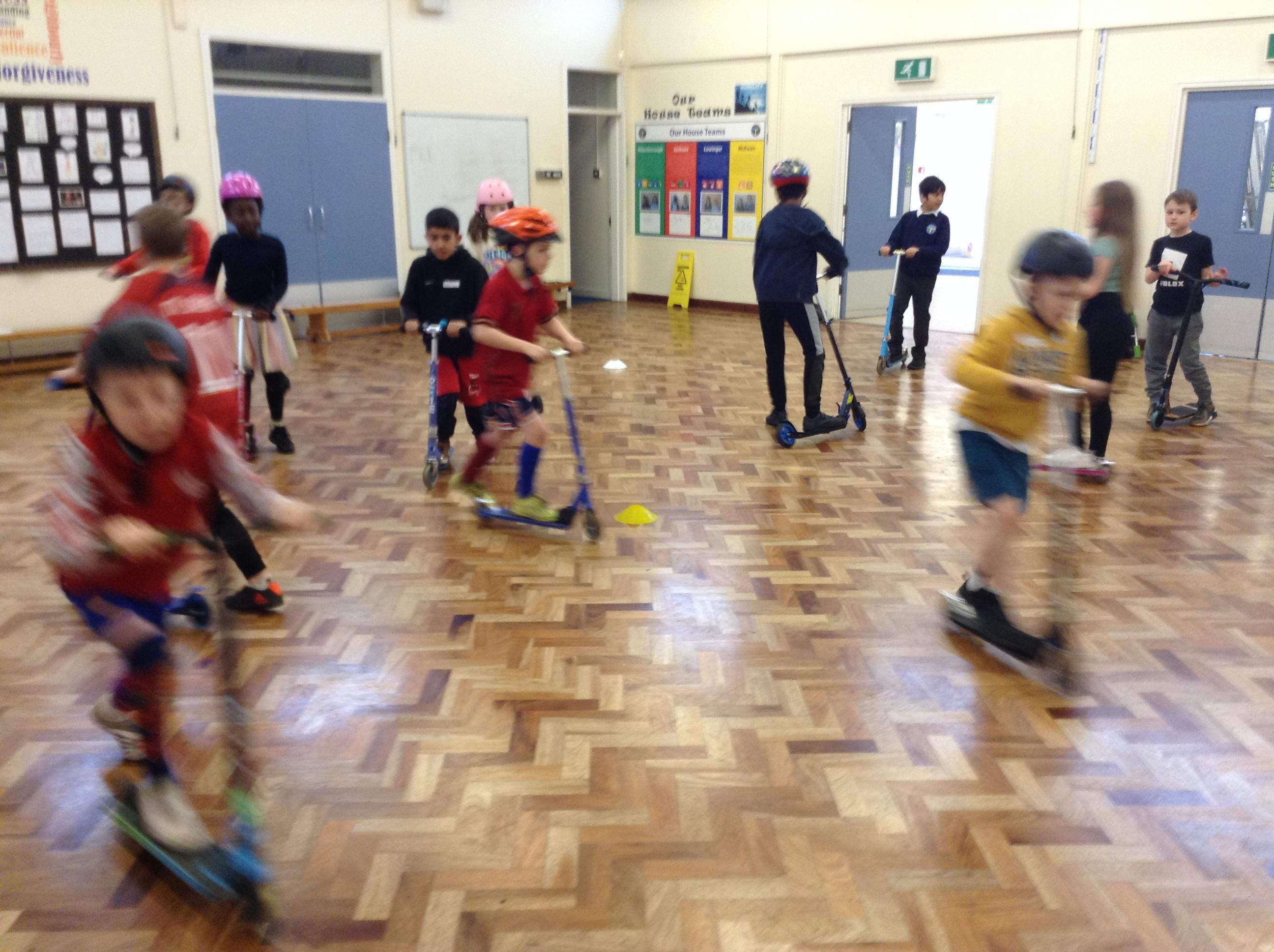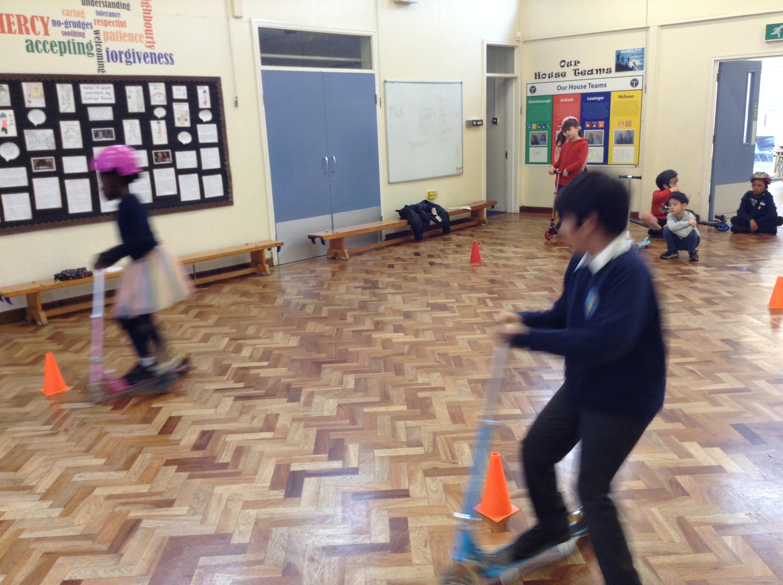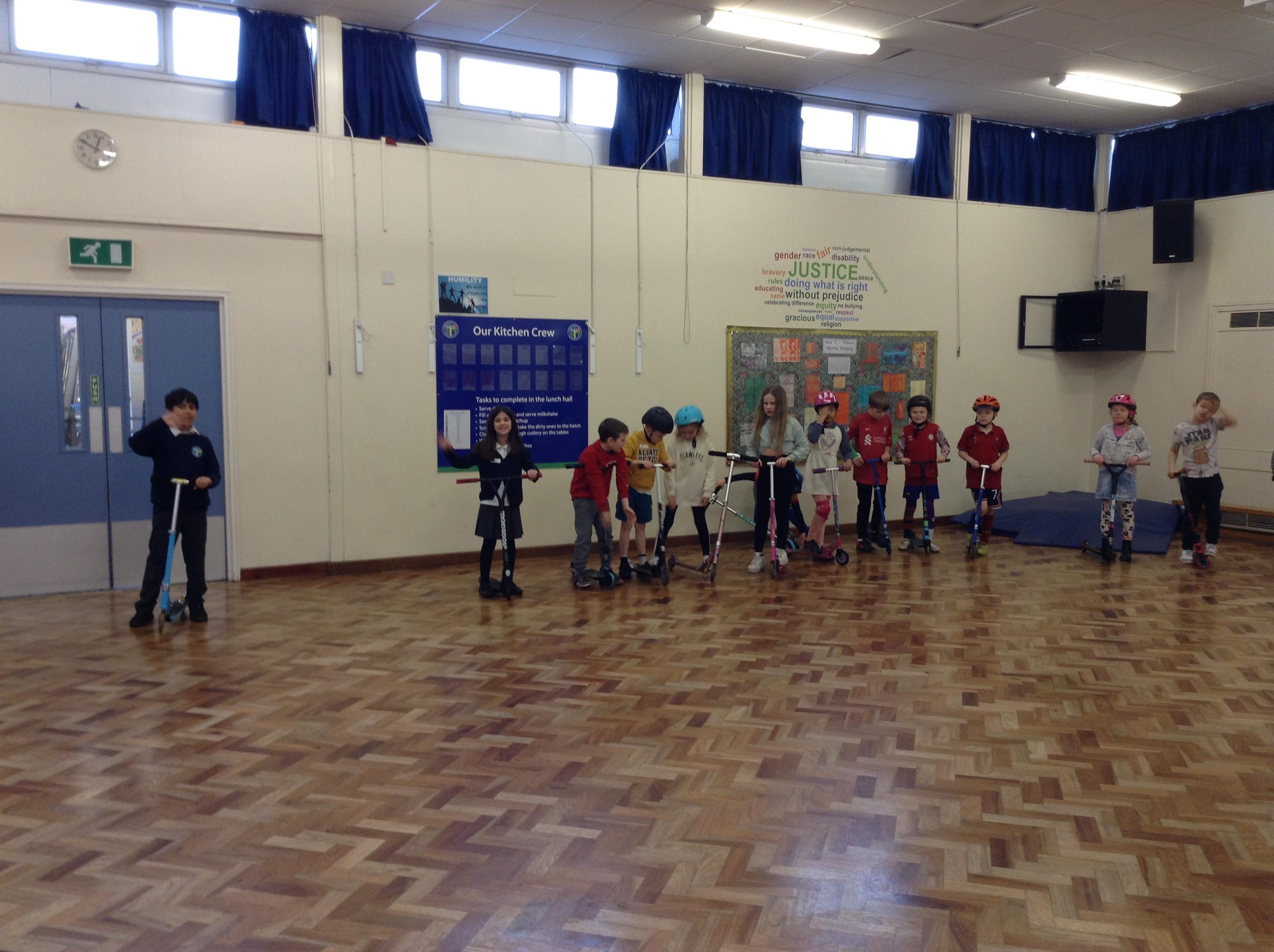 We ended the term with some scooter training on how to use our scooters safely. After a theory lesson where we watched a video on safety tips, we took part in a practical session where we used our brakes, practiced our turns and scooted whilst watching out for distractions and obstacles around us. It was great fun!