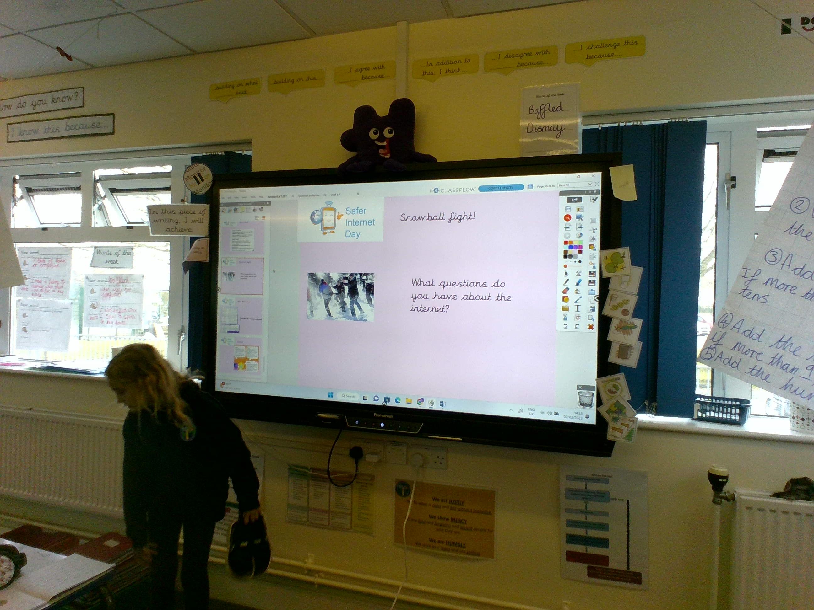 Today is Safer Internet Day. The children had an assembly led by Miss Bishop all about the great things to do with the internet, but also about ways to keep us safe when online. Later on, we discussed the things we love about the internet, and the things that we know can be not so good. We used our Oracy skills, talking in small groups and then sharing with the class our ideas. Finally we had a snow ball fight, where everyone wrote any questions about how to be safe online.