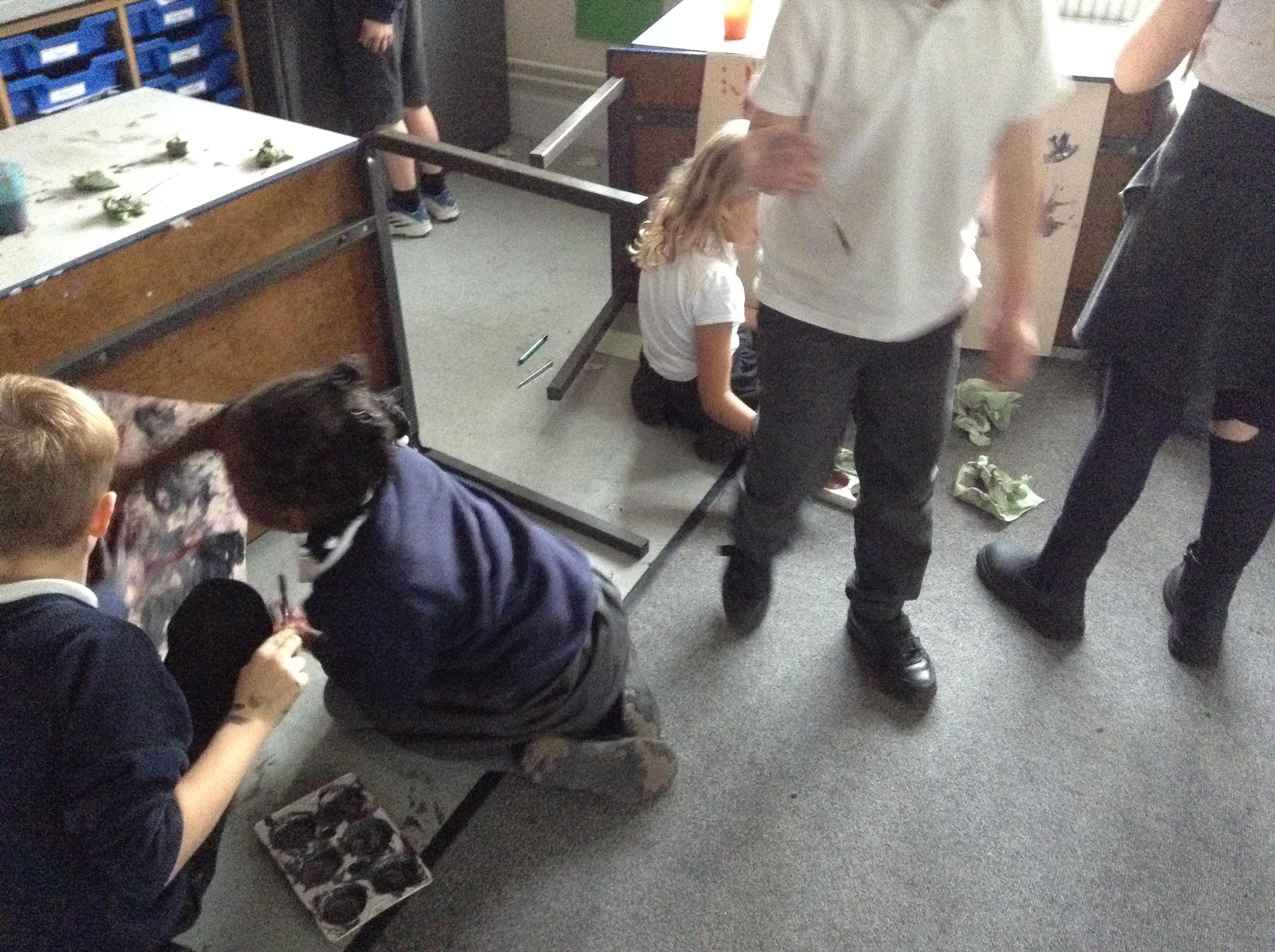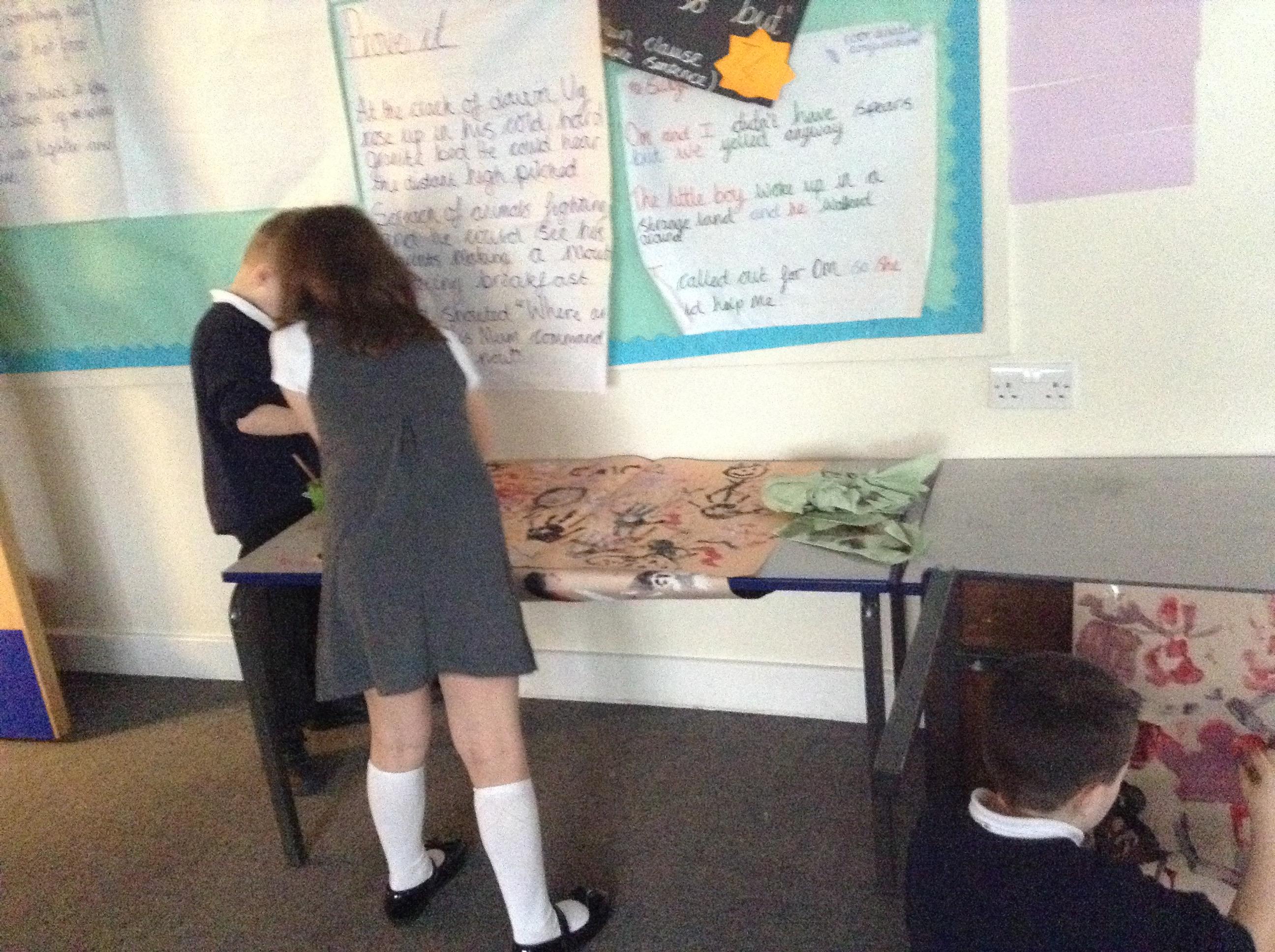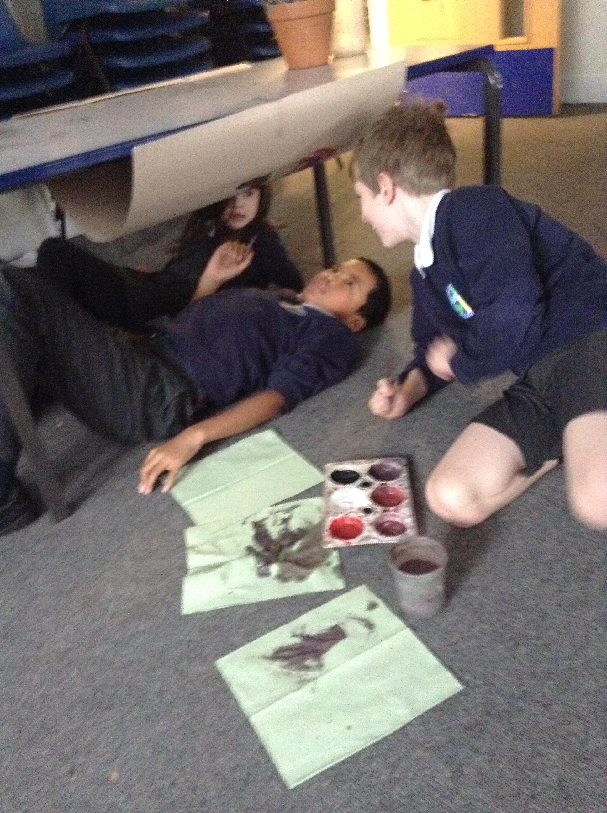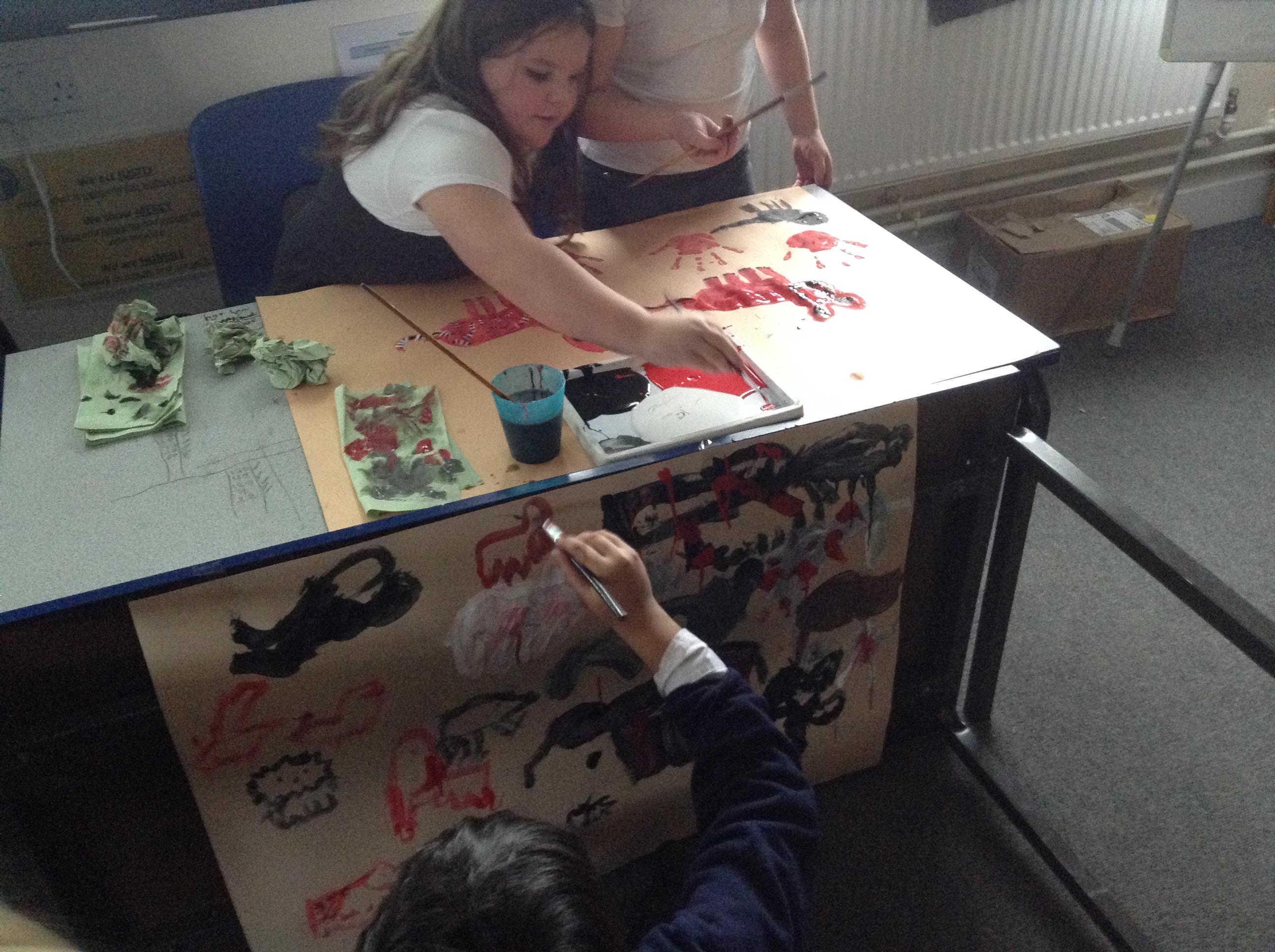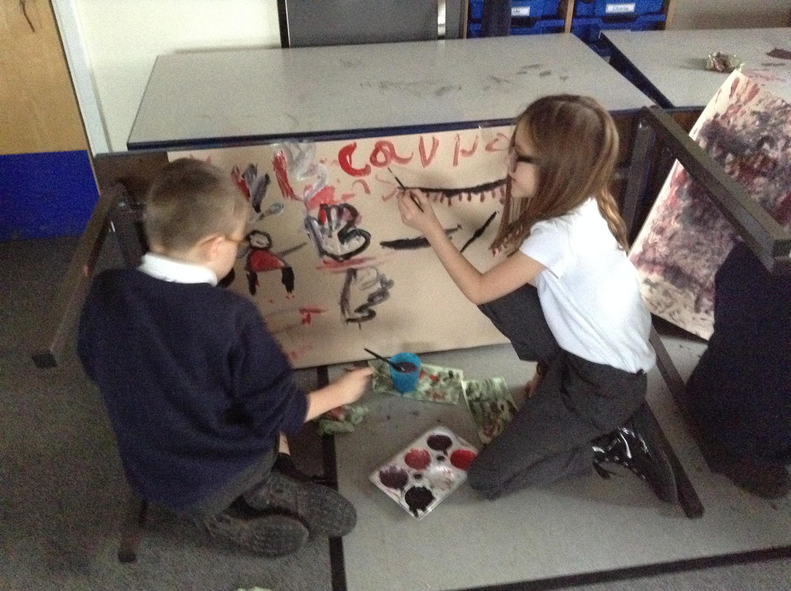 What a great start to term! In order to finish our enquiry into 'What is the difference between the Stone Age and the Iron Age?', we used our skills through being artists to create our own cave paintings! To make it as realistic as possible, we turned our tables onto the sides to give us the effect of having cave walls to decorate. Although we wanted to use lots of different colours, we realised that in the Stone Age, they wouldn't have had access to this so we kept it as close as possible by only using red, black and white. It was so much fun but we did get very messy!