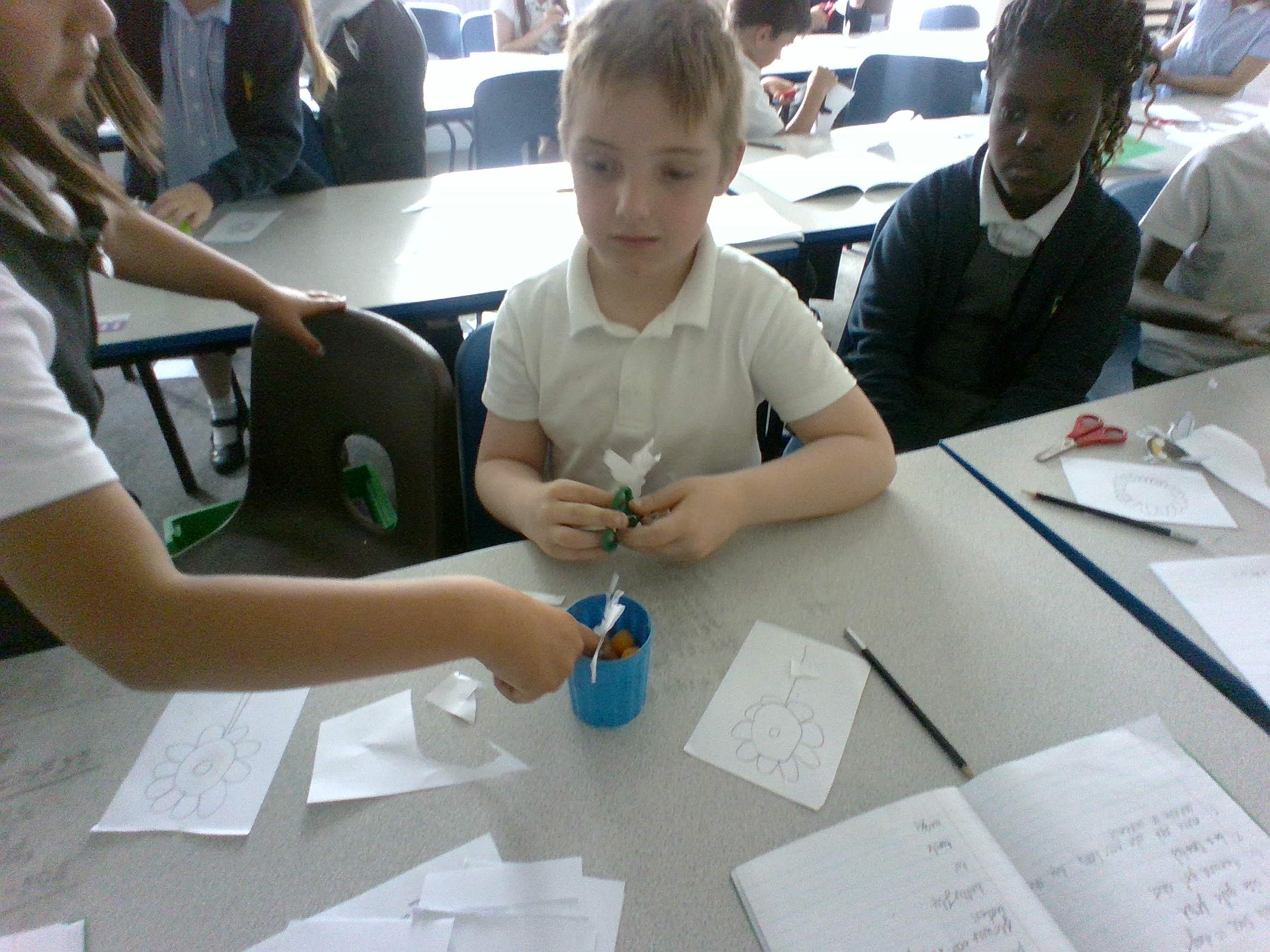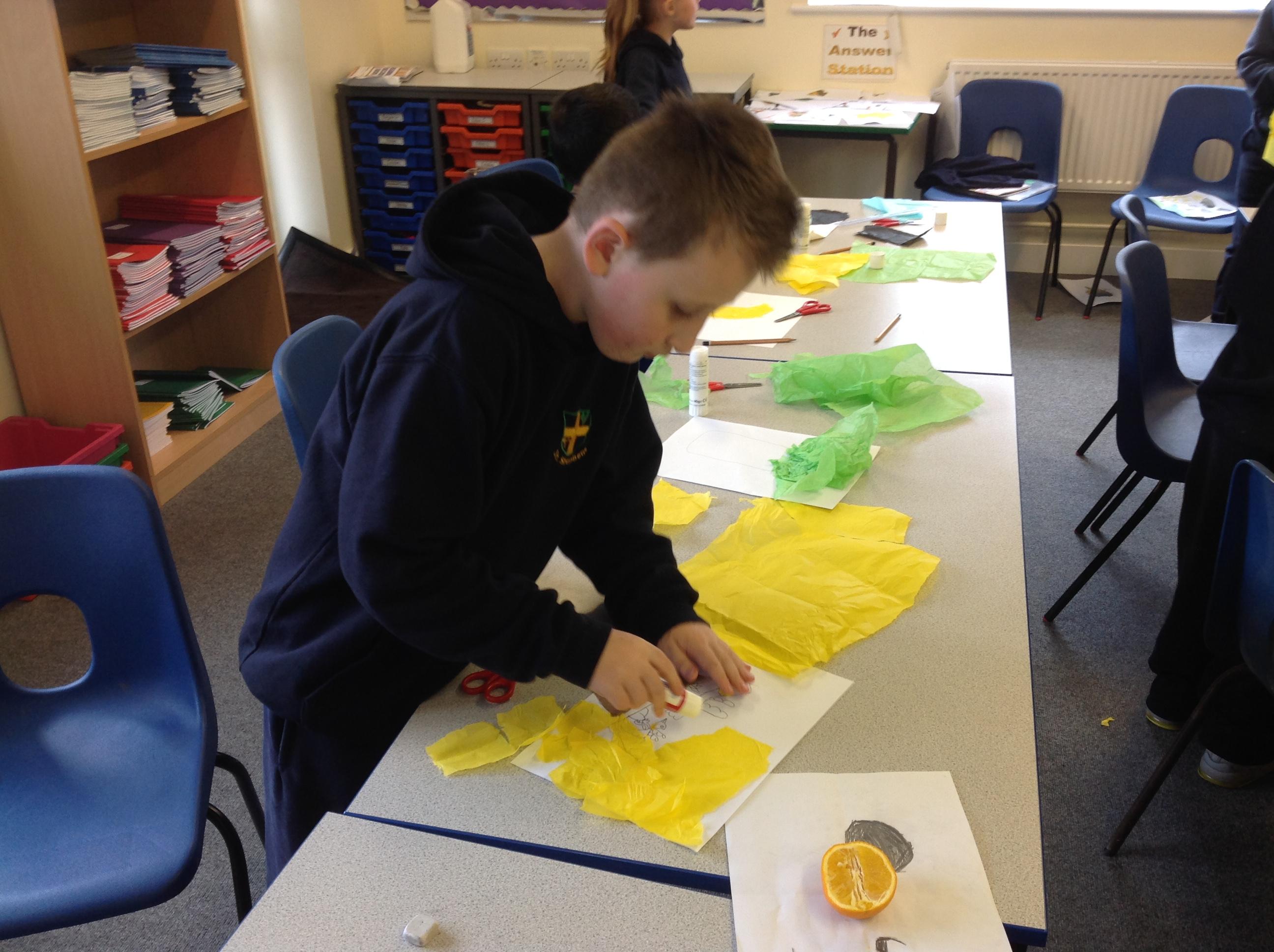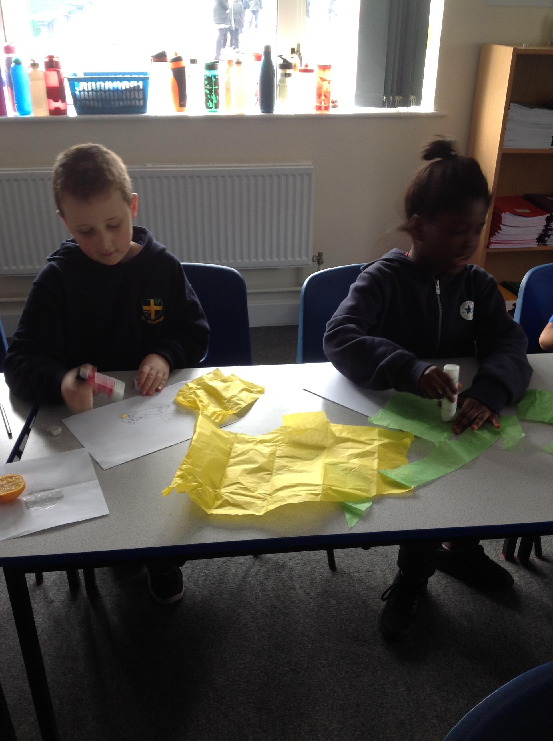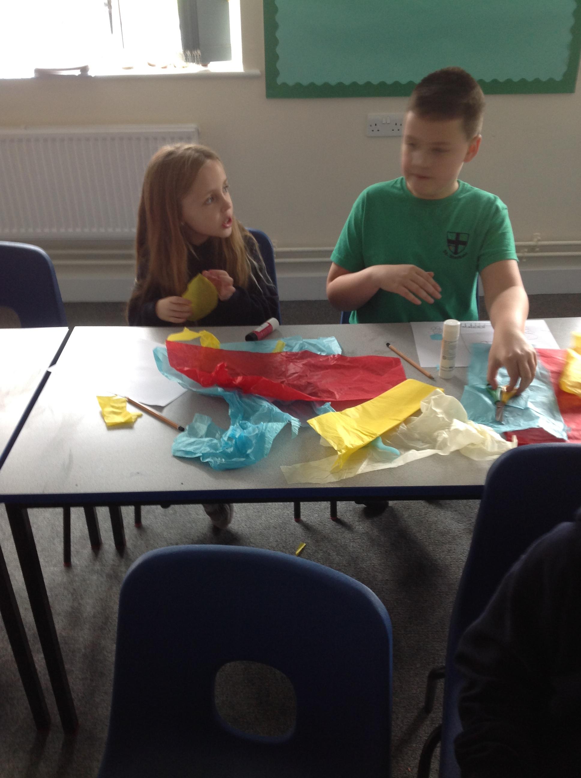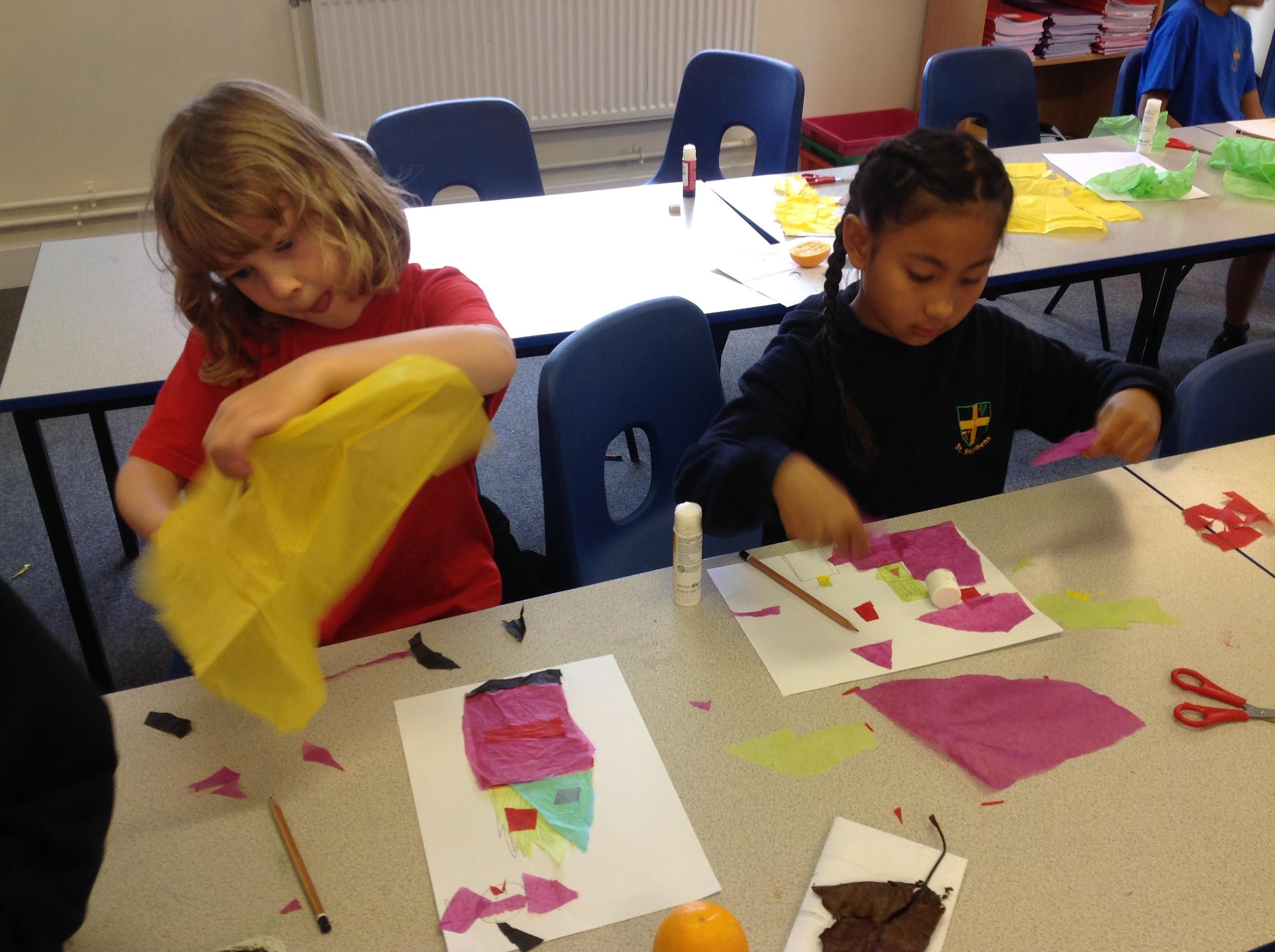 In week 6, 3LJ explored the skills that are required to be an artist.  They explored drawing by looking for shapes and lines within objects and drawing these from different perspectives.  They collected leaves from the playground and blended watercolours to create their own autumnal coloured artwork.  They had fun exploring 3D art and created their own 3D hot air balloons.  Finally they looked at a range of artwork created by assembling lots of small pieces of paper to create blocks of colour.  They observed how they could create different effects by layering different colours of tissue paper.  What an amazing day!