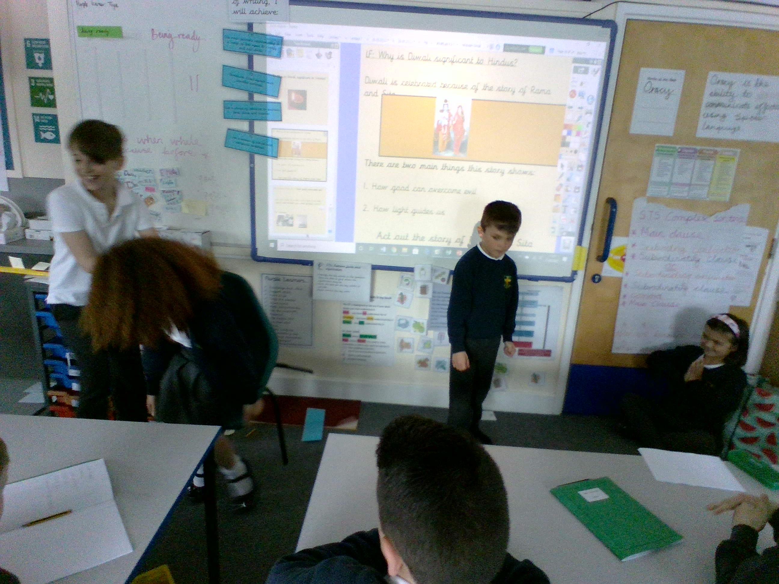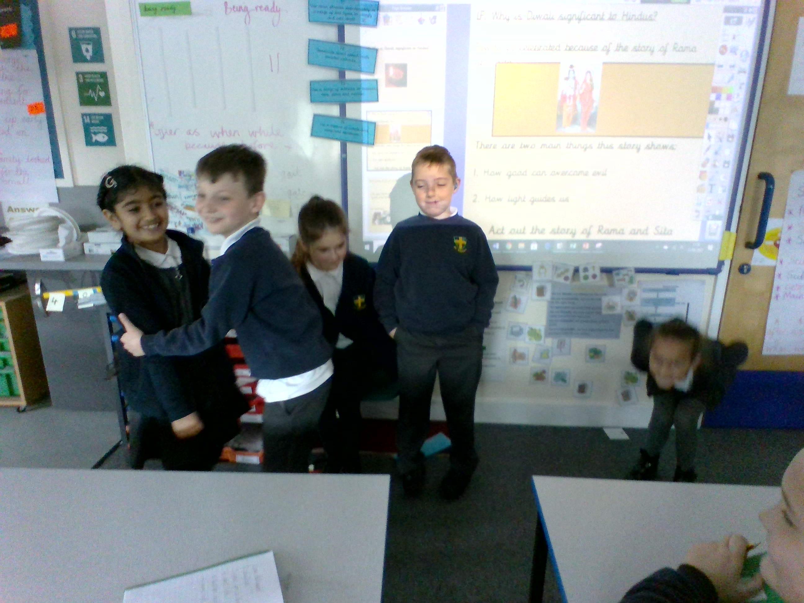 In week 5 we have been Theologists.  We explored the question 'What does the crucifixion of Jesus mean to Christians and we re-enacted scenes of the story.  When then explored the question 'Why is Diwali  important to Hindus?'  We re-enacted the story of Rama and Sita  and discussed the important messages in the story that good overcomes evil and that light triumphs over darkness.  We created our own monsters with evil characteristics just like Ravana.  After that we compared the similarities and differences between the christian festival of Easter and the Hindu festival of Diwali.