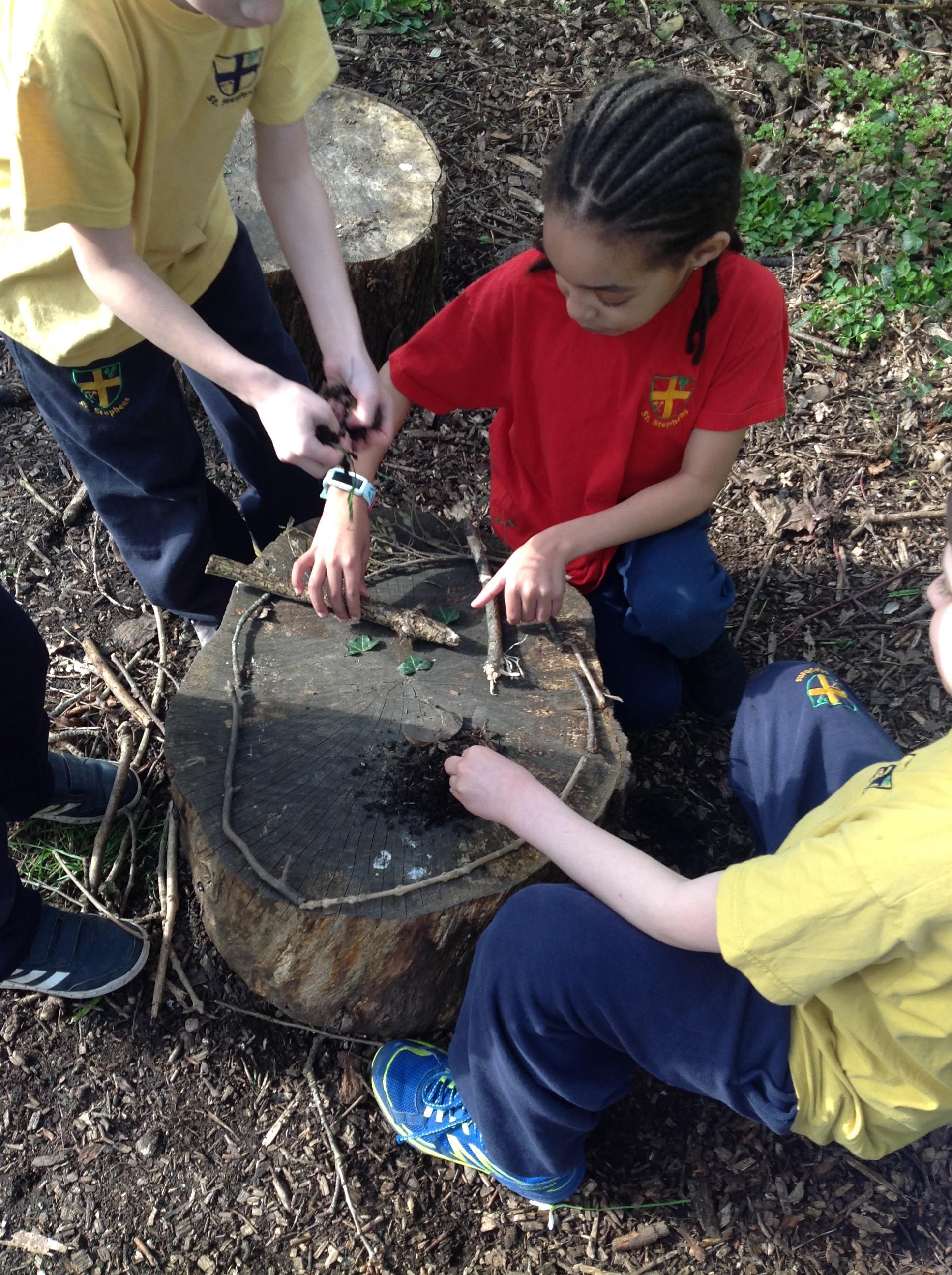 In week 6, 3LJ had an amazing time at forest school.  They developed their fire skills by safely lighting and putting out a fire.  They developed their cooking skills by toasting smores over the fire; delicious!.  To escape from the torrential rain, they took shelter and made their own necklaces from wooden rings and went on a bug hunt.  They all came back to the class smelling of smoke!  Thankyou forest school for another fun filled day!
