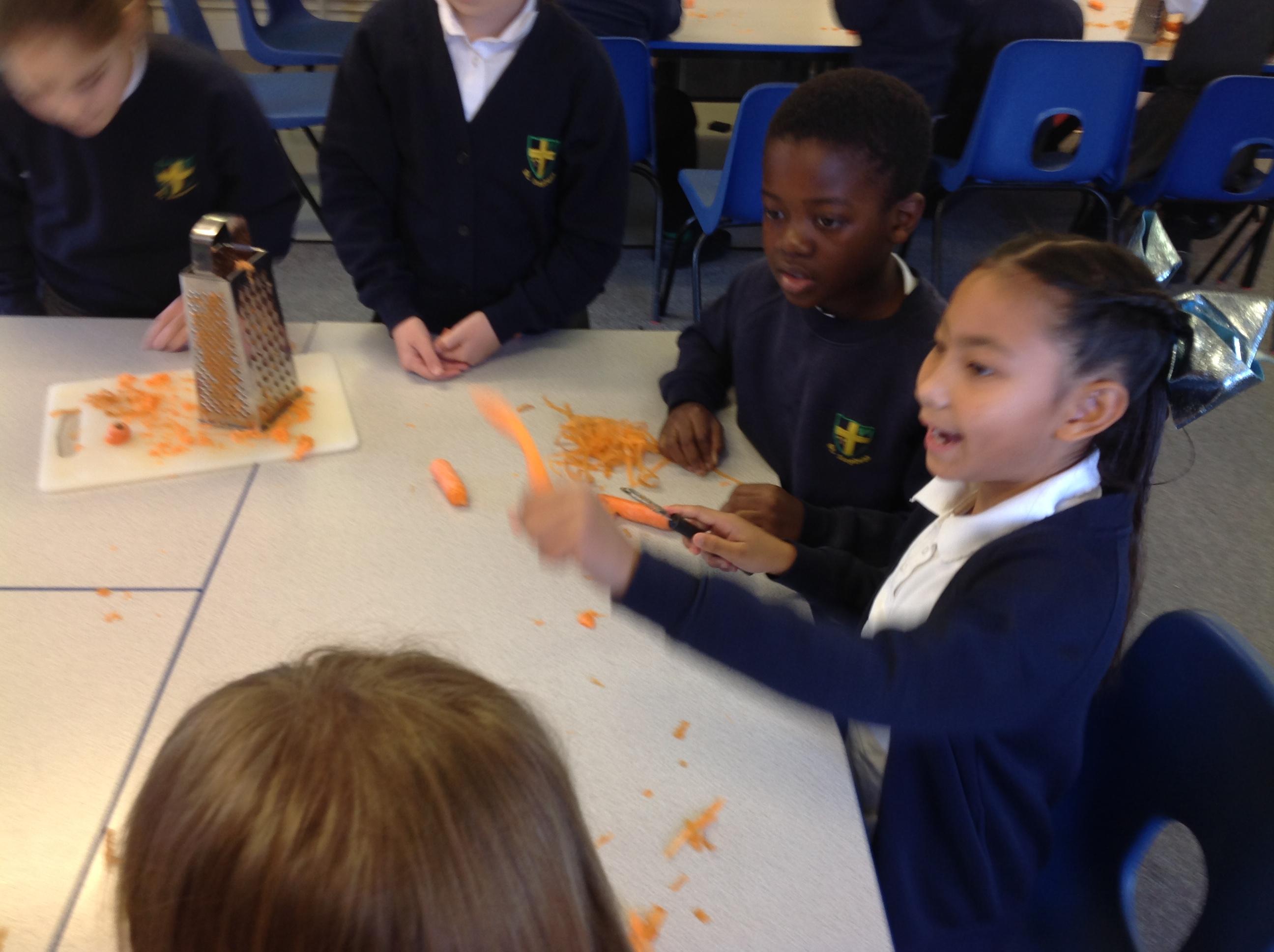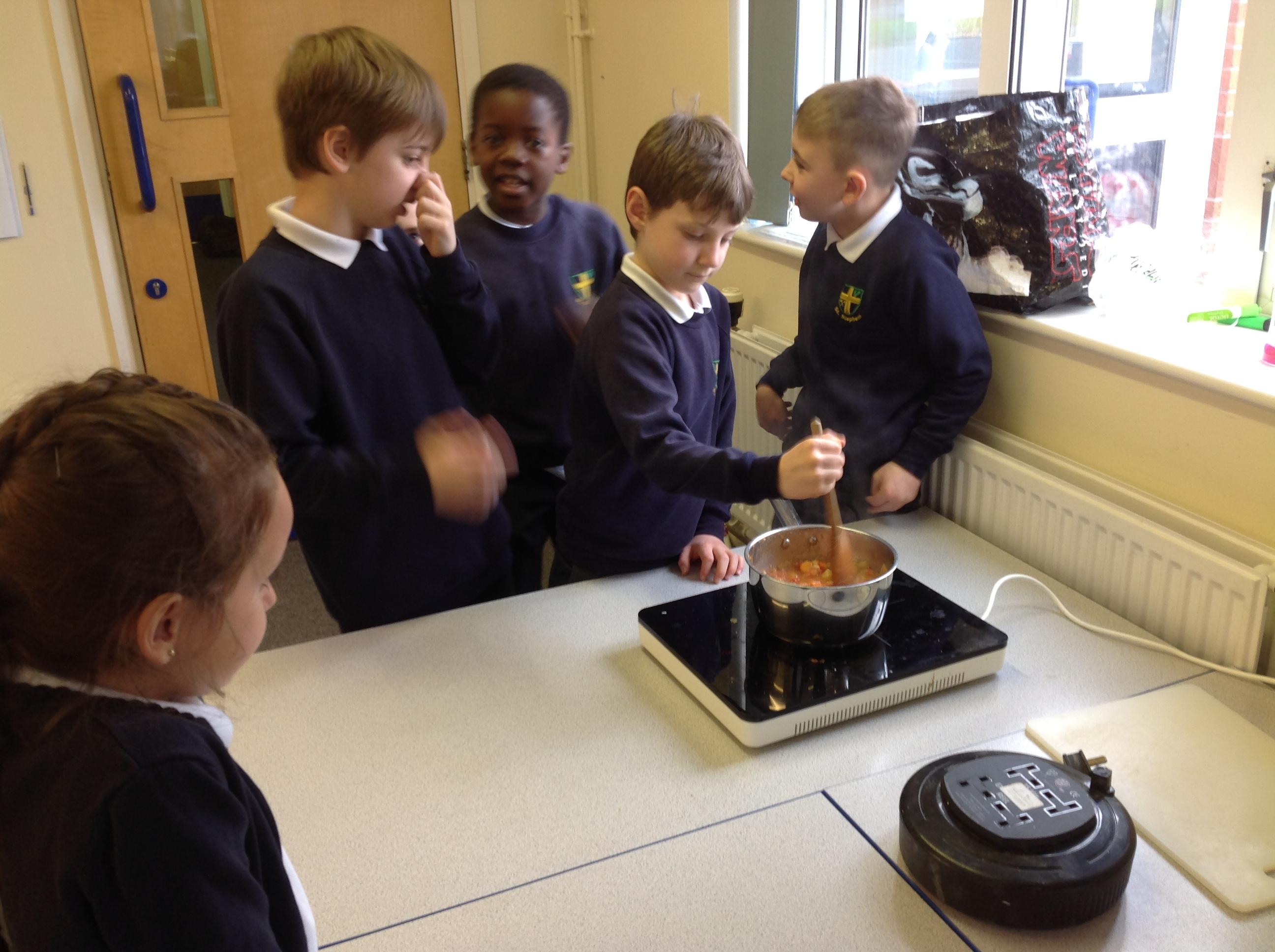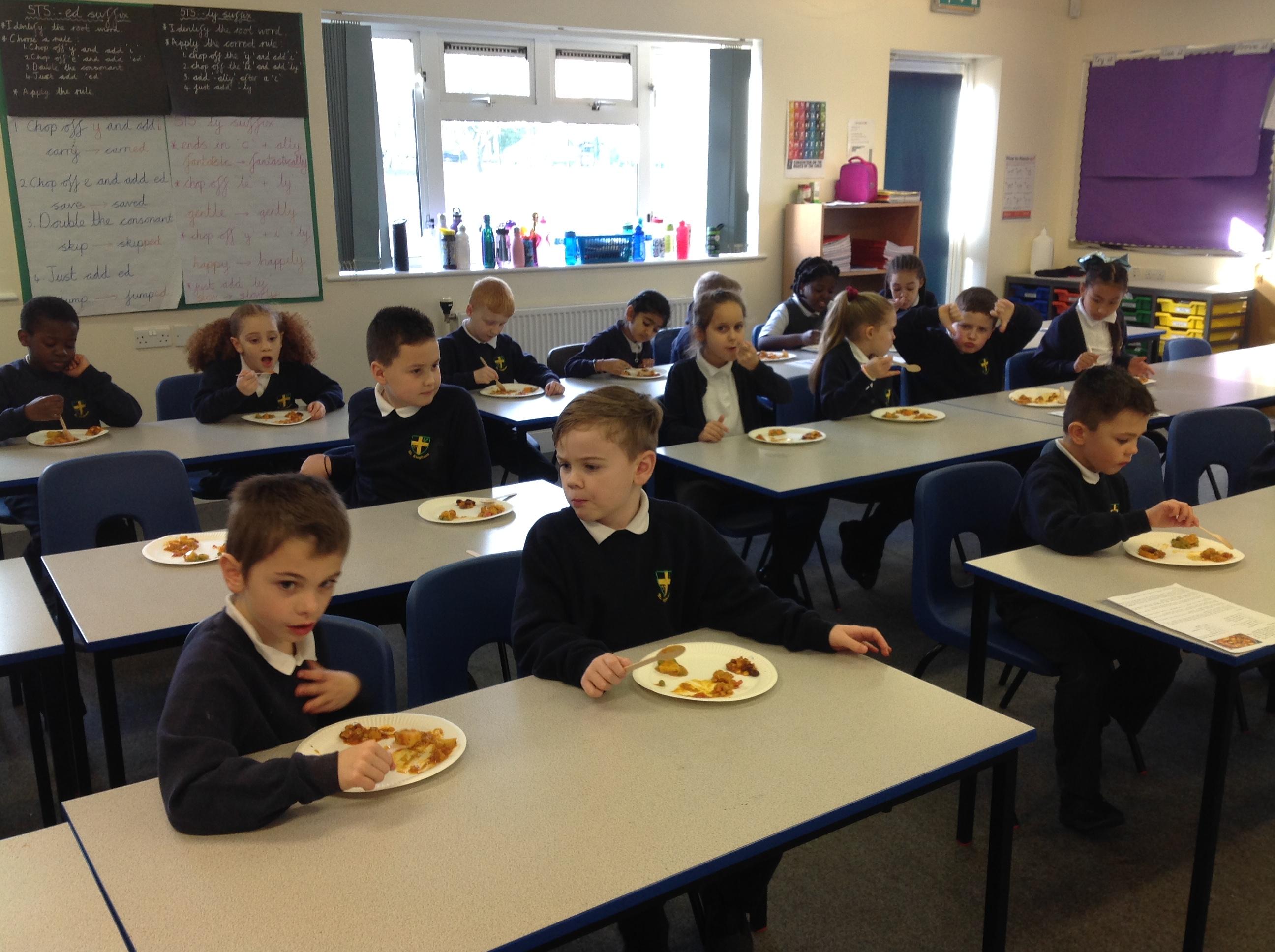 Today, we had a fantastic day of learning where no pens were used all day! We couldn't believe how much we learnt through using our voices and listening carefully. As part of our enquiry we were engineers for the day and we practised the skills involved in cooking a meal. As food technologists, we evaluated the 3 recipes from each of the Year 3 classrooms and of course, we felt that 3LJ's meal was the best!