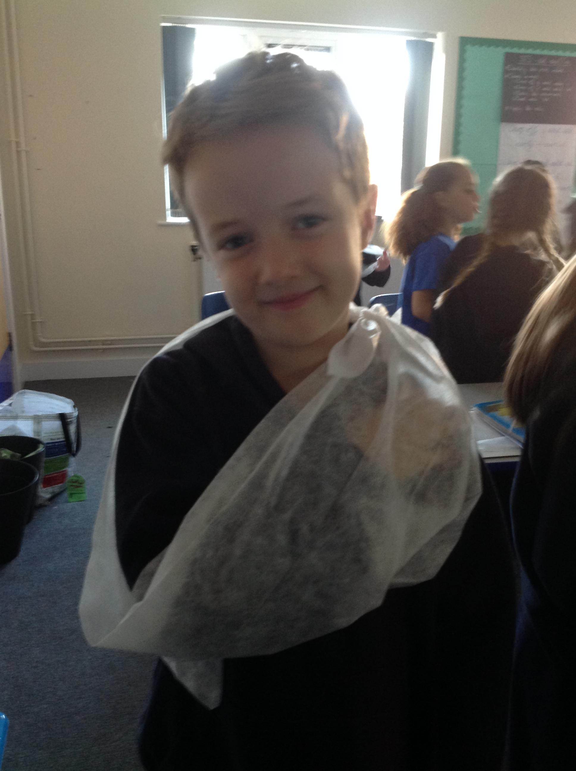 This week, in science, we have been learning all about skeletons and how our bones give us protection, support and movement. In order to understand why our bones are so important, first we needed to be able to name the most important ones. Some of the bones we have are: rib cage, radius, humerus, fibula, tibia. We were able to find and locate all of these bones, and more, across our body. Have a look at the pictures below to see us identifying different bones. We looked at how bones protect our organs such as how the skull is there to protect our brains.