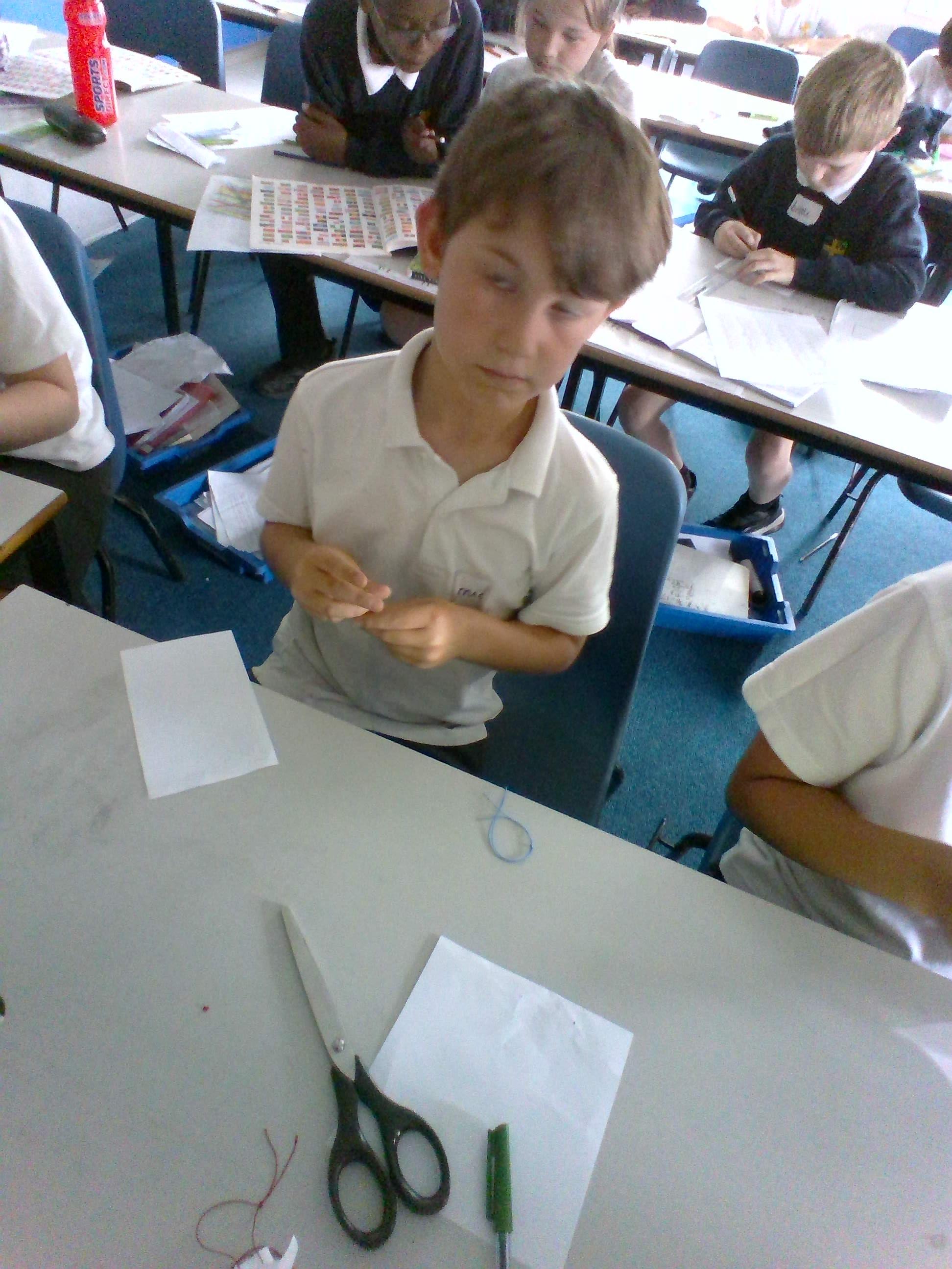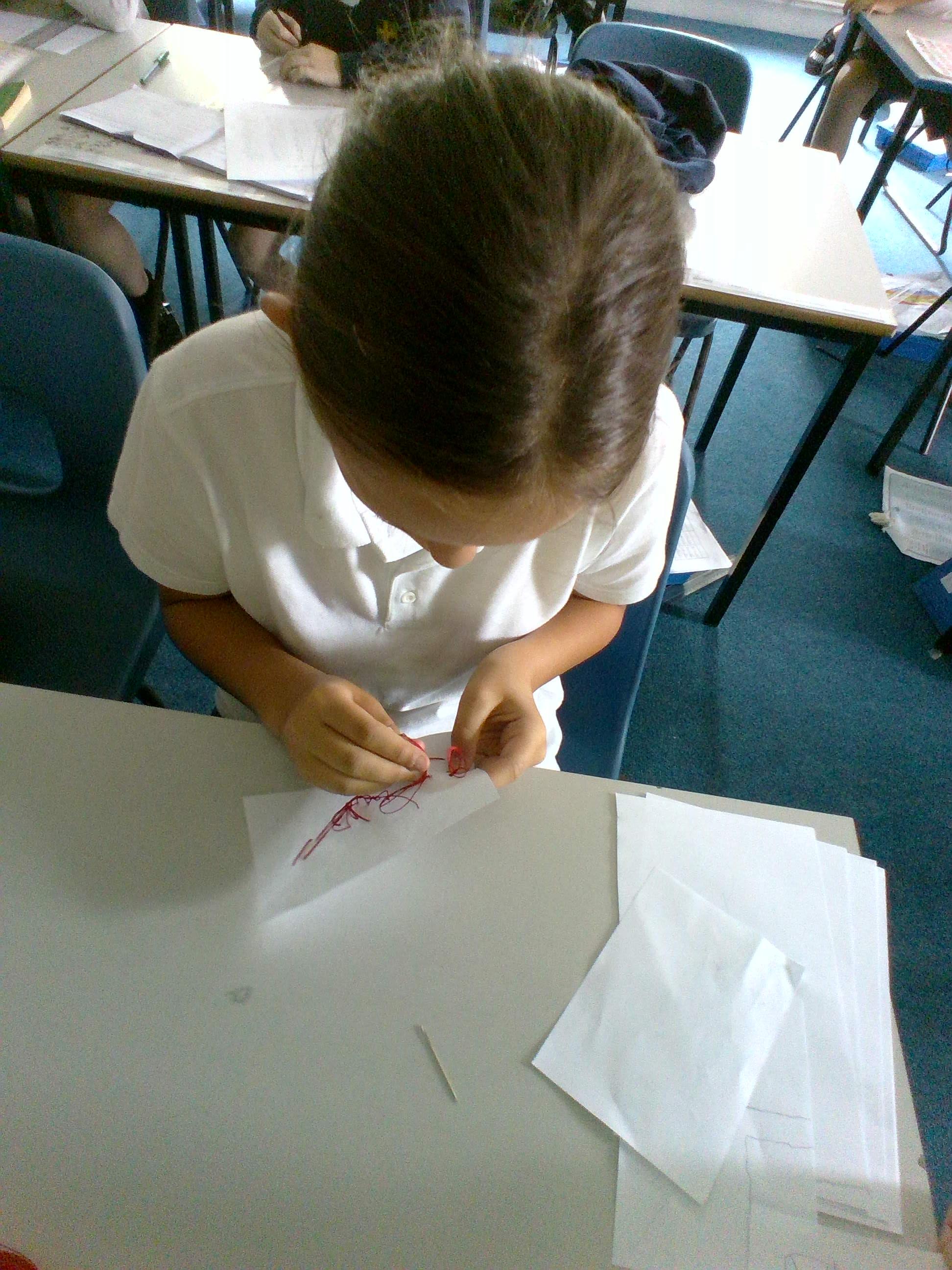 To start, we looked at some basic thread patterns such as running stitch, baste stitch and catch  stitch. We practised the different techniques into paper to begin with. This gave us ideas as to how we could move the material to help with our sewing. After this, we sewed into a range of different materials. This proved much harder than paper but we persevered.