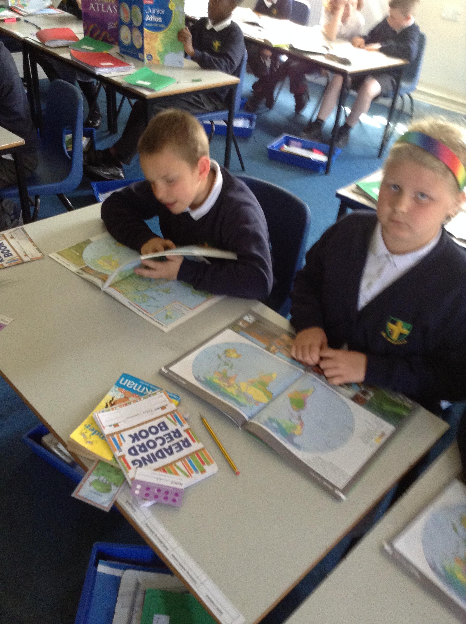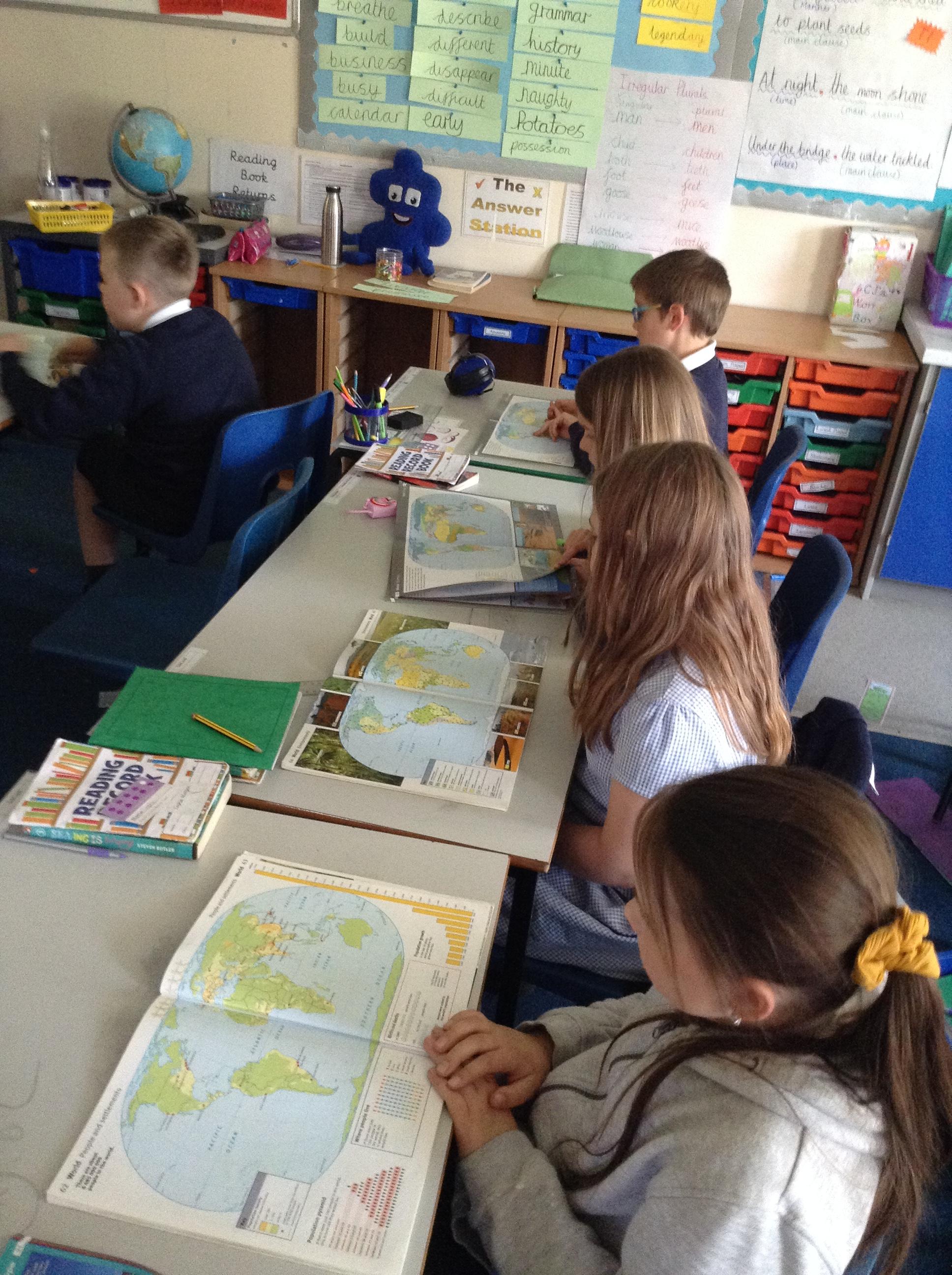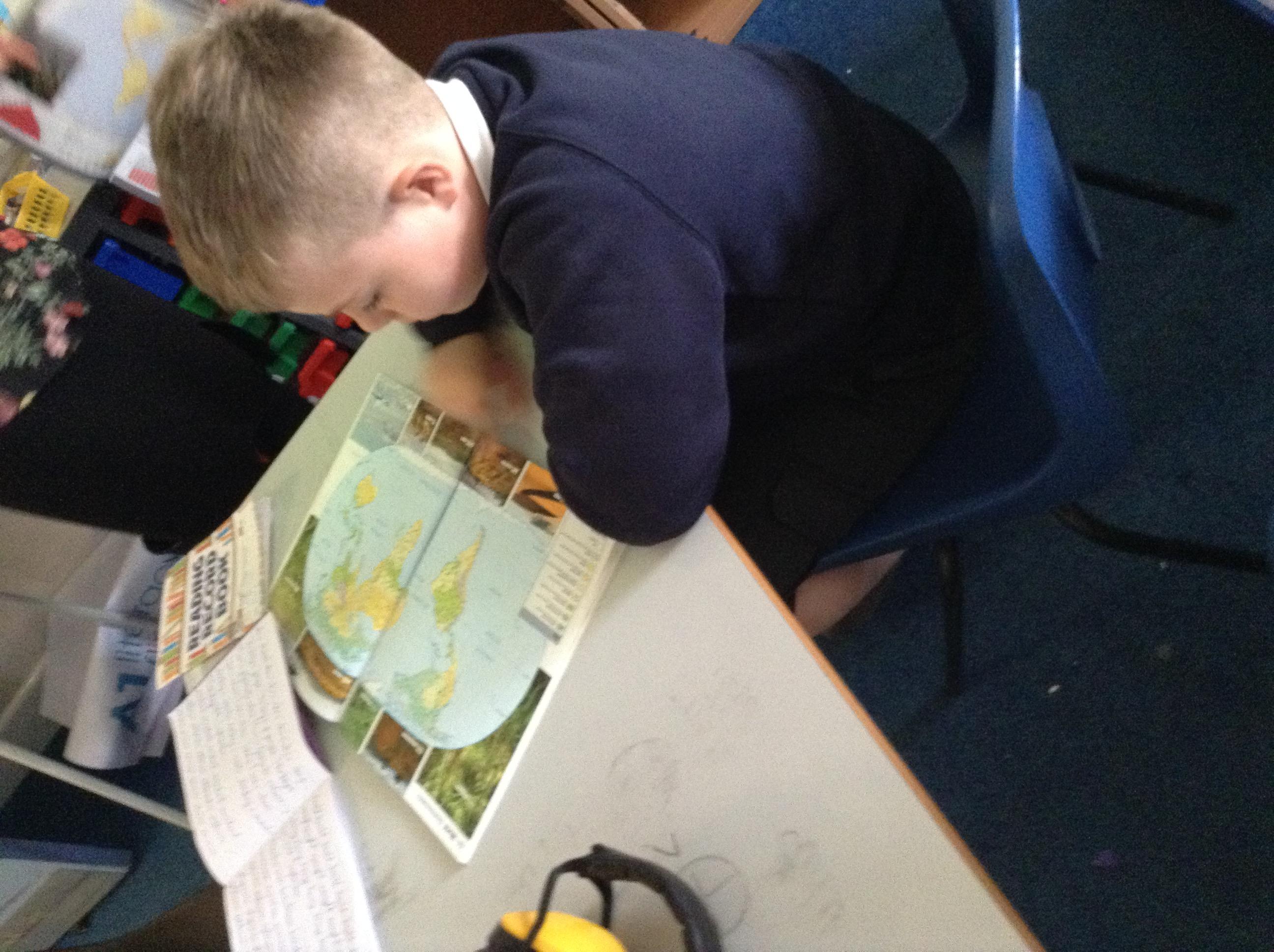 To get to grips with our rainforest enquiry we used atlases to locate where the rainforests were located around the world. From this, we were able to recognise that the rainforests are located around the centre of the earth, which we found out is called the equator. We then identified the Northern and Southern Hemispheres and were able to understand changes in climates depending on where the country was located. We were then given time to explore the atlases which we thoroughly enjoyed.