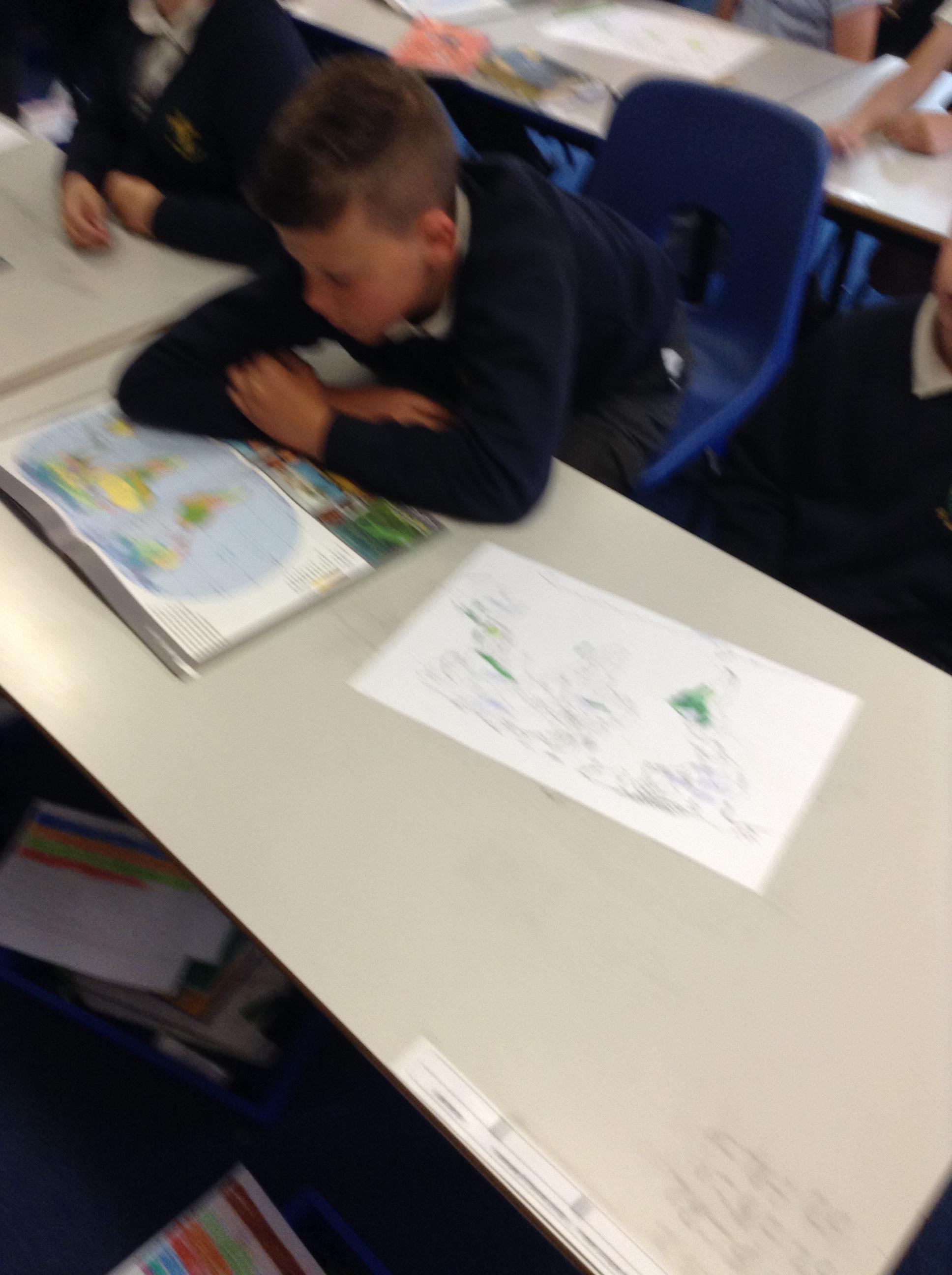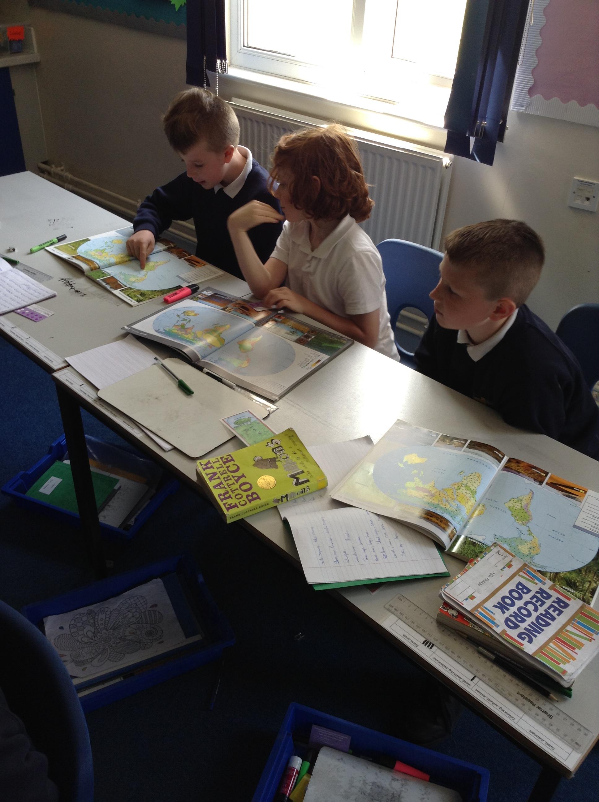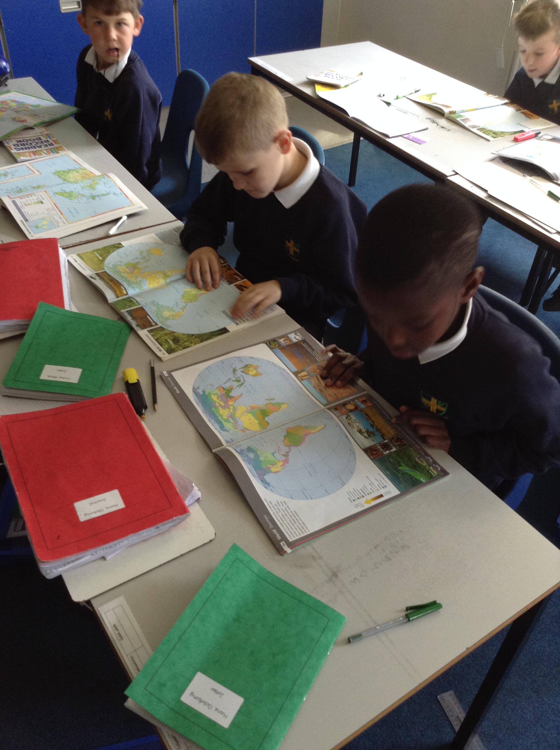 To get to grips with our rainforest enquiry we used atlases to locate where the rainforests were located around the world. From this, we were able to recognise that the rainforests are located around the centre of the earth, which we found out is called the equator. We then identified the Northern and Southern Hemispheres and were able to understand changes in climates depending on where the country was located. We were then given time to explore the atlases which we thoroughly enjoyed.