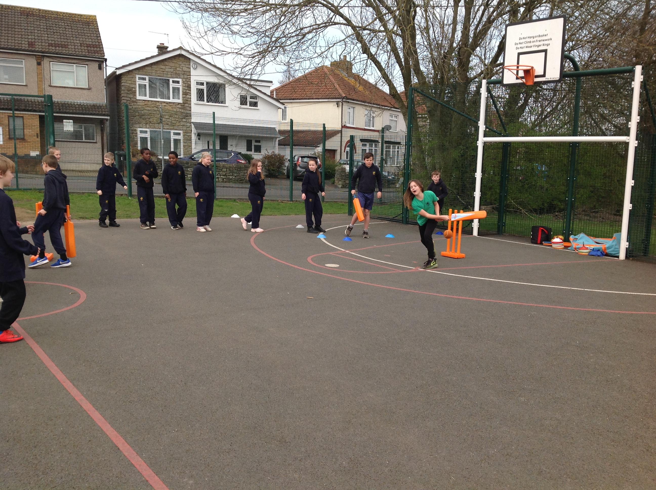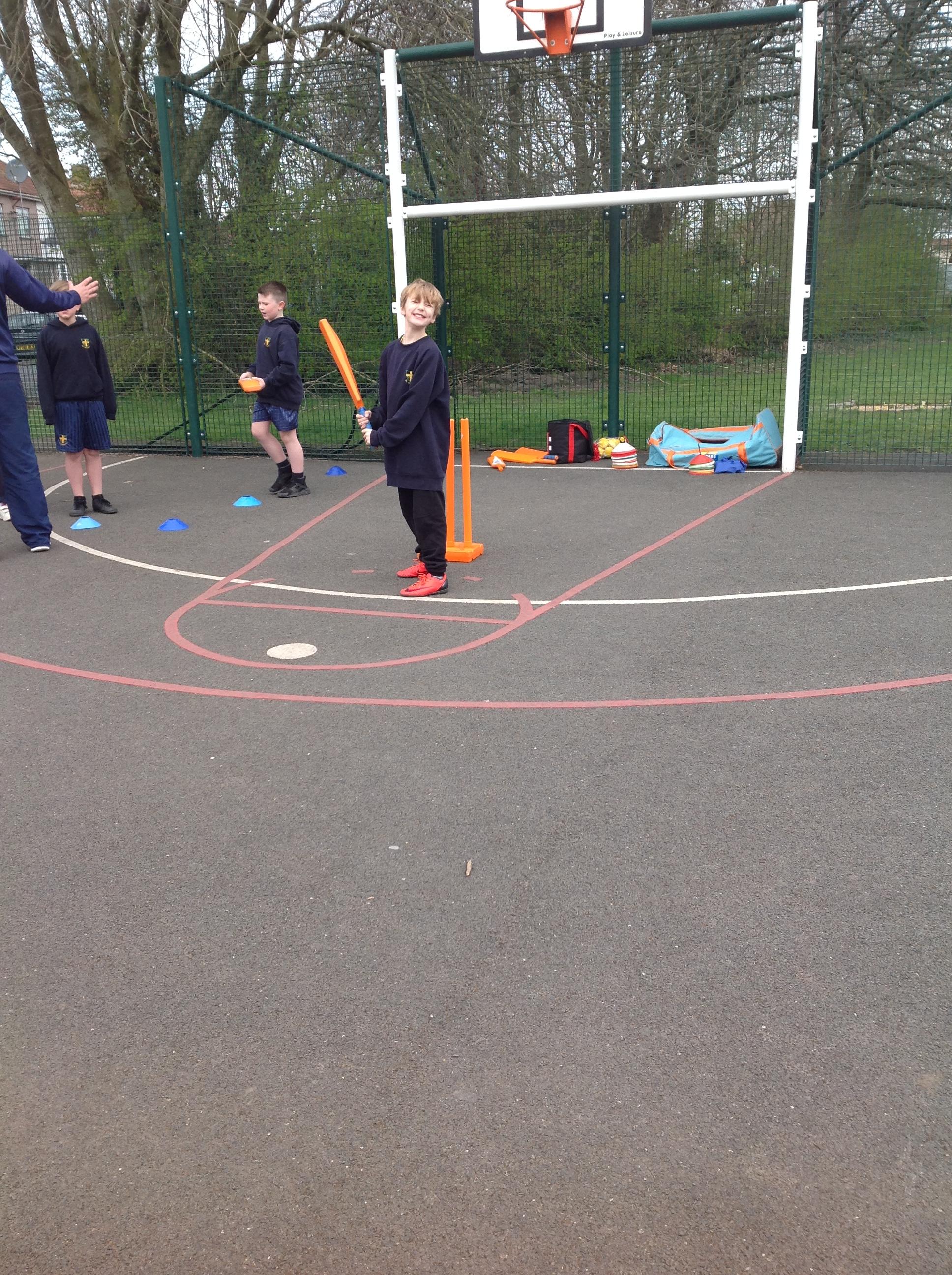 In week 4, we were very lucky to have someone come in on Thursday to teach us how to play cricket. We started with a warm up which tested our listening skills. This would later help us when we worked together in a teams. After this, we got into teams and took it in turns to hit and field. We started with quite a large ball to help with our hitting and catching skills and then as time progressed and we got better, we were using a tennis ball. We had so much fun and Miss CJ was so impressed with our batting skills.