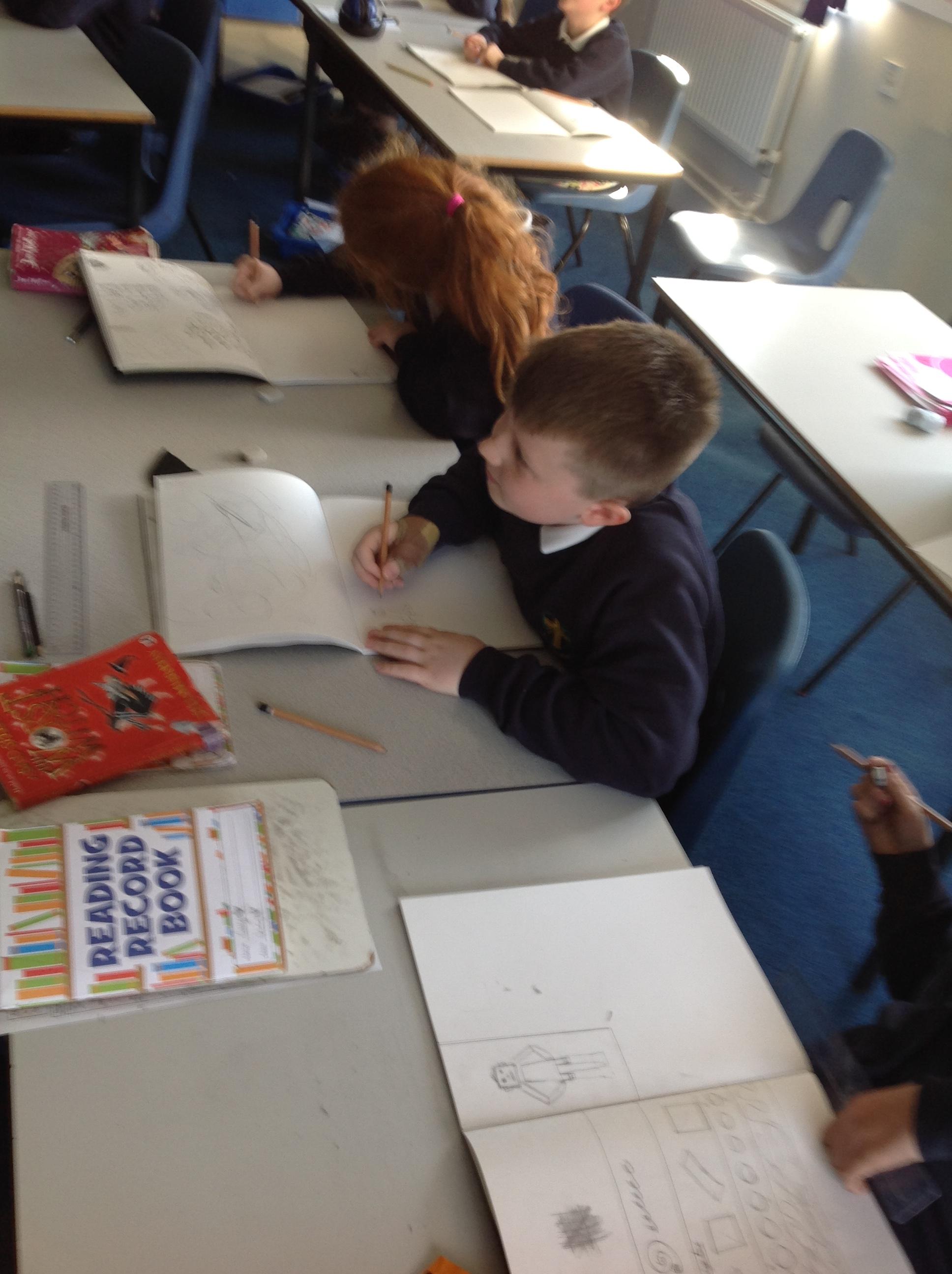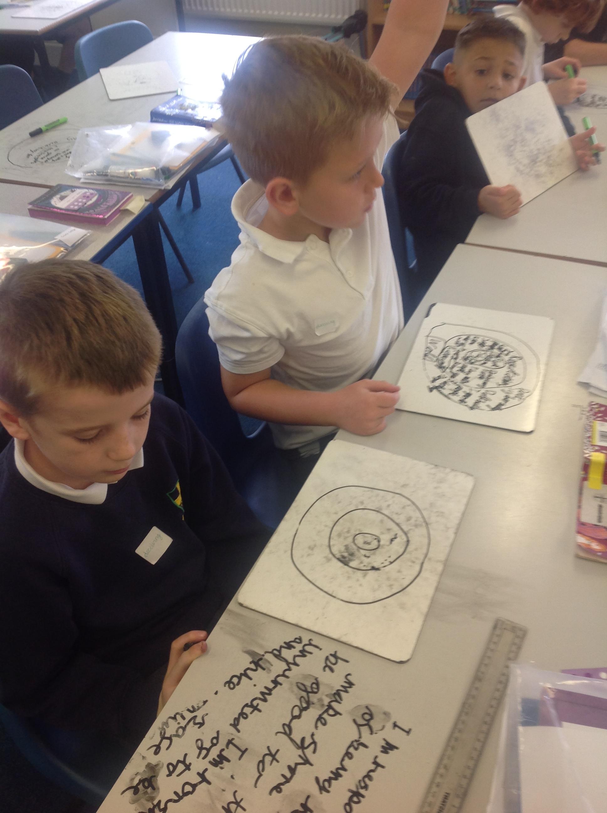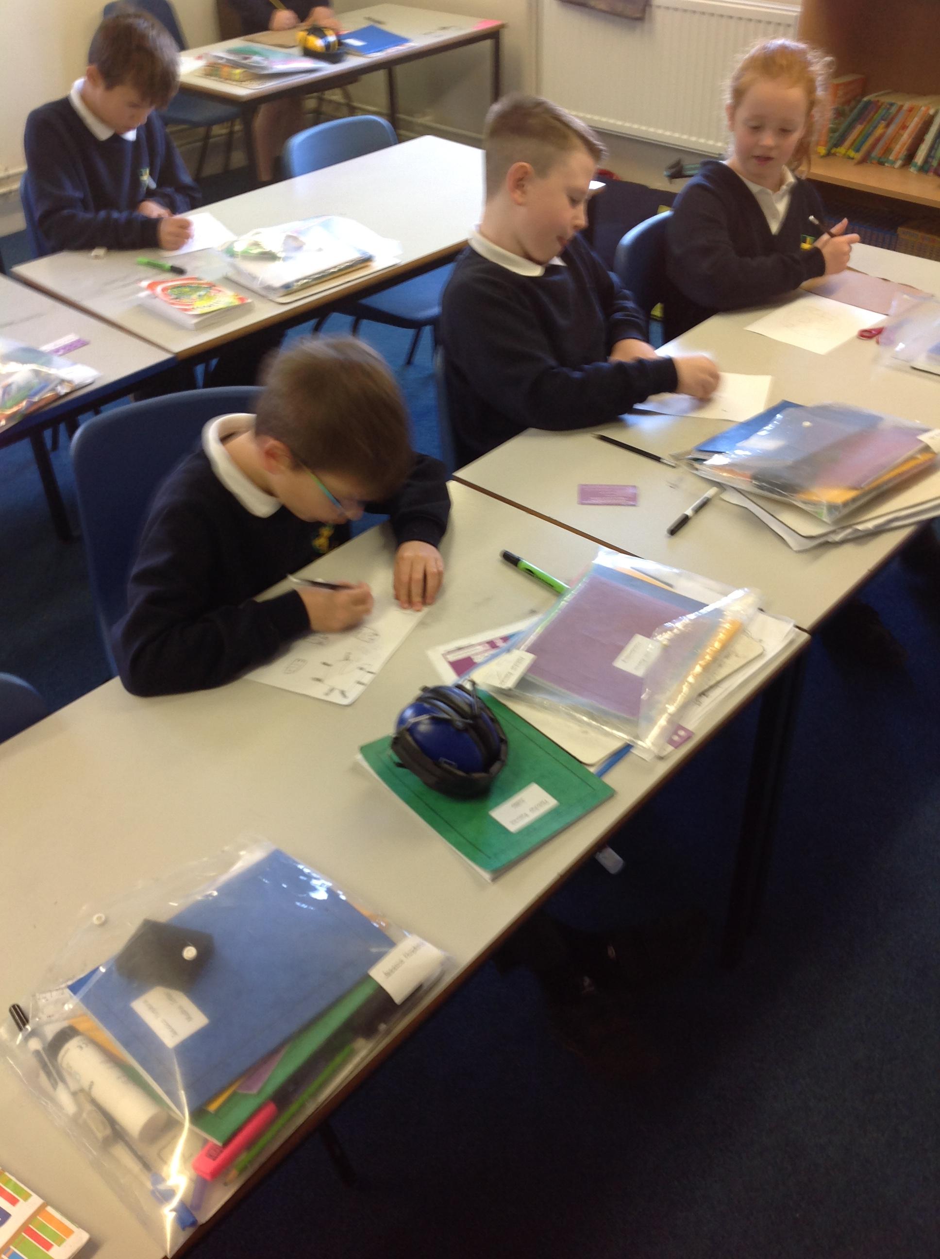 In week 4, we have been focusing on drawing in our art lessons. We started by listening to some music and drawing how the music made us feel. It was so interesting to see the different drawings our classmates had done. After this, we focused on shapes starting with lines. We then moved onto squares and rectangles, swirls and loops and to finish with circles.