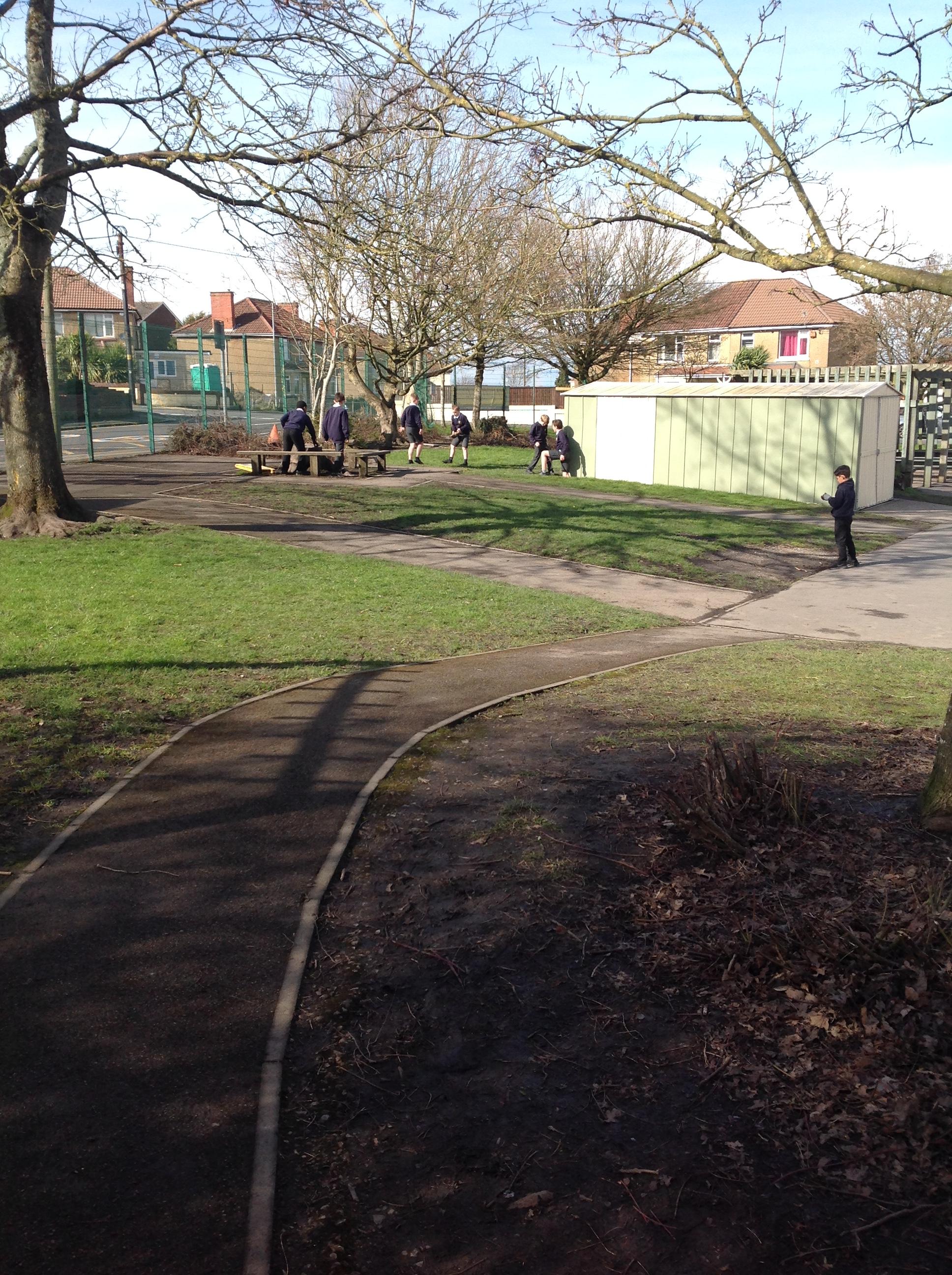 4CJ's entrance and exit point is the top gate at the top of the playground.