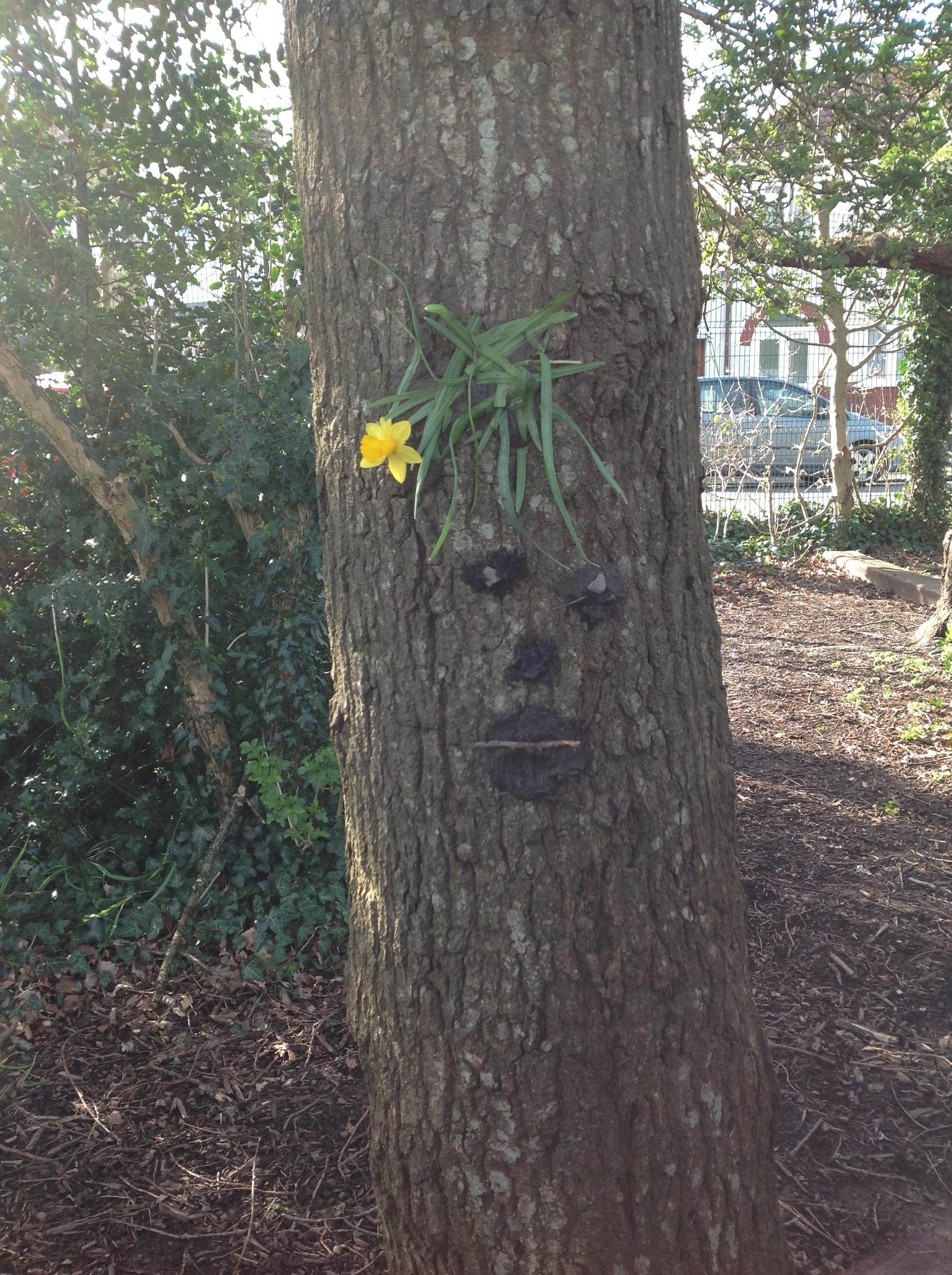 In Week 3, we were lucky enough to go outside to do some learning. The sun was shining so we headed out to make tree faces. We had to use resources from the environment to make faces on the trees. Some of us used mud for glue, leaves for eyes, grass for hair and sticks for mouths. Miss CJ was very impressed with the different faces we created and the different resources we made.