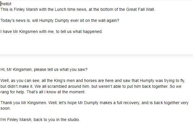 In addition to the fantastic learning we have been doing, we became historians and continued learning about Anglo-Saxons. Throughout our second week, we celebrated World Book Day and explored alternative versions of Twisted Fairytales. We have created superb comic strips,drop the egg challenge and enhanced our skills by creating a news report based on the fall of Humpty Dumpty ! We are so proud of the work that 4CJ have produced and cannot wait to see them back in the classroom. Take a look below at our wonderful work.
