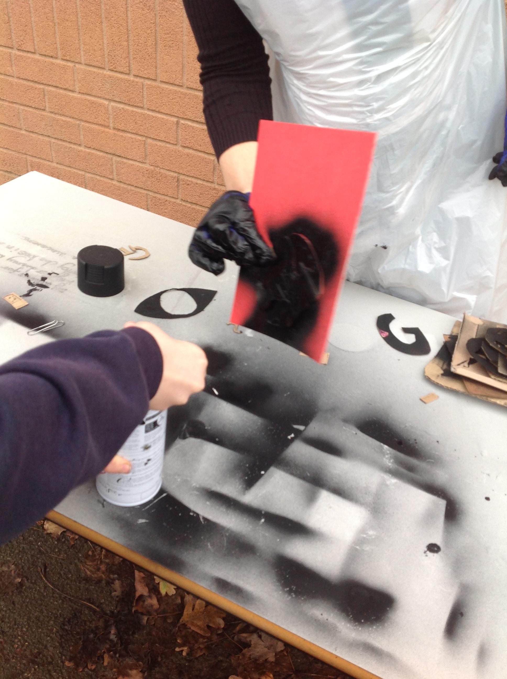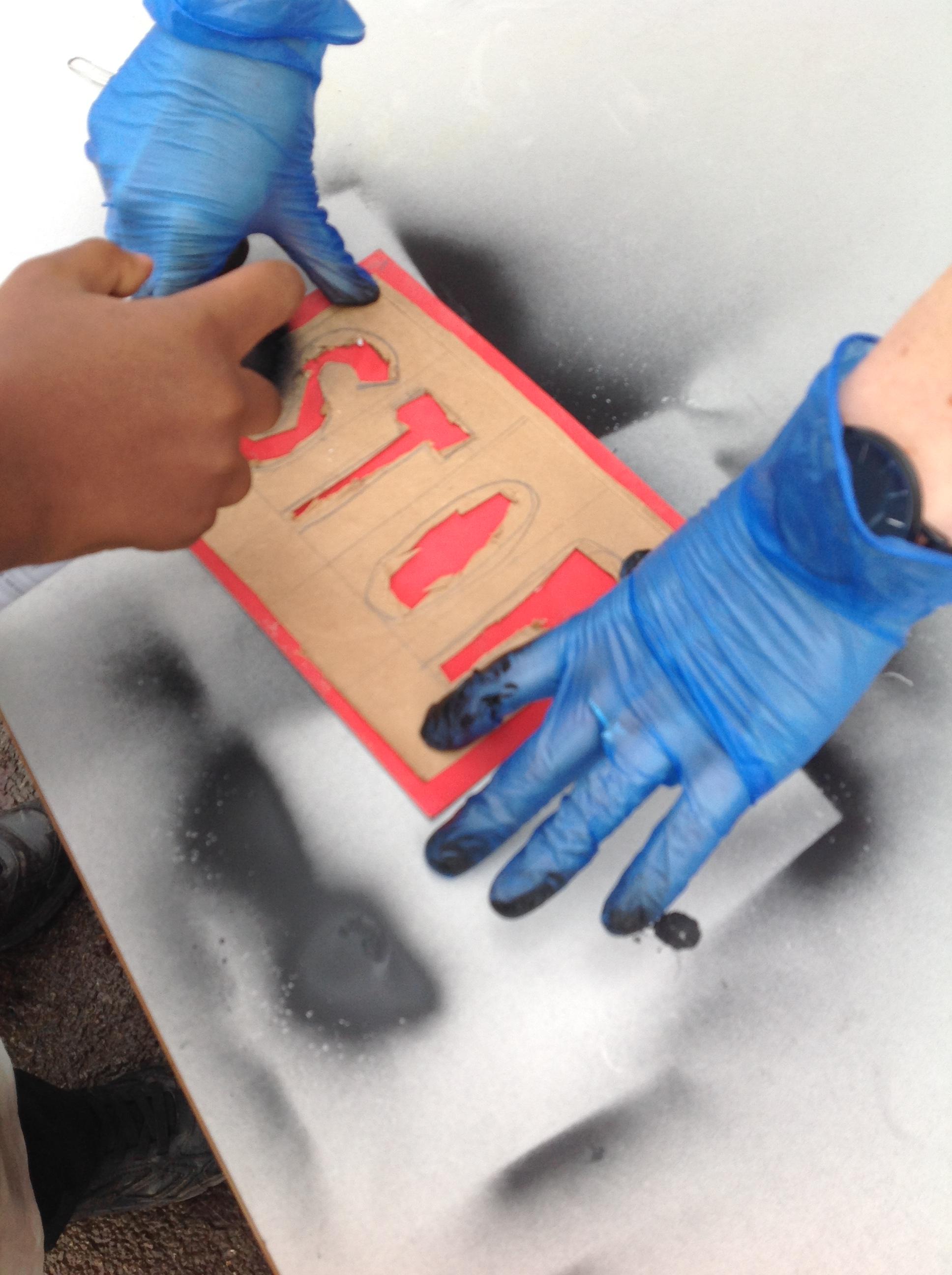 In week 3, we completed our challenge and spray painted our Bansky Style Murals. Spray painting was much trickier than we expected it to be but we persevered and completed beautiful designs. We had to carefully consider where the spray paint might go but our finished pieces are something we are truly proud of. Take a look and see if you can guess what our hidden messages are.