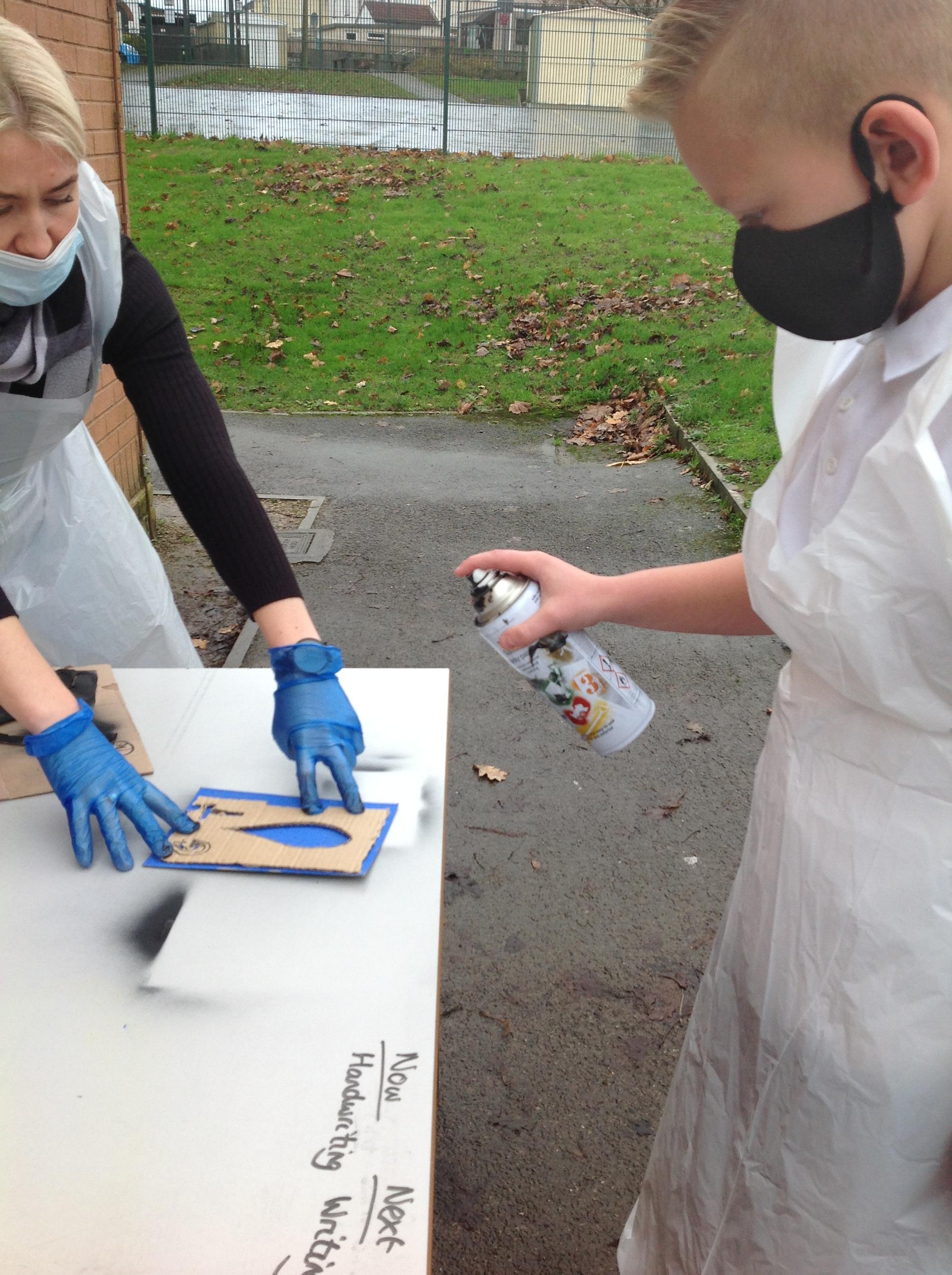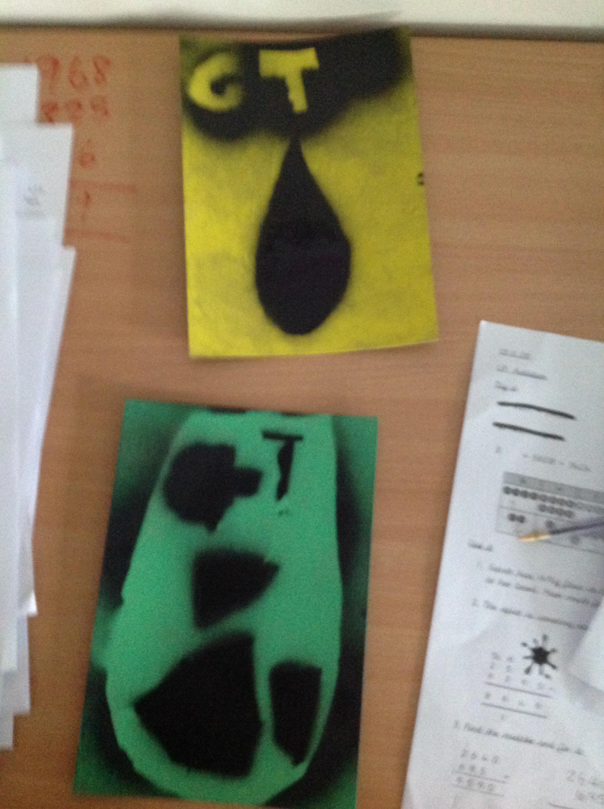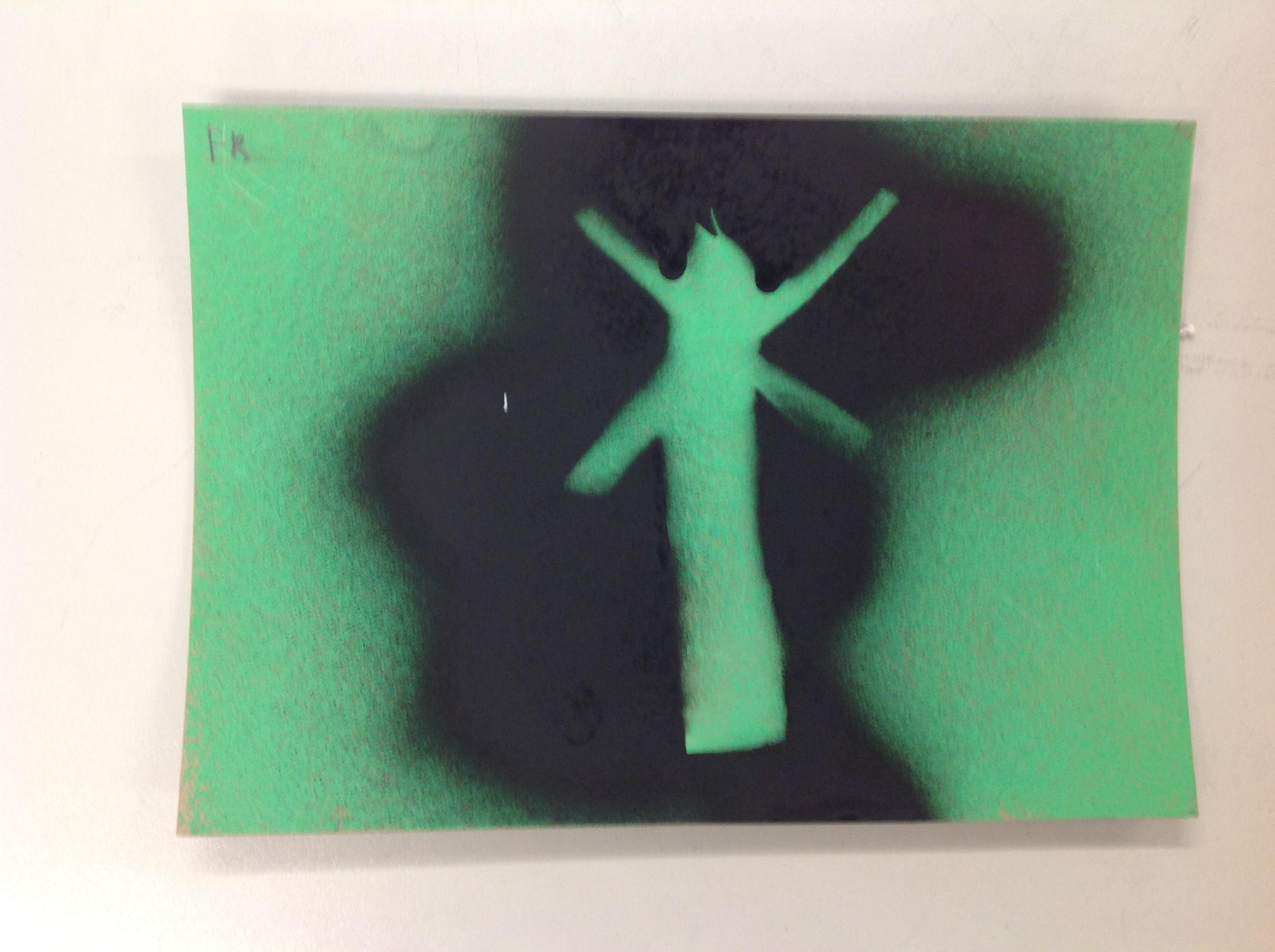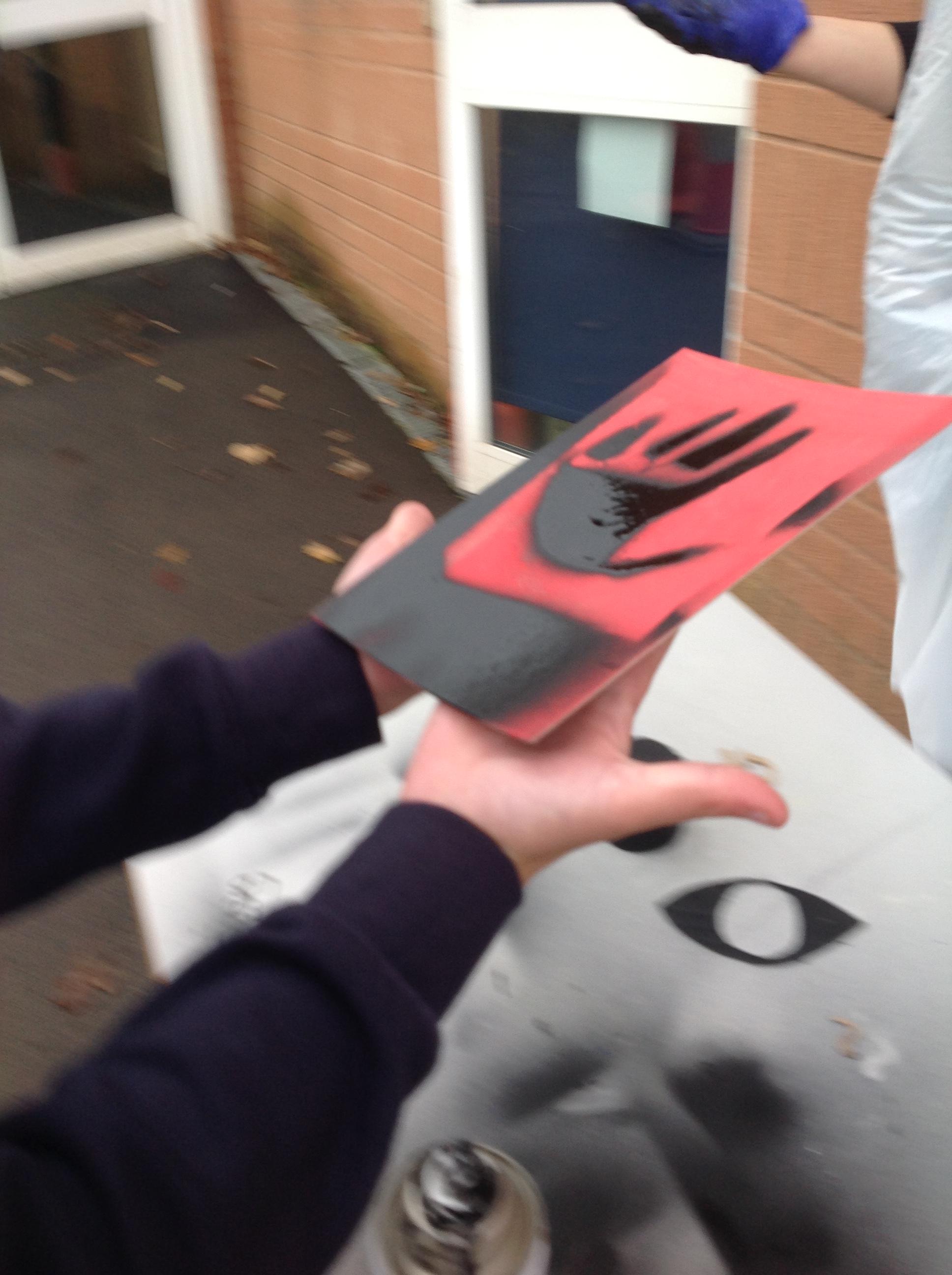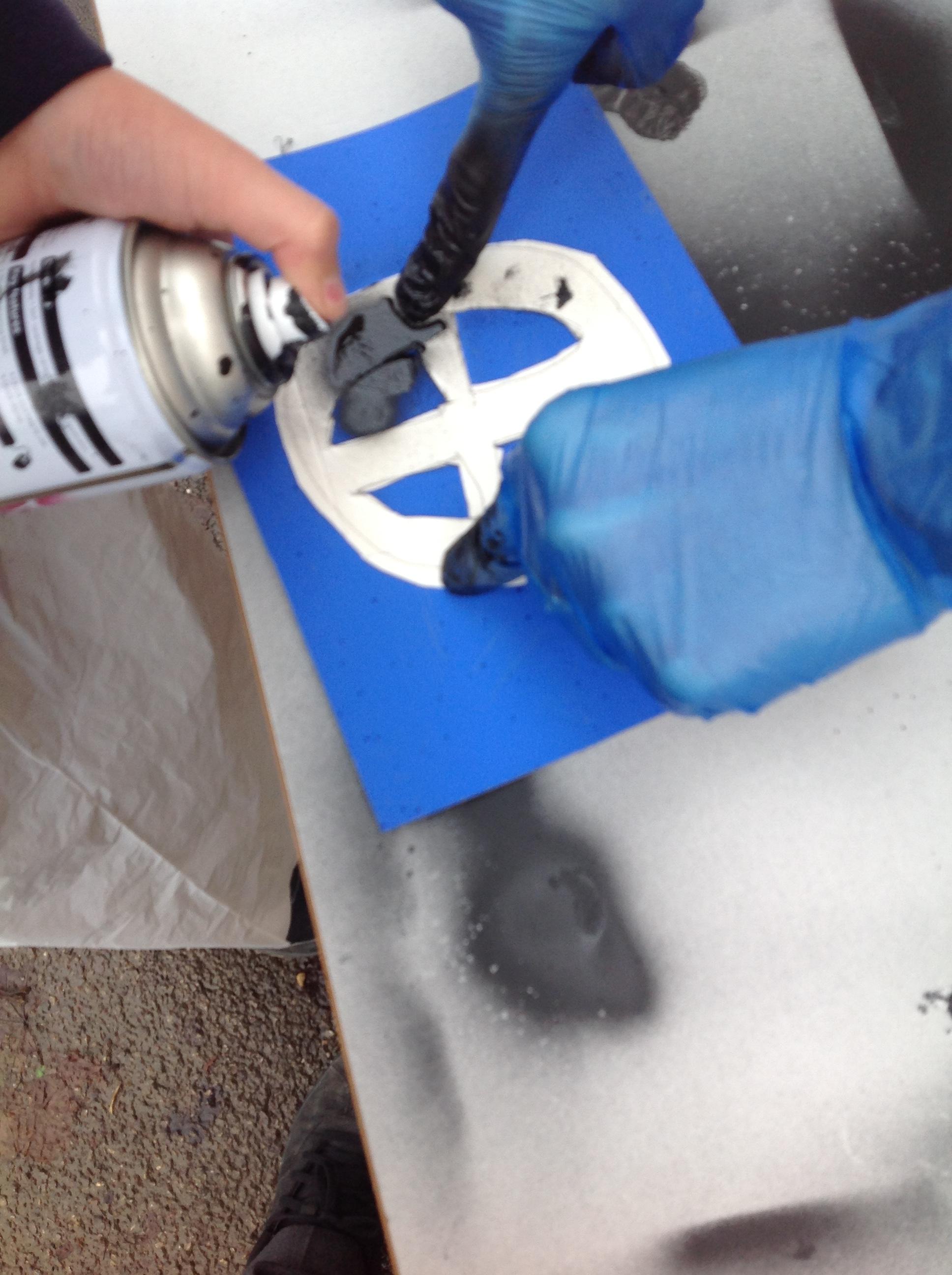 Because Banksy uses stencils, we decided to use this approach as well. This was much harder than we thought but we persevered and managed to do it. We were so impressed with what we achieved and so was Miss CJ. Take a look at some of our designs.