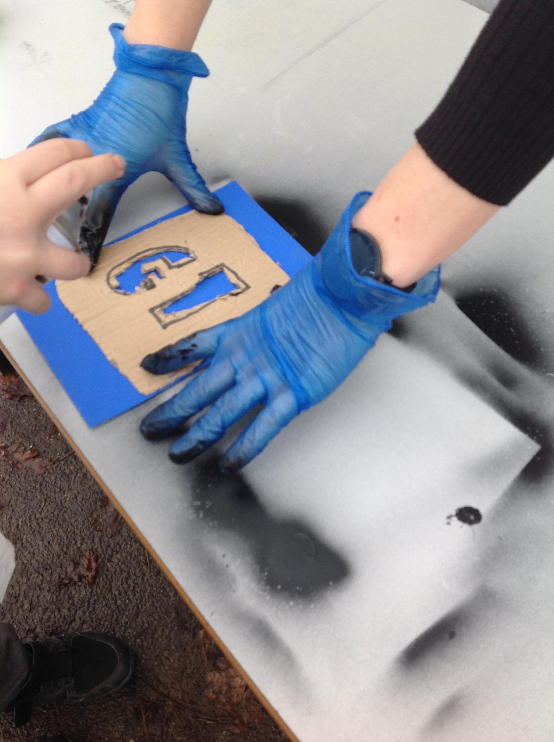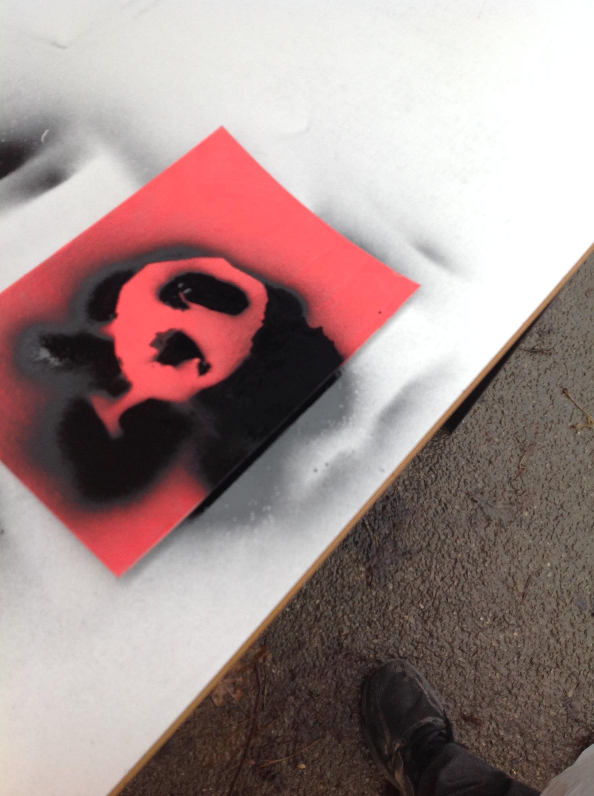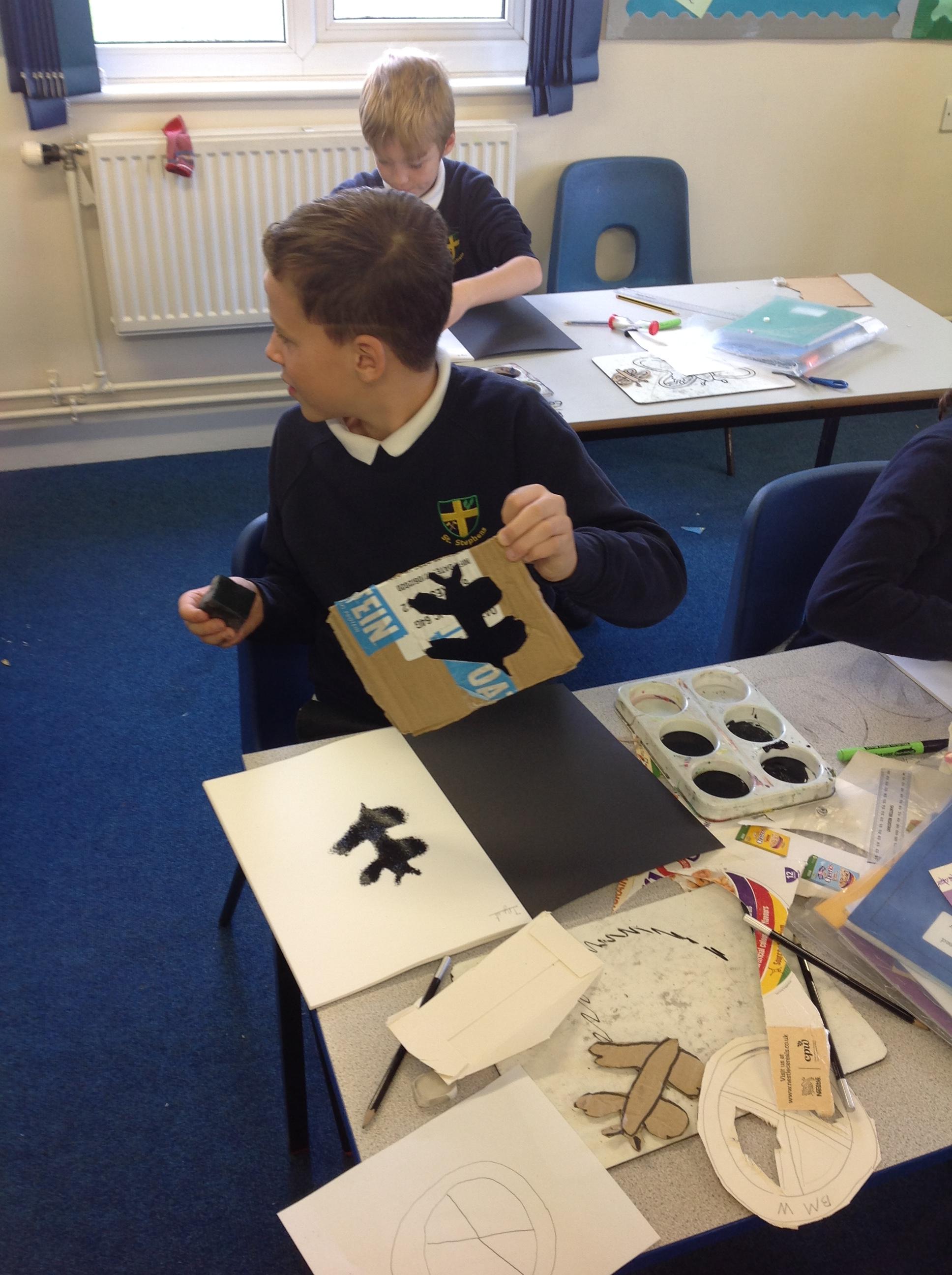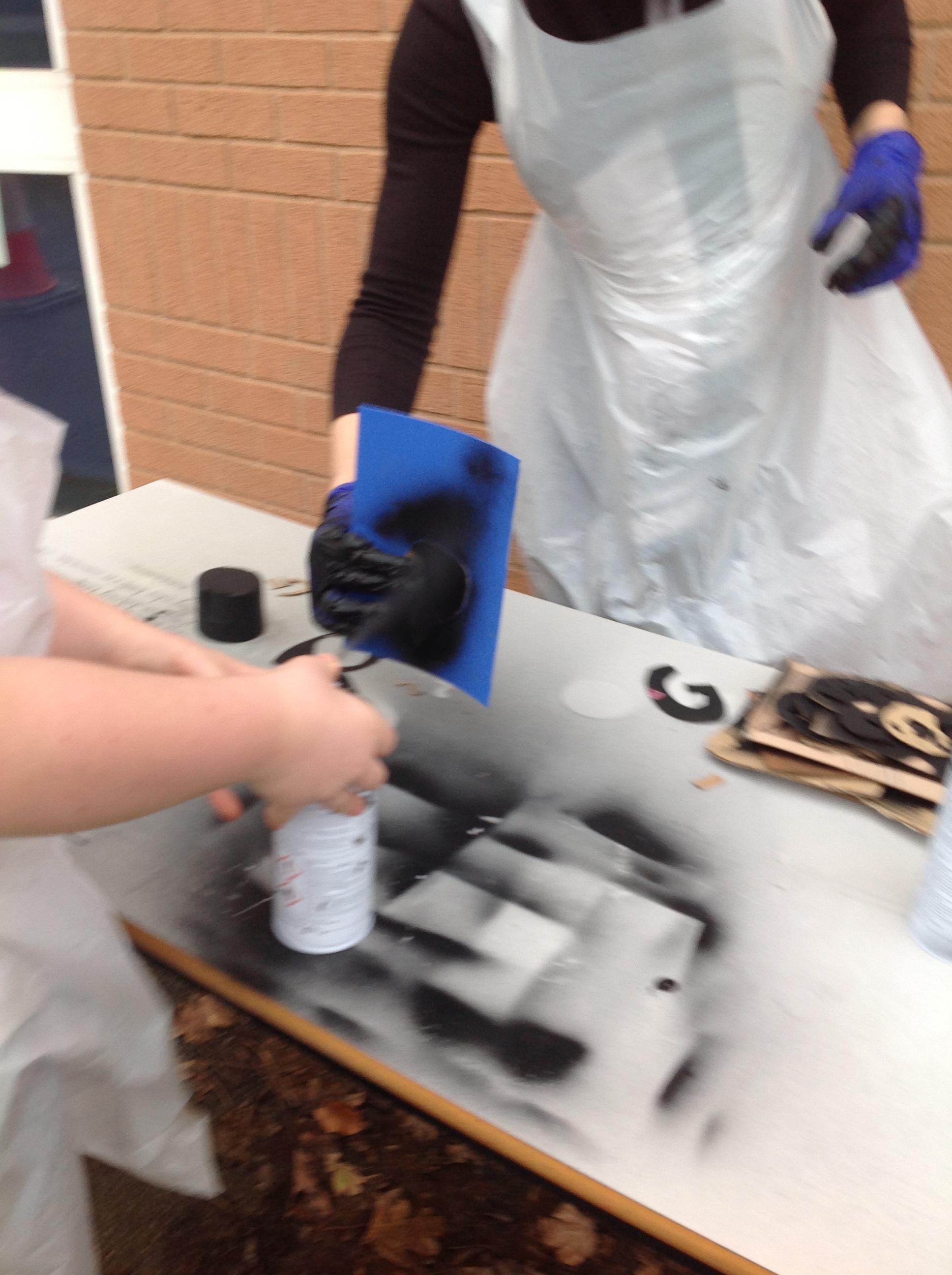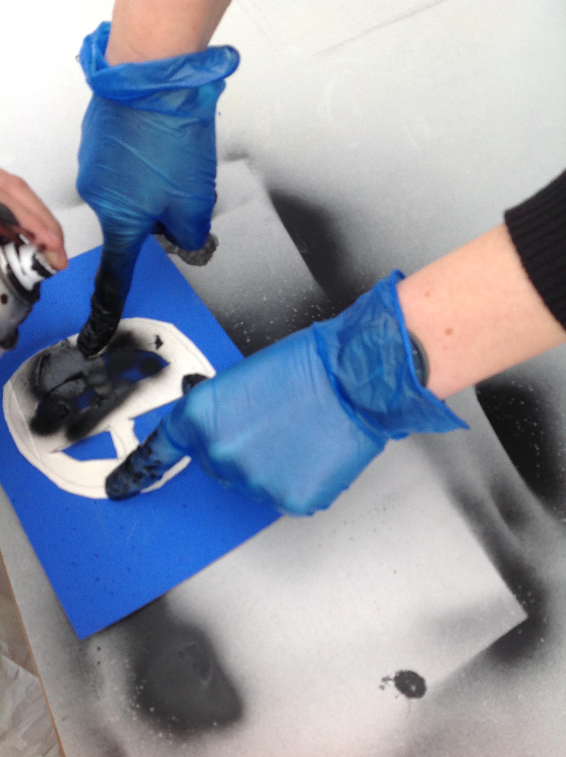 Because Banksy uses stencils, we decided to use this approach as well. This was much harder than we thought but we persevered and managed to do it. We were so impressed with what we achieved and so was Miss CJ. Take a look at some of our designs.