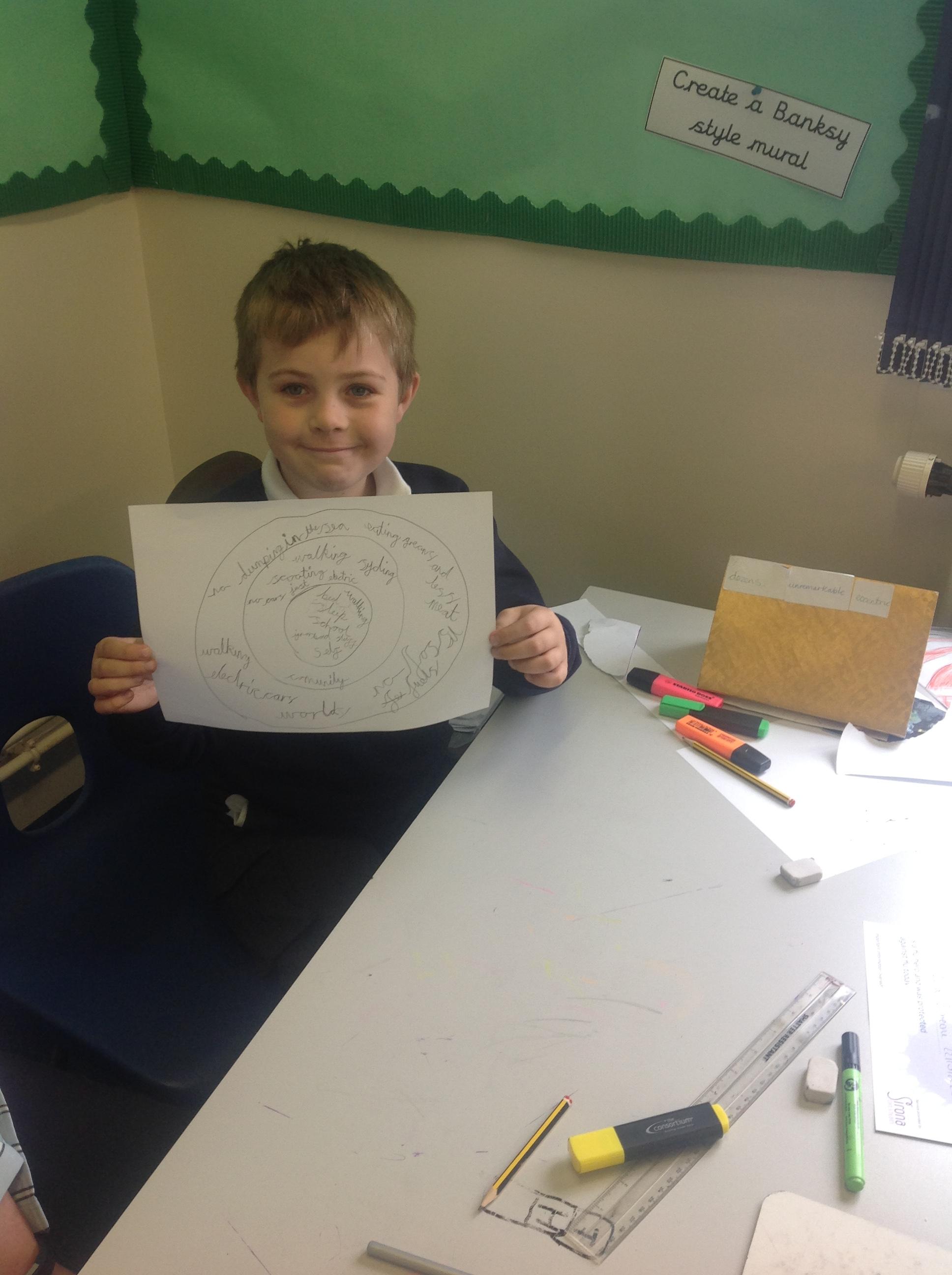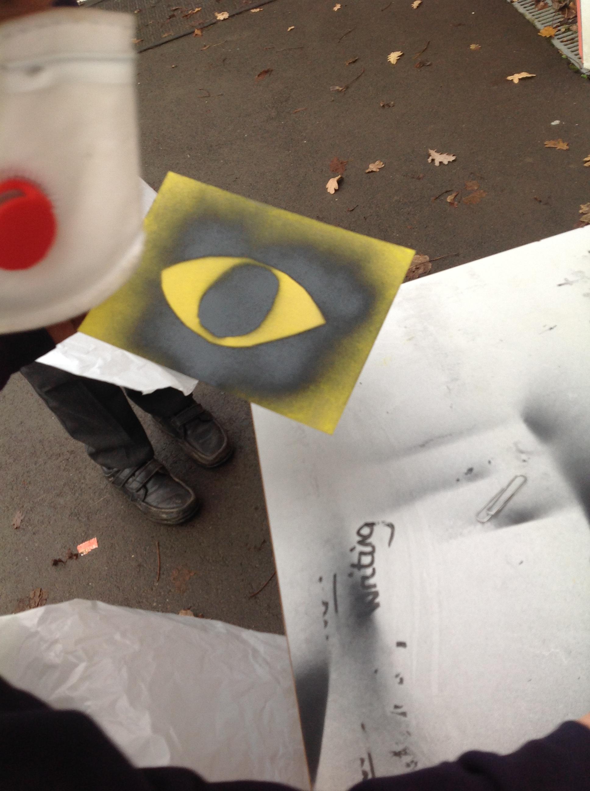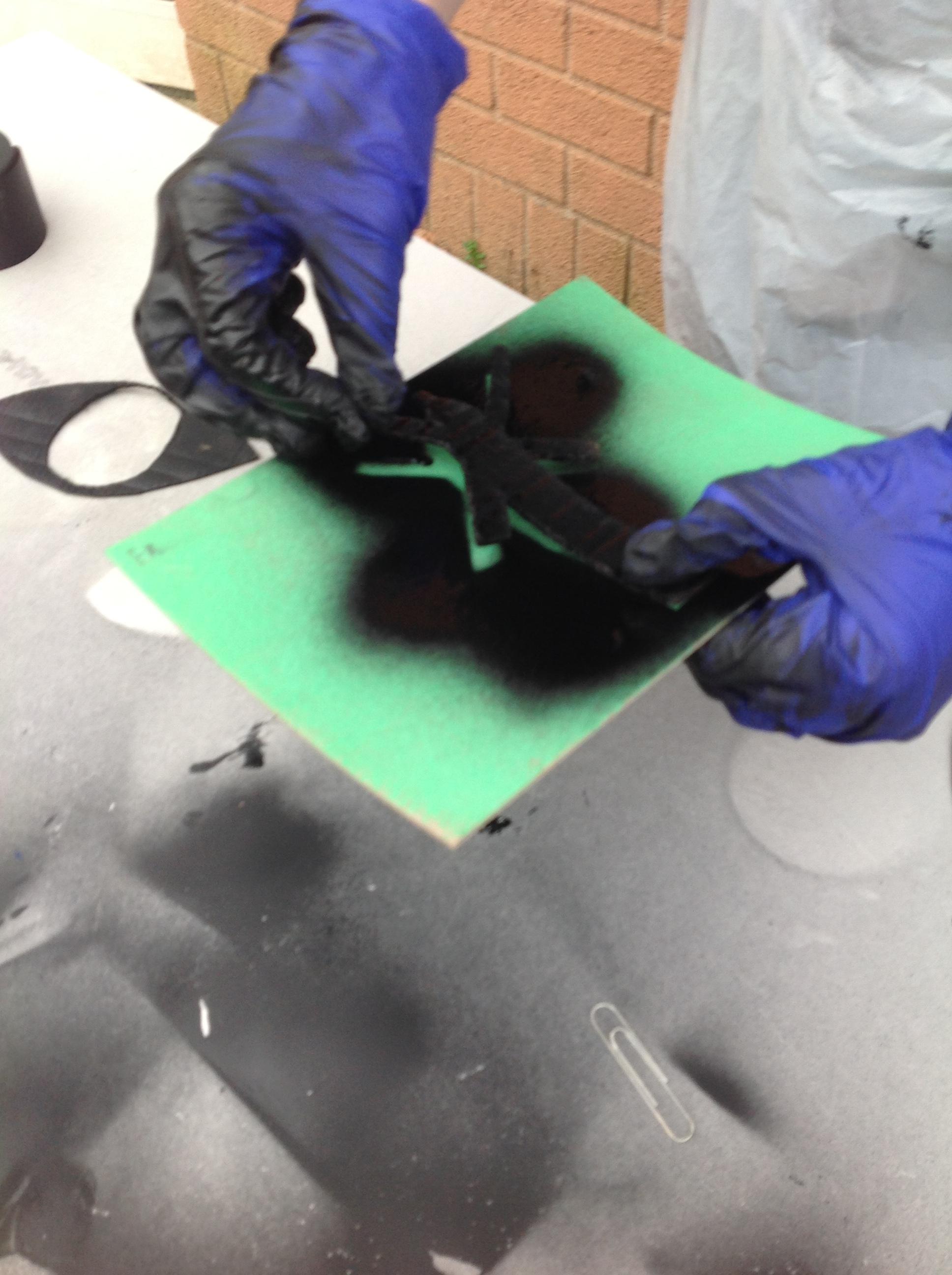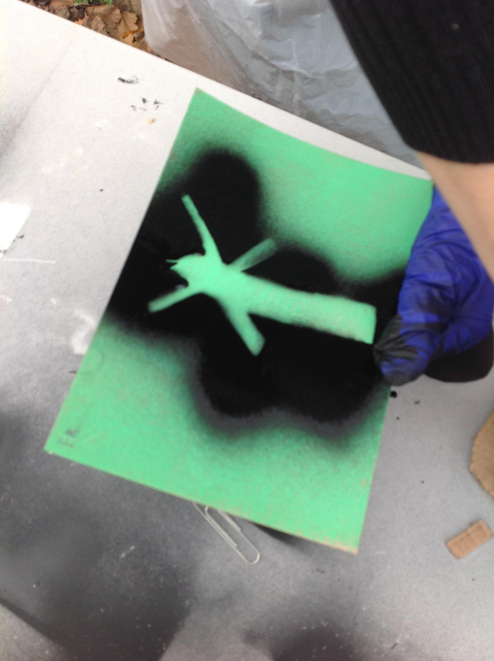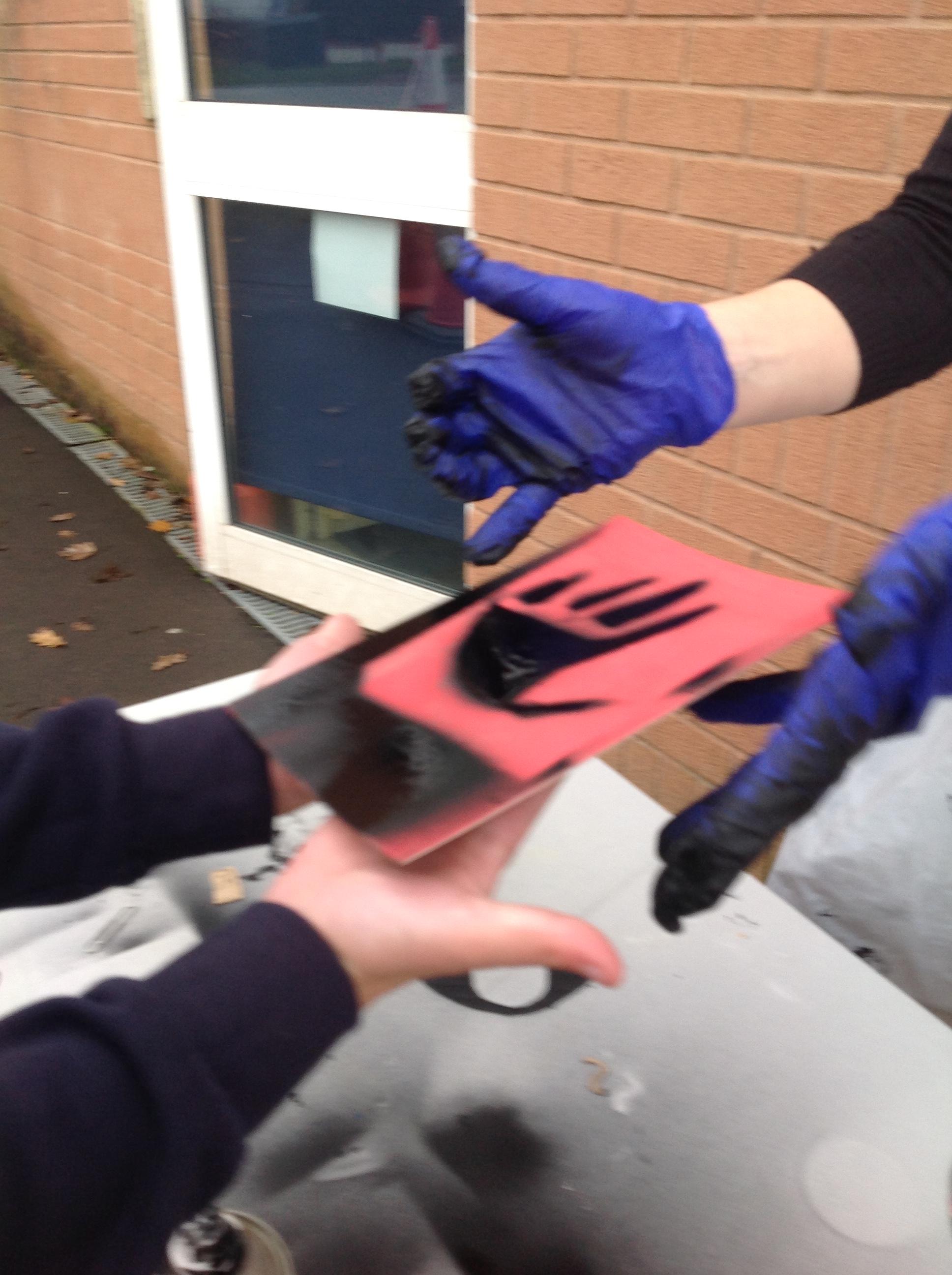 Because Banksy uses stencils, we decided to use this approach as well. This was much harder than we thought but we persevered and managed to do it. We were so impressed with what we achieved and so was Miss CJ. Take a look at some of our designs.