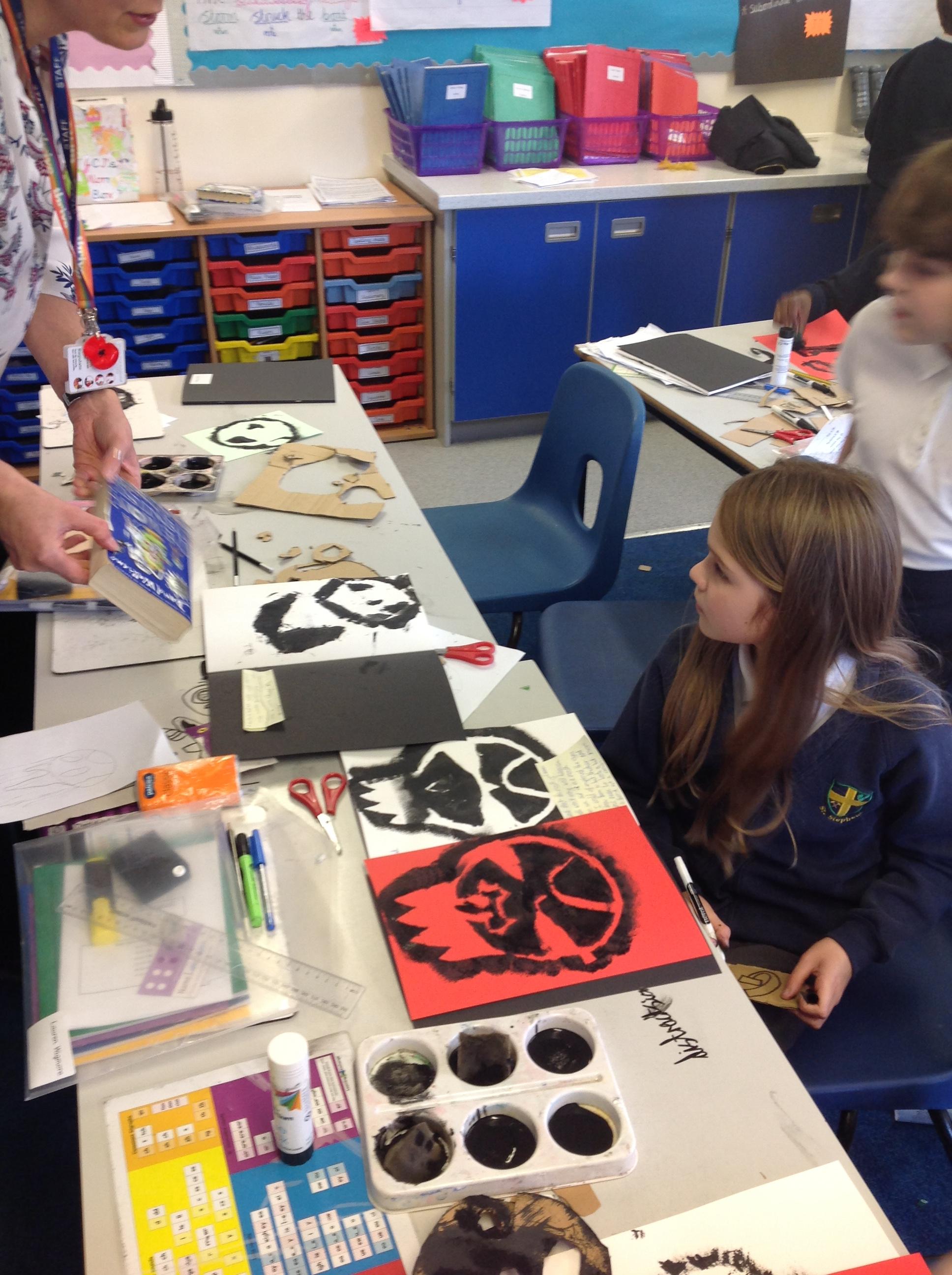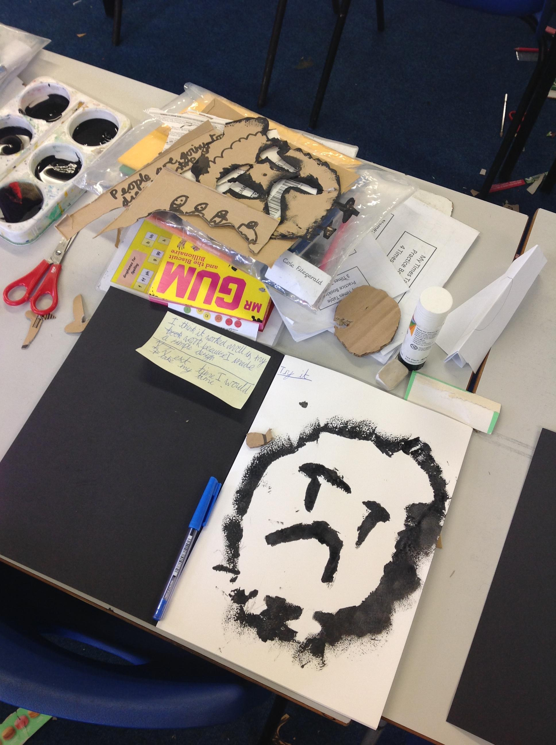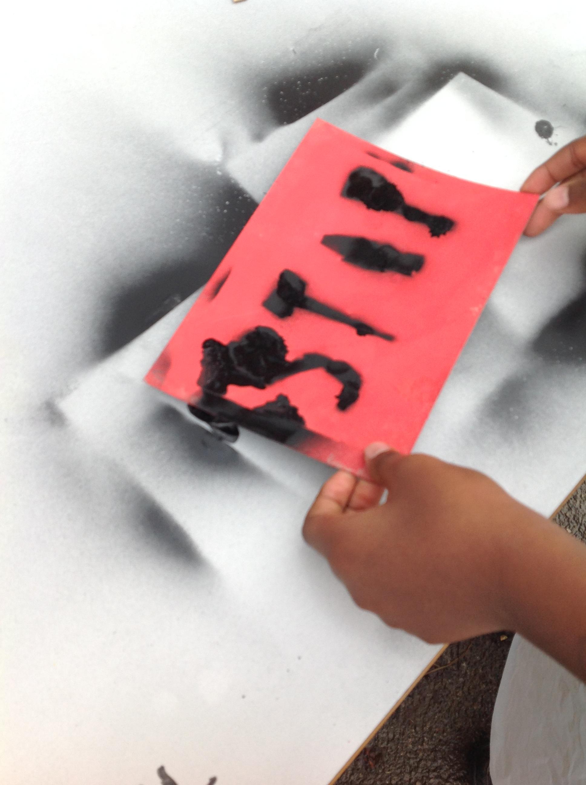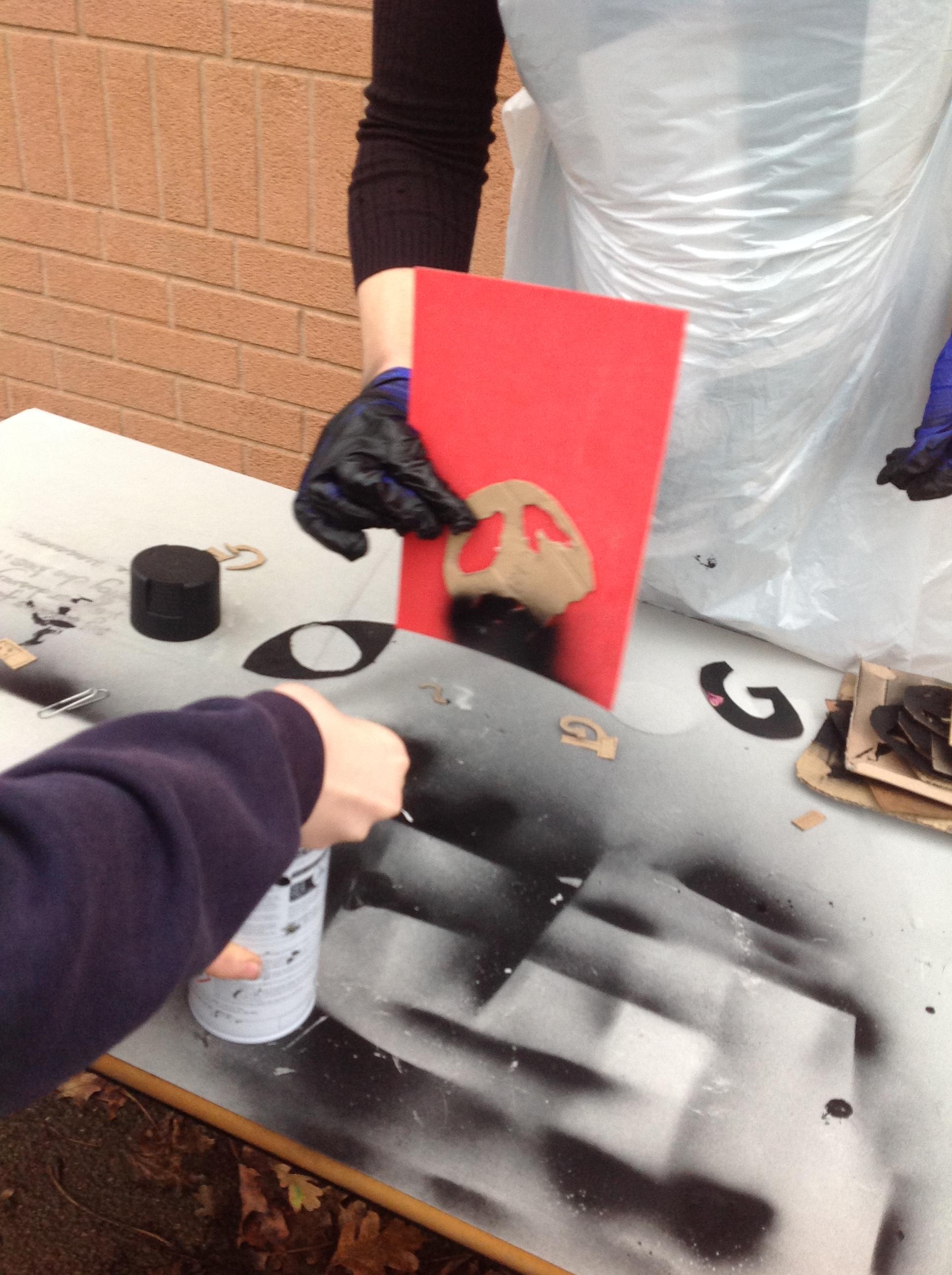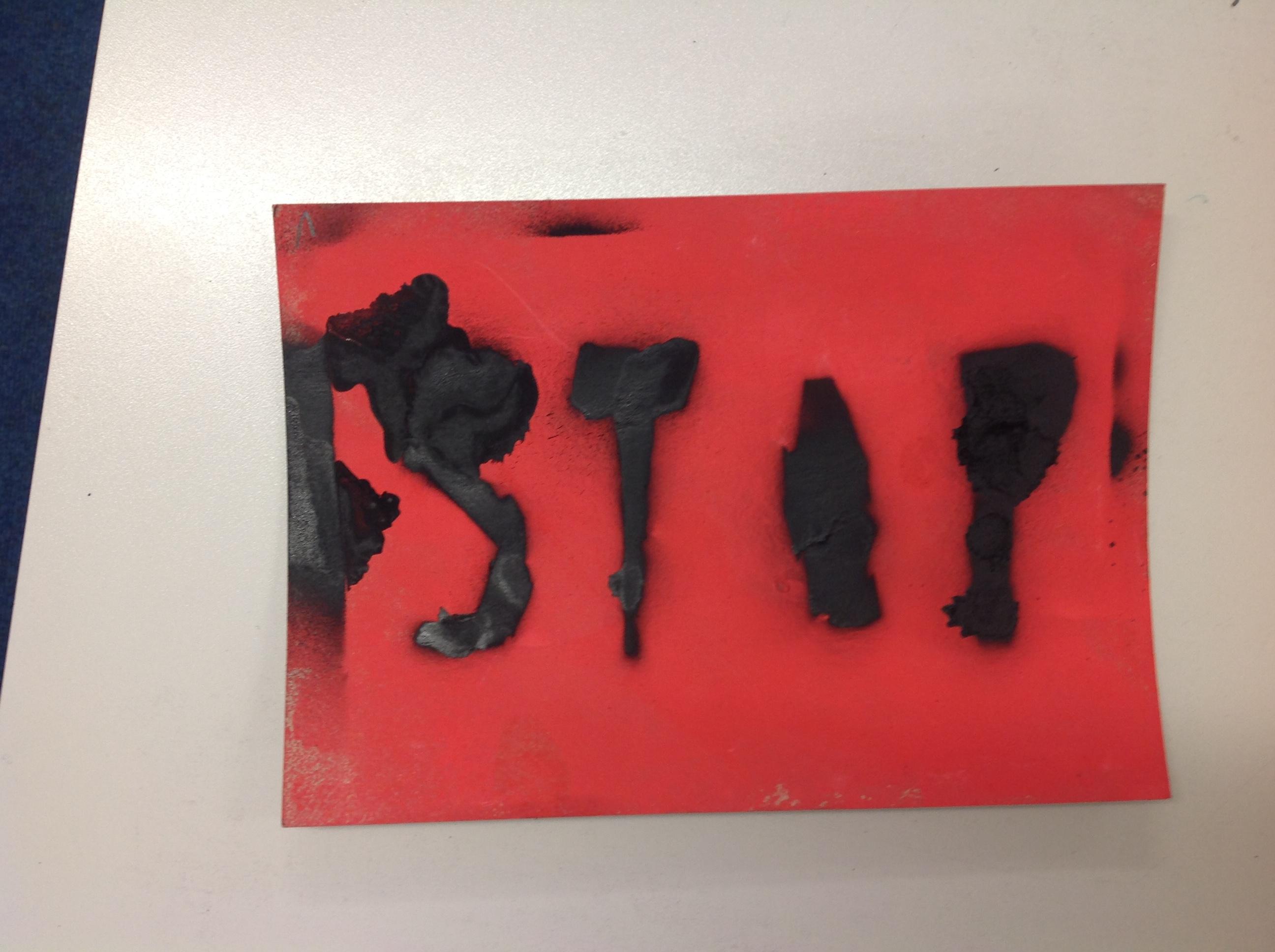 Because Banksy uses stencils, we decided to use this approach as well. This was much harder than we thought but we persevered and managed to do it. We were so impressed with what we achieved and so was Miss CJ. Take a look at some of our designs.