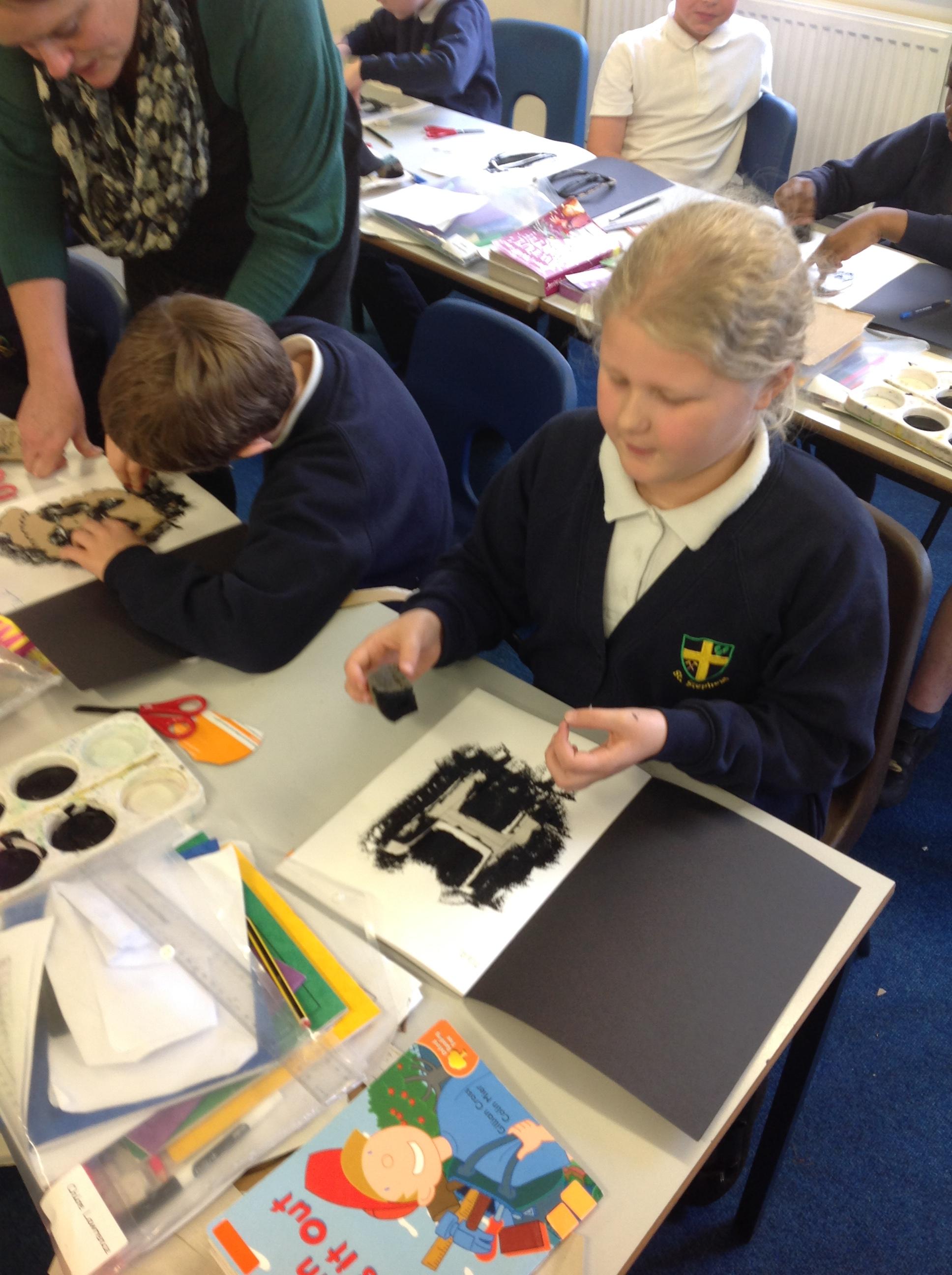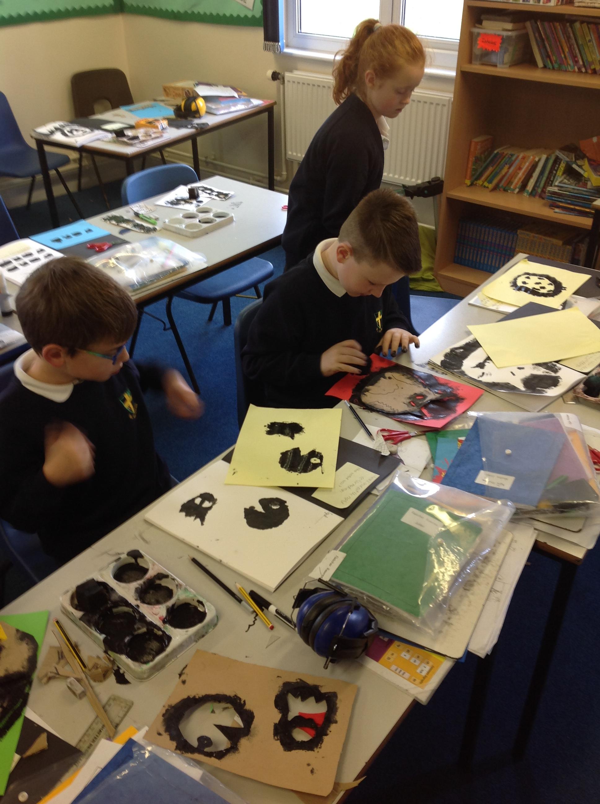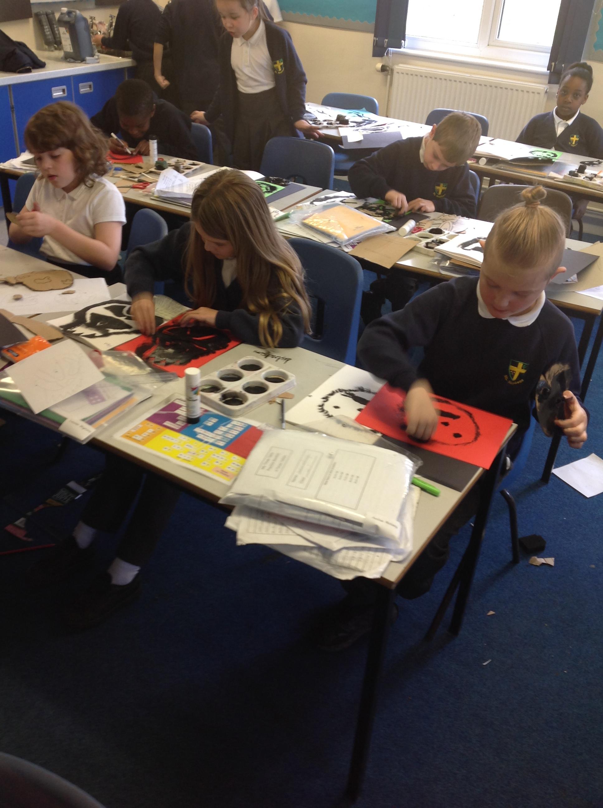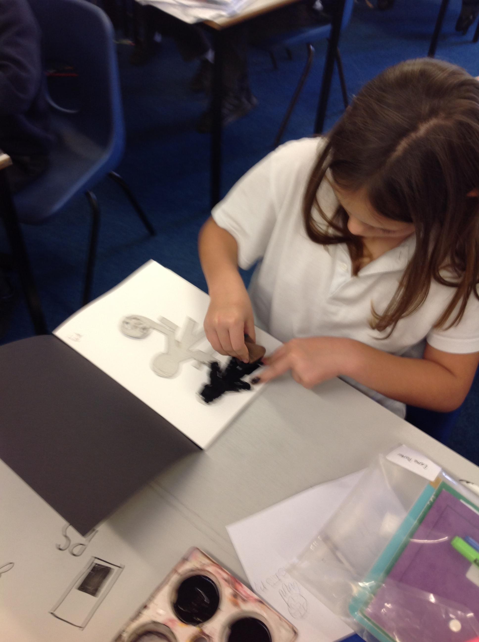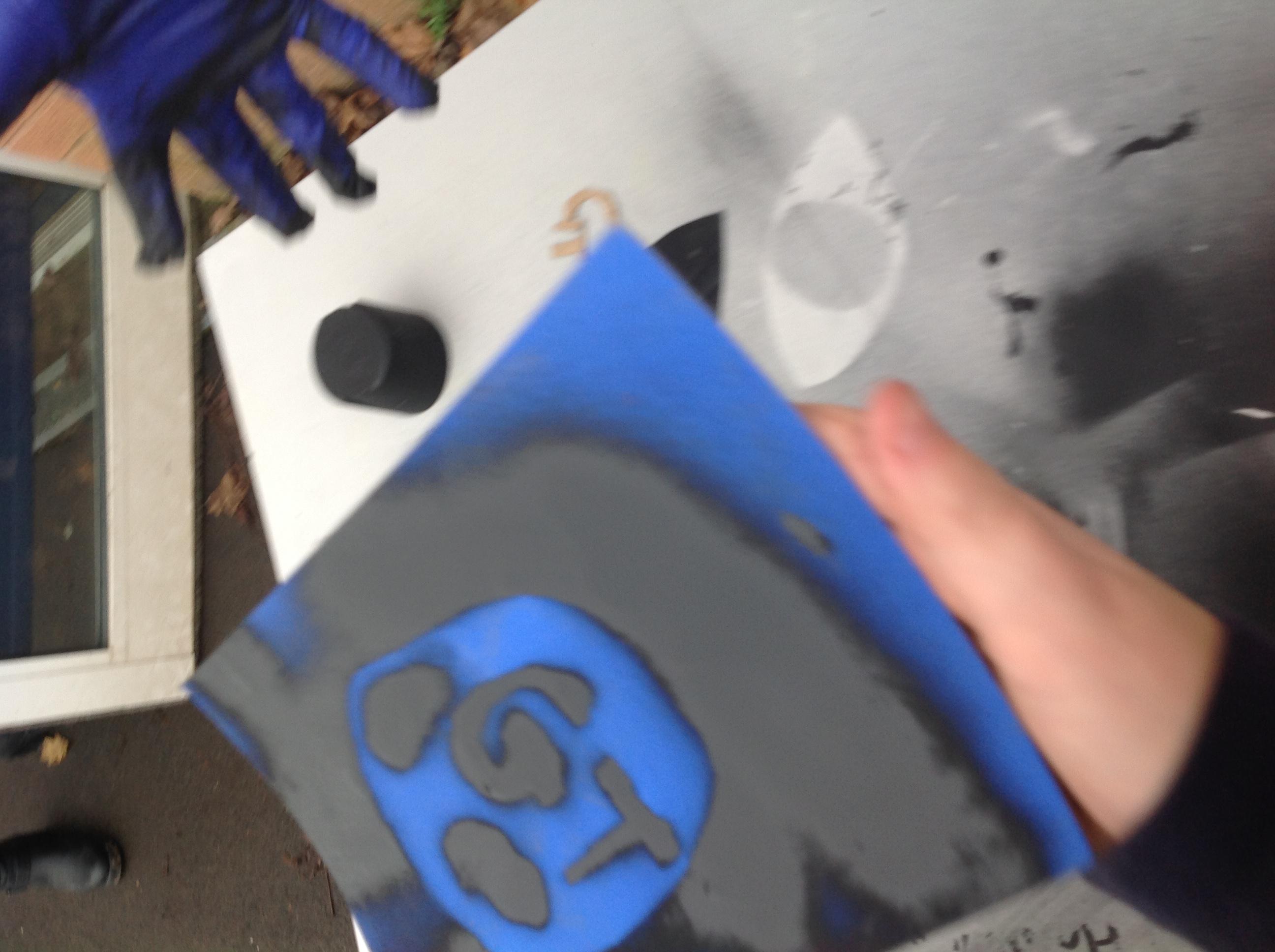 Because Banksy uses stencils, we decided to use this approach as well. This was much harder than we thought but we persevered and managed to do it. We were so impressed with what we achieved and so was Miss CJ. Take a look at some of our designs.