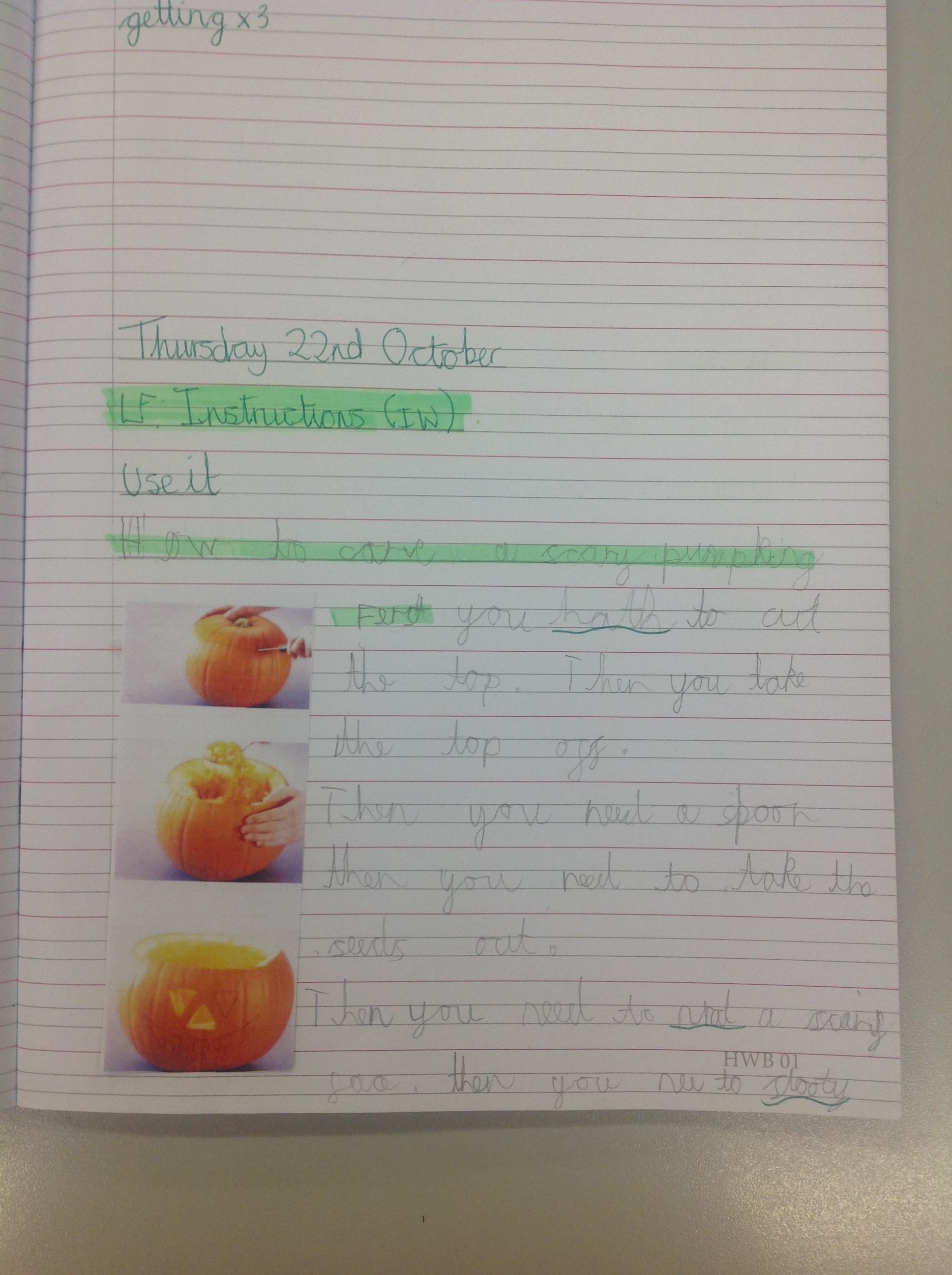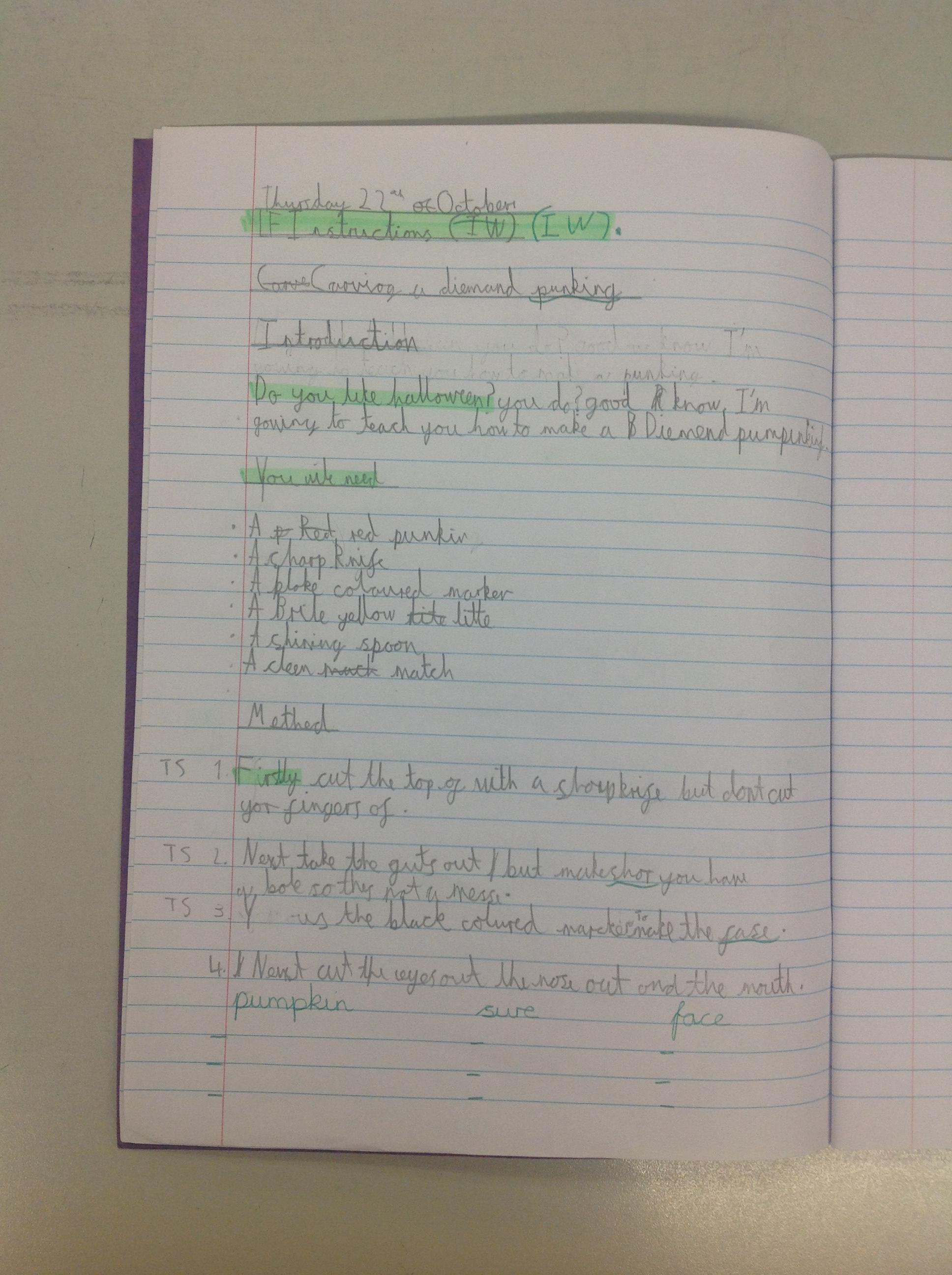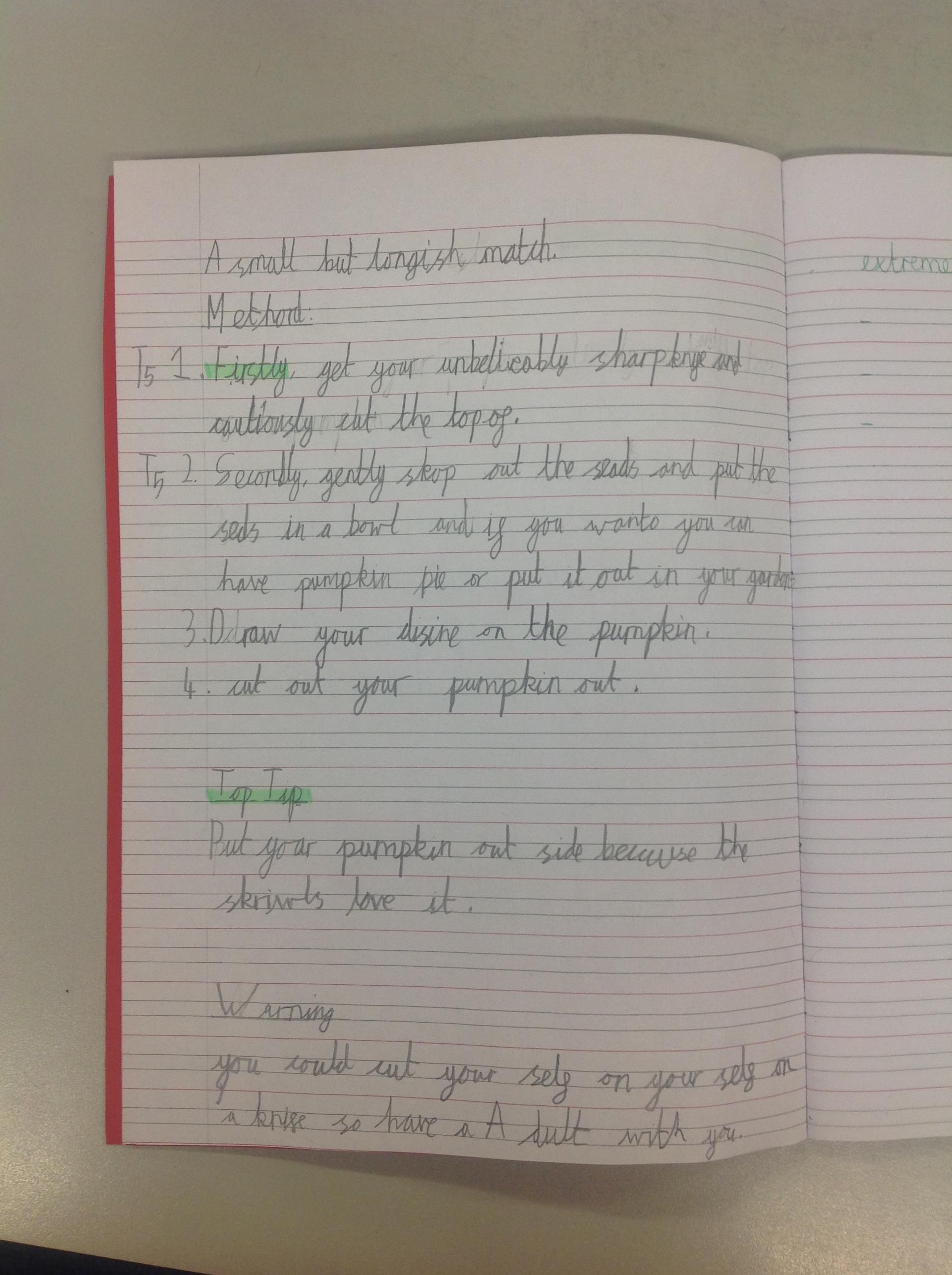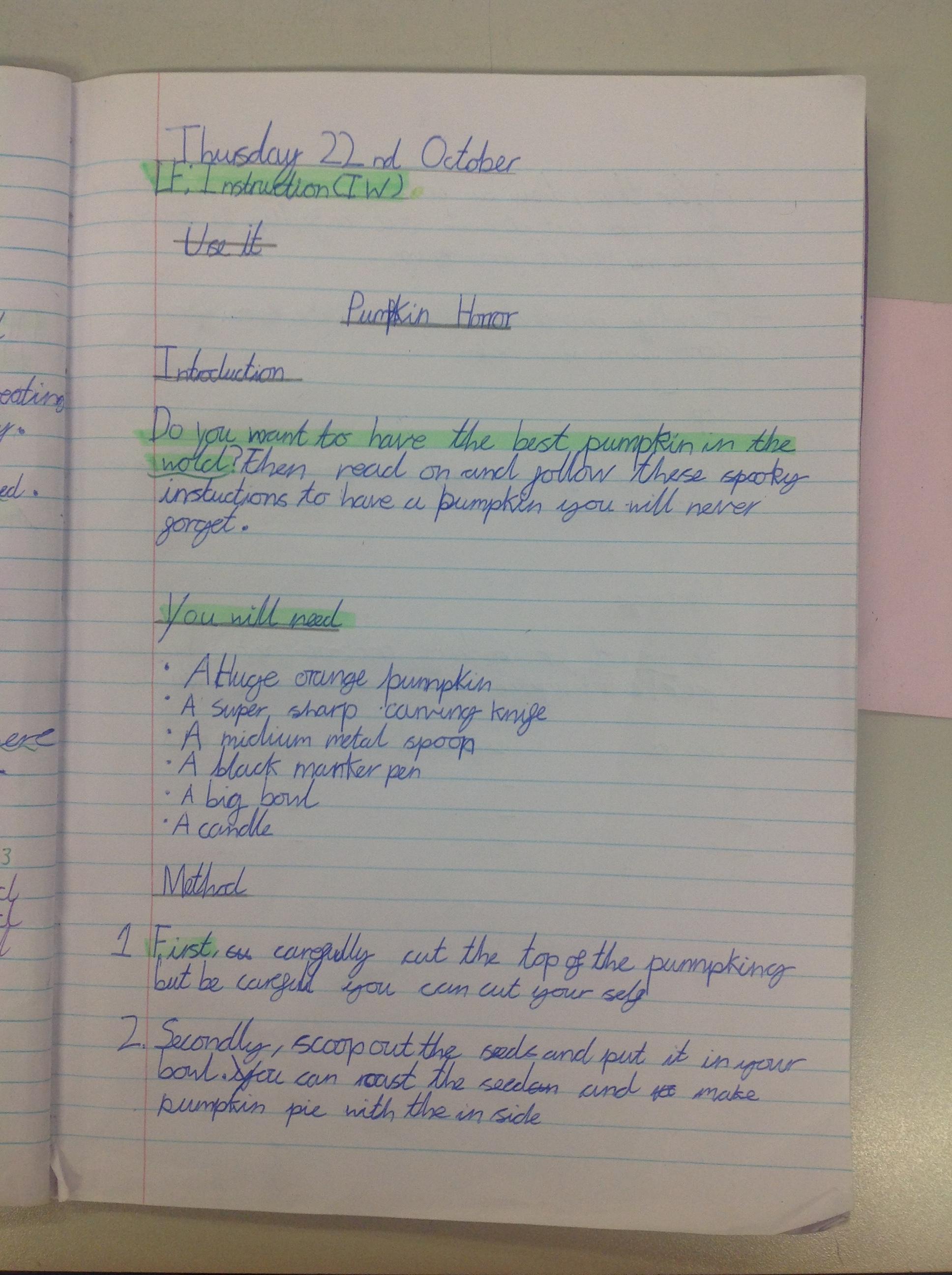 This week, we have been planning and then writing our own set of instructions on how to carve a spooky pumpkin. We thoroughly enjoyed writing this with Halloween coming up soon! The first thing we did was discuss why we have instructions and what we use them for.Then we looked at a range of instructions and what features they all had. After that, we got planning. To support our learning, we watched a video of someone carving a pumpkin and used this to write our method.