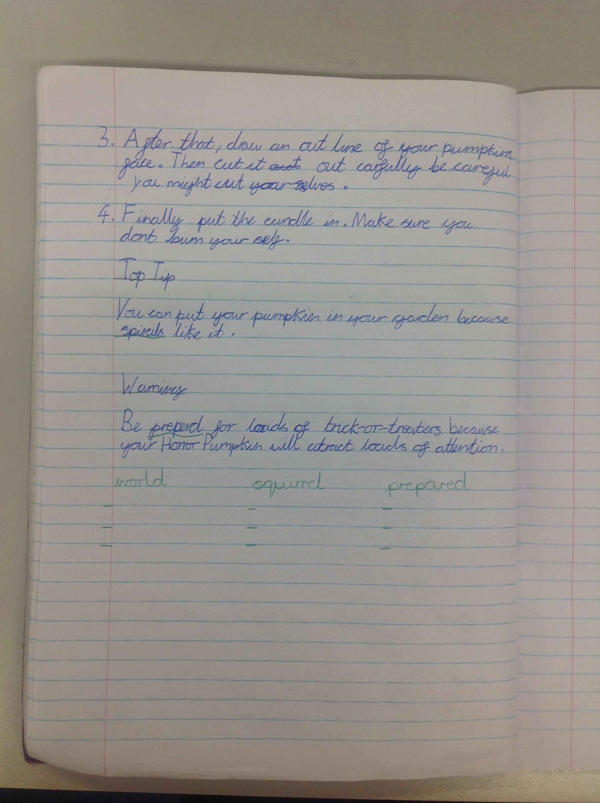 Finally, when we had planned our instructions, we got to write them! We absolutely loved writing these and really hope we get to do more instruction writing in the future! Take a look at some of the fantastic instructions we wrote and maybe you could use them to help when you carve your very own spooky pumpkin!