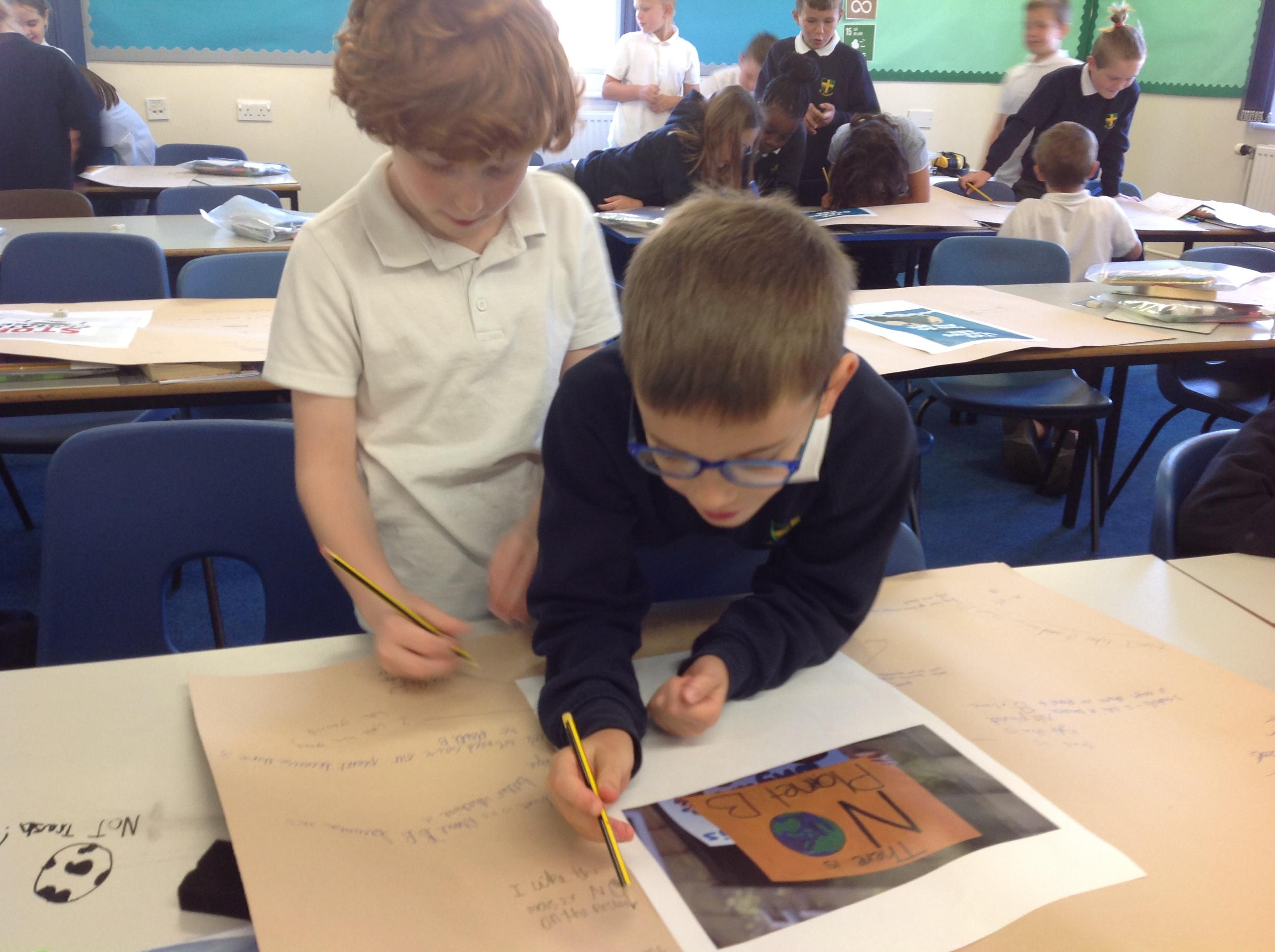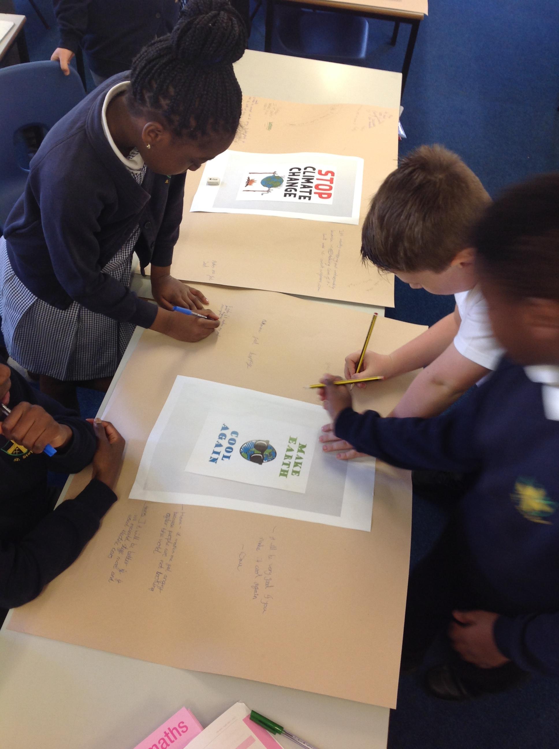 When we had finished break, we came in and looked at a range of protest photos and discussed what we liked about them. We then used some of the ideas we had seen and started to design our own protest posters to help save our planet. In the afternoon, we drew onto the cardboard and started to paint. We had so much fun and didn't want the day to end!