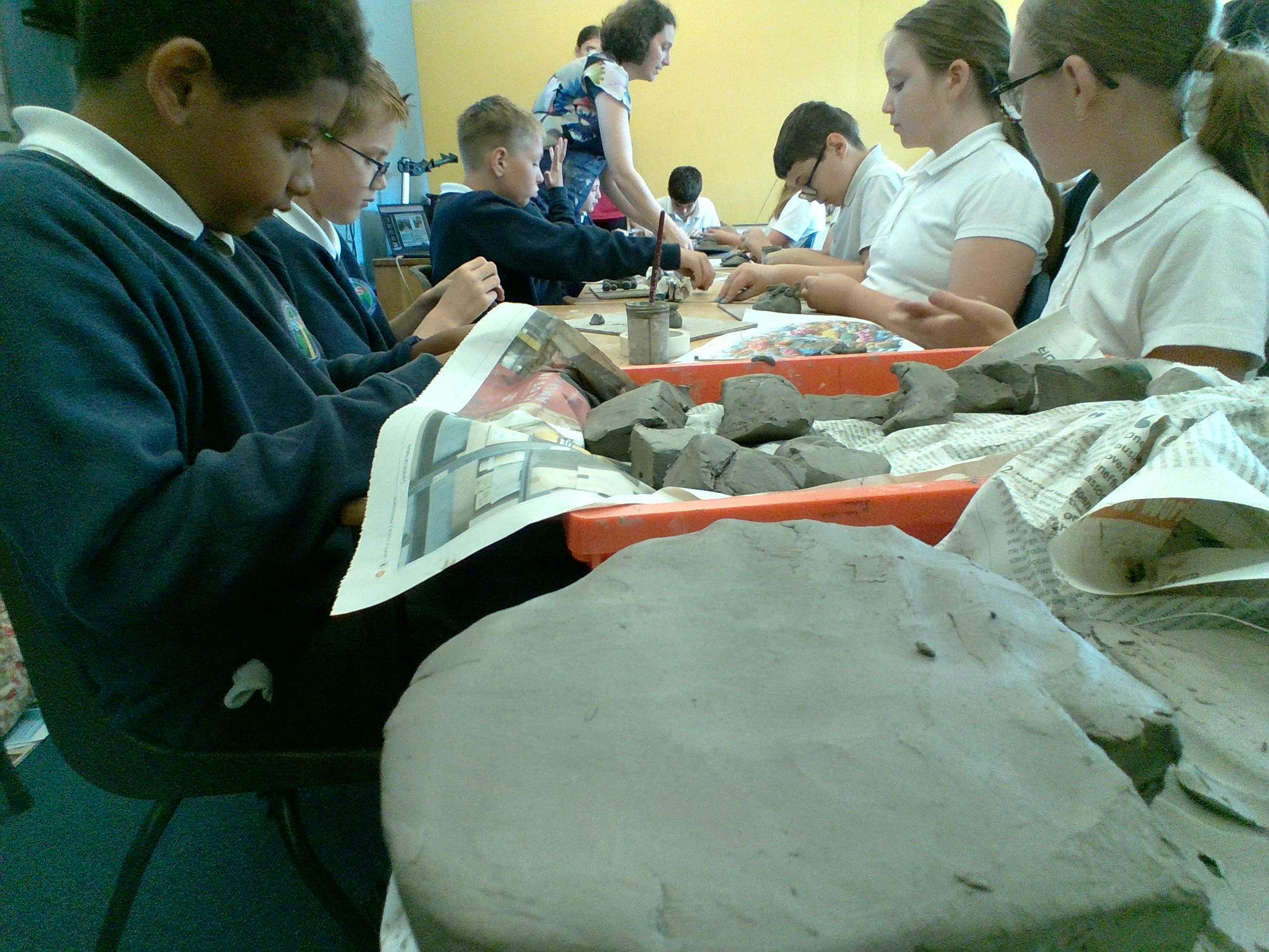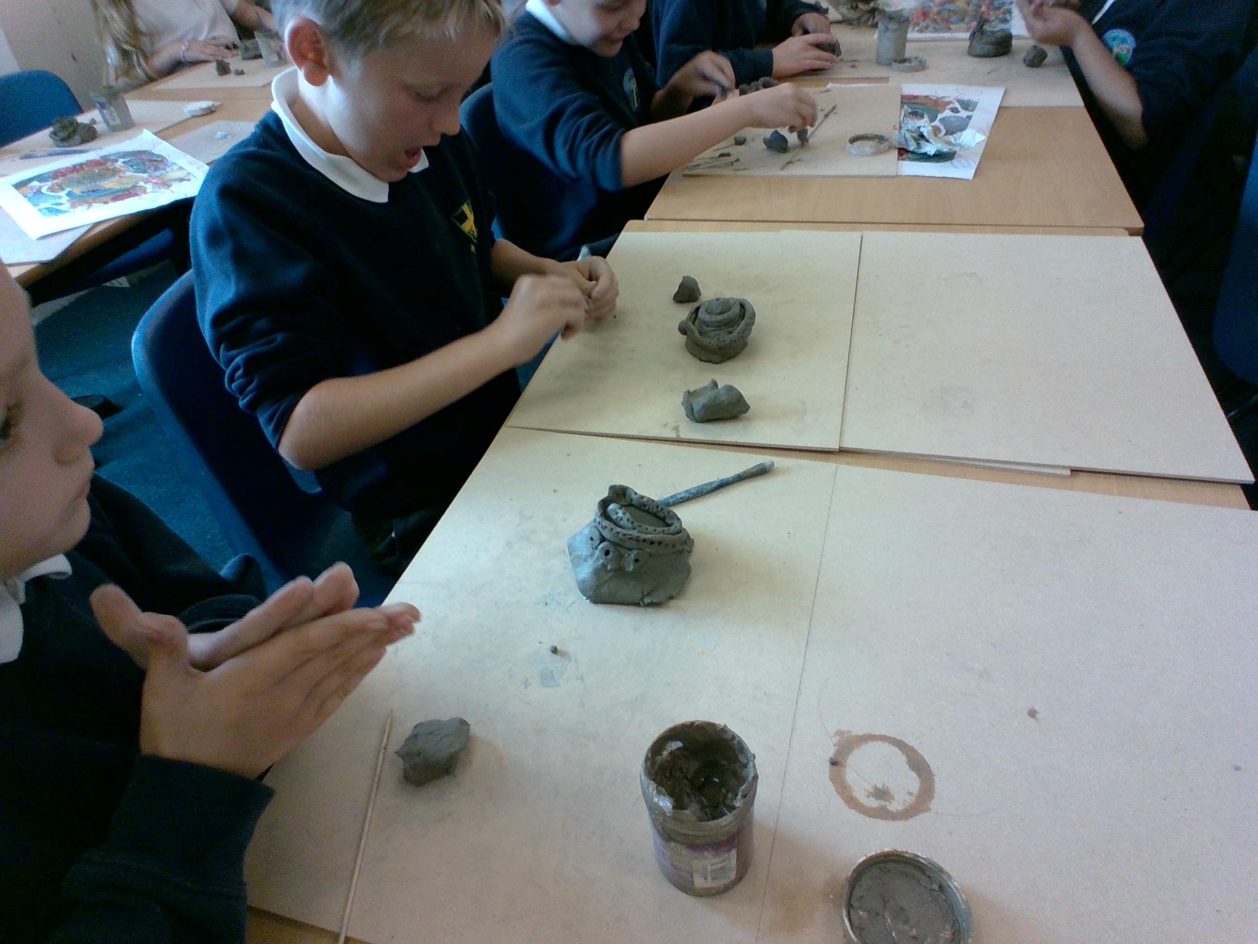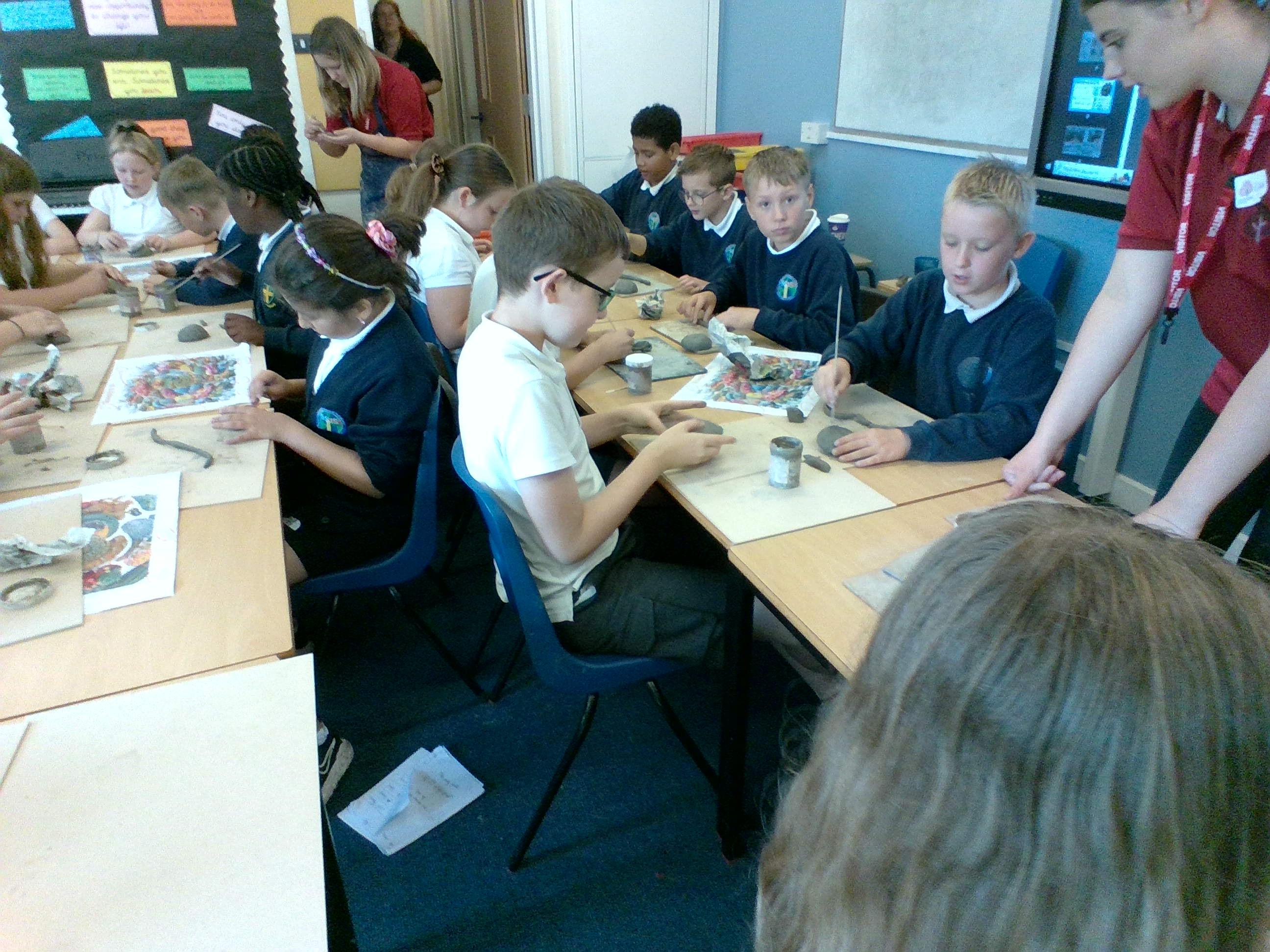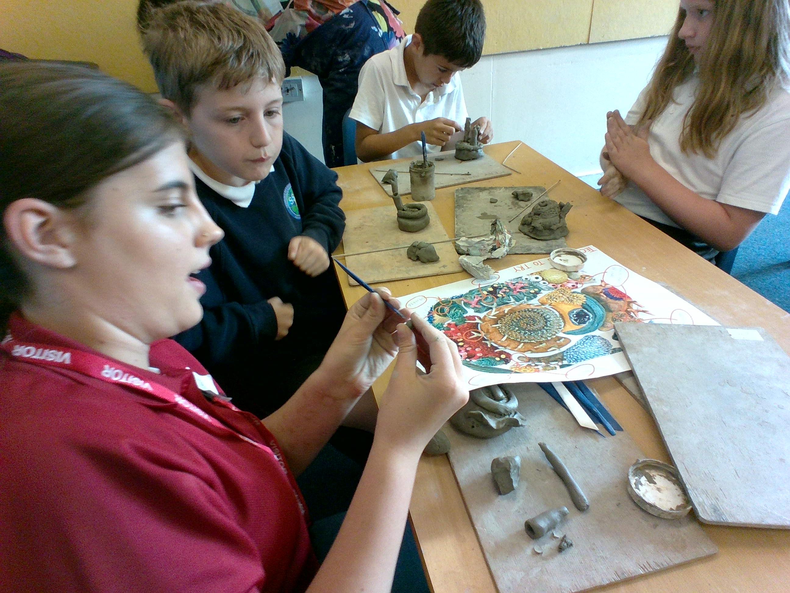 This week we have been artists and practising our drawing skills. We were lucky enough to be joined by Mr Taylor who taught us how to draw cartoons and he explained that most drawings, especially cartoons can be broken down into smaller, simple shapes. This helped us create our own cartoon people and then we followed some videos explaining how to draw cartoon animals and buildings. We also used nature to create art inspired by the artist Andy Goldsworthy! We also had a visit from Mangotsfield Secondary School and their Year 9 students, show taught us new pottery skills, making a coral sculpture from clay!