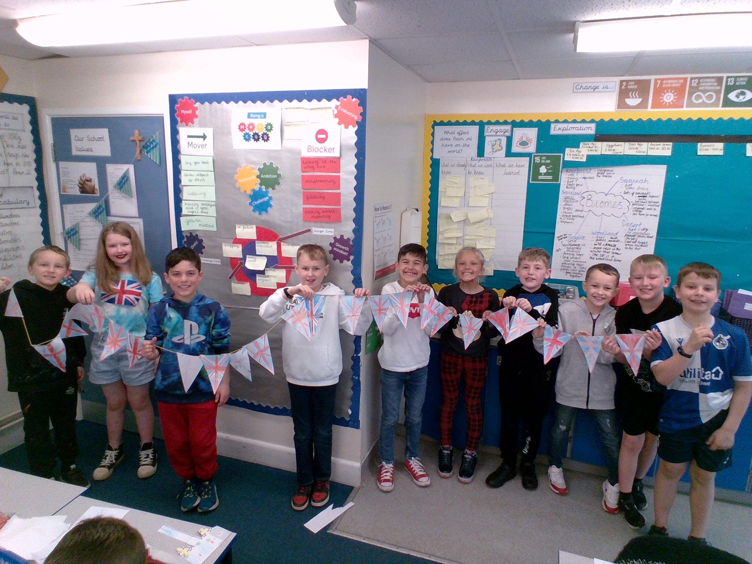 Throughout the school we have been celebrating the coronation of King Charles this upcoming weekend. We made bunting to decorate the hall, crowns fit for Kings and Queens and then we designed a portrait ready to hang in the National Gallery! The children were also able to have their lunch as a year group picnic style.