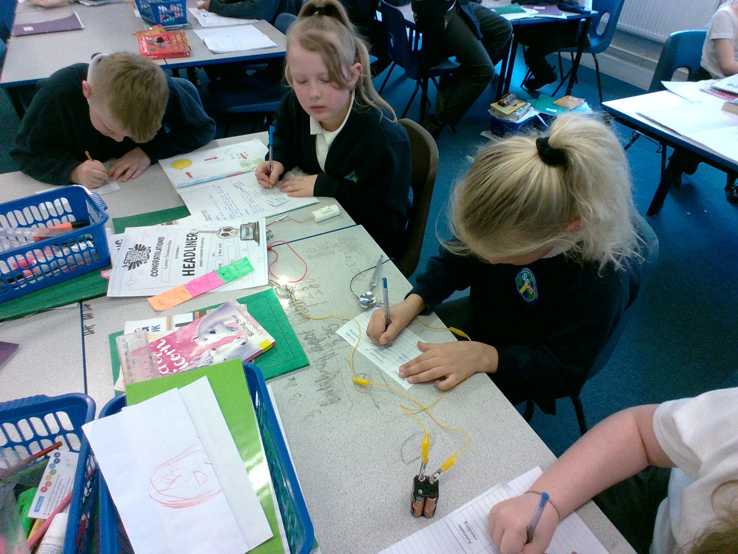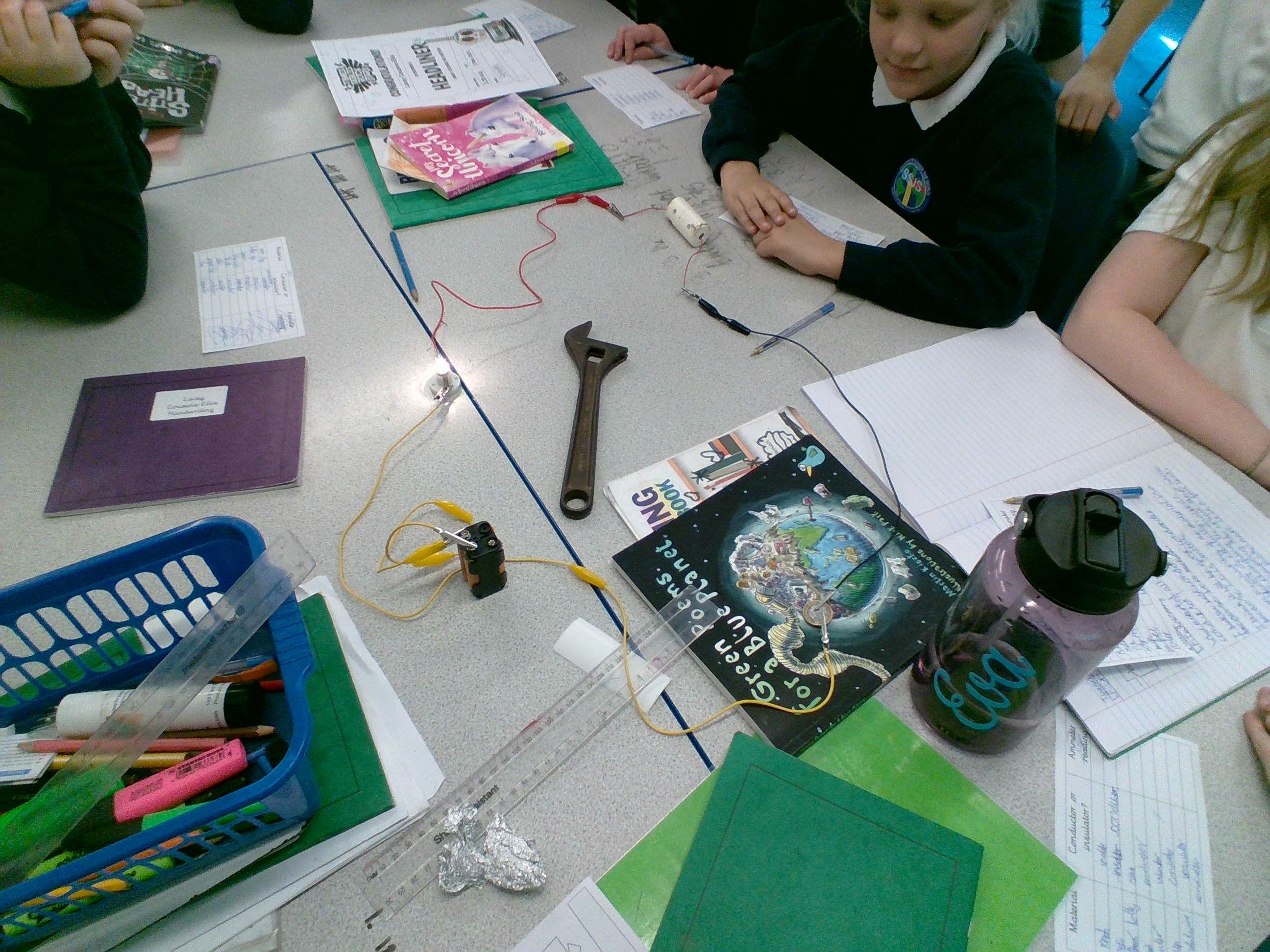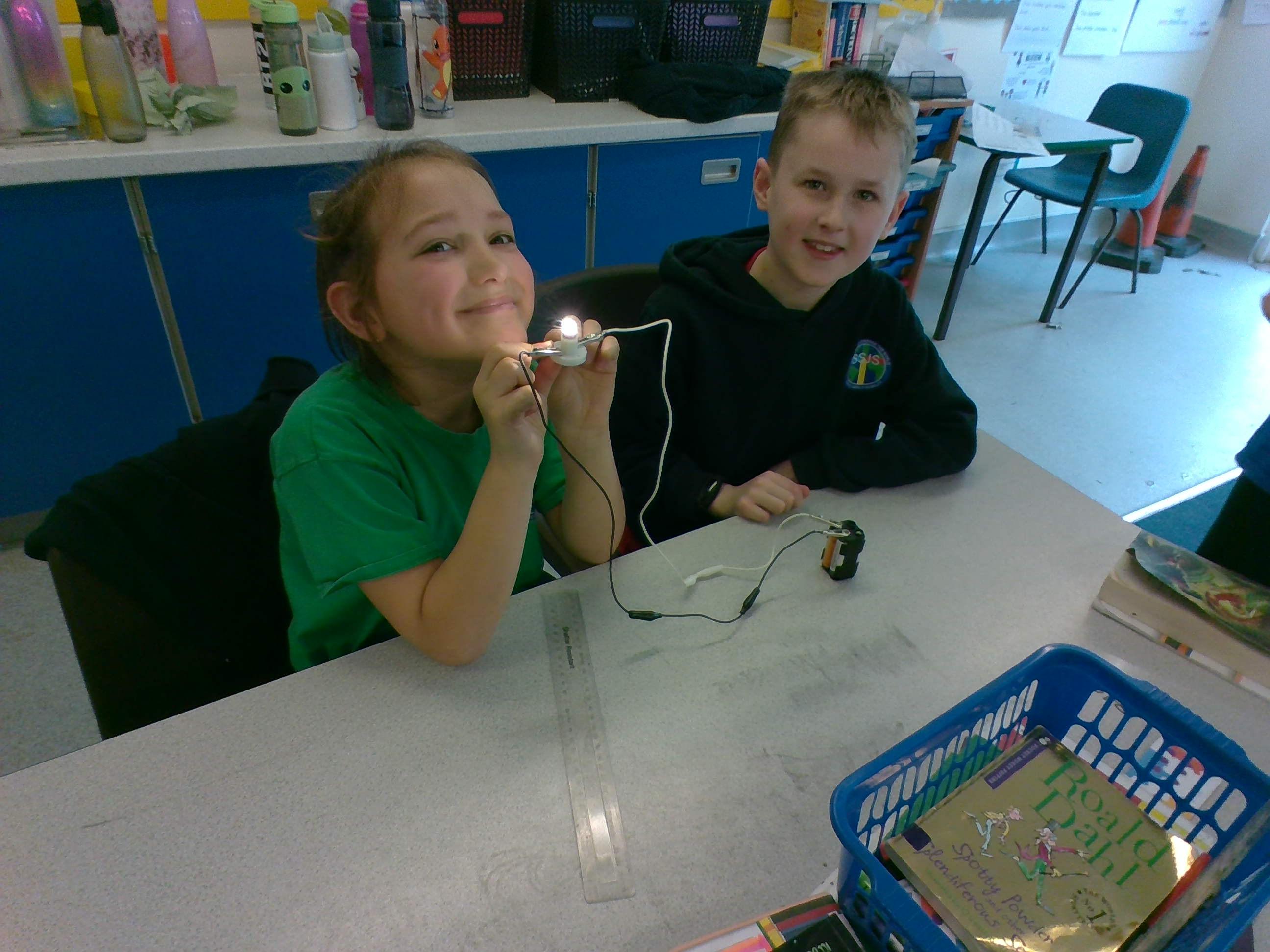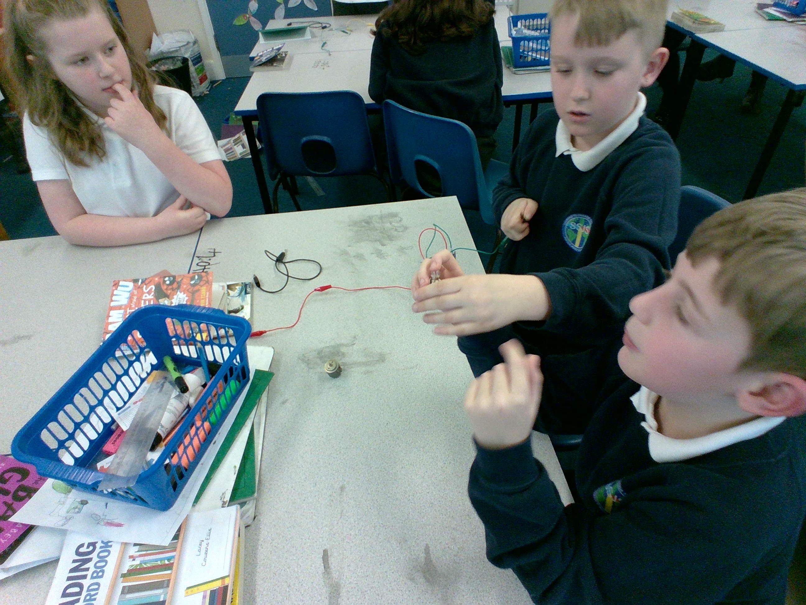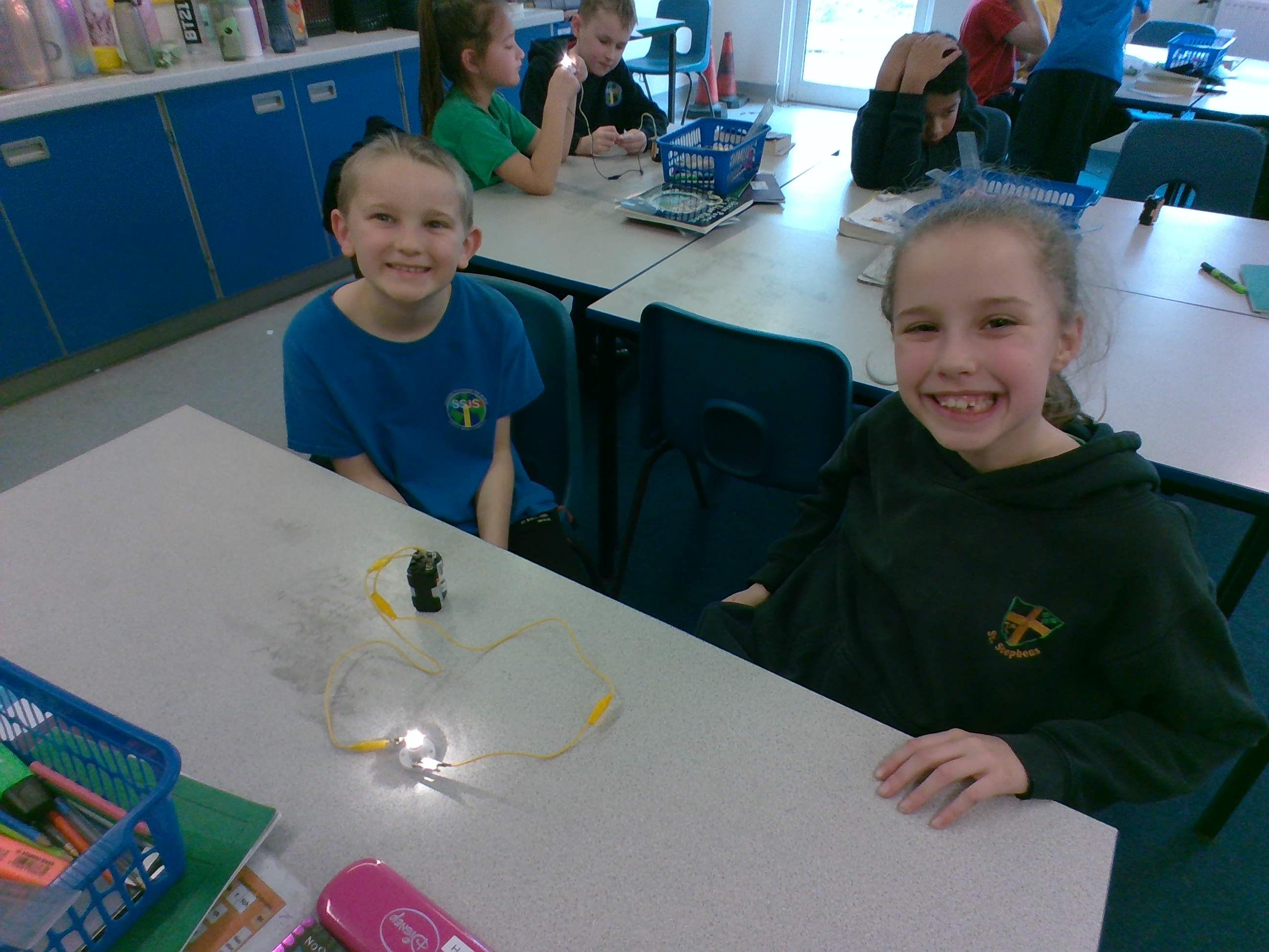 As part of our science week in Year 4, we have been developing our understanding of electricity. We learned about the different types of appliances that use mains electricity and battery. We then had a go at creating our own electric circuits using wires, batteries and bulbs. We now know that the wires in a circuit have a very important role and are made of metal because it is an electrical conductor which means it allows the electric current to flow around the circuit and to the bulb to light it up.