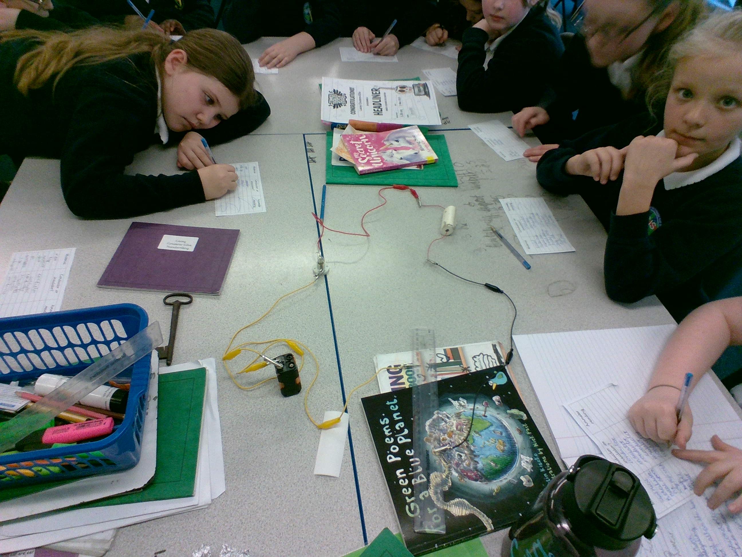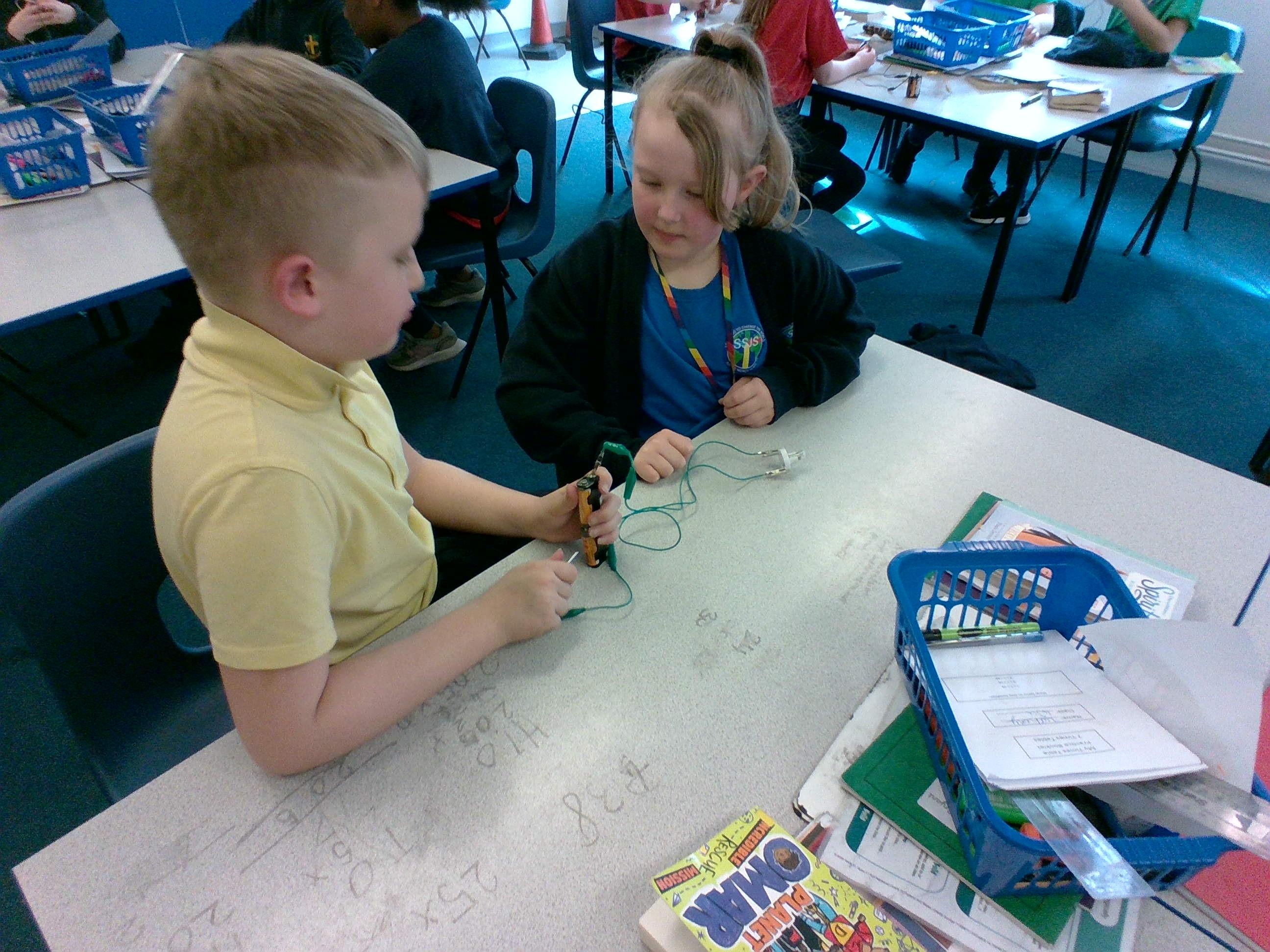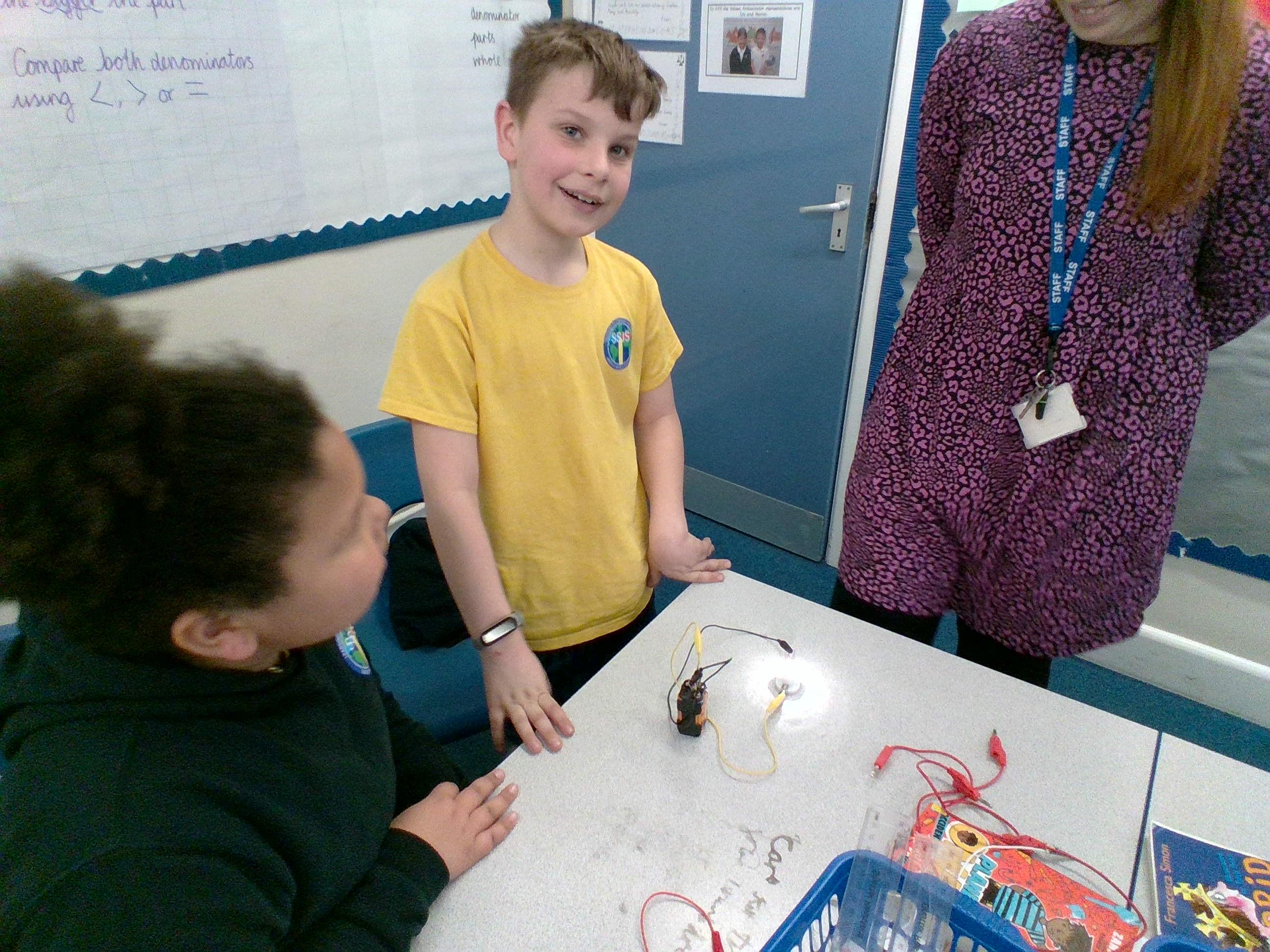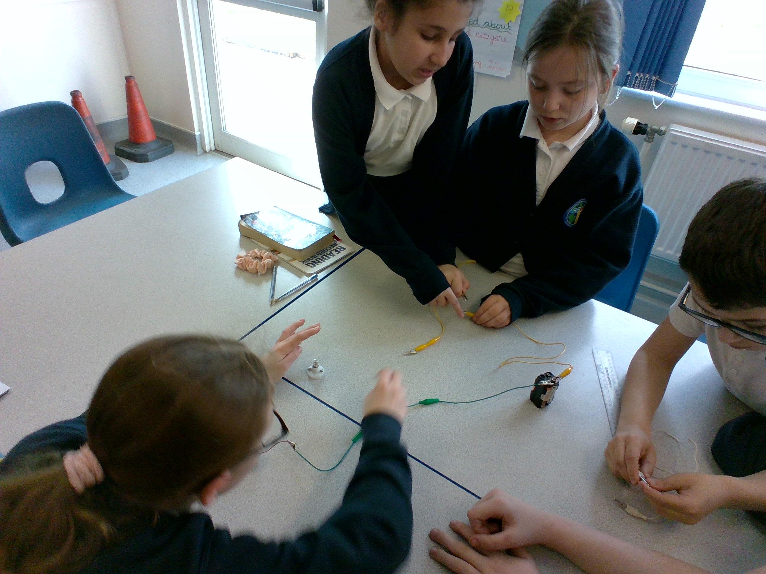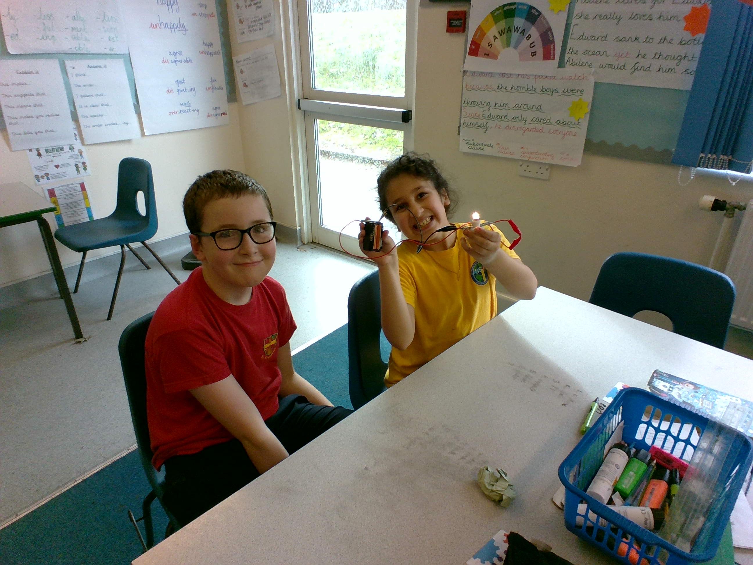 As part of our science week in Year 4, we have been developing our understanding of electricity. We learned about the different types of appliances that use mains electricity and battery. We then had a go at creating our own electric circuits using wires, batteries and bulbs. We now know that the wires in a circuit have a very important role and are made of metal because it is an electrical conductor which means it allows the electric current to flow around the circuit and to the bulb to light it up.