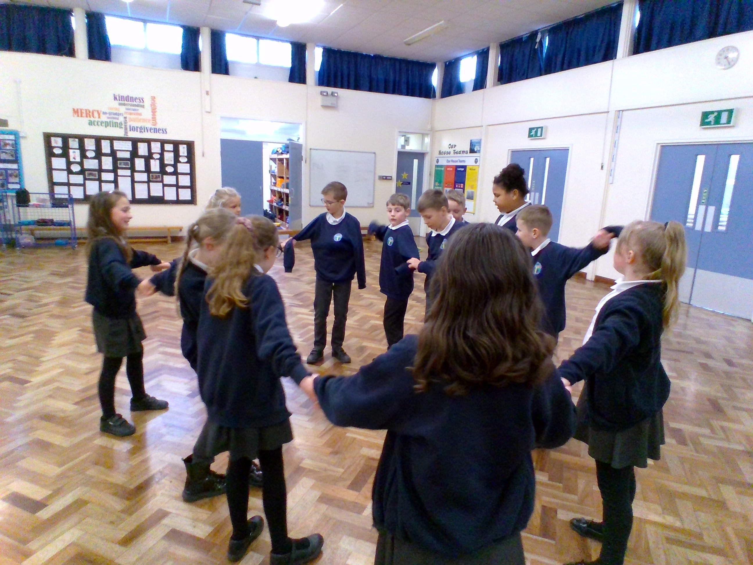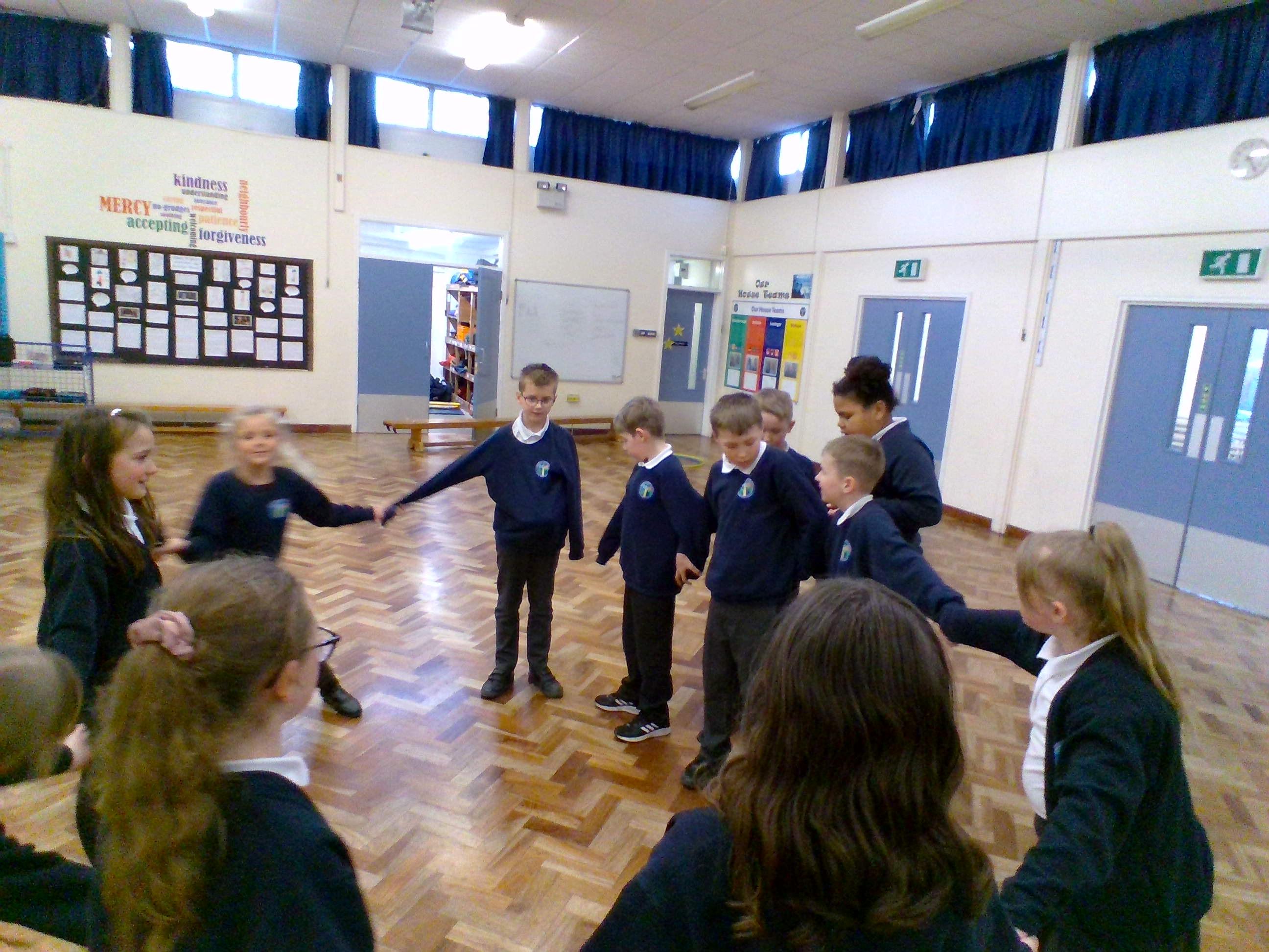 This term, our focus in PE is rounders and Outdoor Adventurous Activities (OAA). To start our learning this week, Mrs Crossfield took the class outside to play some outdoor games to get us to start to think about how we can focus our bodies, make shapes and work together in group co-ordination. This included the children having to think about ways they can step from one hoop to another, strategise and problem solve and then discuss how well they did and what they might be able to do next time to improve.