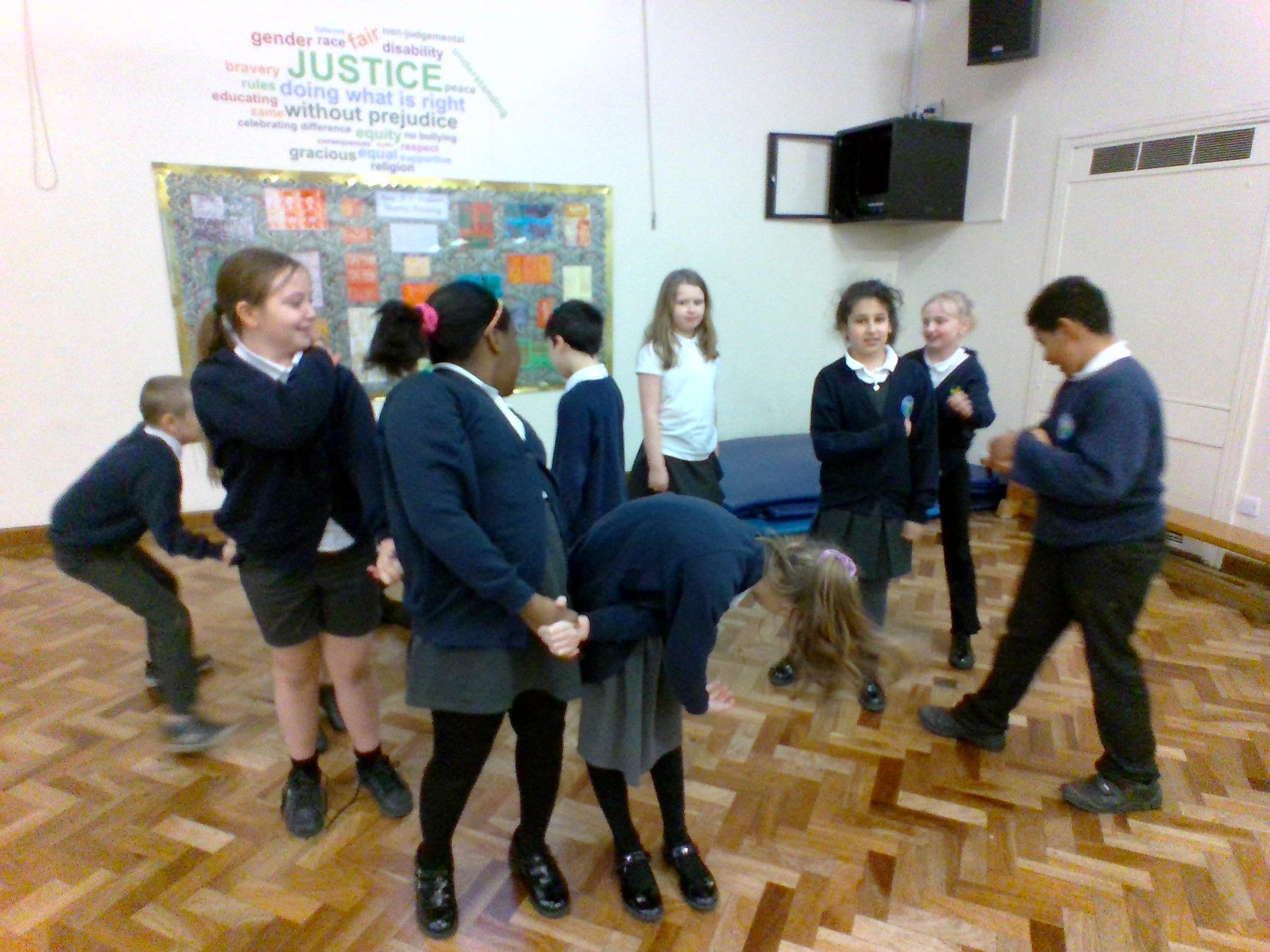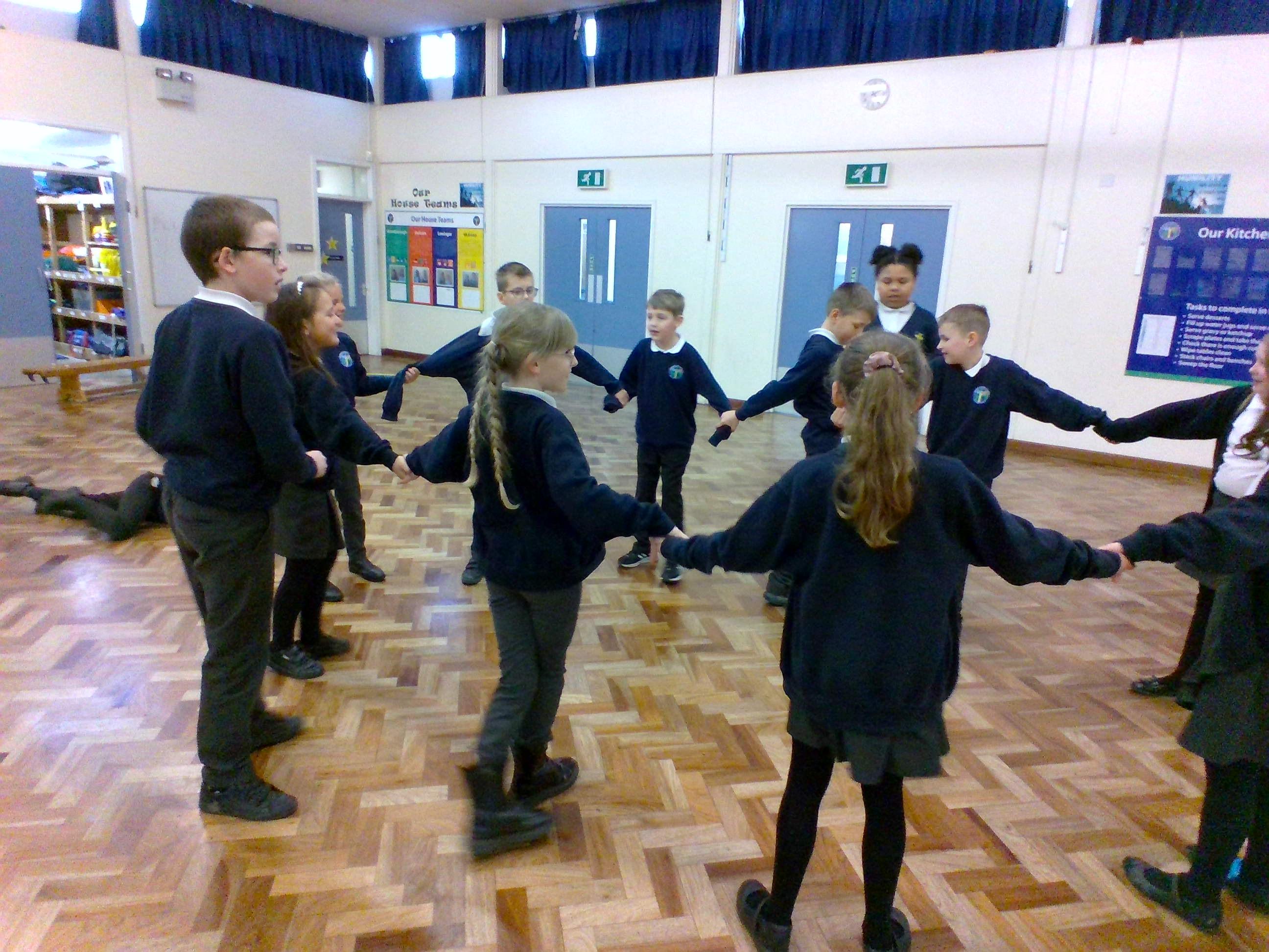 Today was another No Pens Day at SSJS. In 4JA we were focusing on our Teamwork cog as well as continuing to work on our Oracy skills. This time, we looked at our probing talk tactic in oracy - digging deeper into answers, asking how and why people know and if there is evidence to support their answers. We joined in with many Oracy activities such as 21, If I Ruled The World, Book Talk, and discussing what we think oracy really means. This afternoon was spent working on our team work skills. We had lots of fun with becoming human pretzels, where one member of our team instructed us on how to move around a circle, twisting, turning and moving into a pretzel in which another member had to undo - only using words! Finally, we had to work together to keep our conga line in tact, with a twist! Each member was holding the person in front's ankle while resting their own hand on the shoulder in front. They mananged to hold both lines for a surprising amount of time! 4JA learned some valuable lessons on teamwork and have been able to link this back to how we can be good metacogs and learning partners in the future.