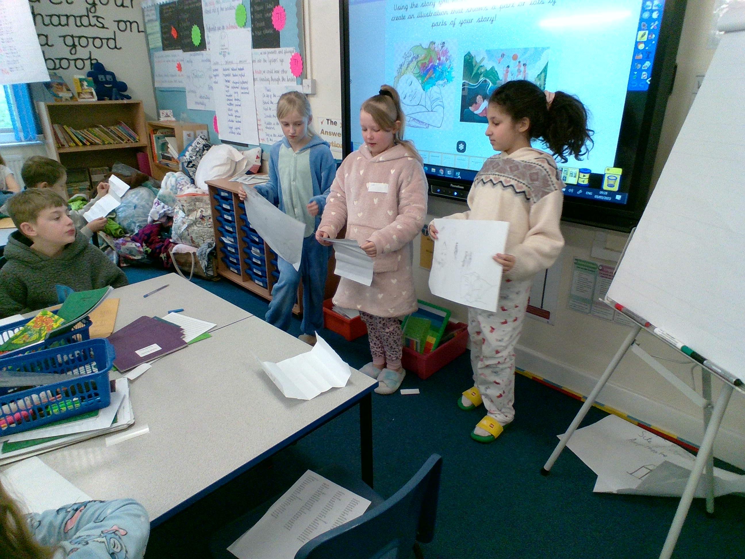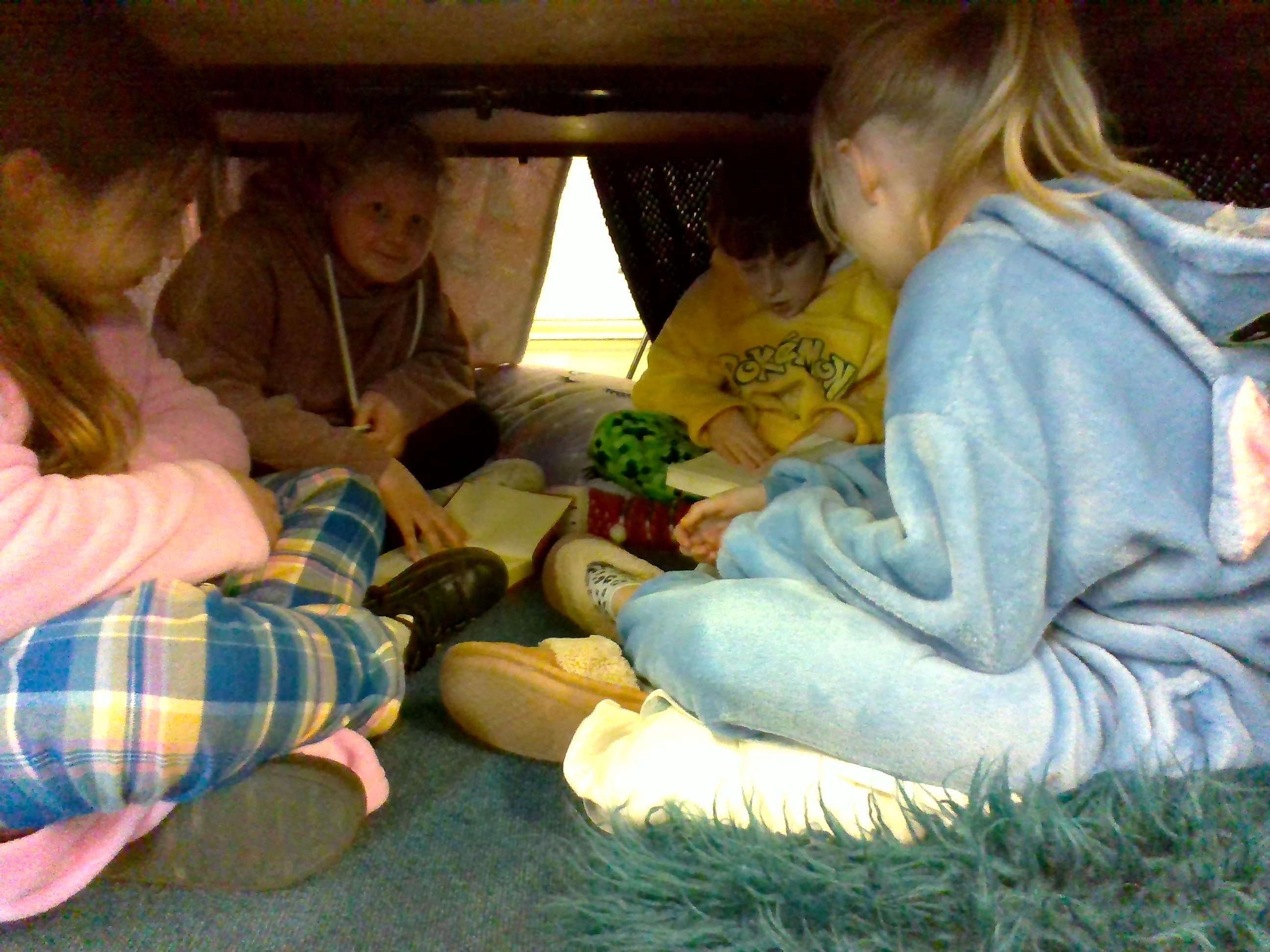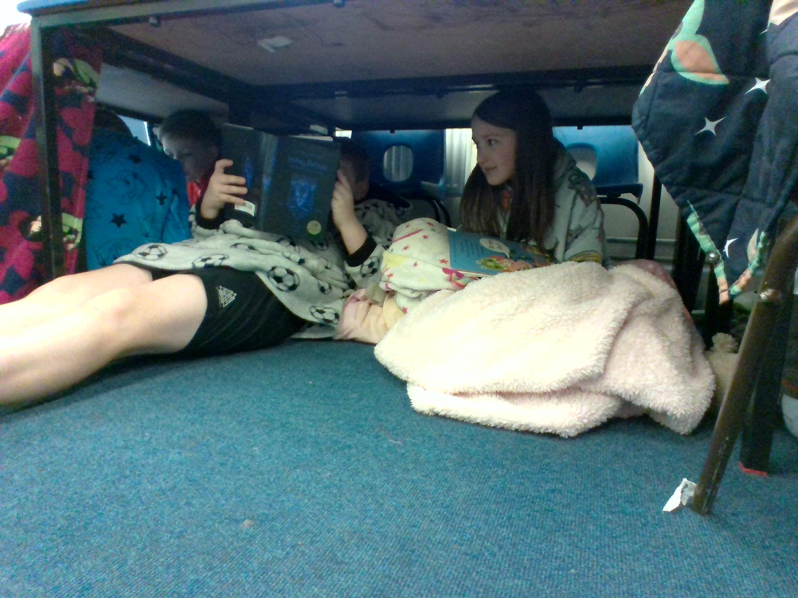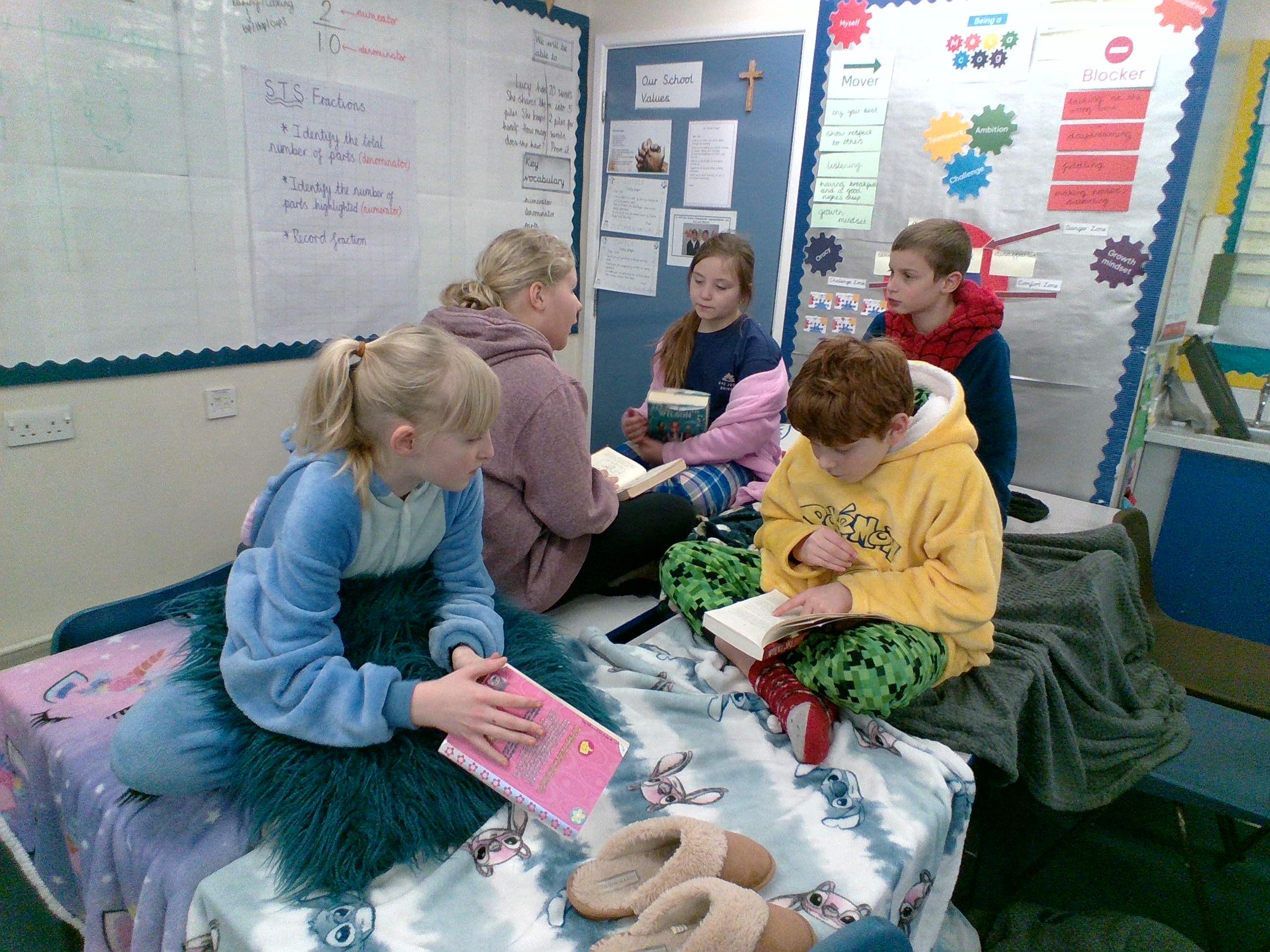Today we celebrated World Book Day by wearing our PJs, onesies or snuddies. Why you may well ask, because the theme was bedtime stories. We had great fun creating stories from ideas suggested by 7 other members of the class, created our own graphic novels, shared our books which we had brought in with 6RO and made some reading dens to snuggle into and enjoy a story or two.